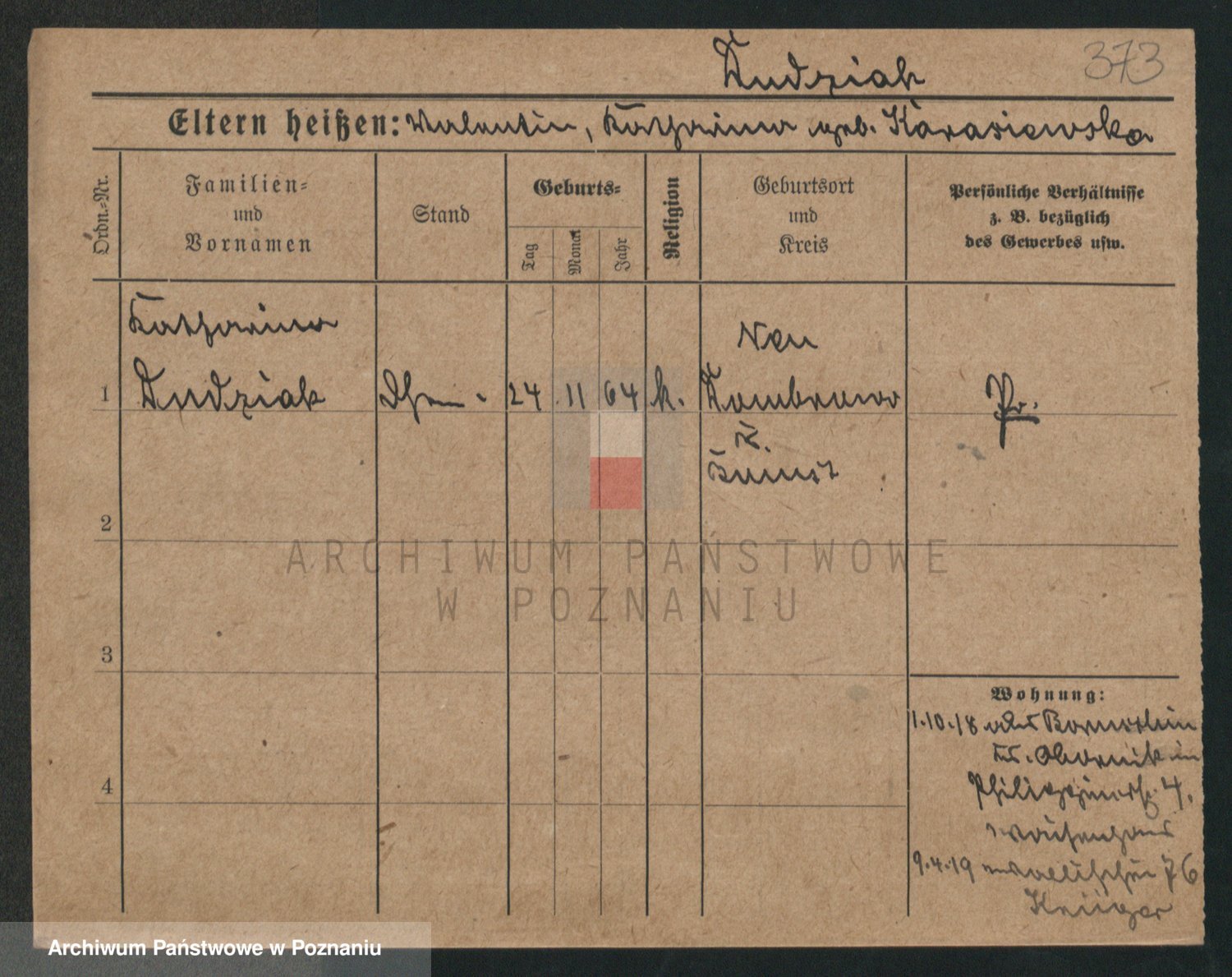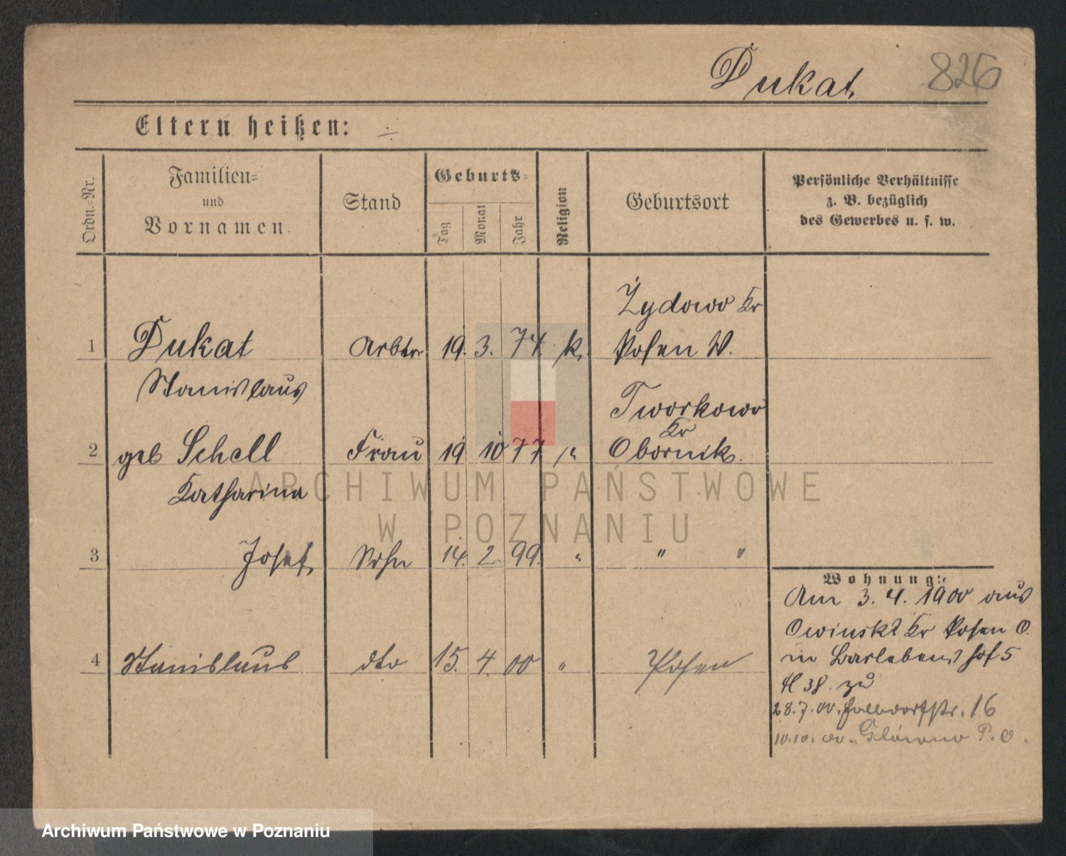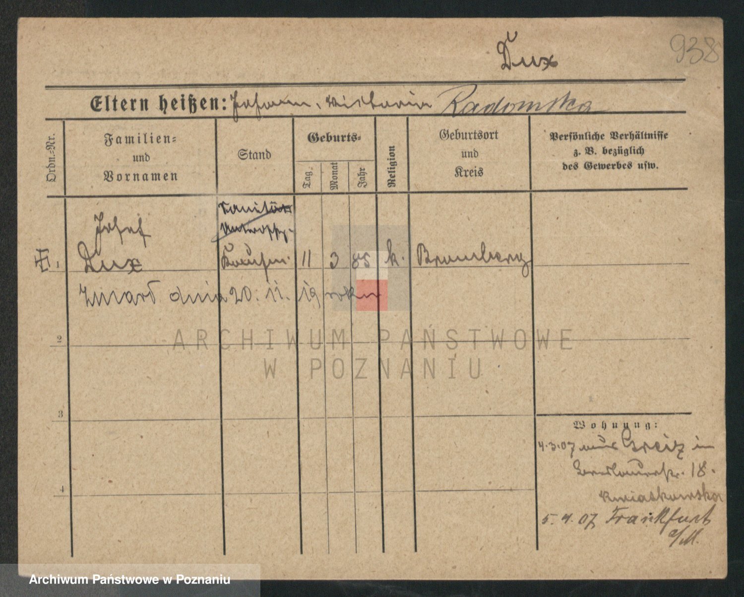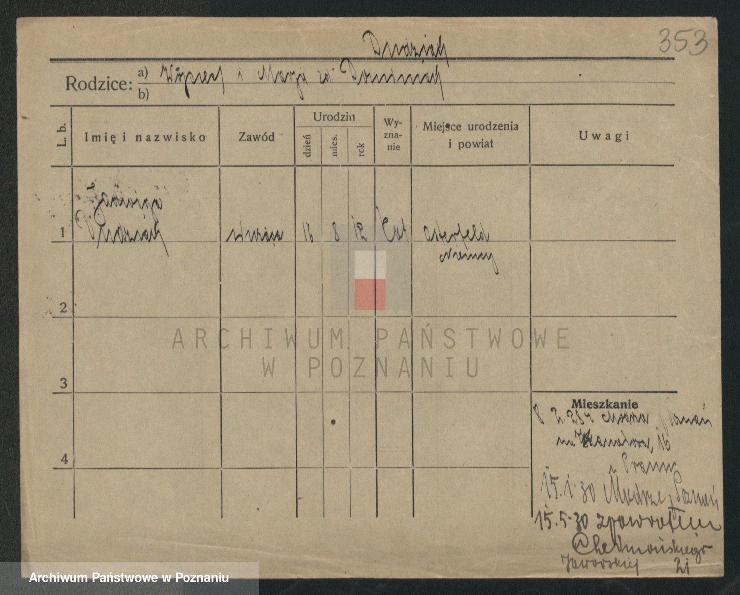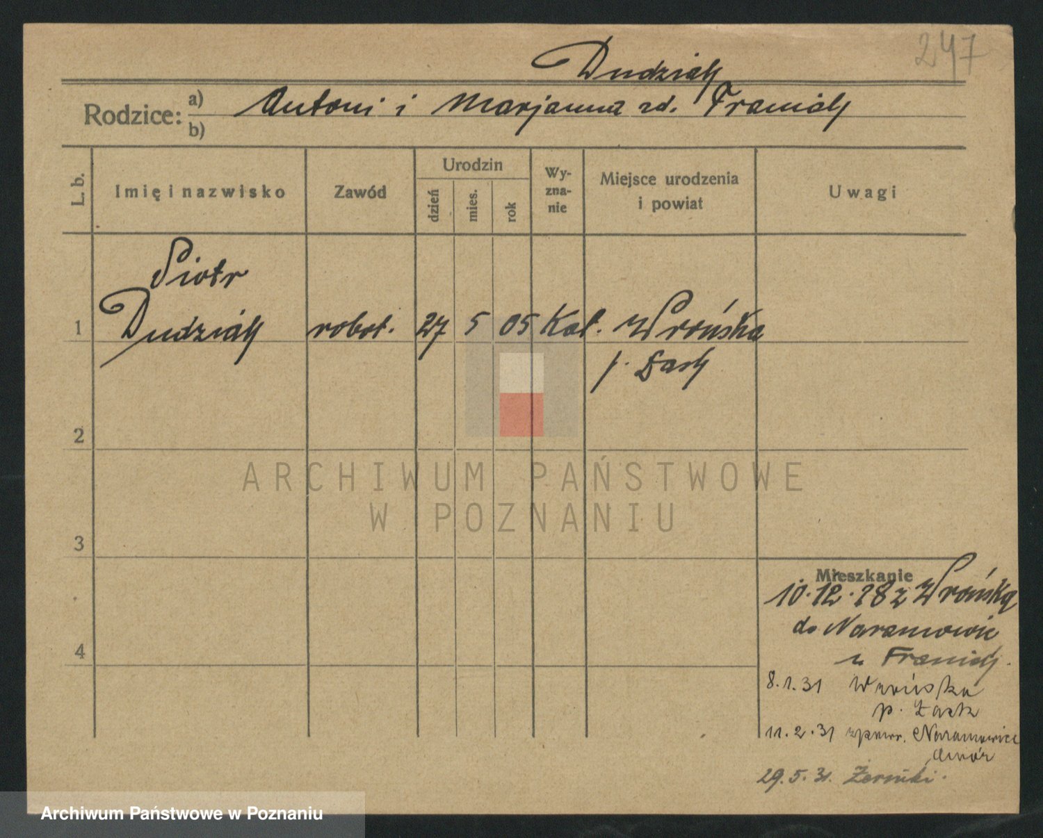 Podgląd karty osobowej dostępny jest po kliknięciu na nazwisko lub ikonkę karty. Można dokonywać powiększenia (ikony na górze) lub przechodzić między kolejnymi skanami (strzałki po bokach).
