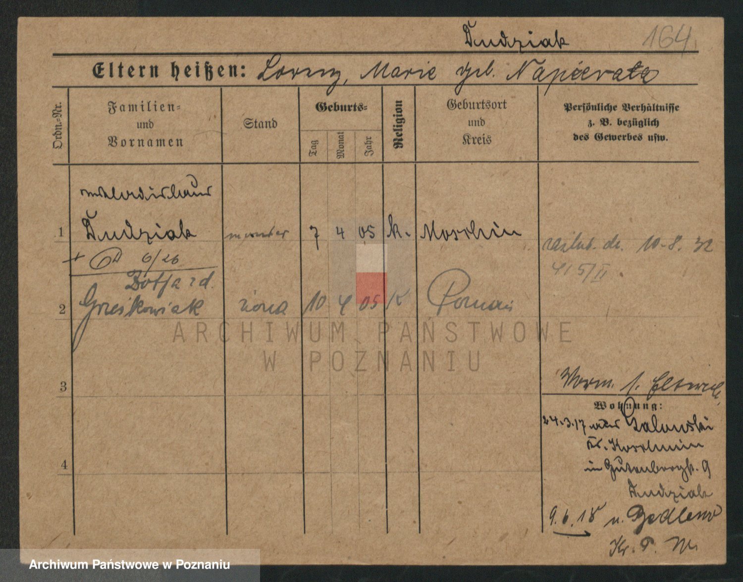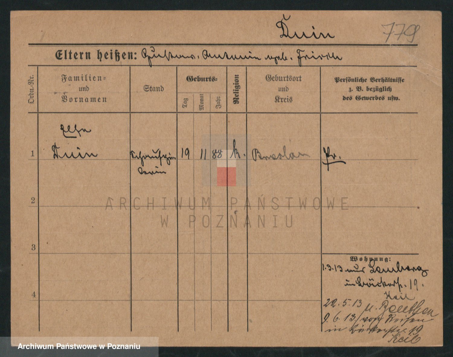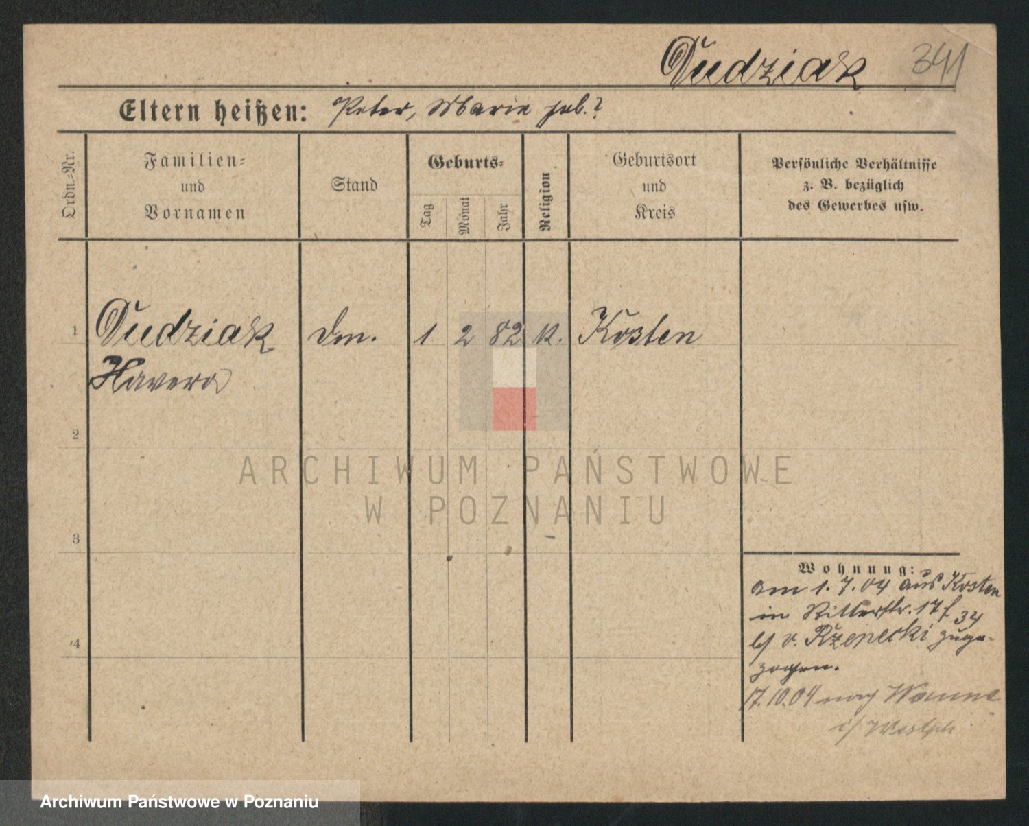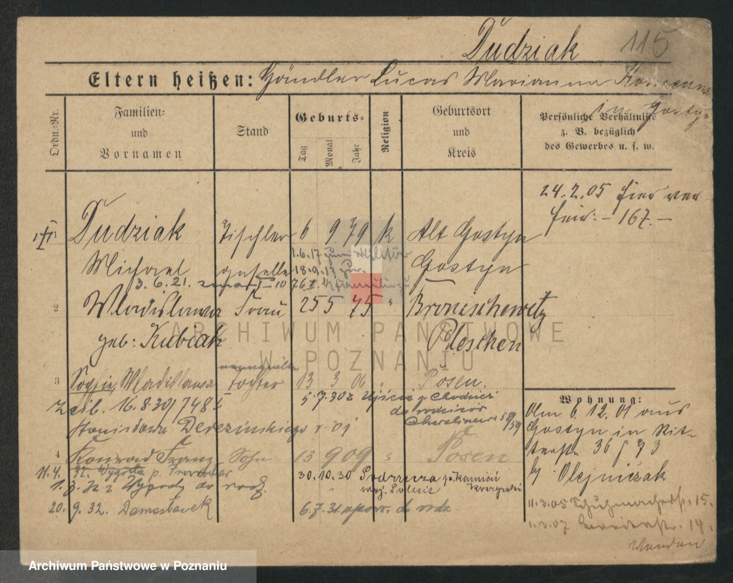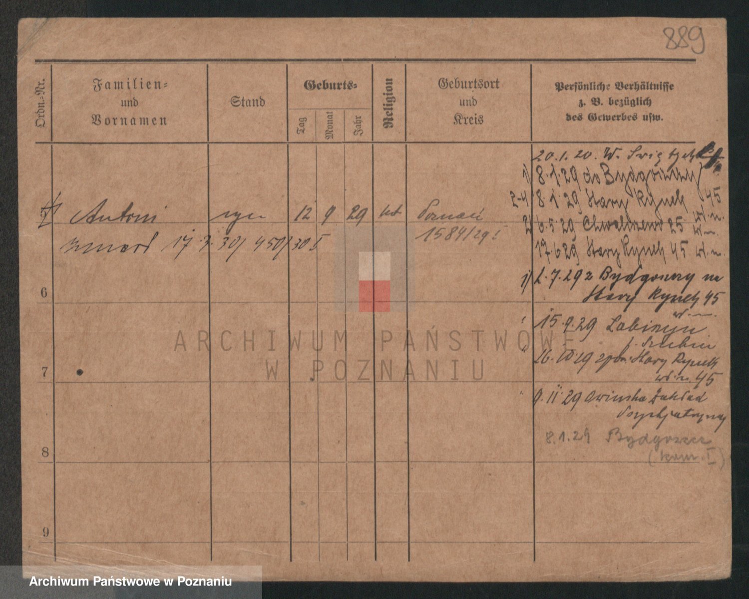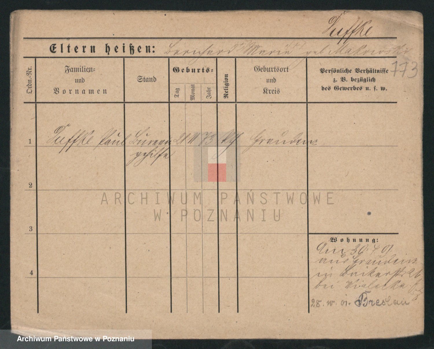 Podgląd karty osobowej dostępny jest po kliknięciu na nazwisko lub ikonkę karty. Można dokonywać powiększenia (ikony na górze) lub przechodzić między kolejnymi skanami (strzałki po bokach).