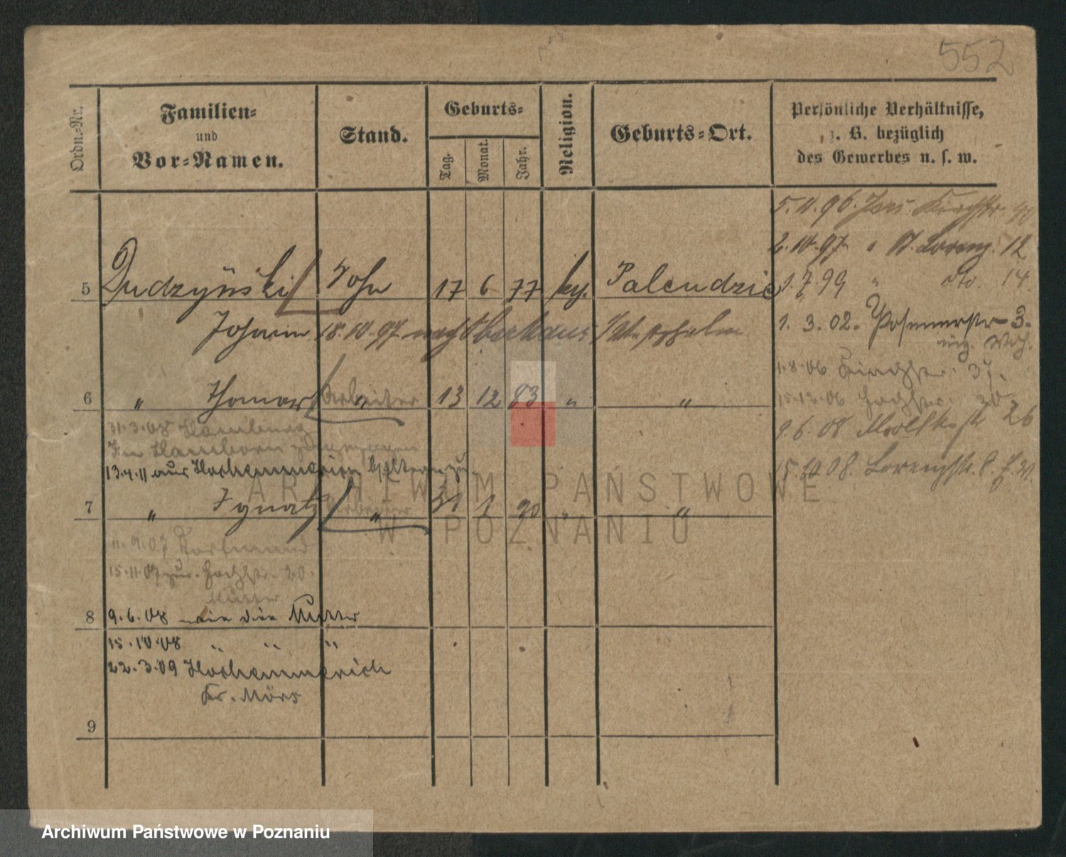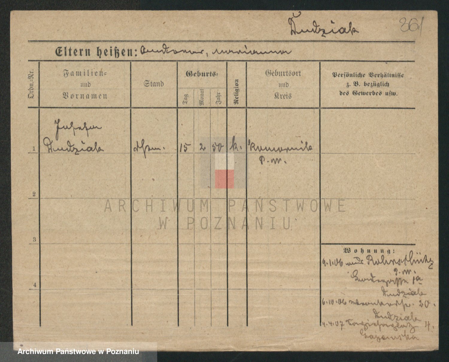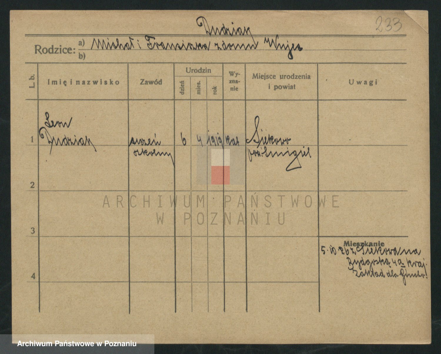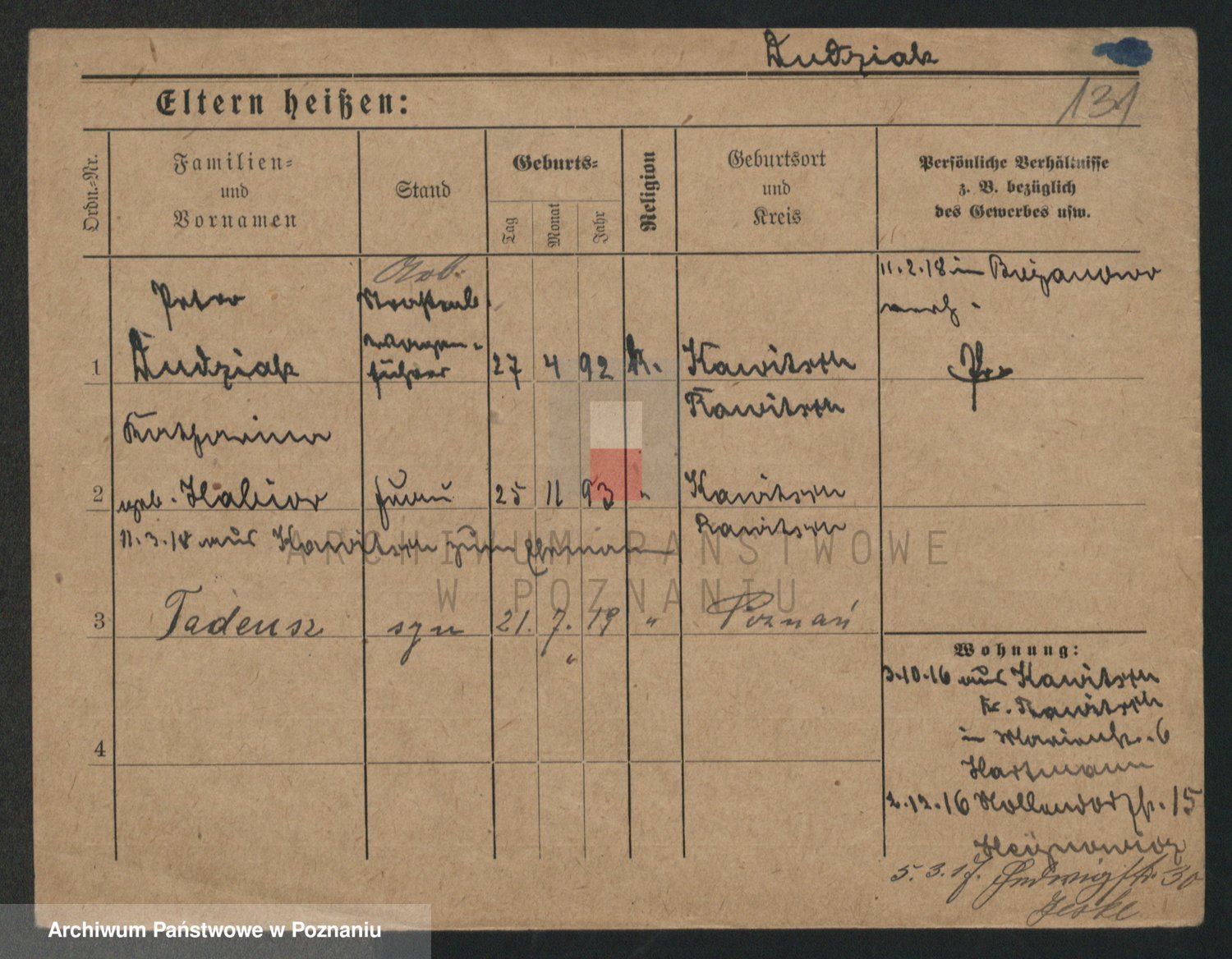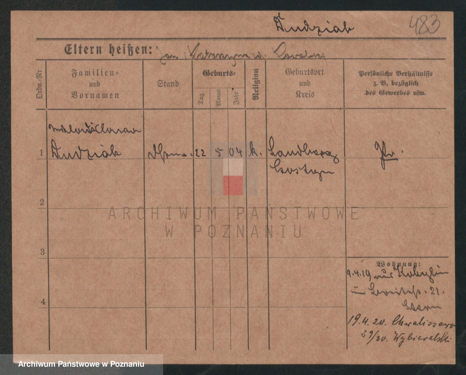 Podgląd karty osobowej dostępny jest po kliknięciu na nazwisko lub ikonkę karty. Można dokonywać powiększenia (ikony na górze) lub przechodzić między kolejnymi skanami (strzałki po bokach).