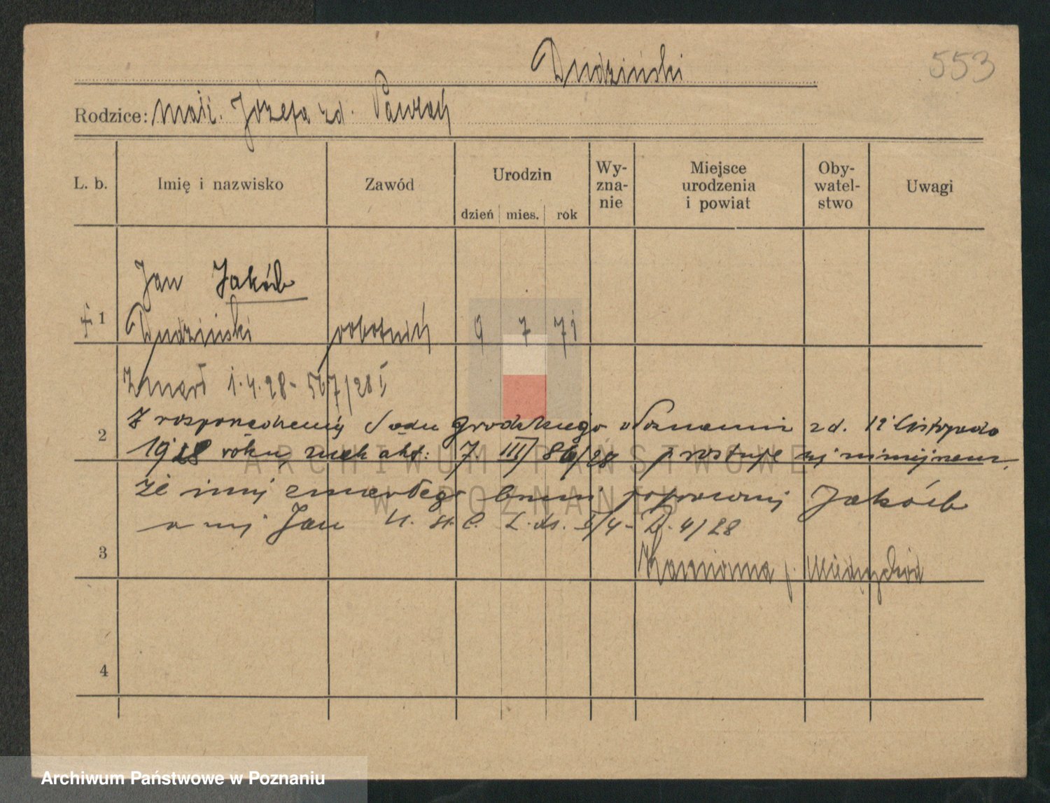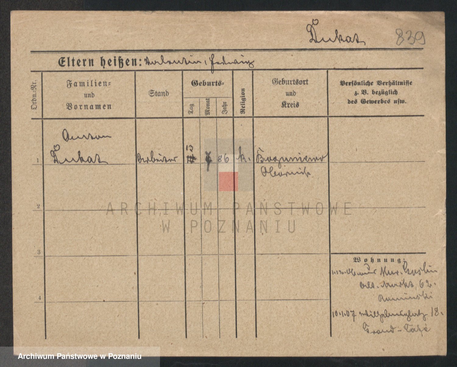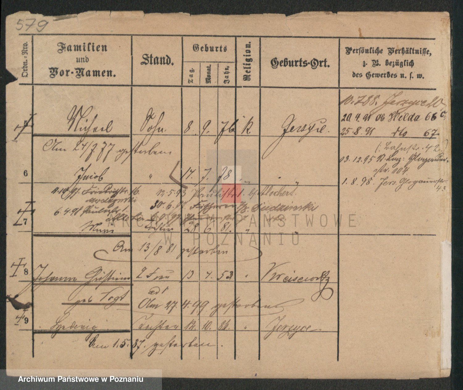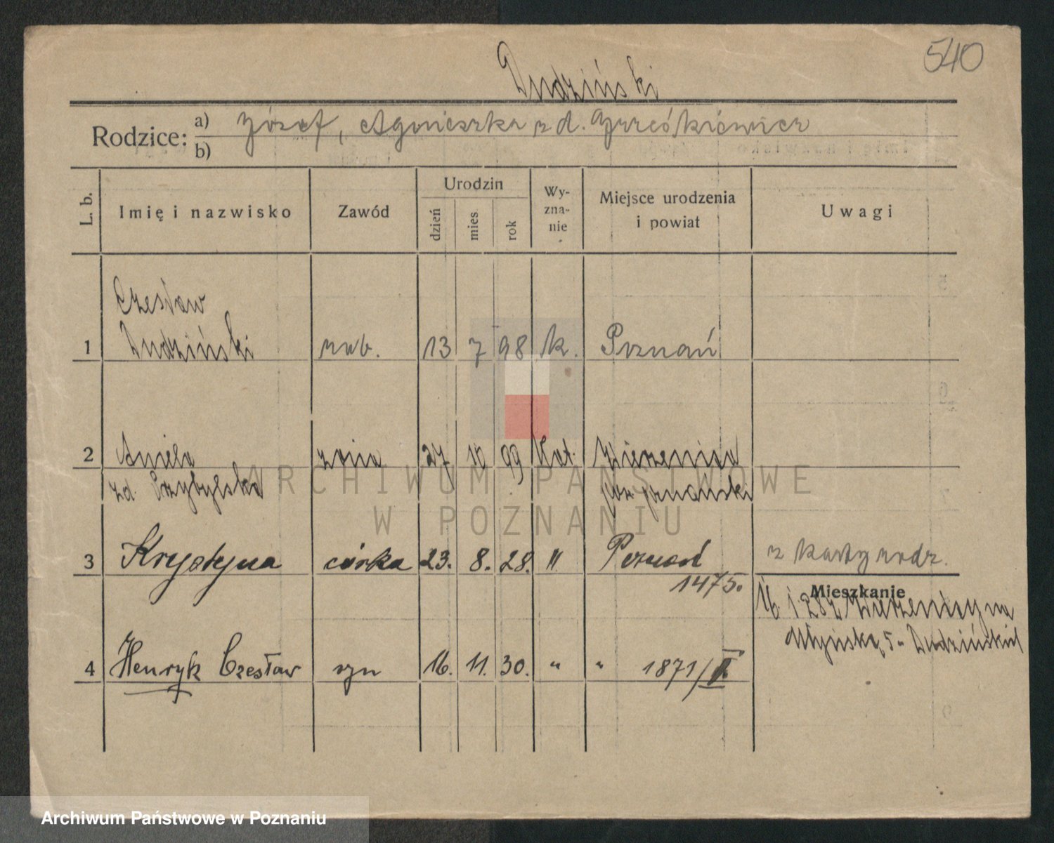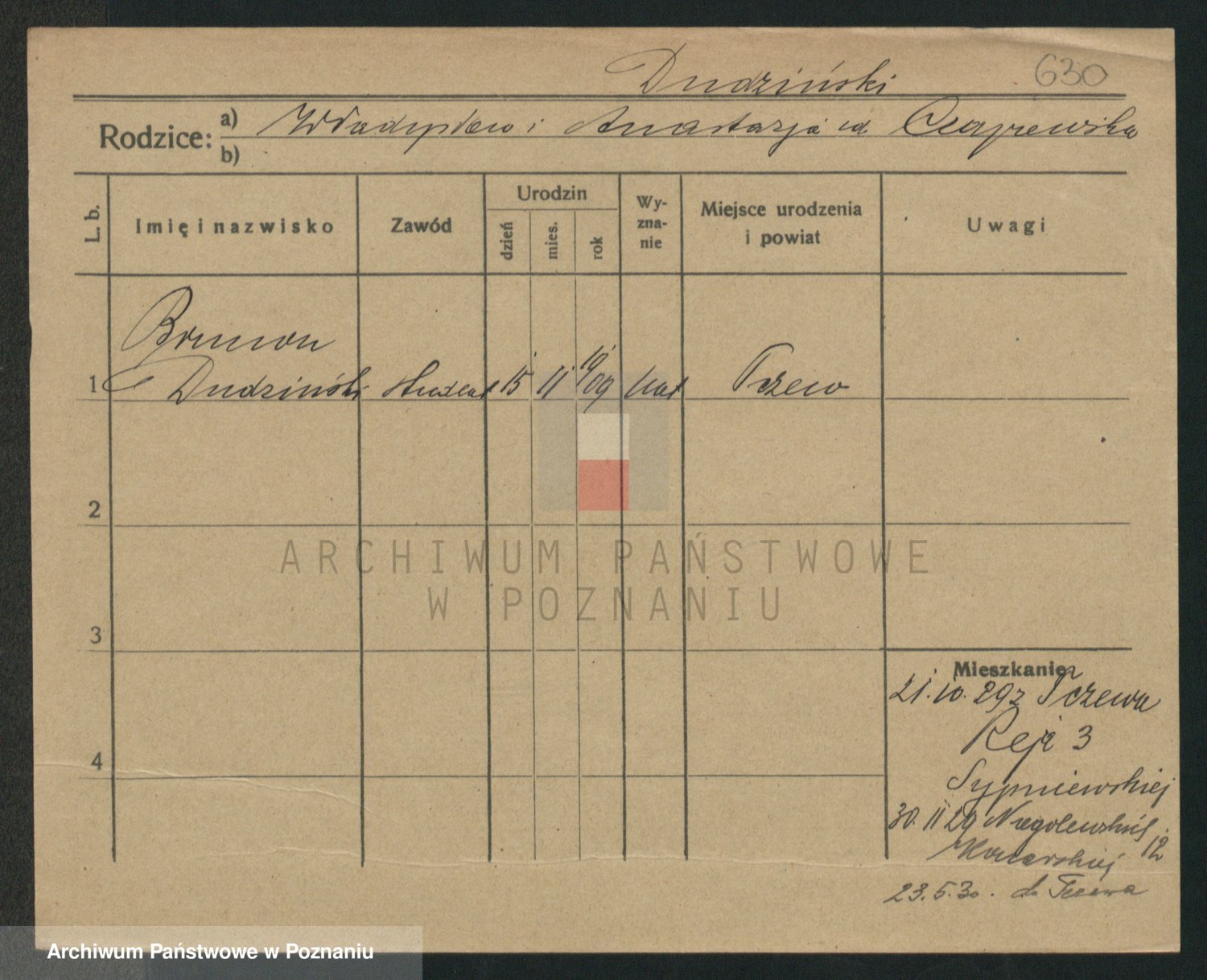 Podgląd karty osobowej dostępny jest po kliknięciu na nazwisko lub ikonkę karty. Można dokonywać powiększenia (ikony na górze) lub przechodzić między kolejnymi skanami (strzałki po bokach).