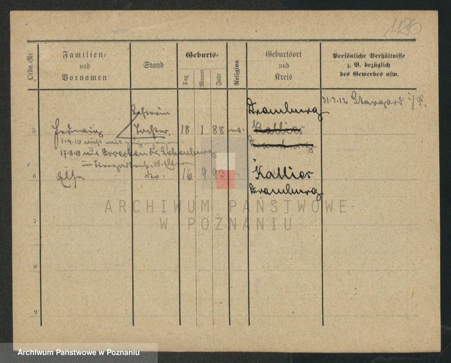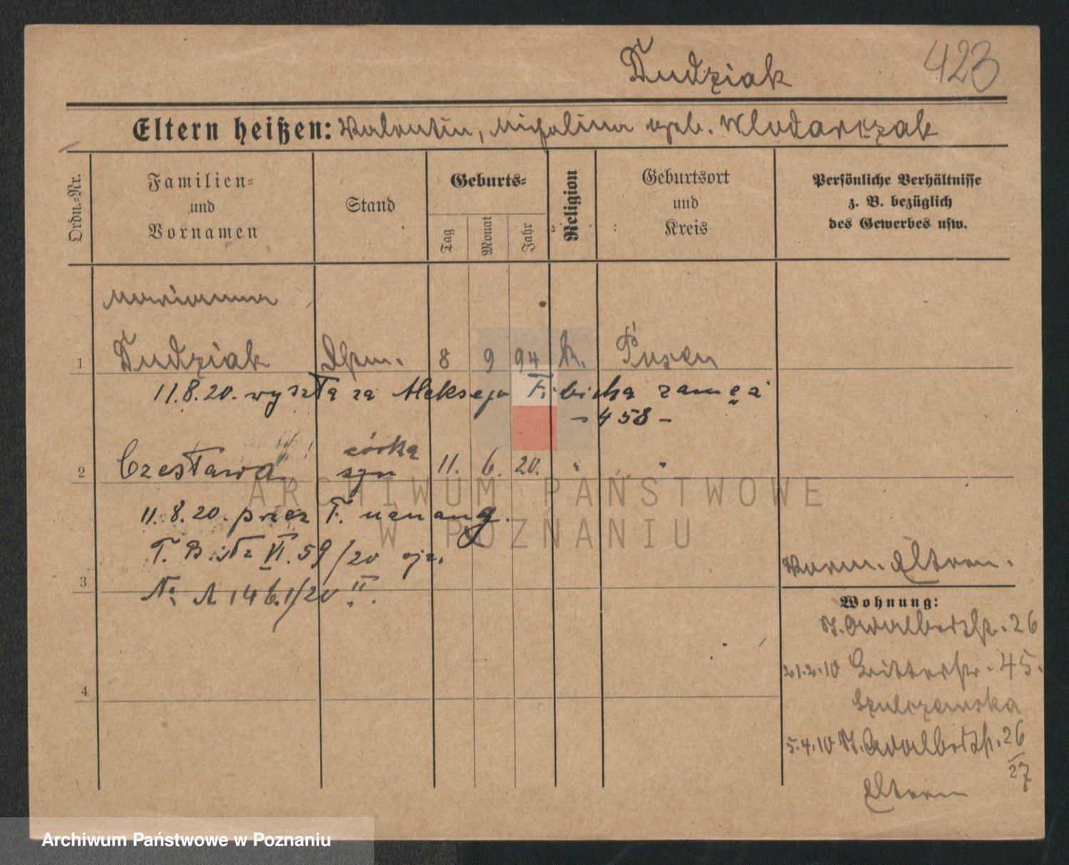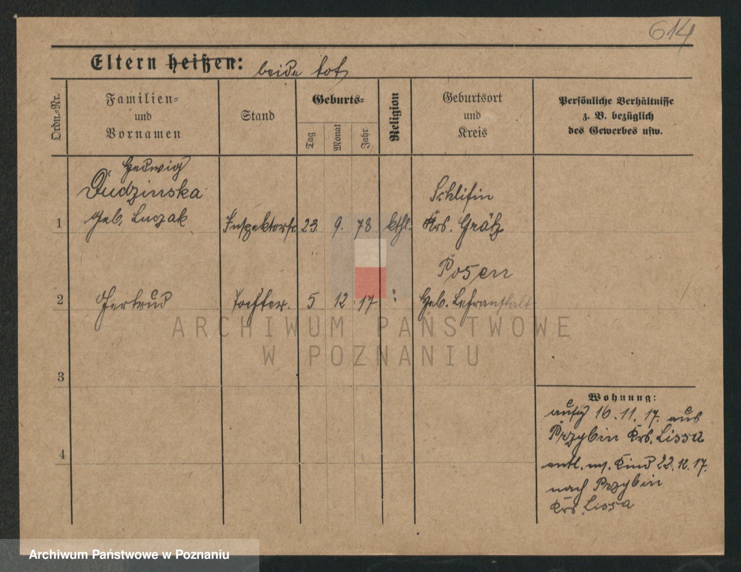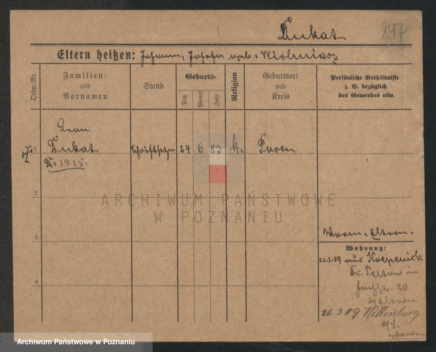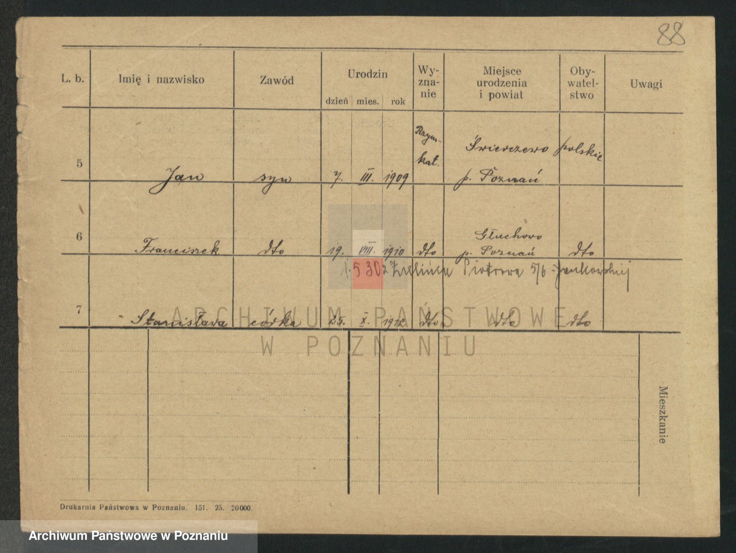 Podgląd karty osobowej dostępny jest po kliknięciu na nazwisko lub ikonkę karty. Można dokonywać powiększenia (ikony na górze) lub przechodzić między kolejnymi skanami (strzałki po bokach).