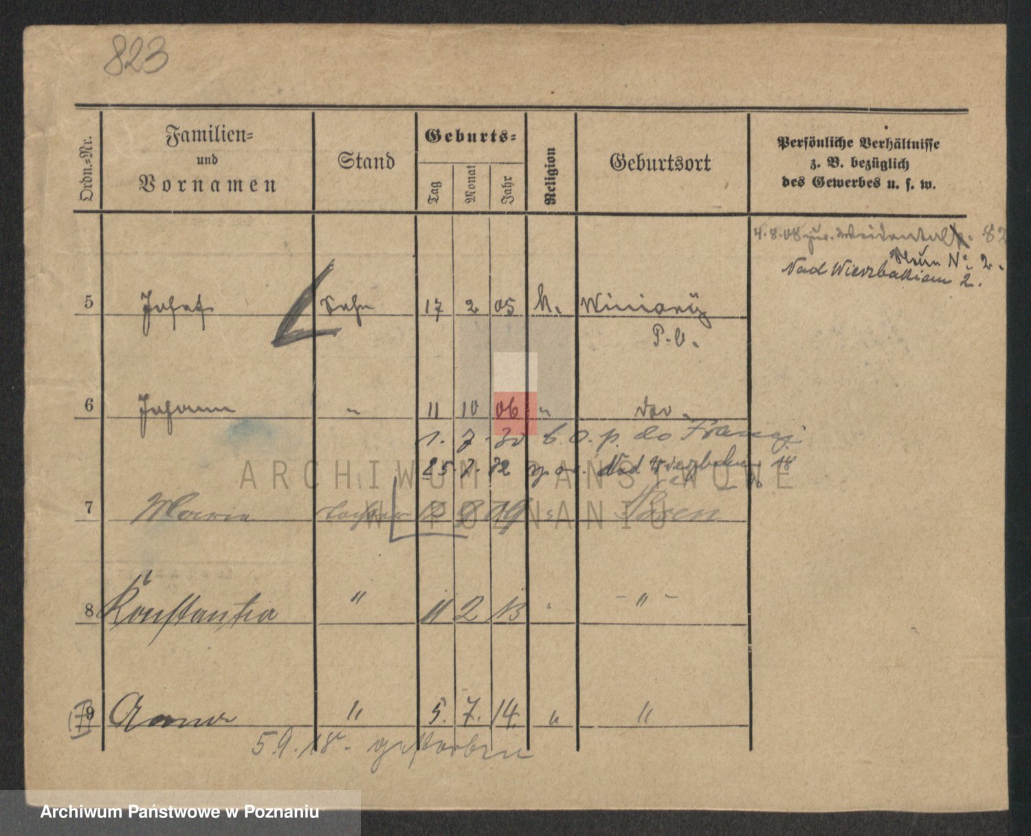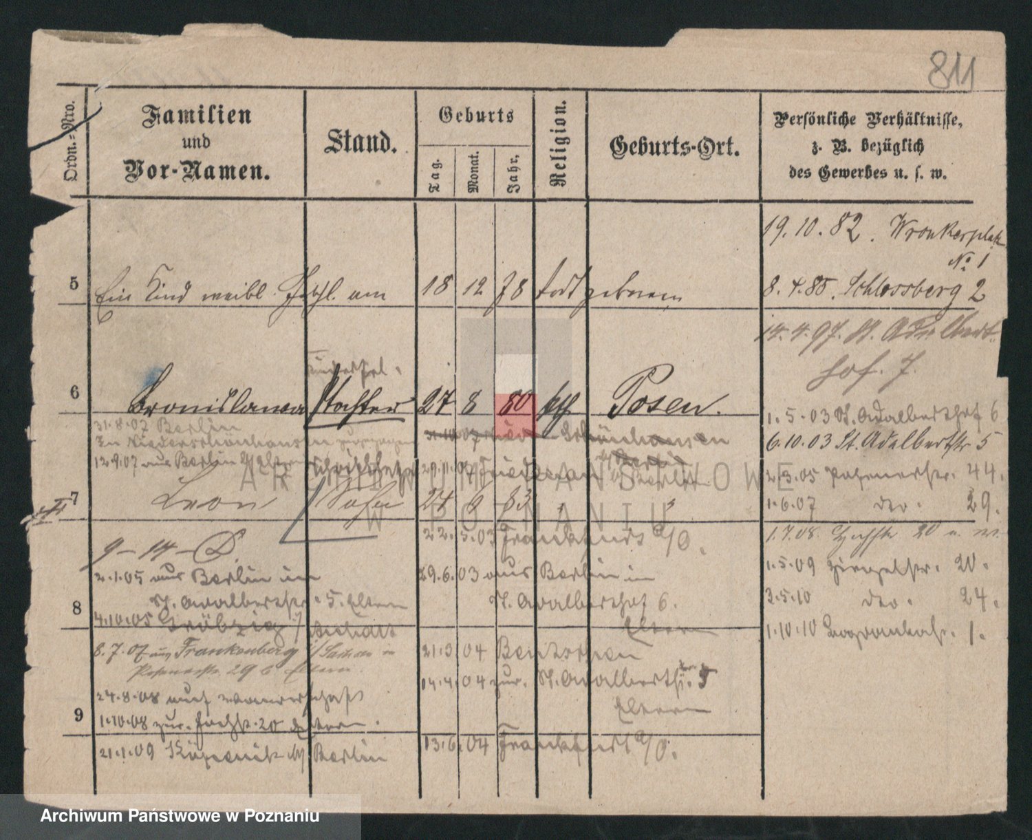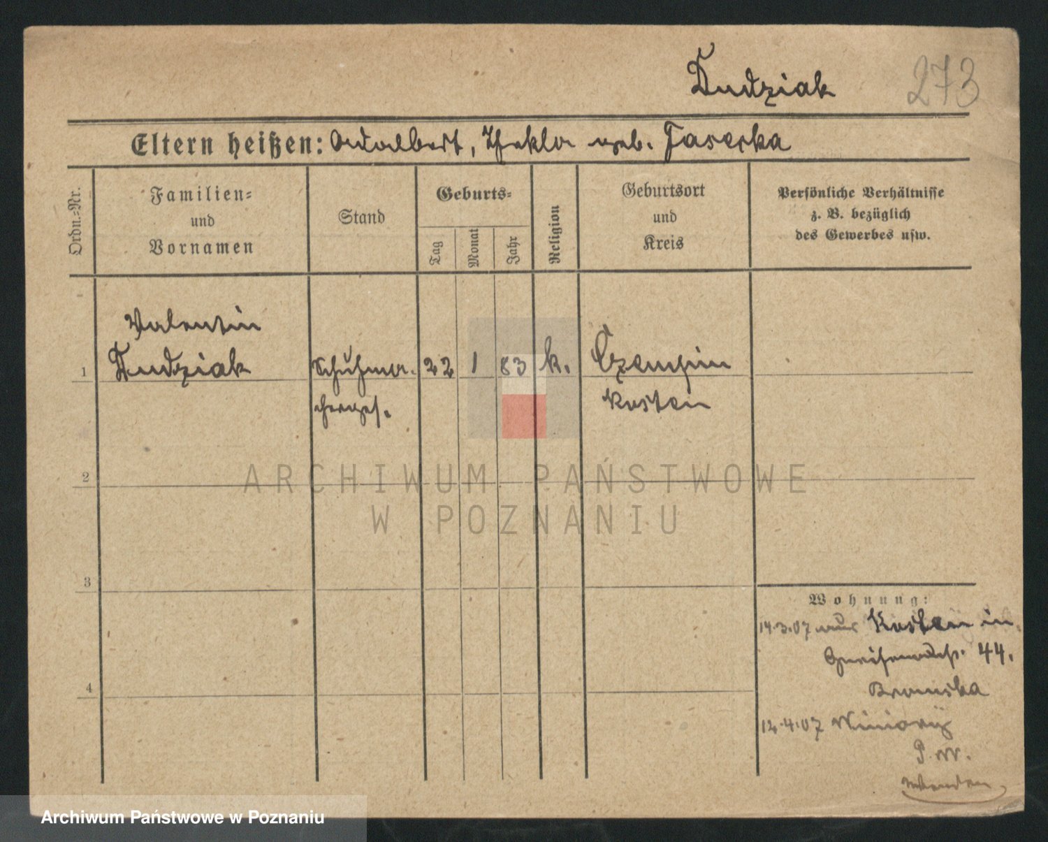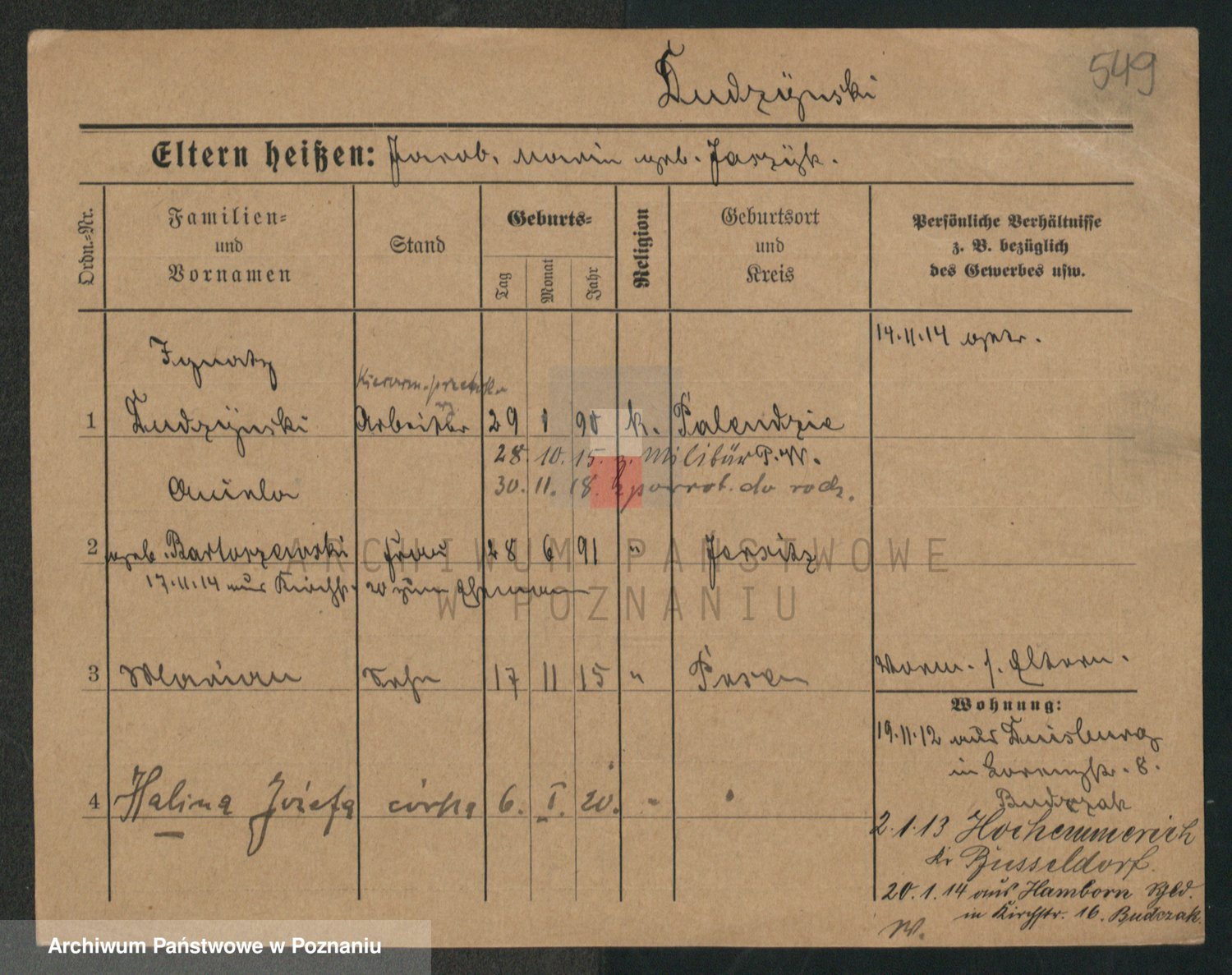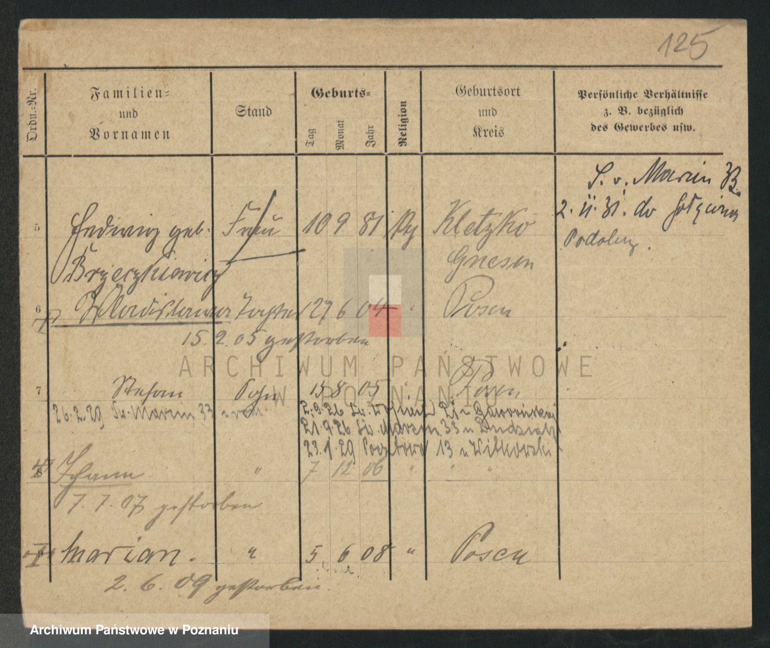 Podgląd karty osobowej dostępny jest po kliknięciu na nazwisko lub ikonkę karty. Można dokonywać powiększenia (ikony na górze) lub przechodzić między kolejnymi skanami (strzałki po bokach).