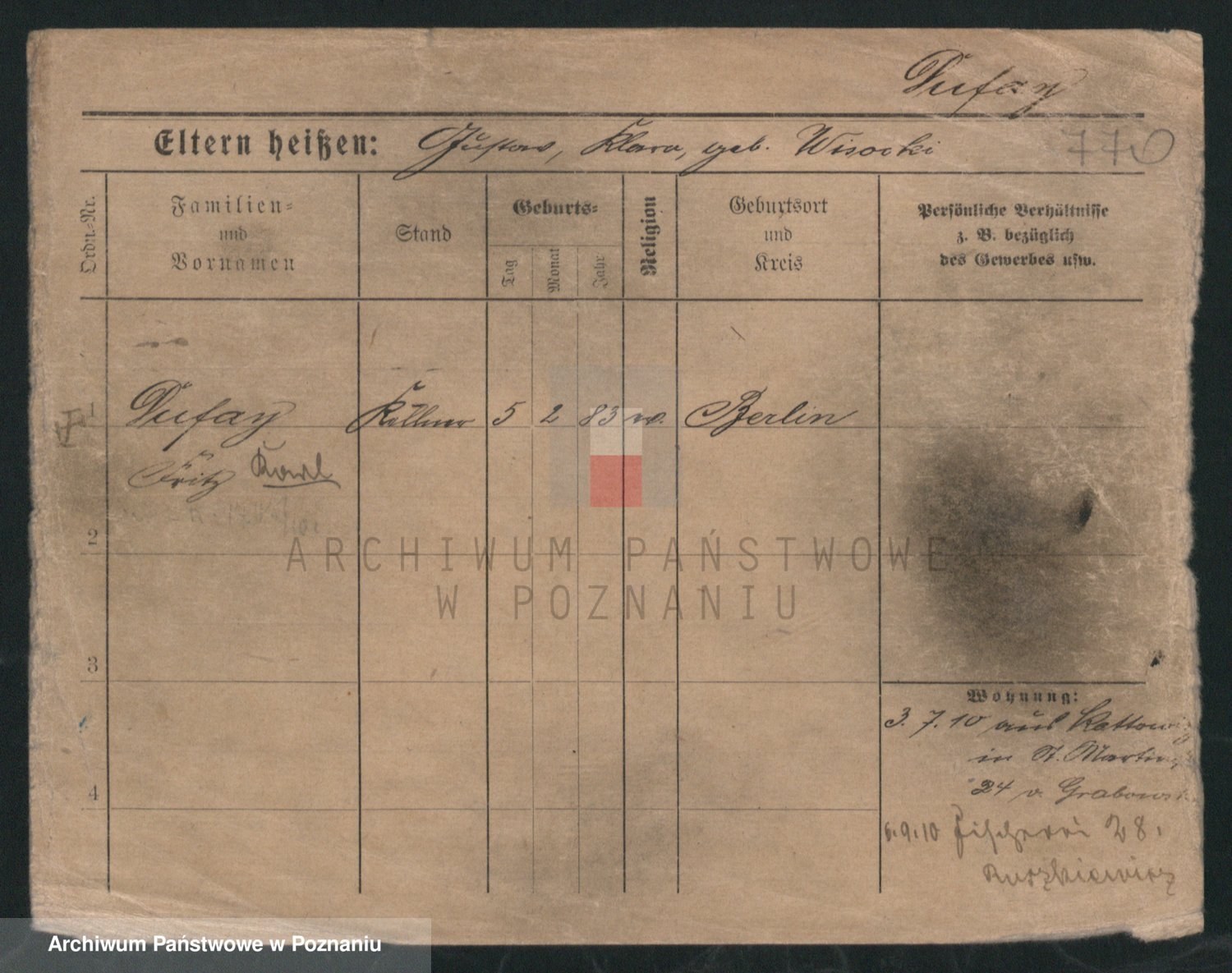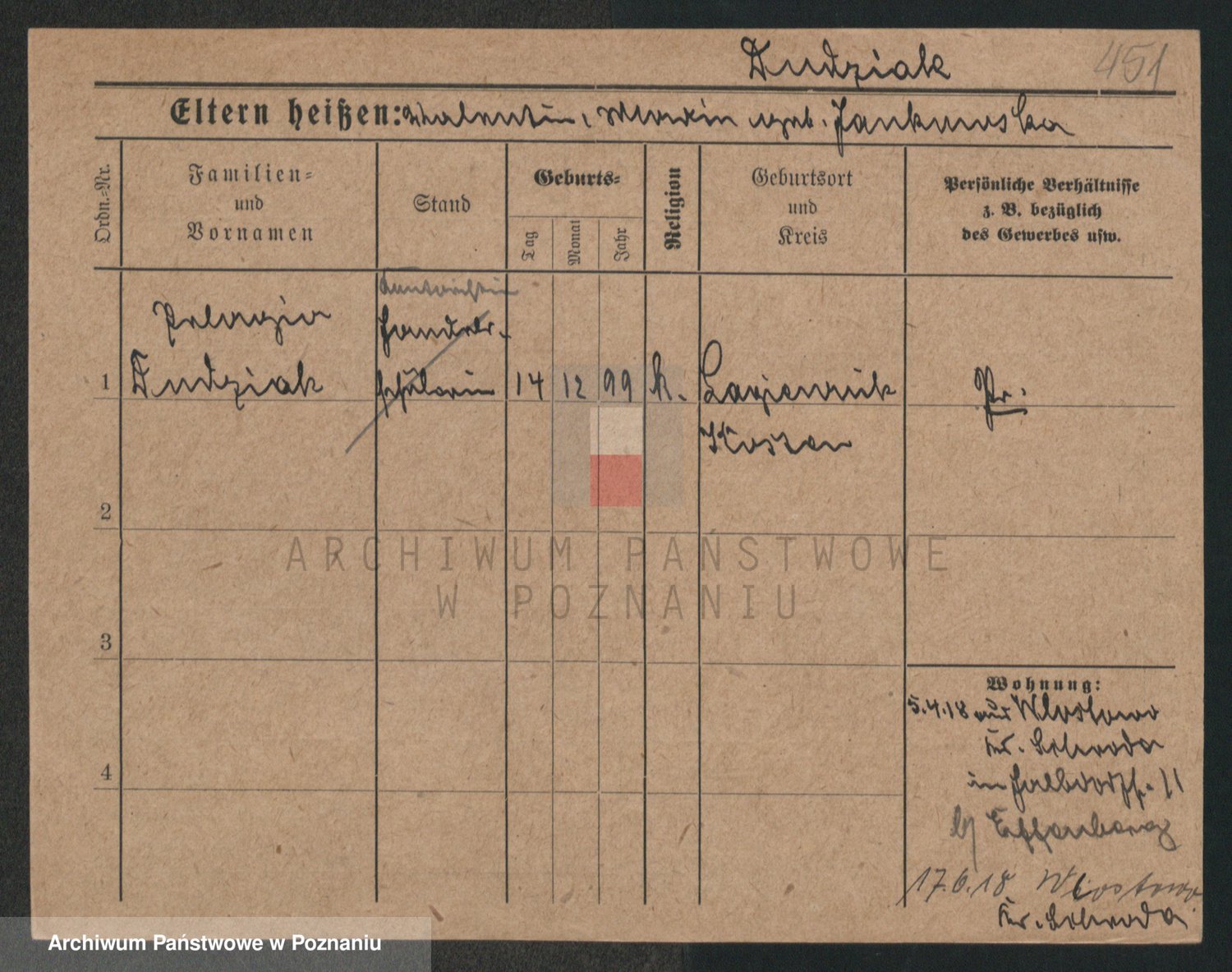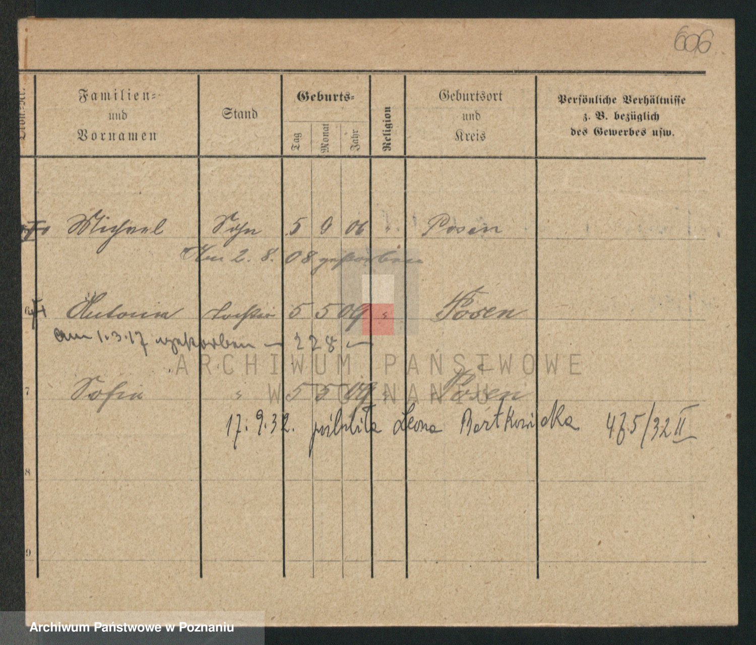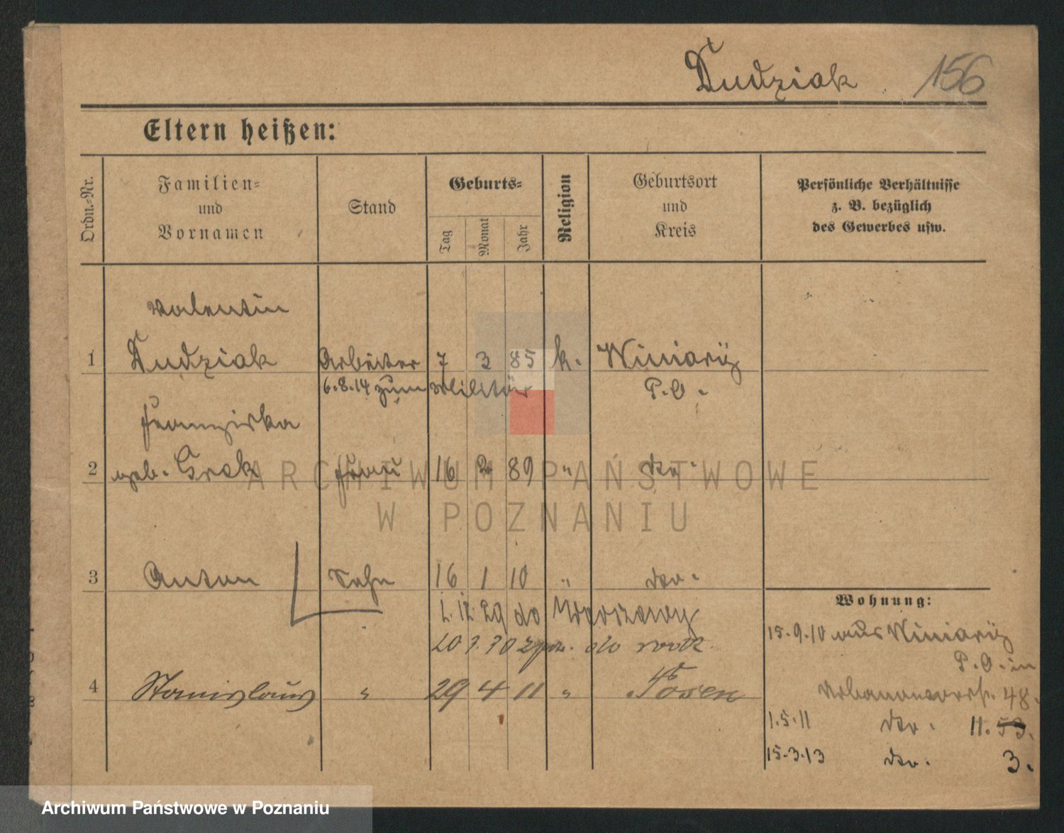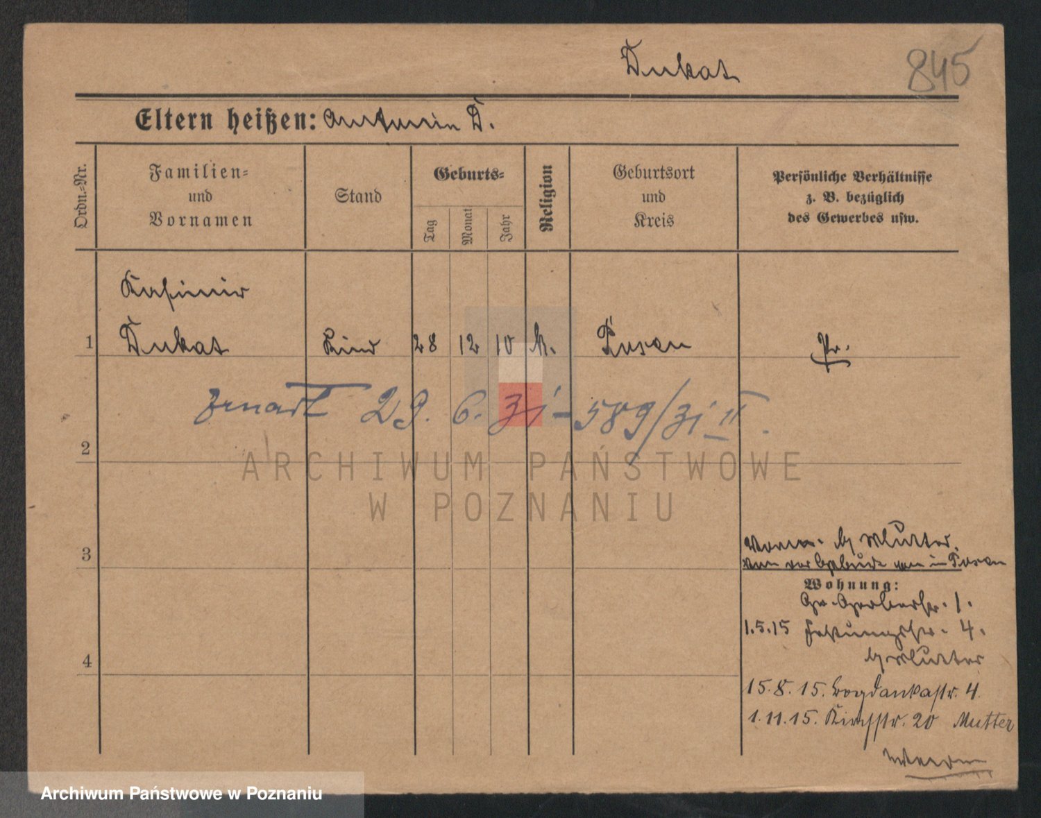 Podgląd karty osobowej dostępny jest po kliknięciu na nazwisko lub ikonkę karty. Można dokonywać powiększenia (ikony na górze) lub przechodzić między kolejnymi skanami (strzałki po bokach).