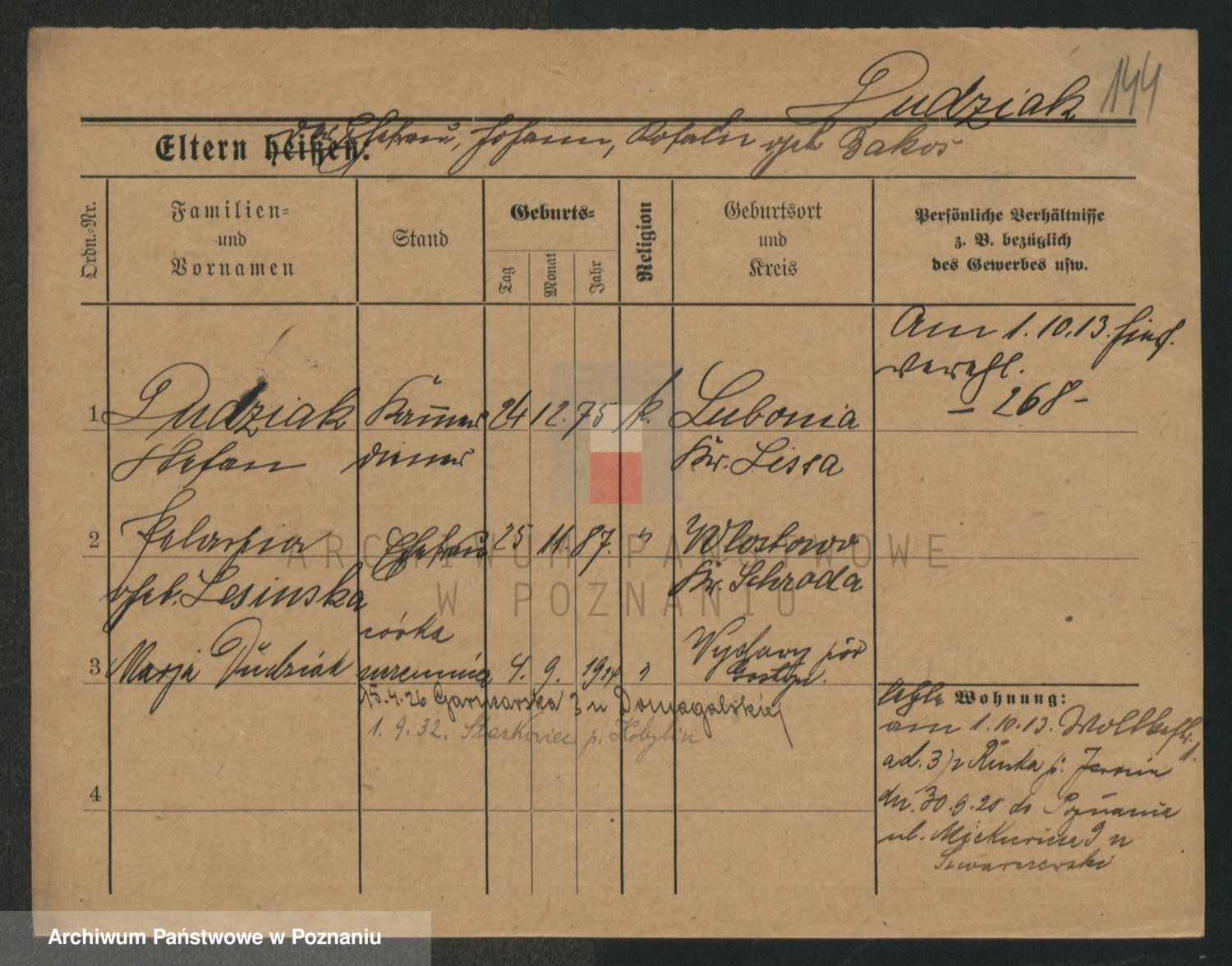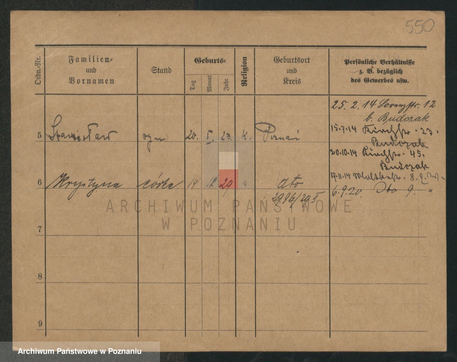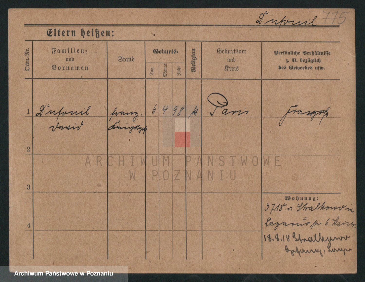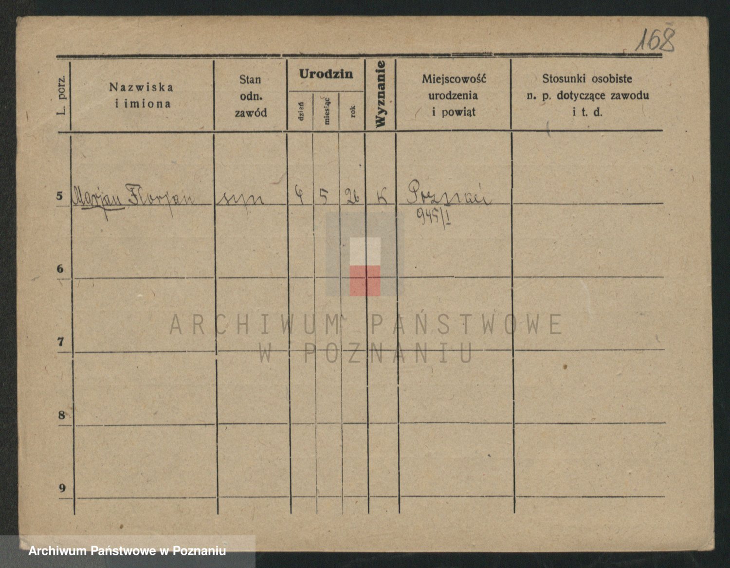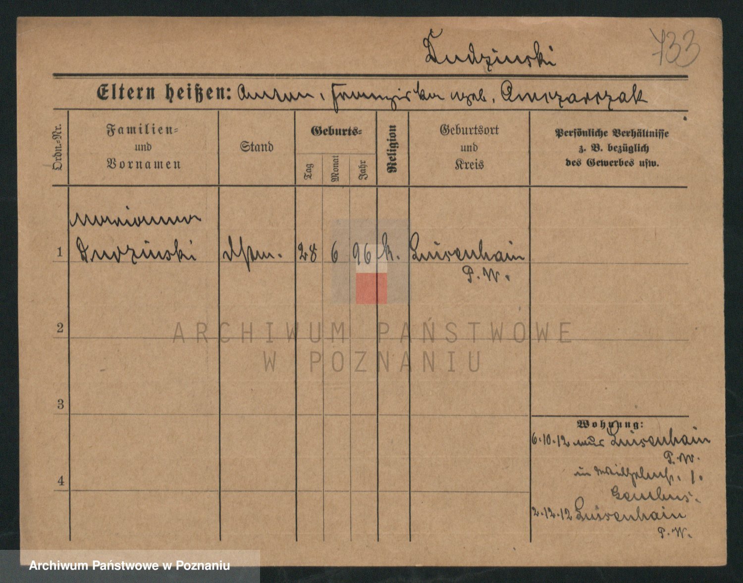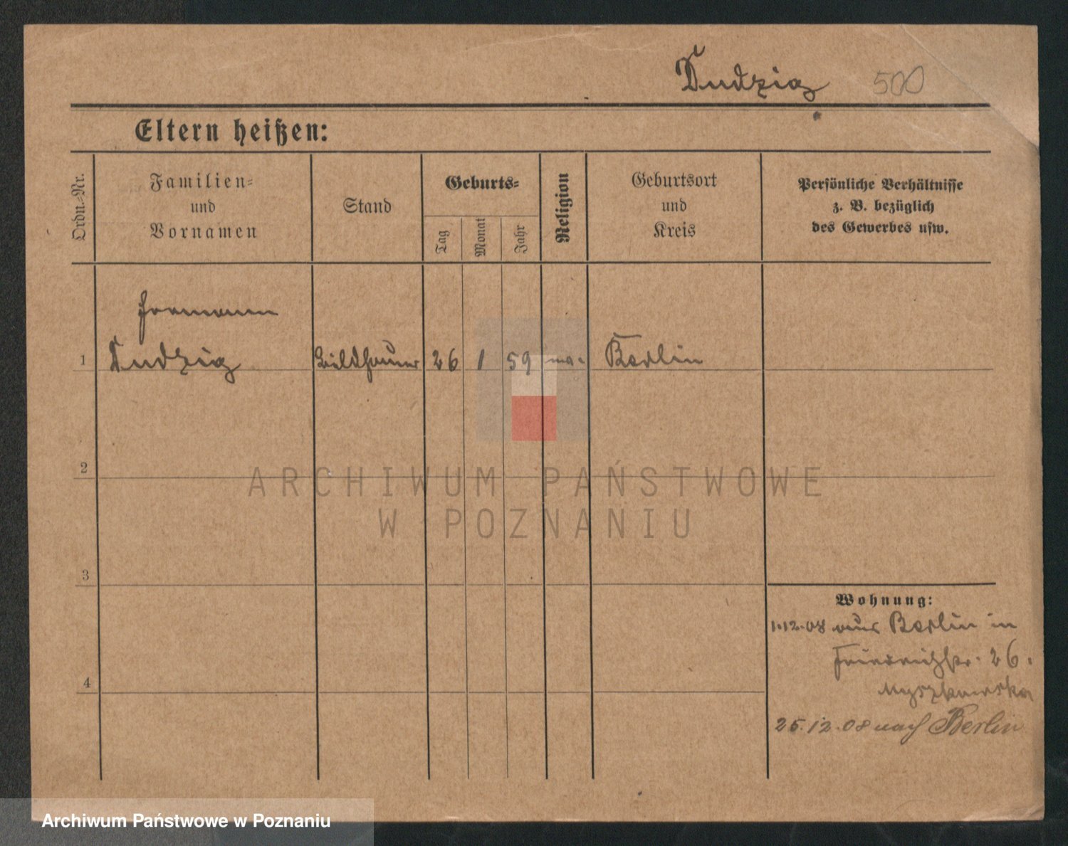 Podgląd karty osobowej dostępny jest po kliknięciu na nazwisko lub ikonkę karty. Można dokonywać powiększenia (ikony na górze) lub przechodzić między kolejnymi skanami (strzałki po bokach).