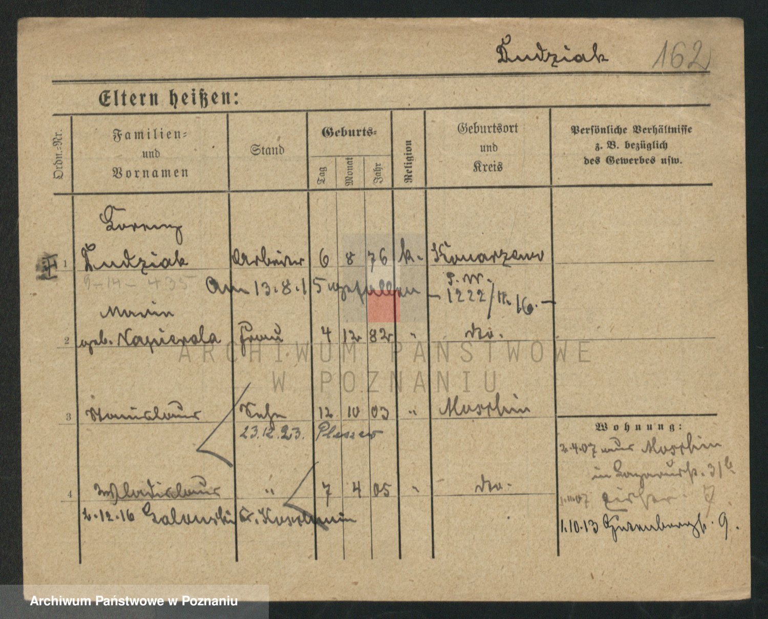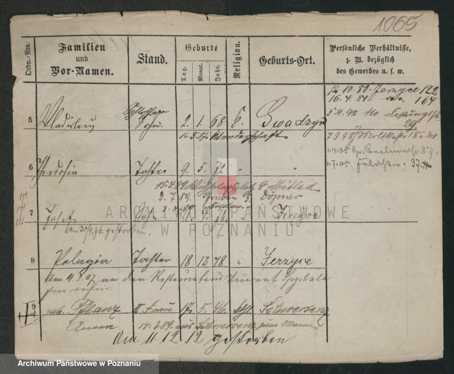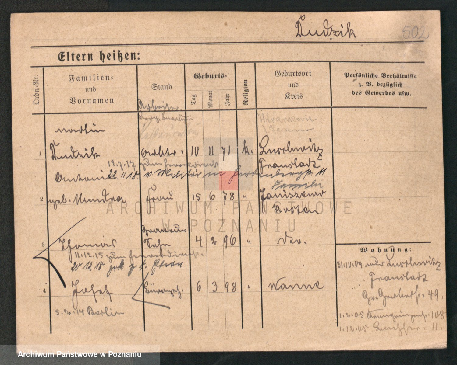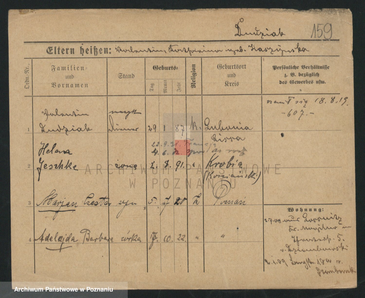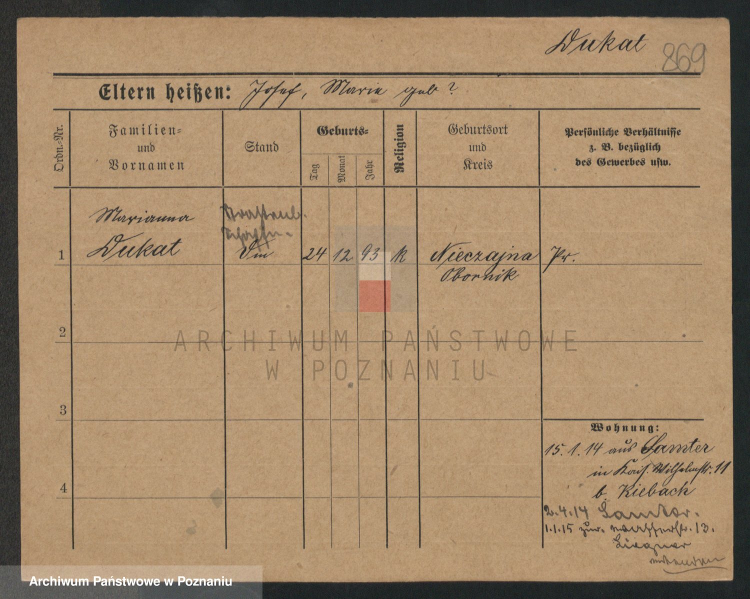 Podgląd karty osobowej dostępny jest po kliknięciu na nazwisko lub ikonkę karty. Można dokonywać powiększenia (ikony na górze) lub przechodzić między kolejnymi skanami (strzałki po bokach).