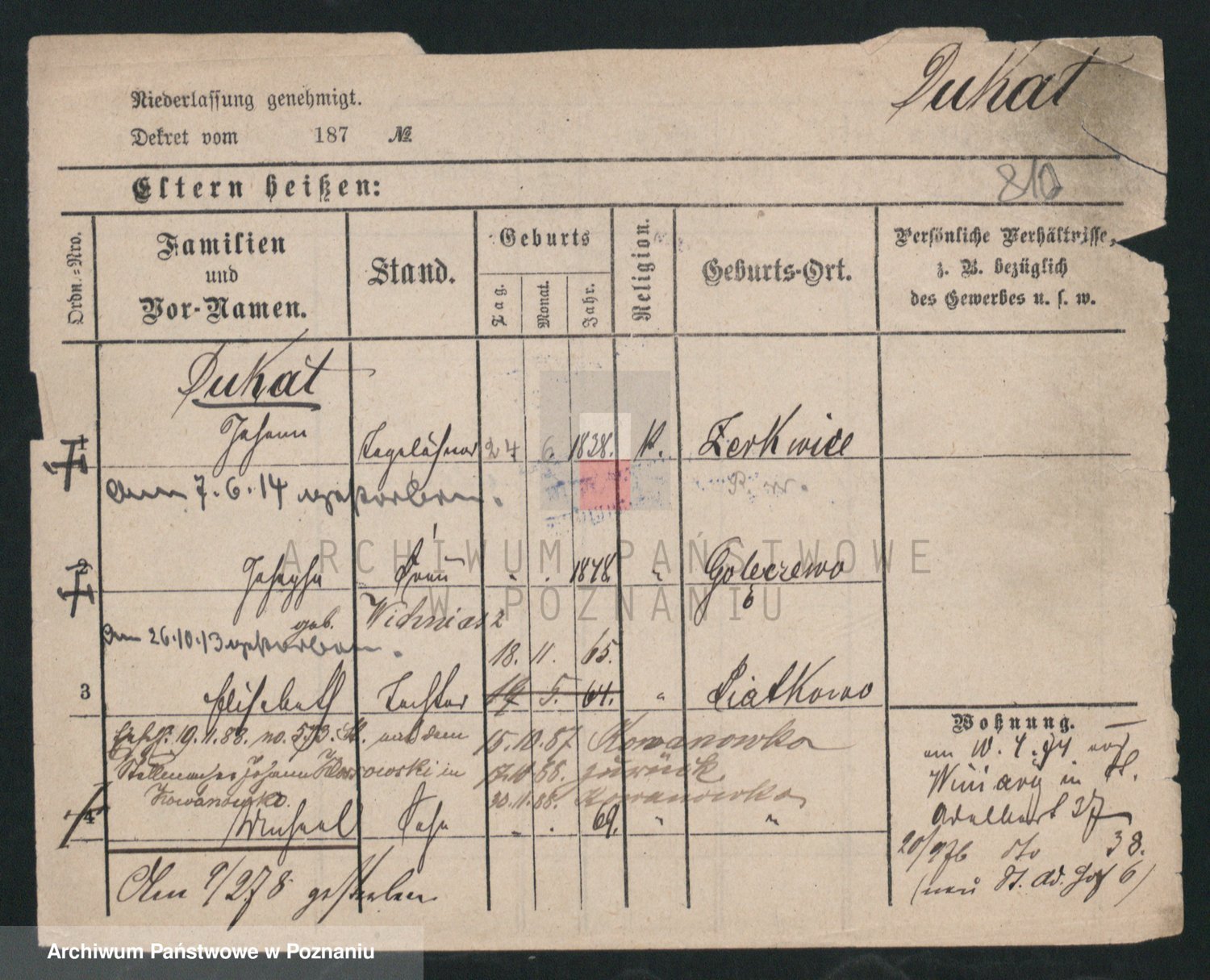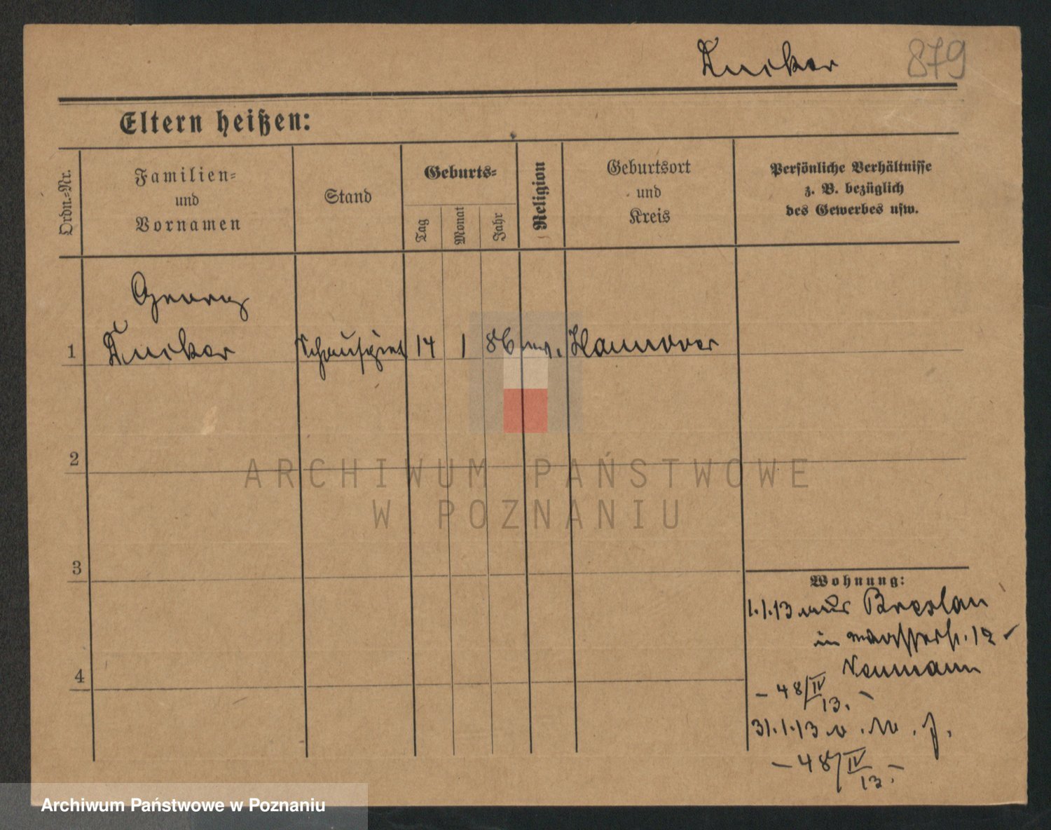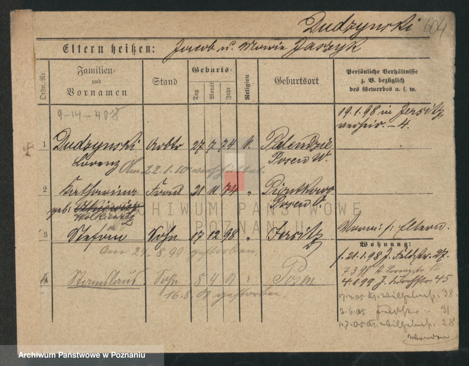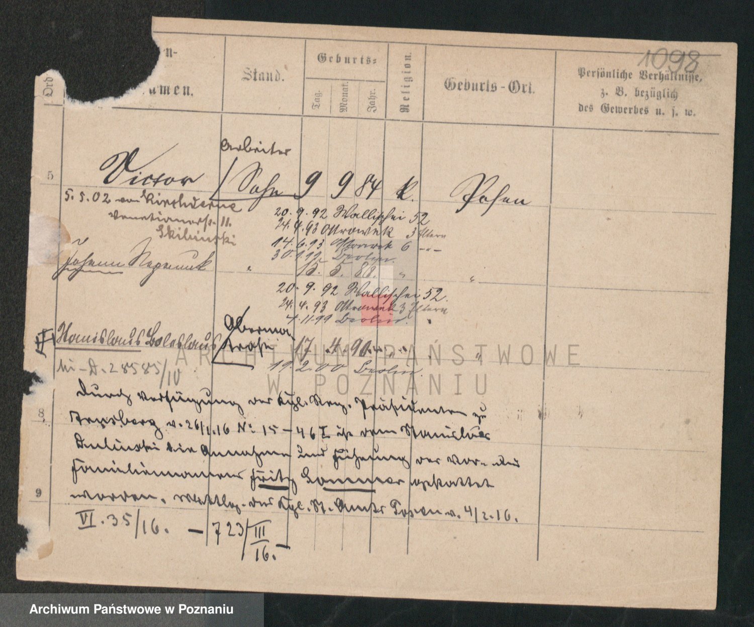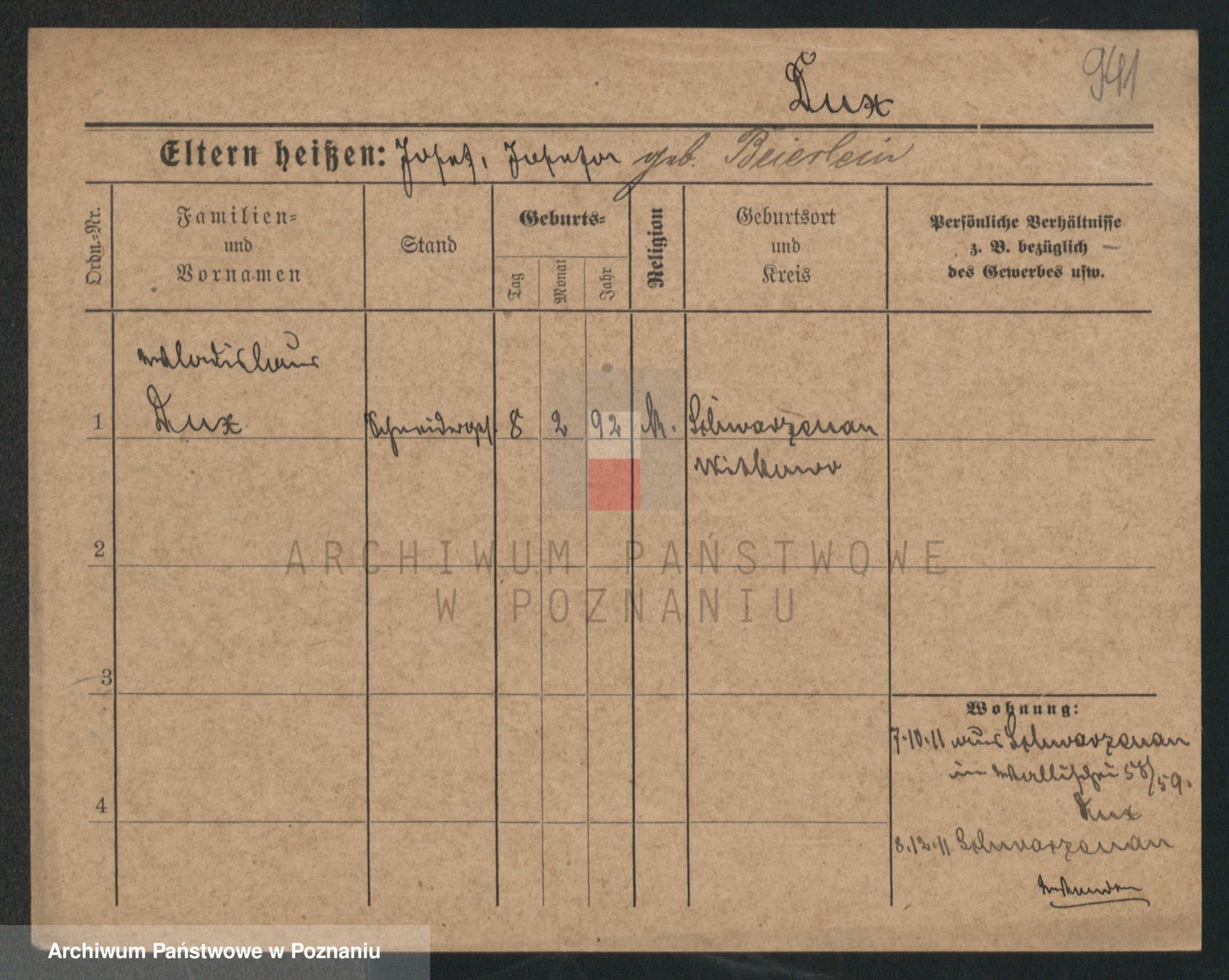 Podgląd karty osobowej dostępny jest po kliknięciu na nazwisko lub ikonkę karty. Można dokonywać powiększenia (ikony na górze) lub przechodzić między kolejnymi skanami (strzałki po bokach).