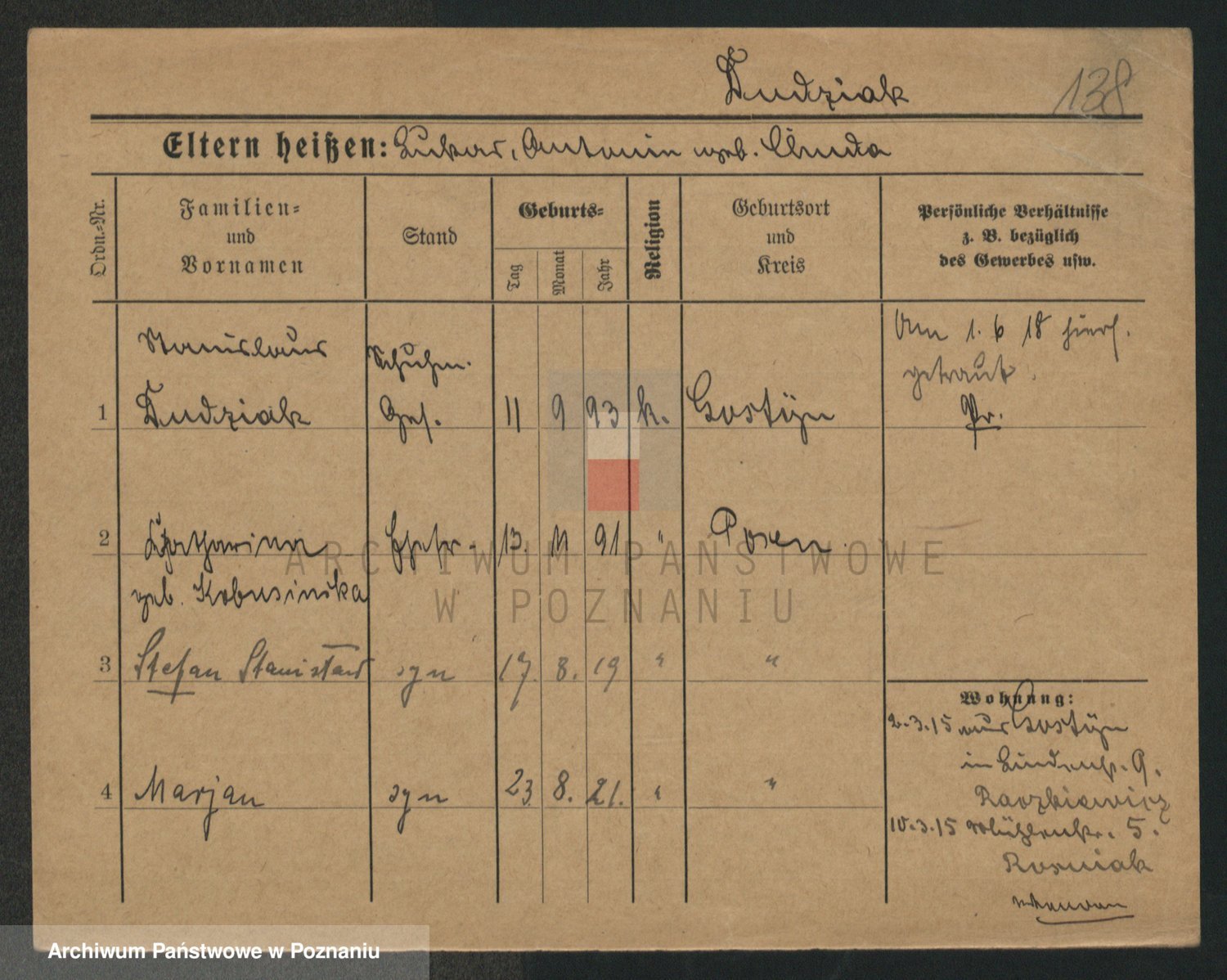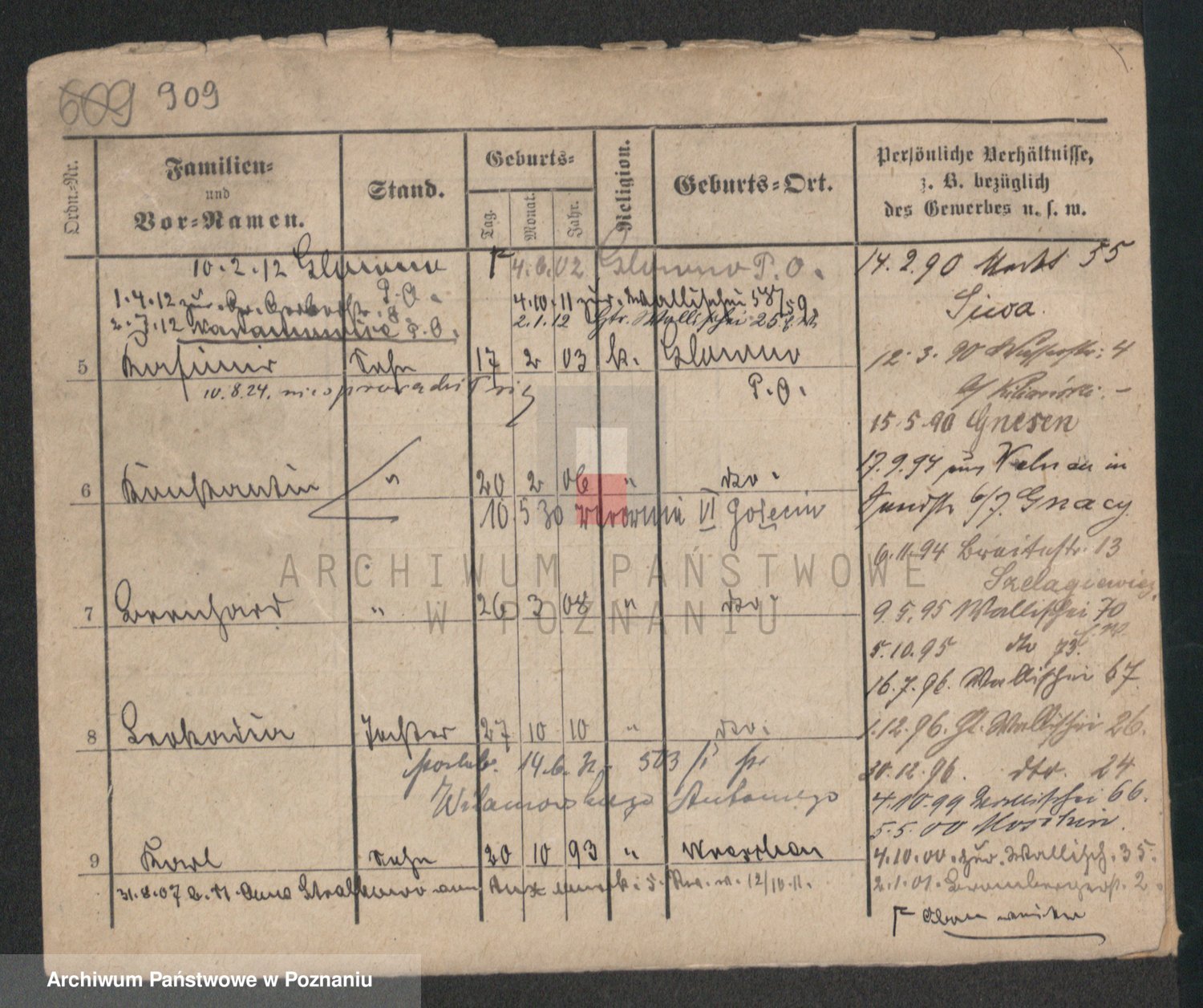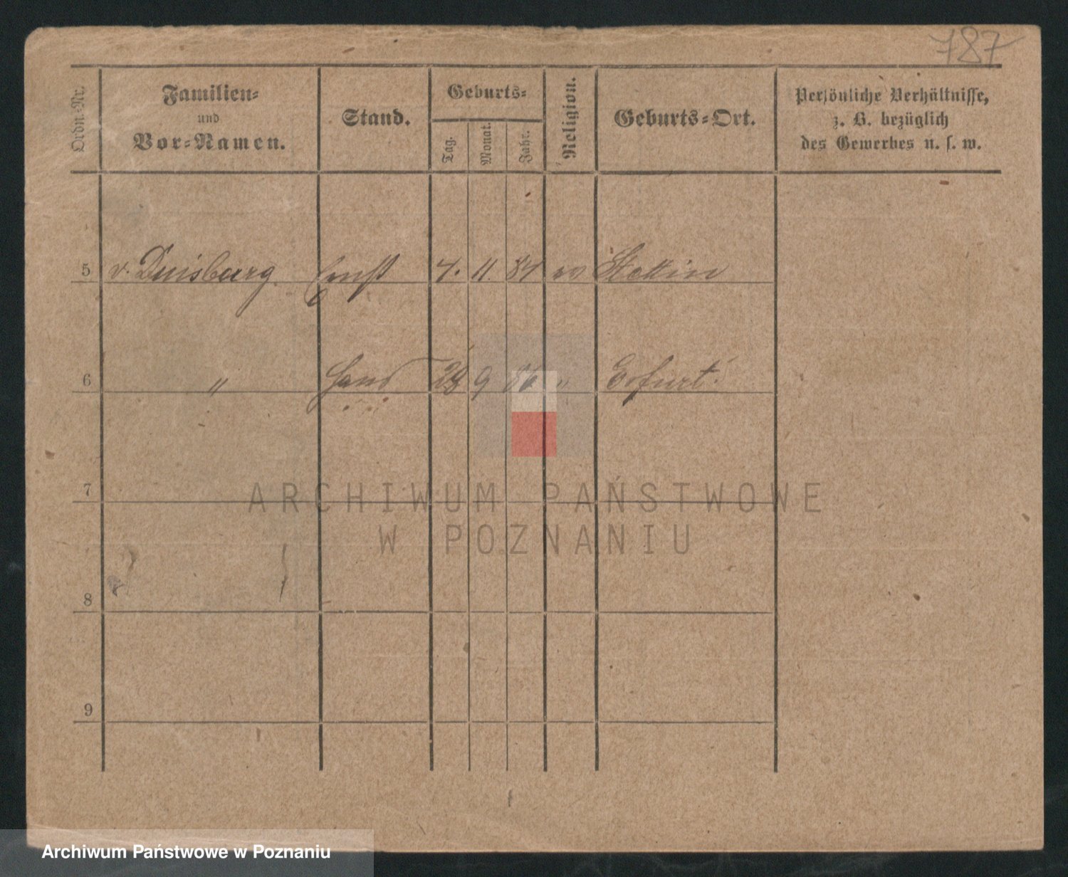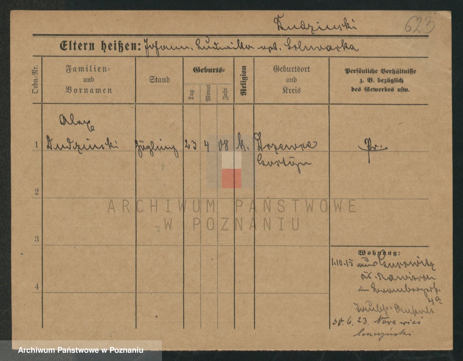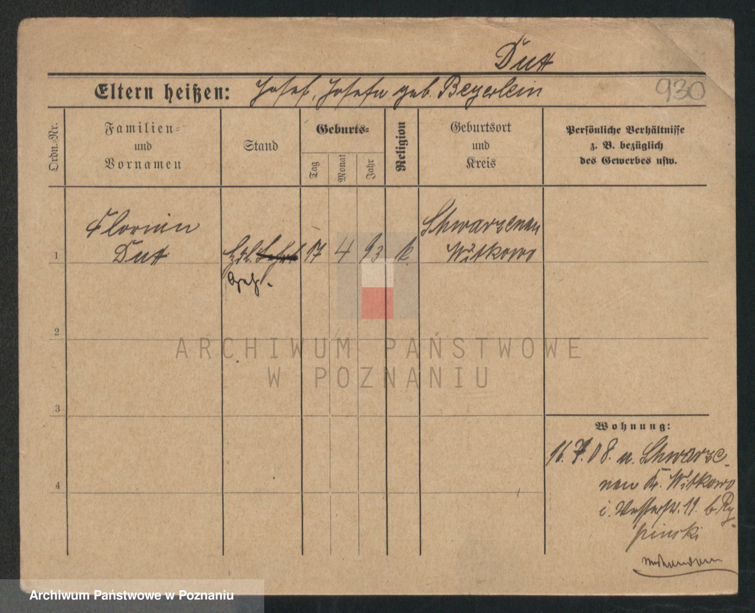 Podgląd karty osobowej dostępny jest po kliknięciu na nazwisko lub ikonkę karty. Można dokonywać powiększenia (ikony na górze) lub przechodzić między kolejnymi skanami (strzałki po bokach).