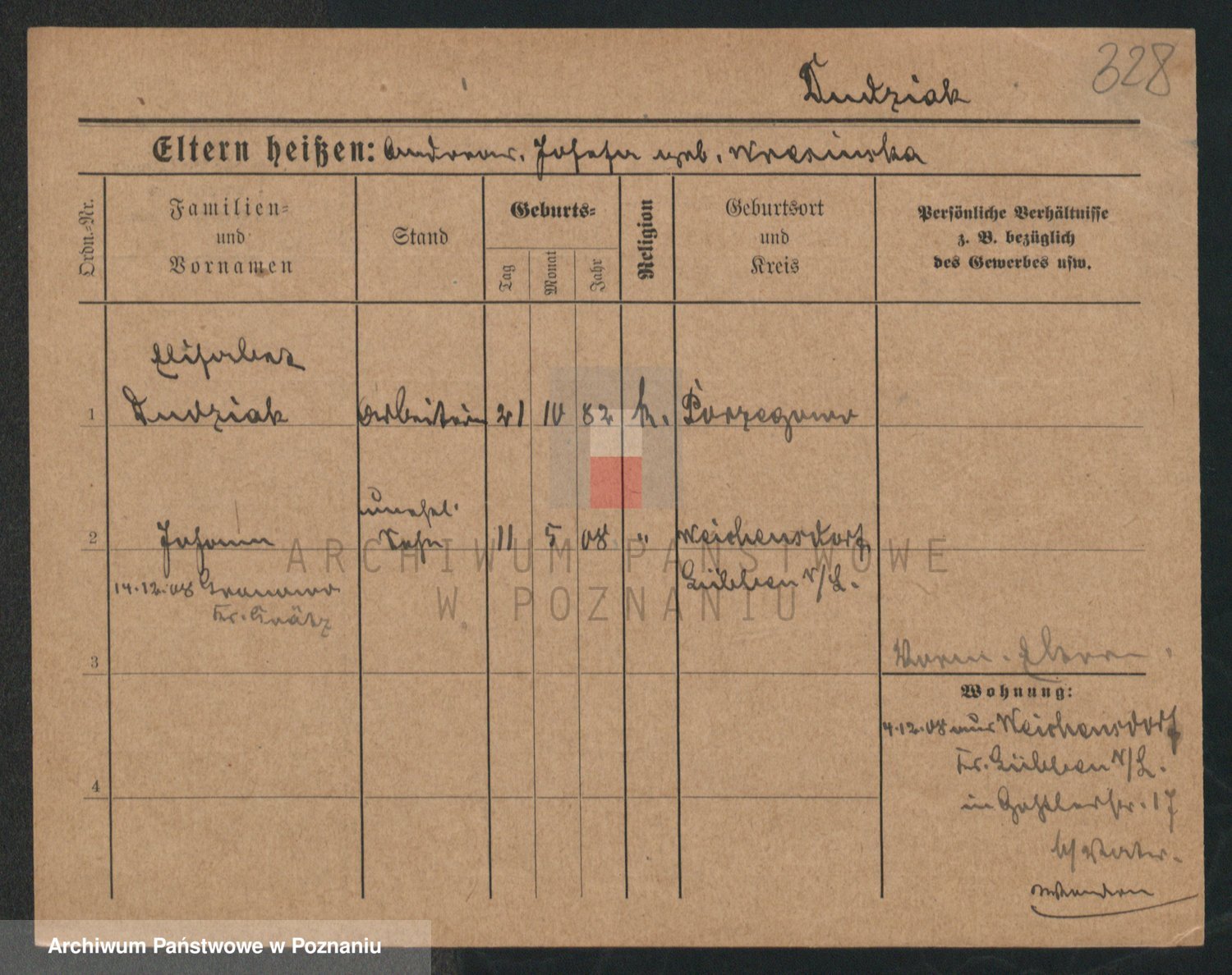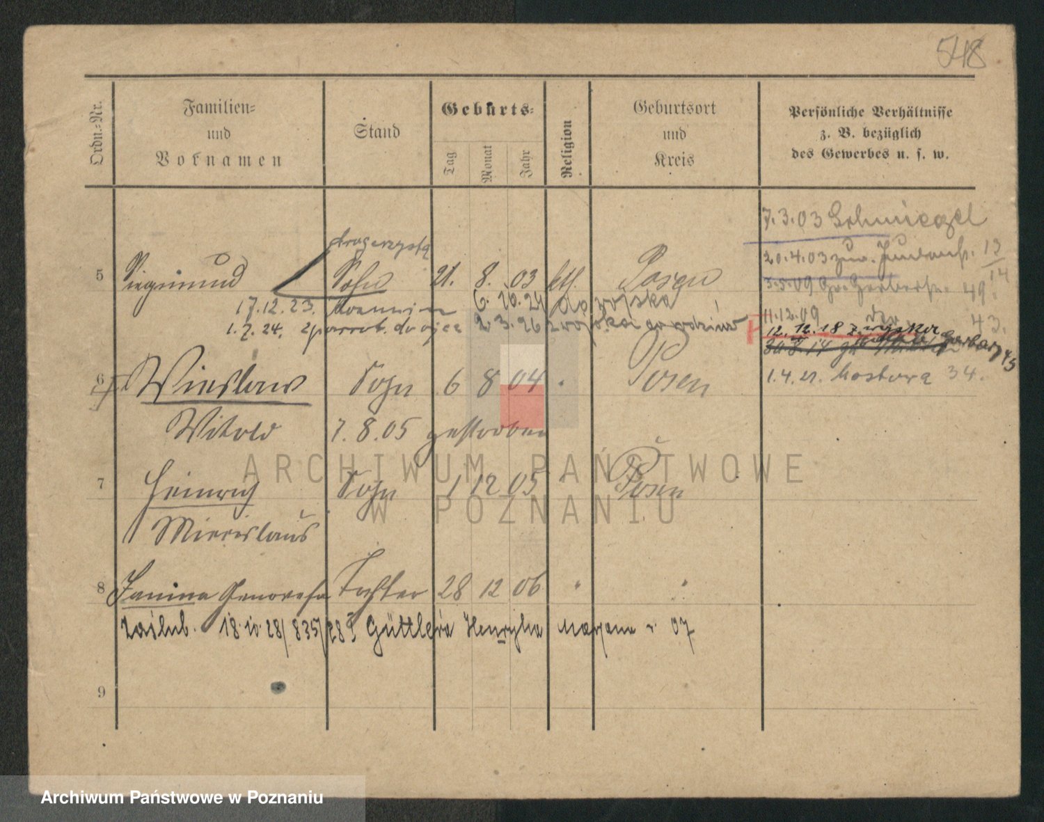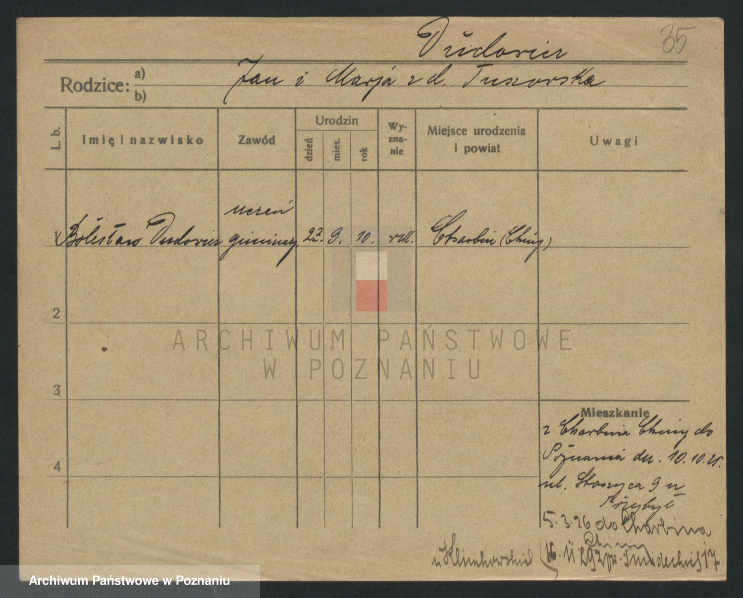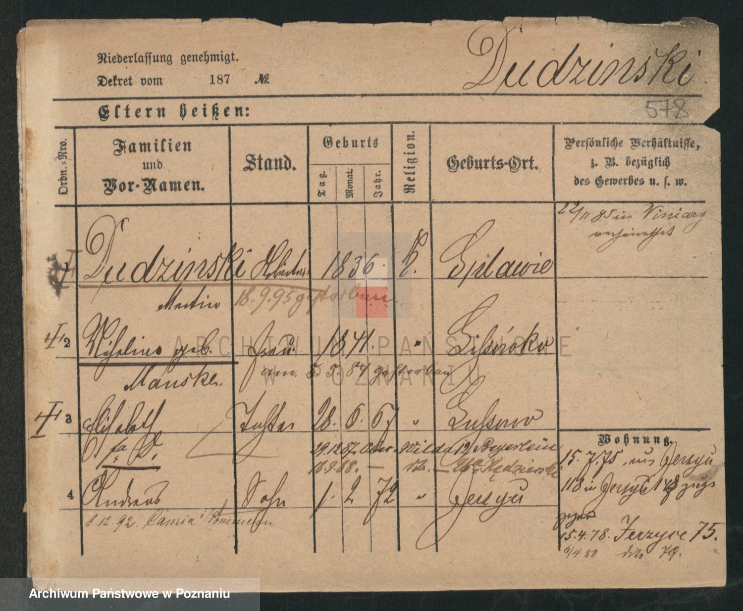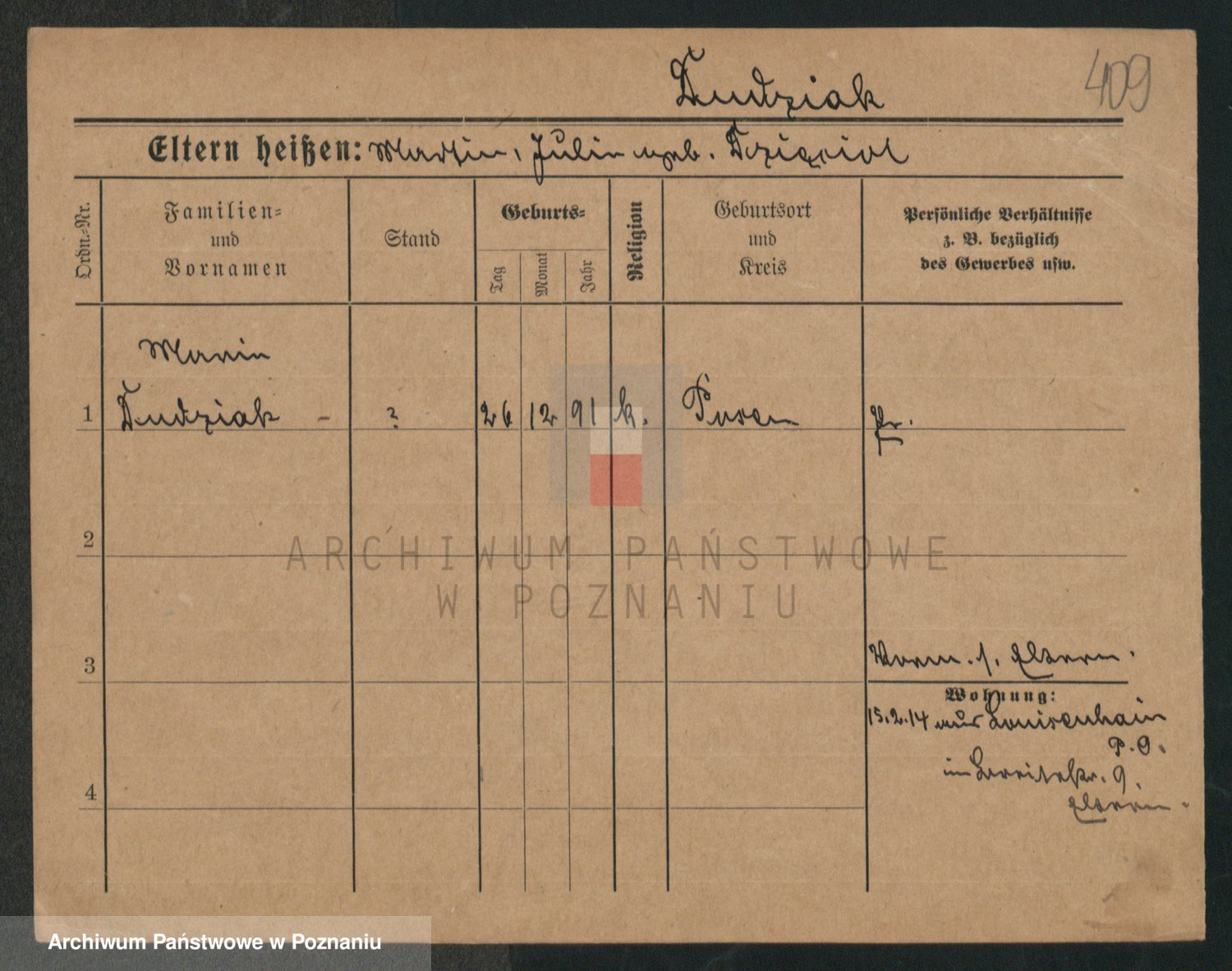 Podgląd karty osobowej dostępny jest po kliknięciu na nazwisko lub ikonkę karty. Można dokonywać powiększenia (ikony na górze) lub przechodzić między kolejnymi skanami (strzałki po bokach).