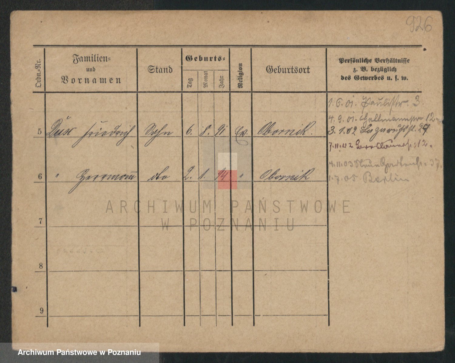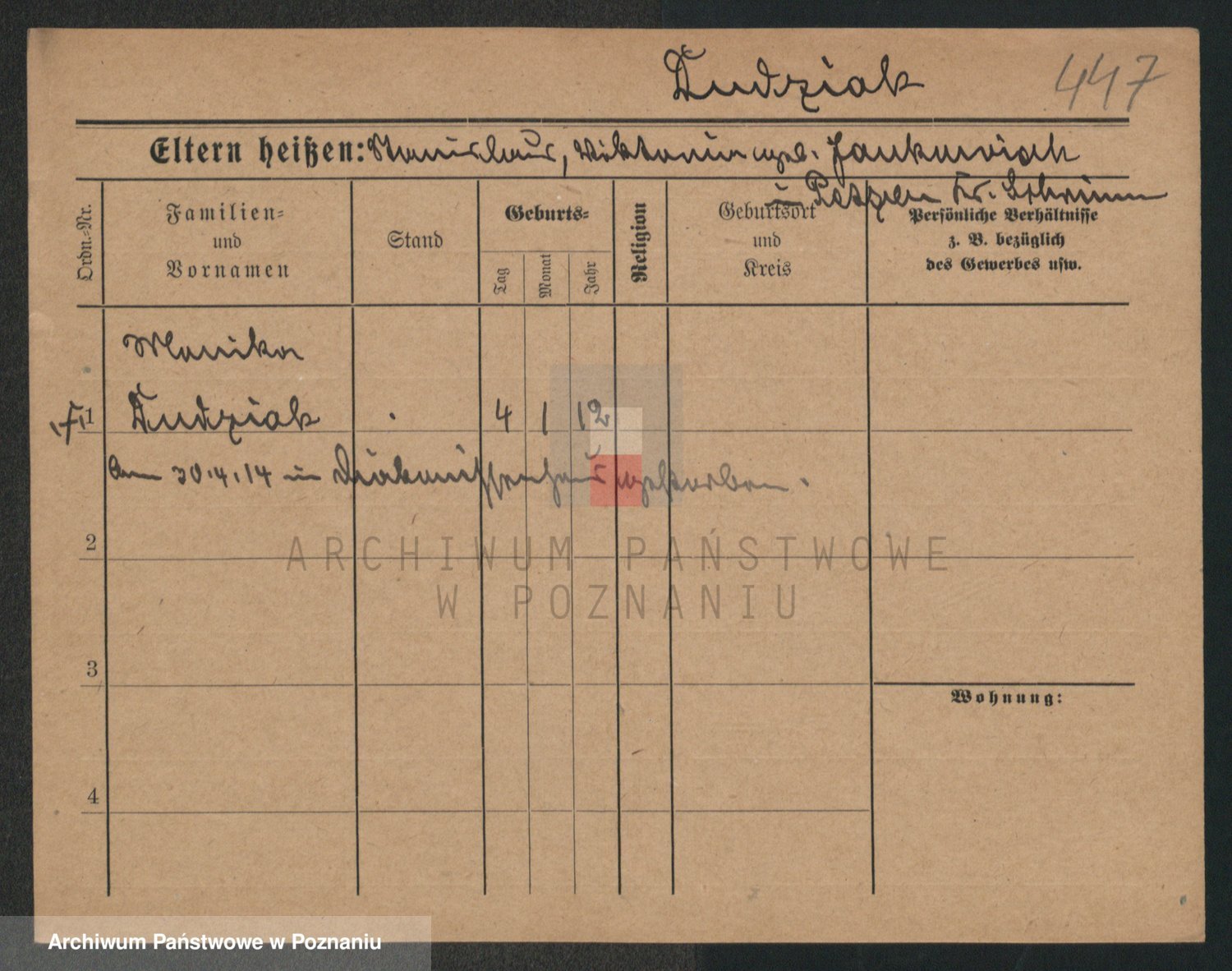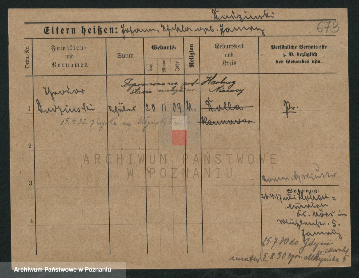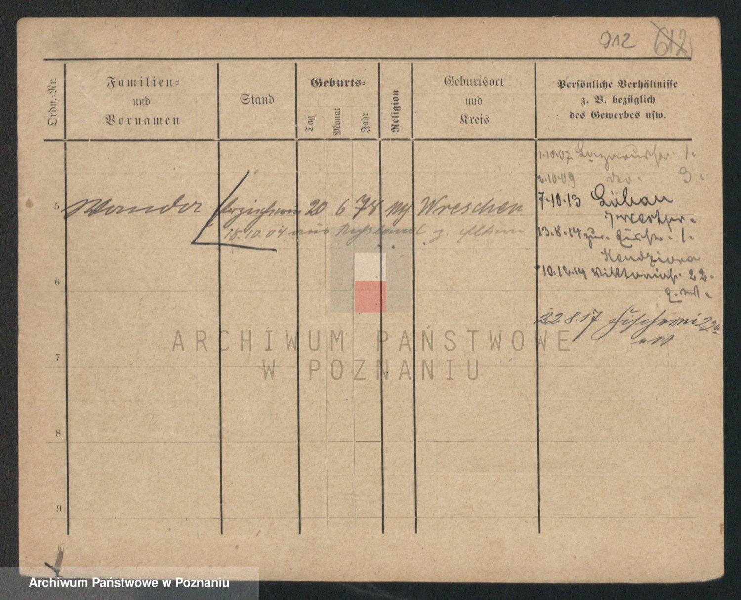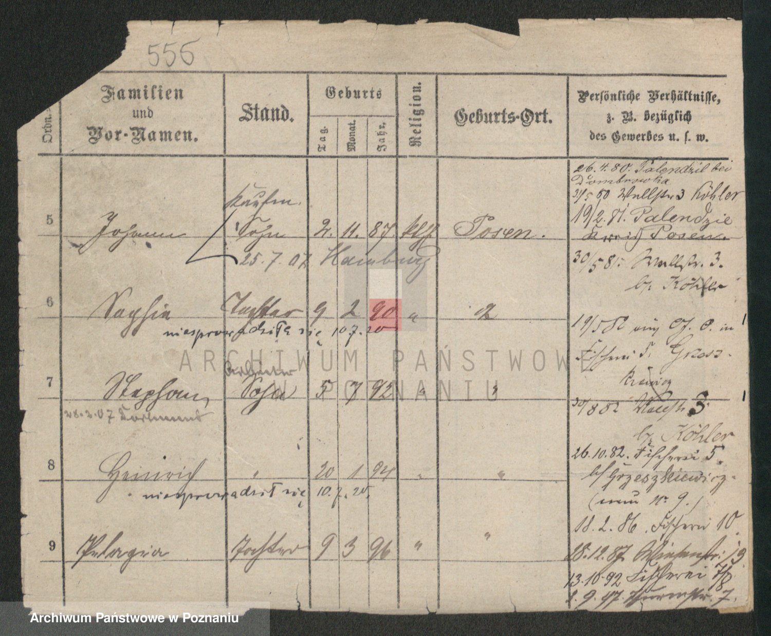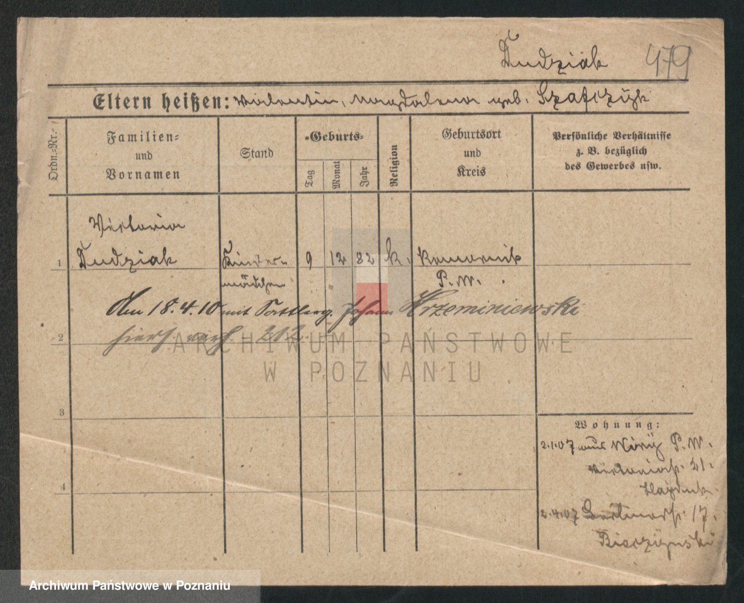 Podgląd karty osobowej dostępny jest po kliknięciu na nazwisko lub ikonkę karty. Można dokonywać powiększenia (ikony na górze) lub przechodzić między kolejnymi skanami (strzałki po bokach).
