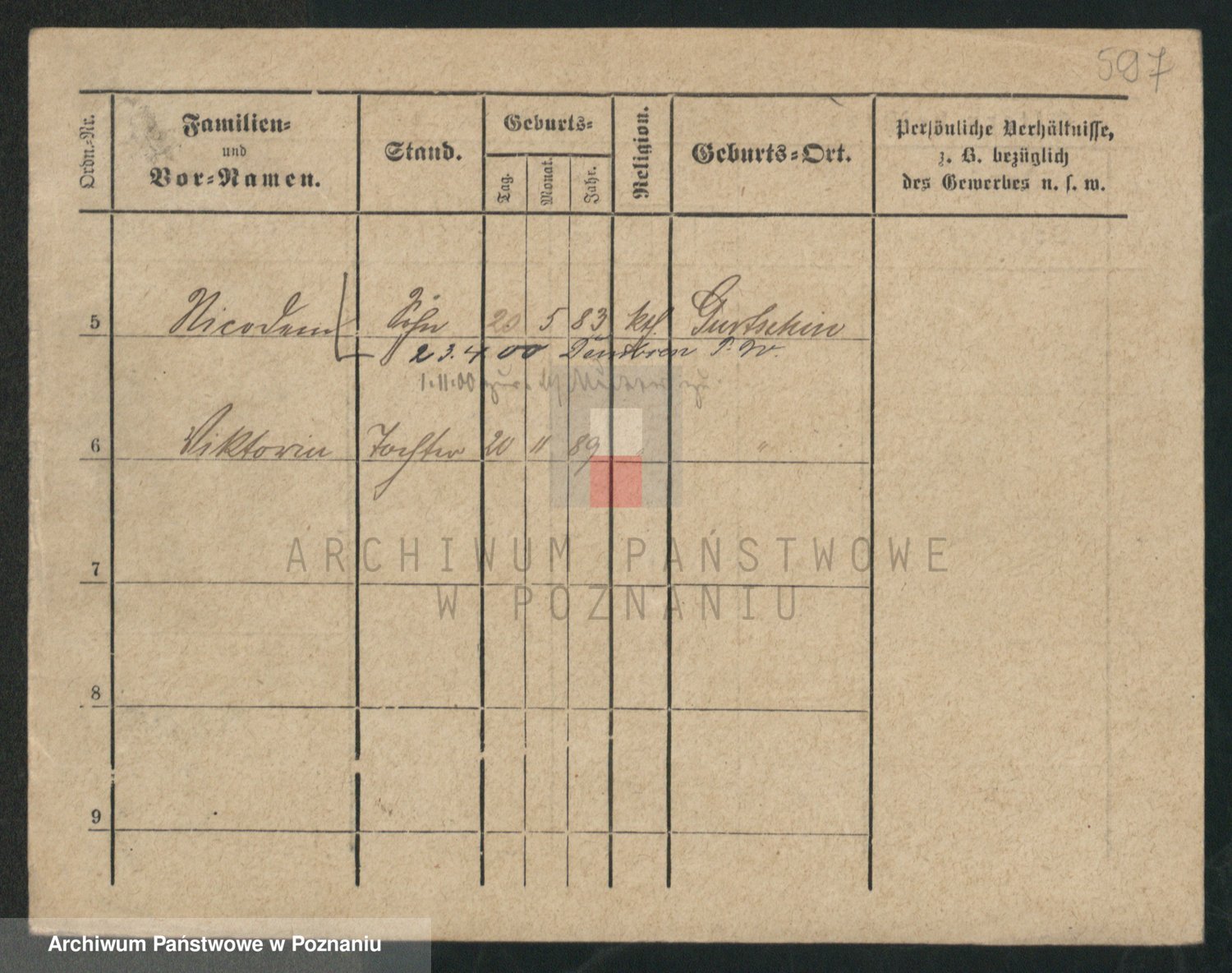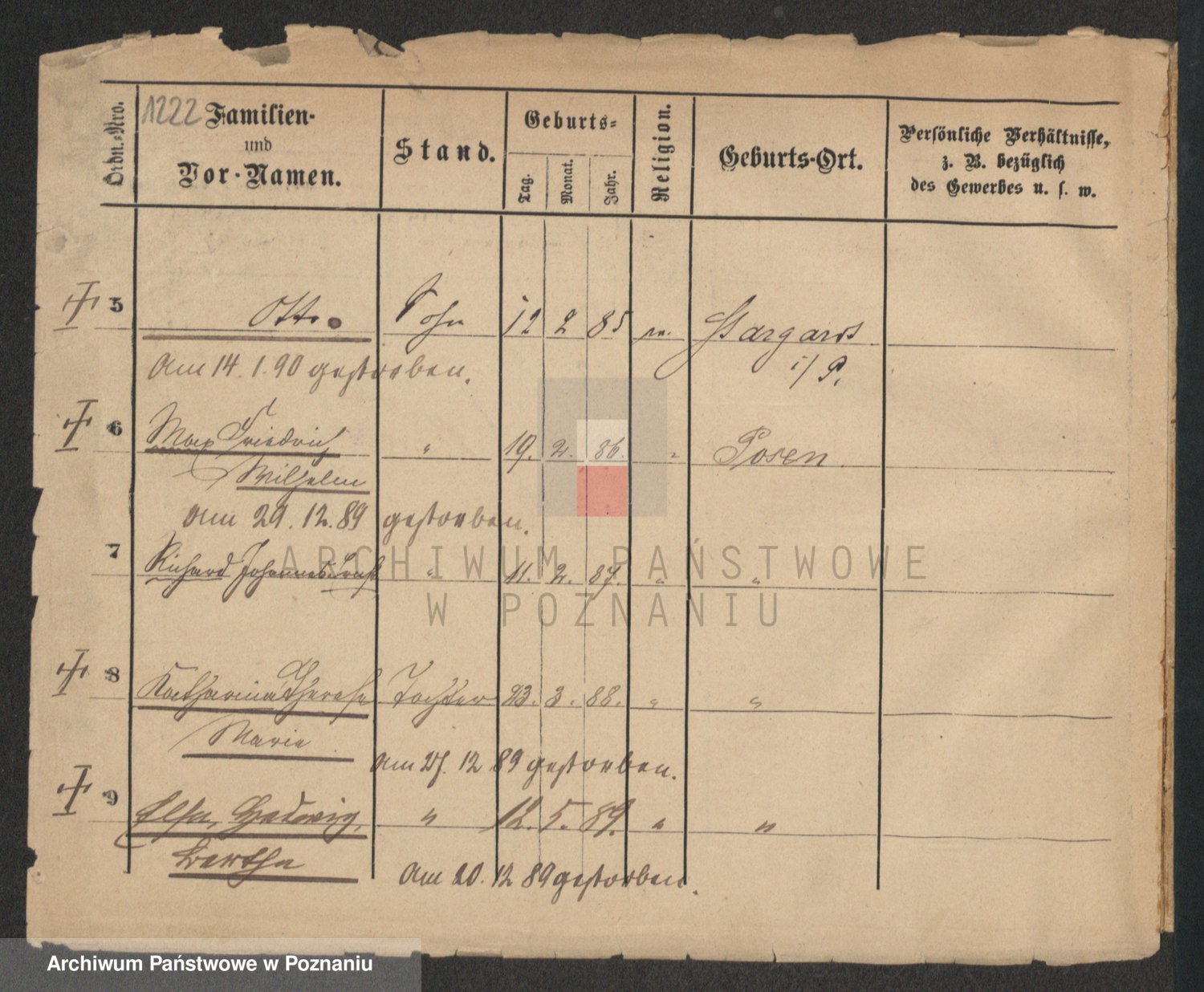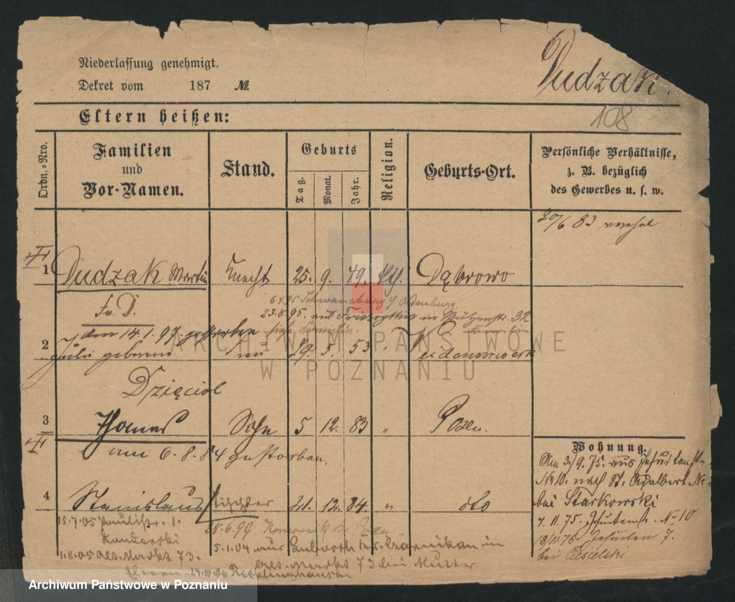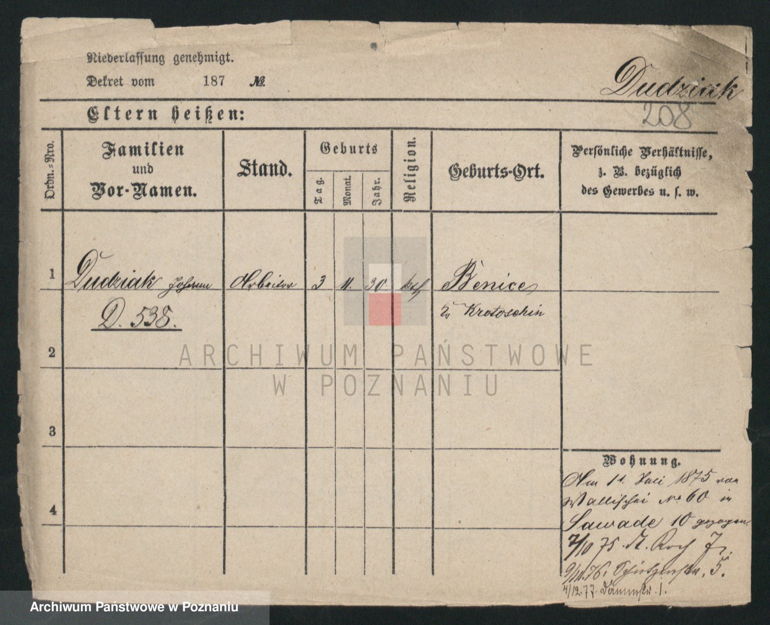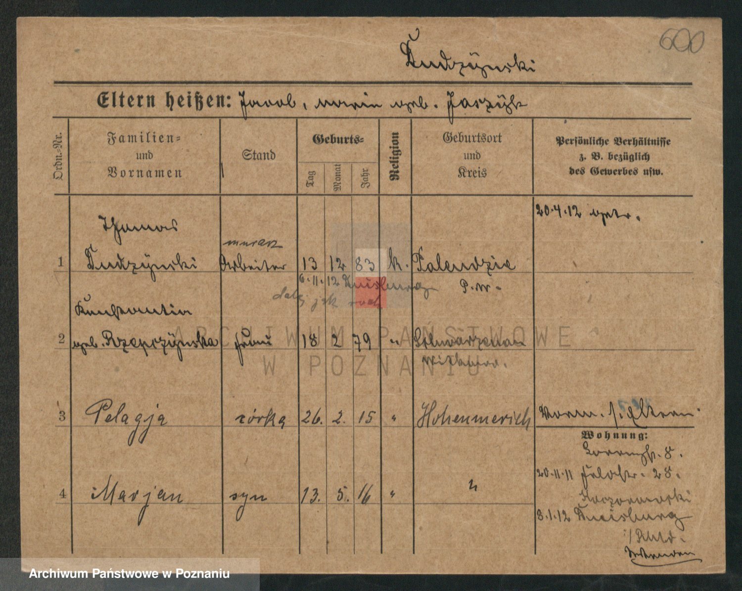 Podgląd karty osobowej dostępny jest po kliknięciu na nazwisko lub ikonkę karty. Można dokonywać powiększenia (ikony na górze) lub przechodzić między kolejnymi skanami (strzałki po bokach).
