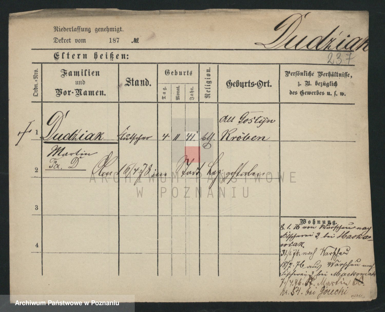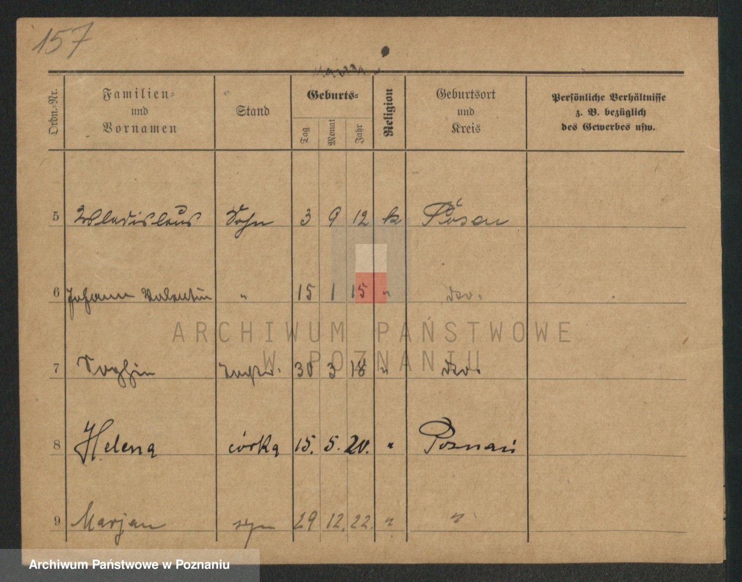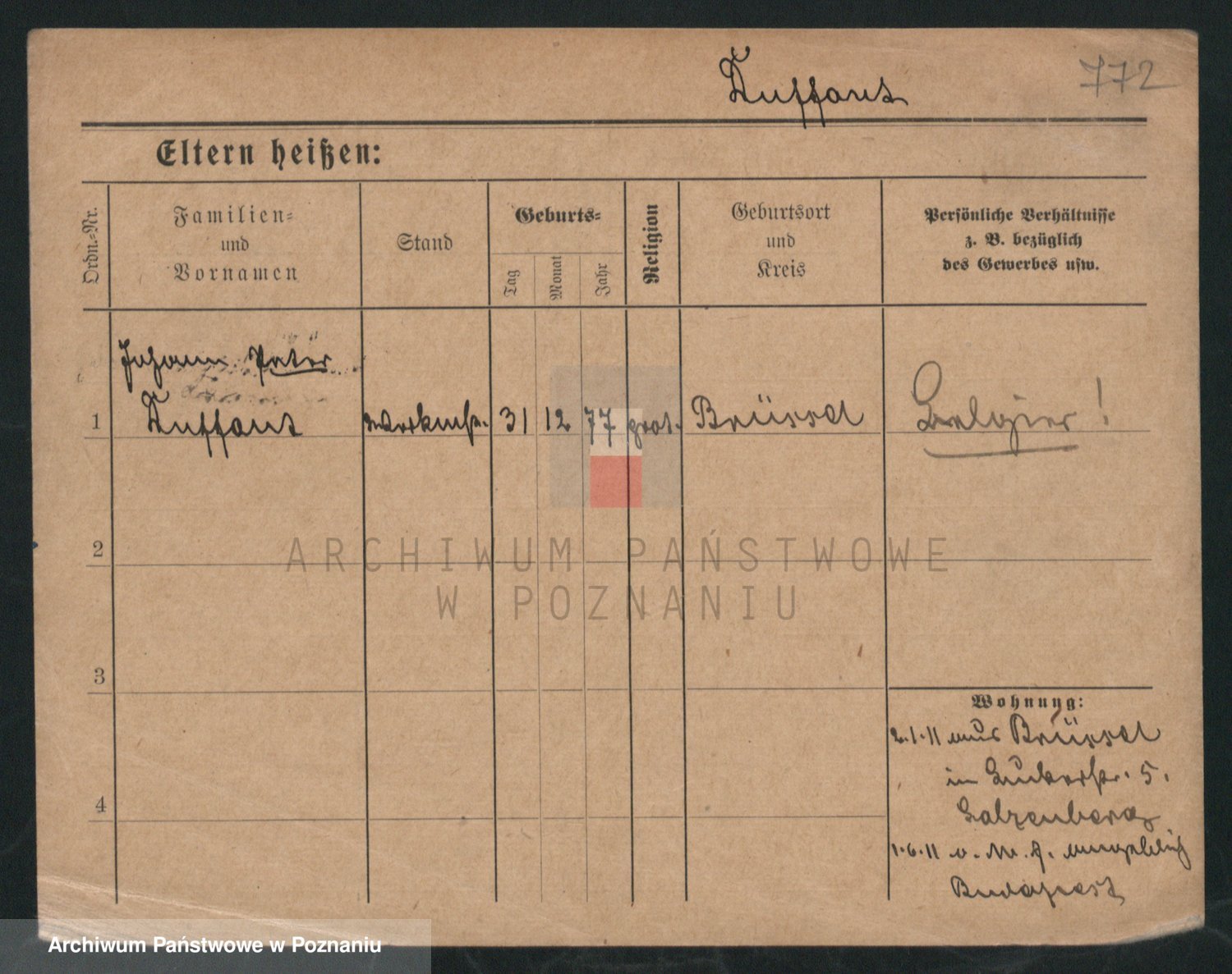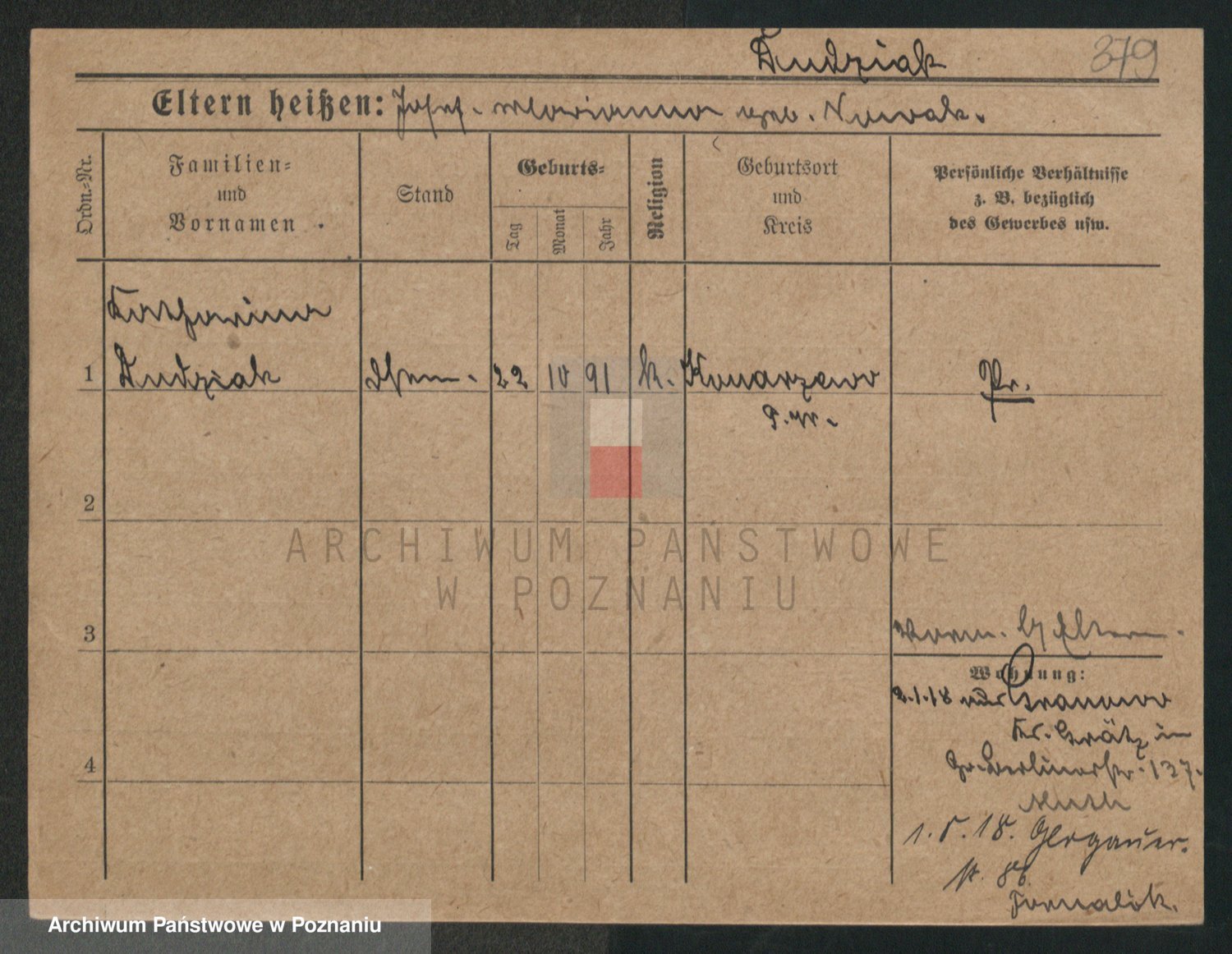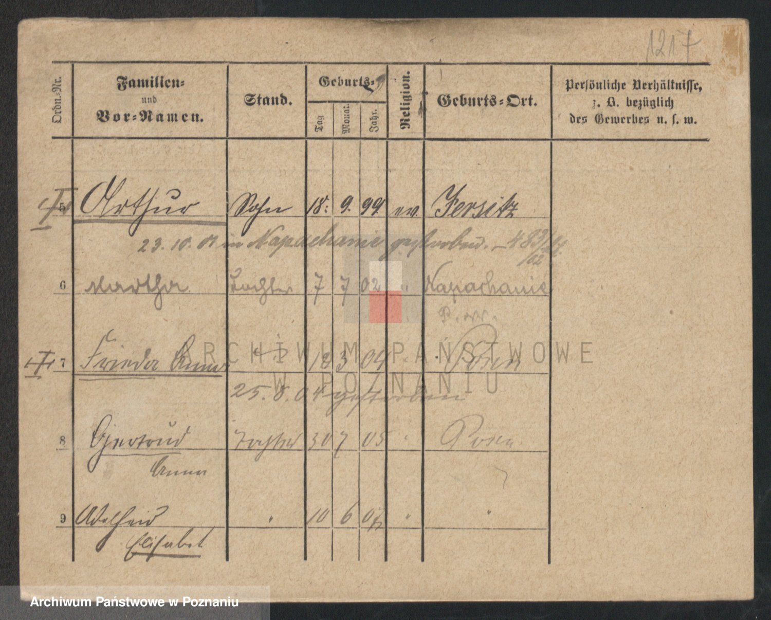 Podgląd karty osobowej dostępny jest po kliknięciu na nazwisko lub ikonkę karty. Można dokonywać powiększenia (ikony na górze) lub przechodzić między kolejnymi skanami (strzałki po bokach).