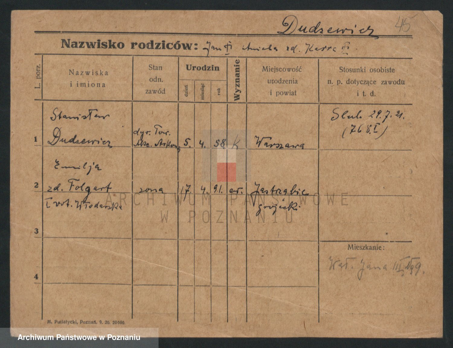 Dudrewicz zd. Folgart p. v. Włodarska, Emilja