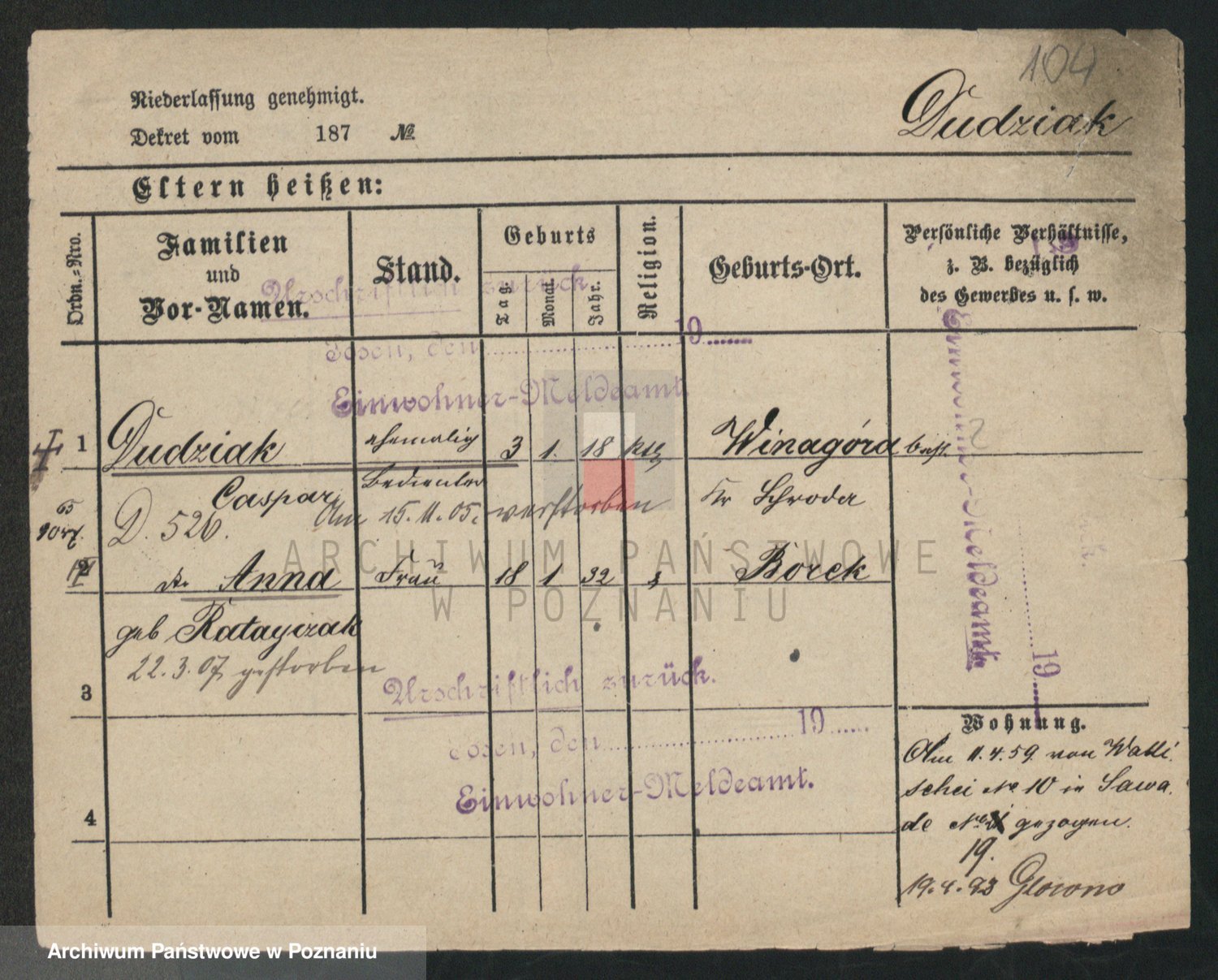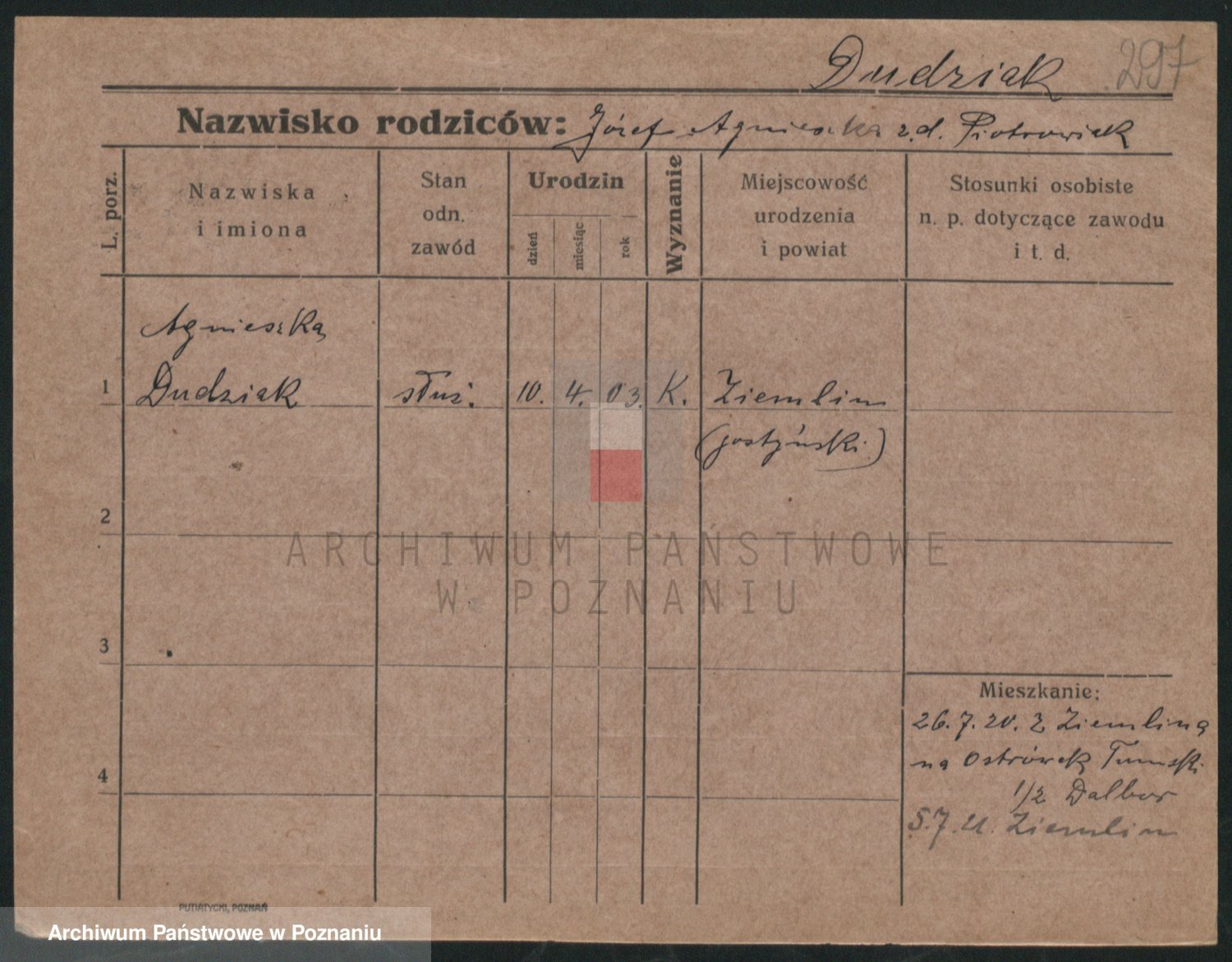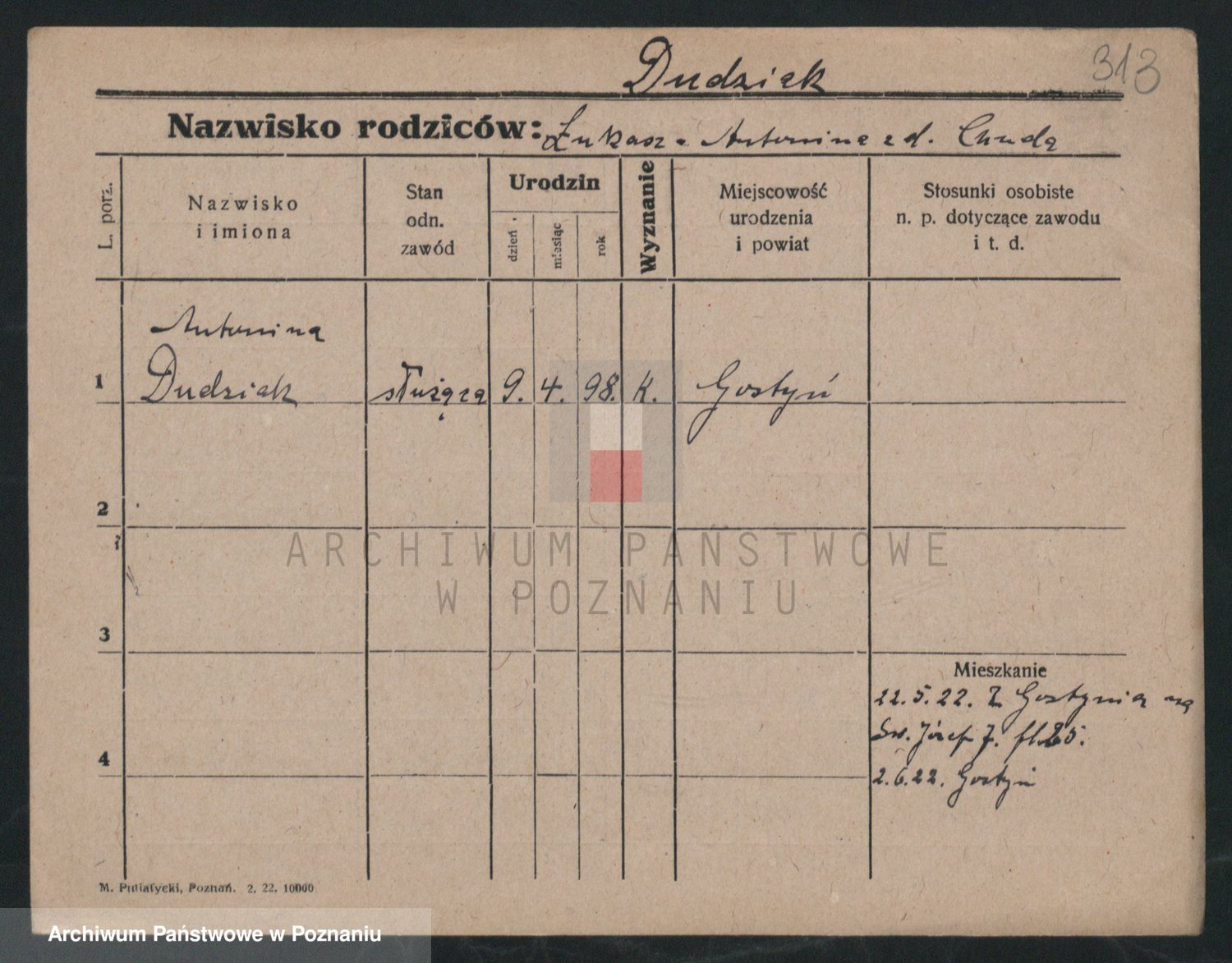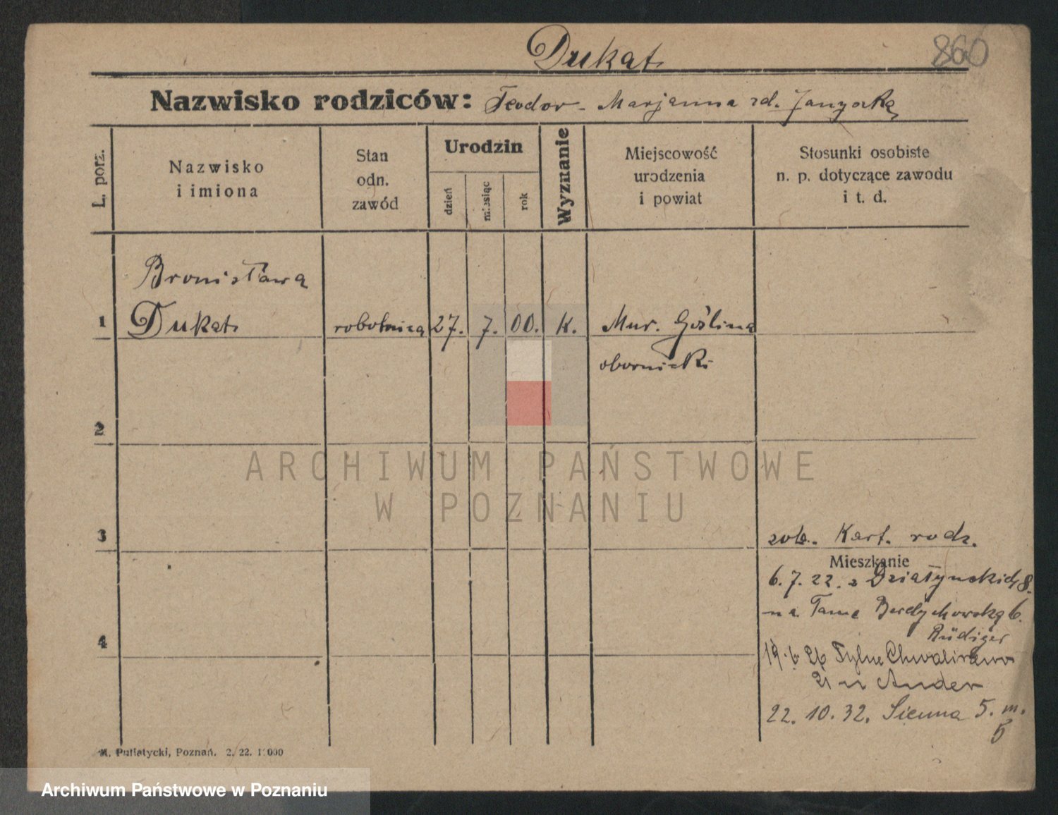 Dudel zd. Stöhcel, Bronislawa