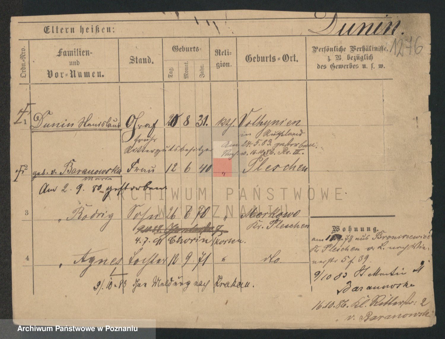 Dunin zd. Baranowska v., Maria