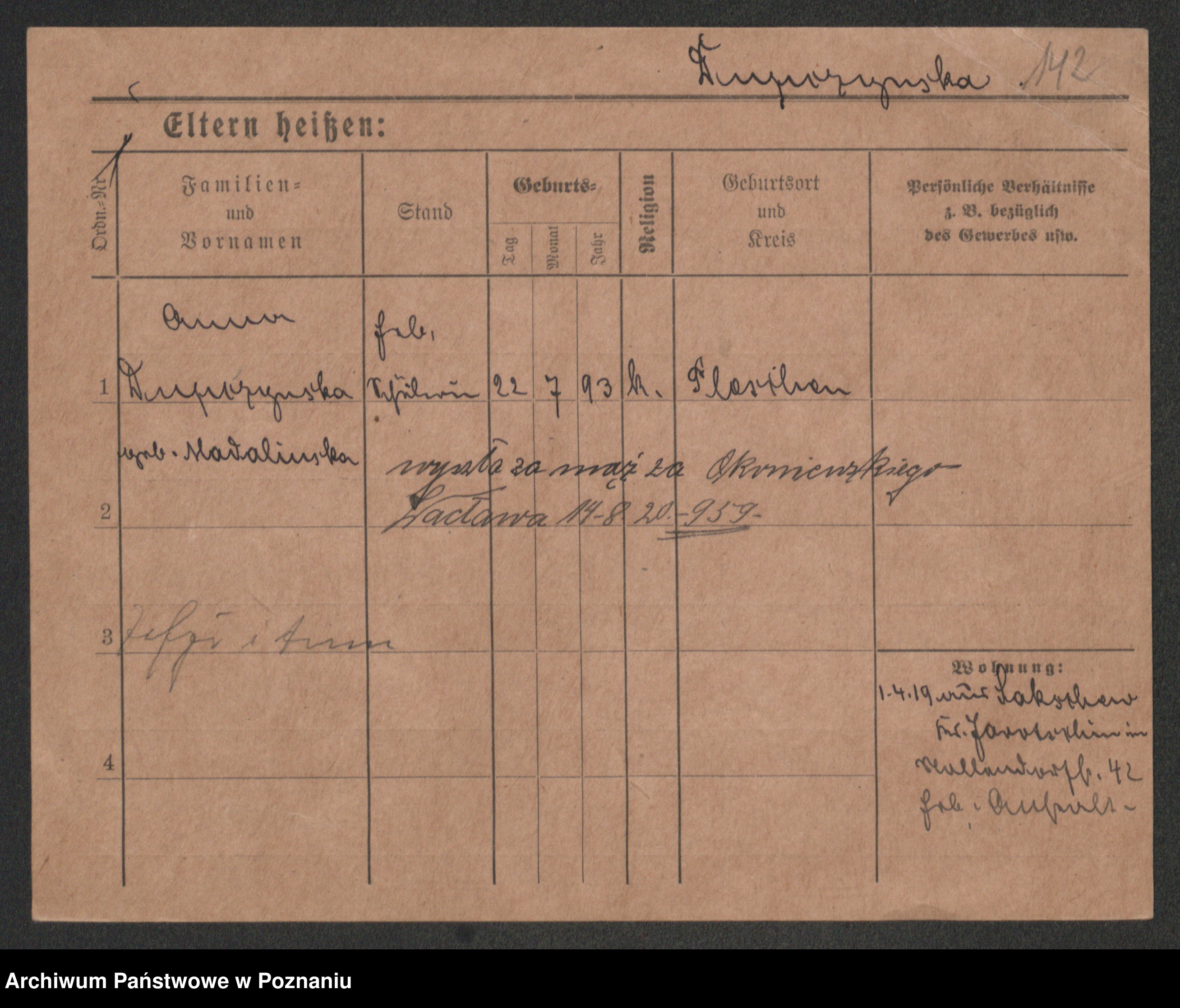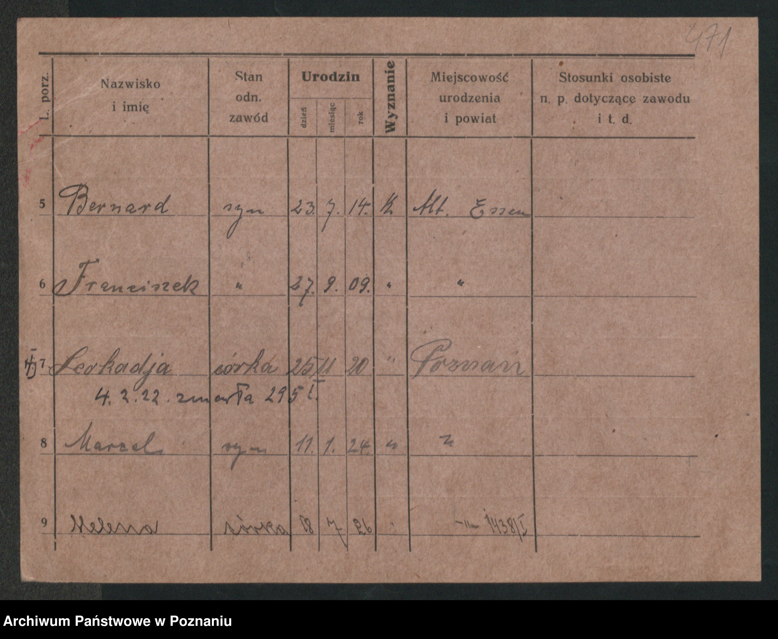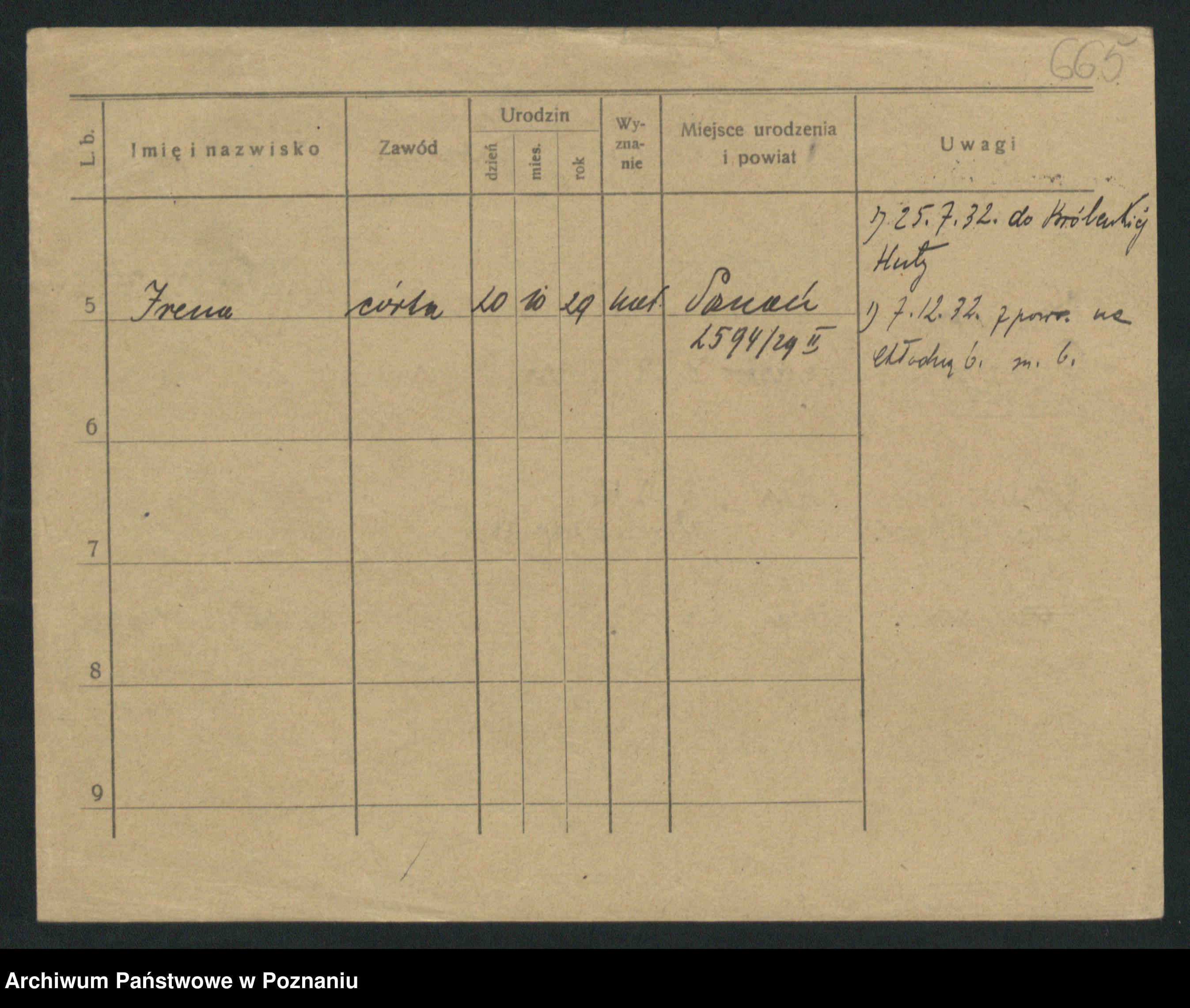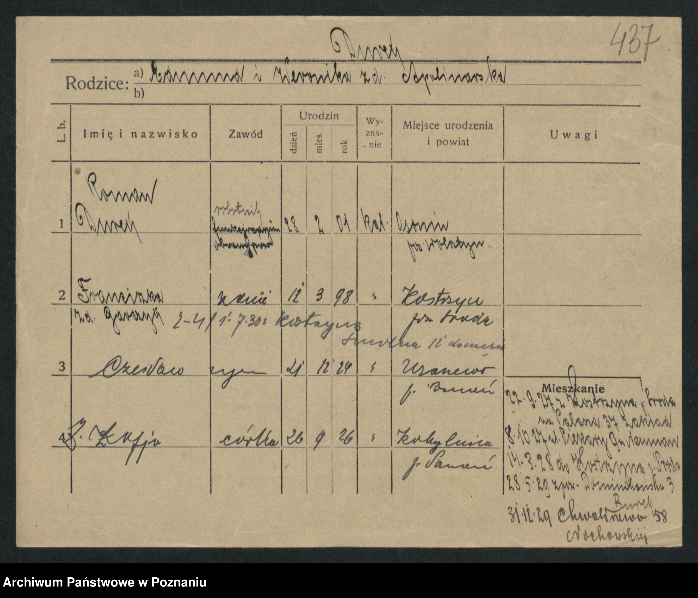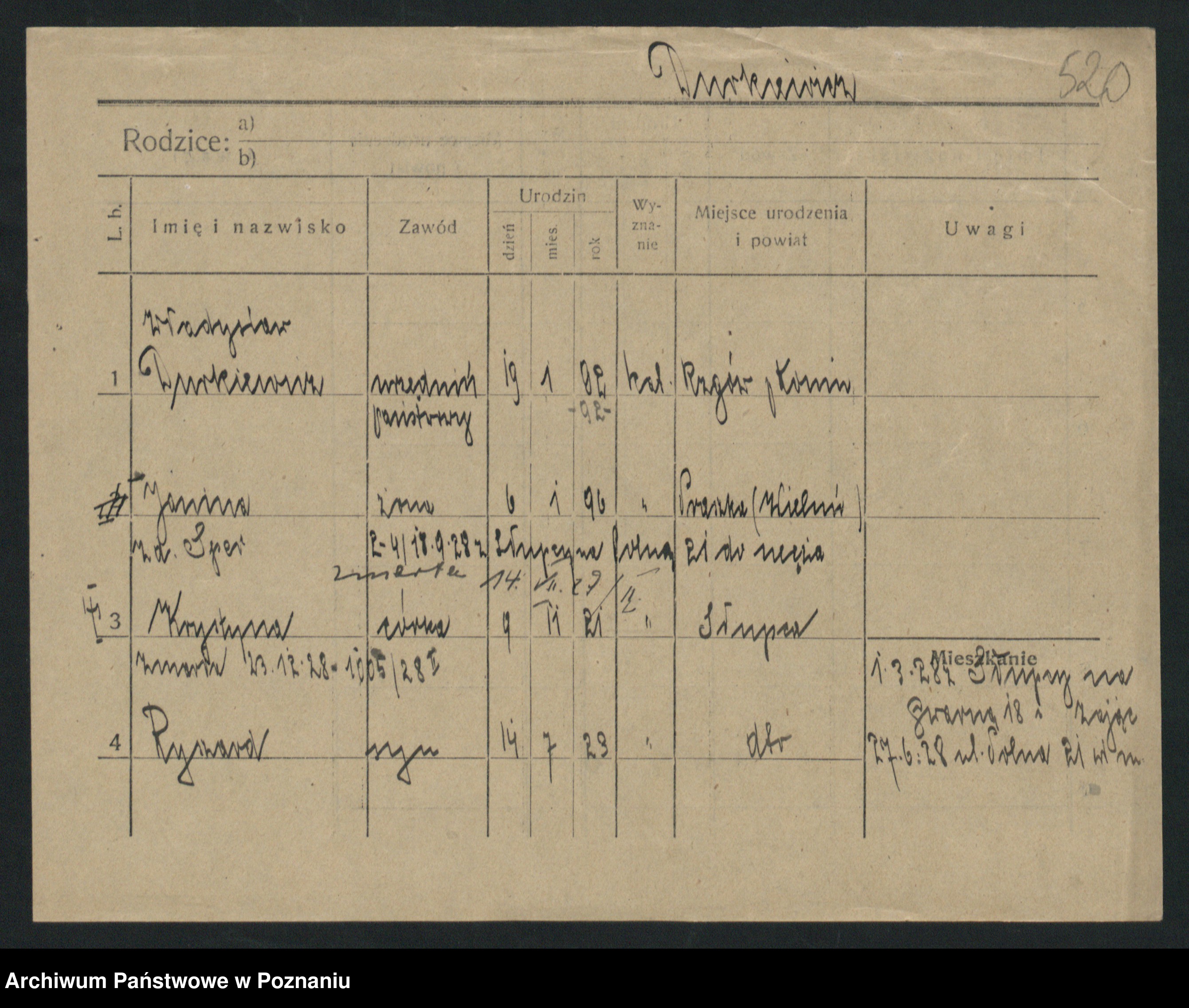 Podgląd karty osobowej dostępny jest po kliknięciu na nazwisko lub ikonkę karty. Można dokonywać powiększenia (ikony na górze) lub przechodzić między kolejnymi skanami (strzałki po bokach).