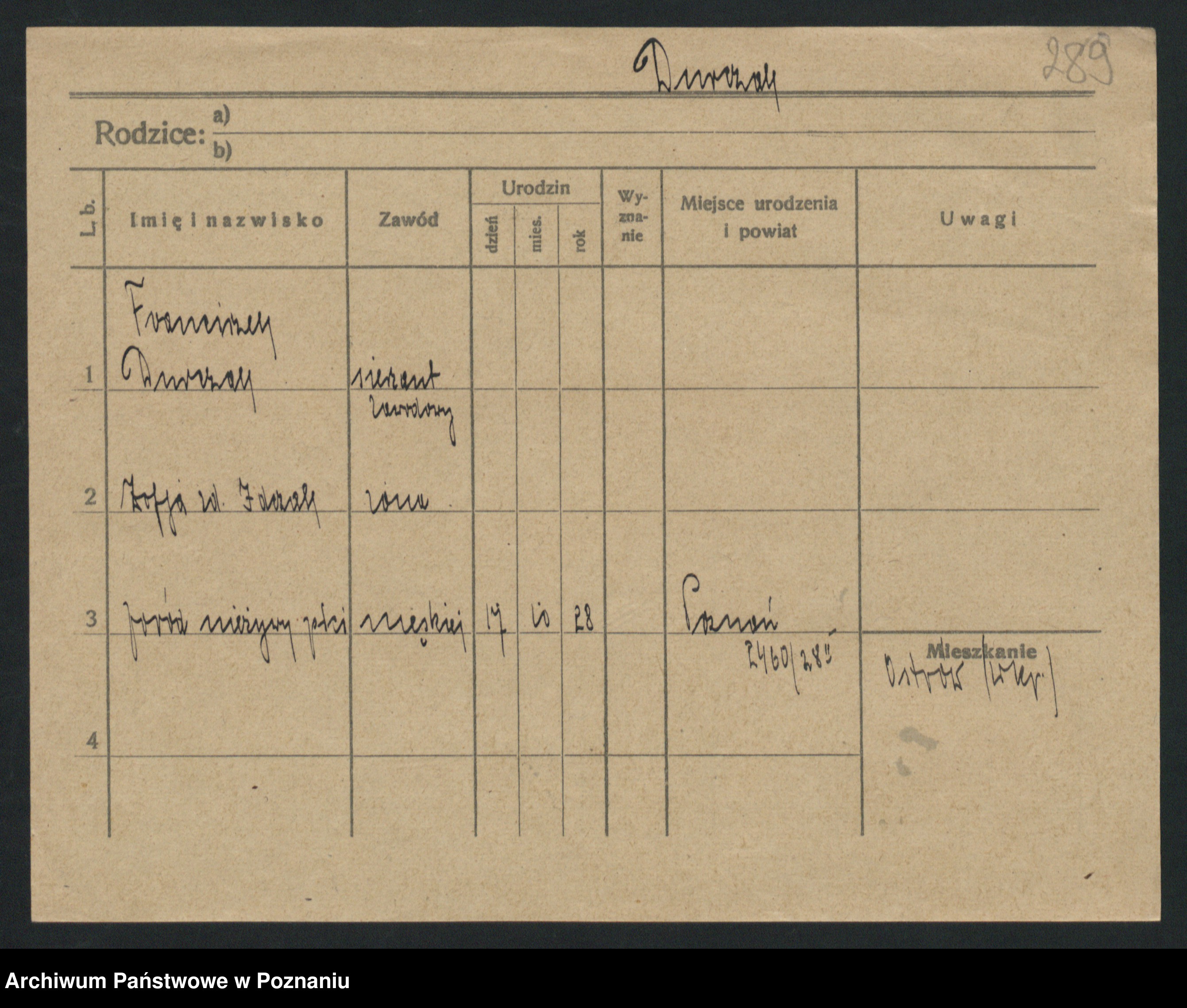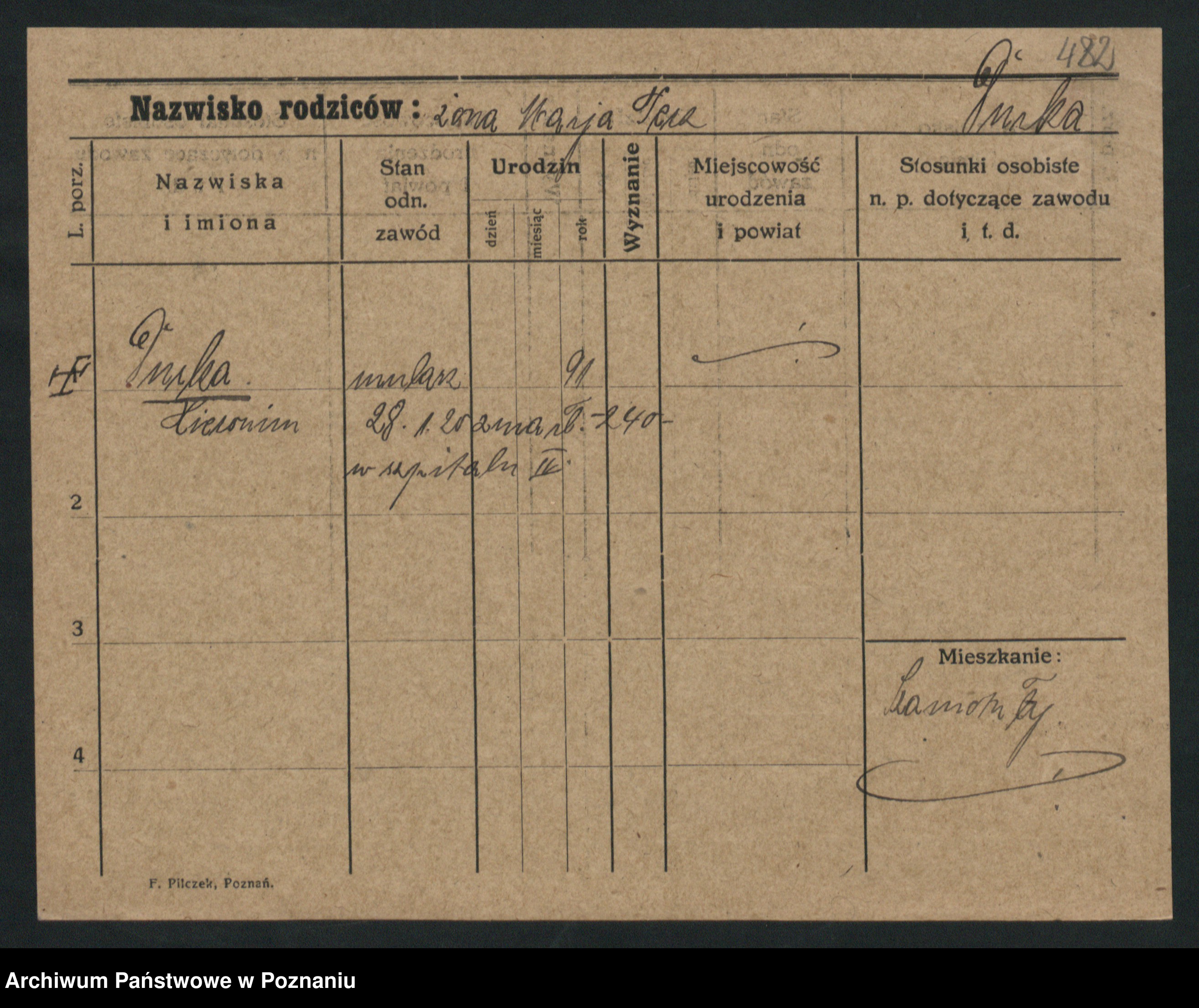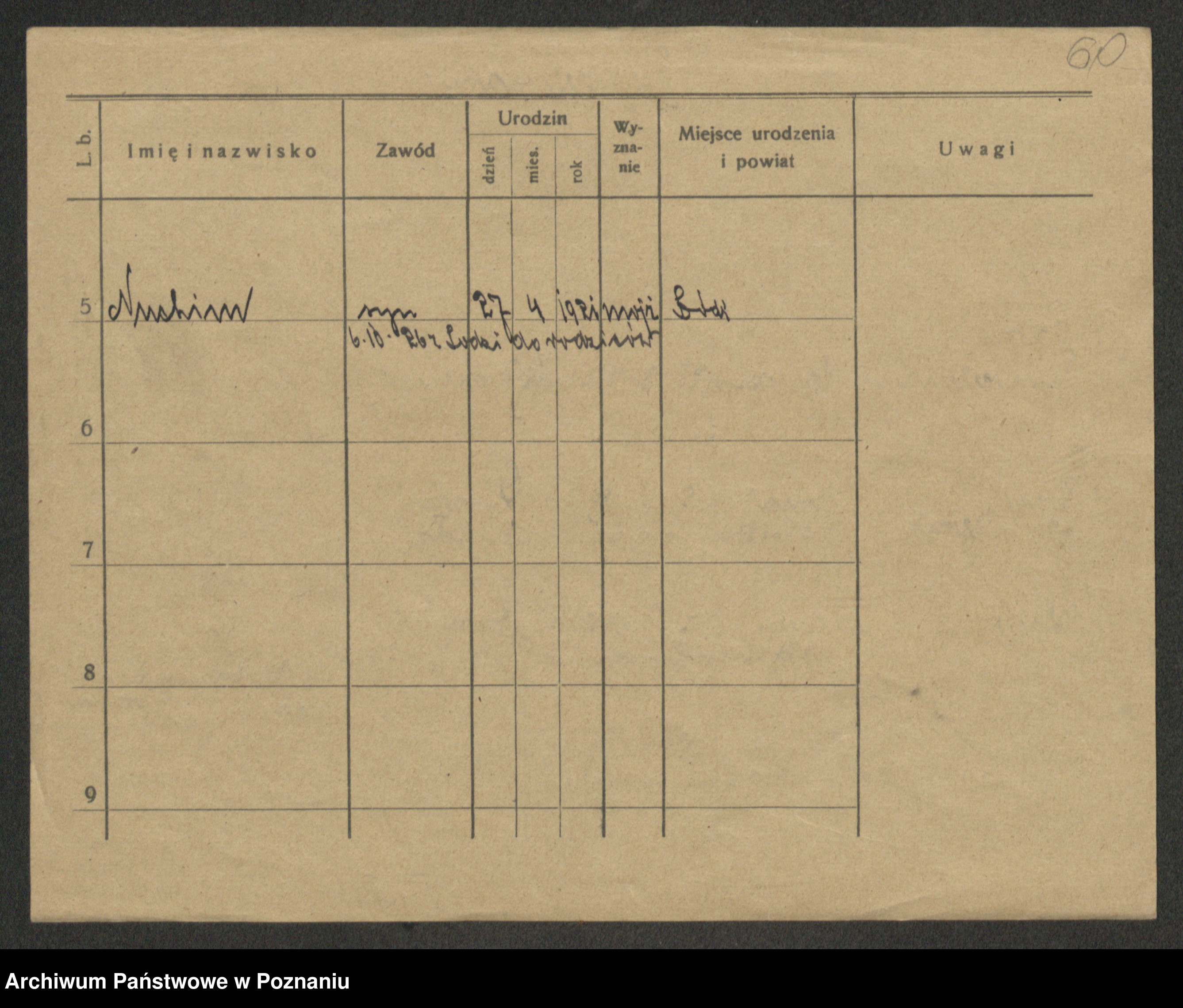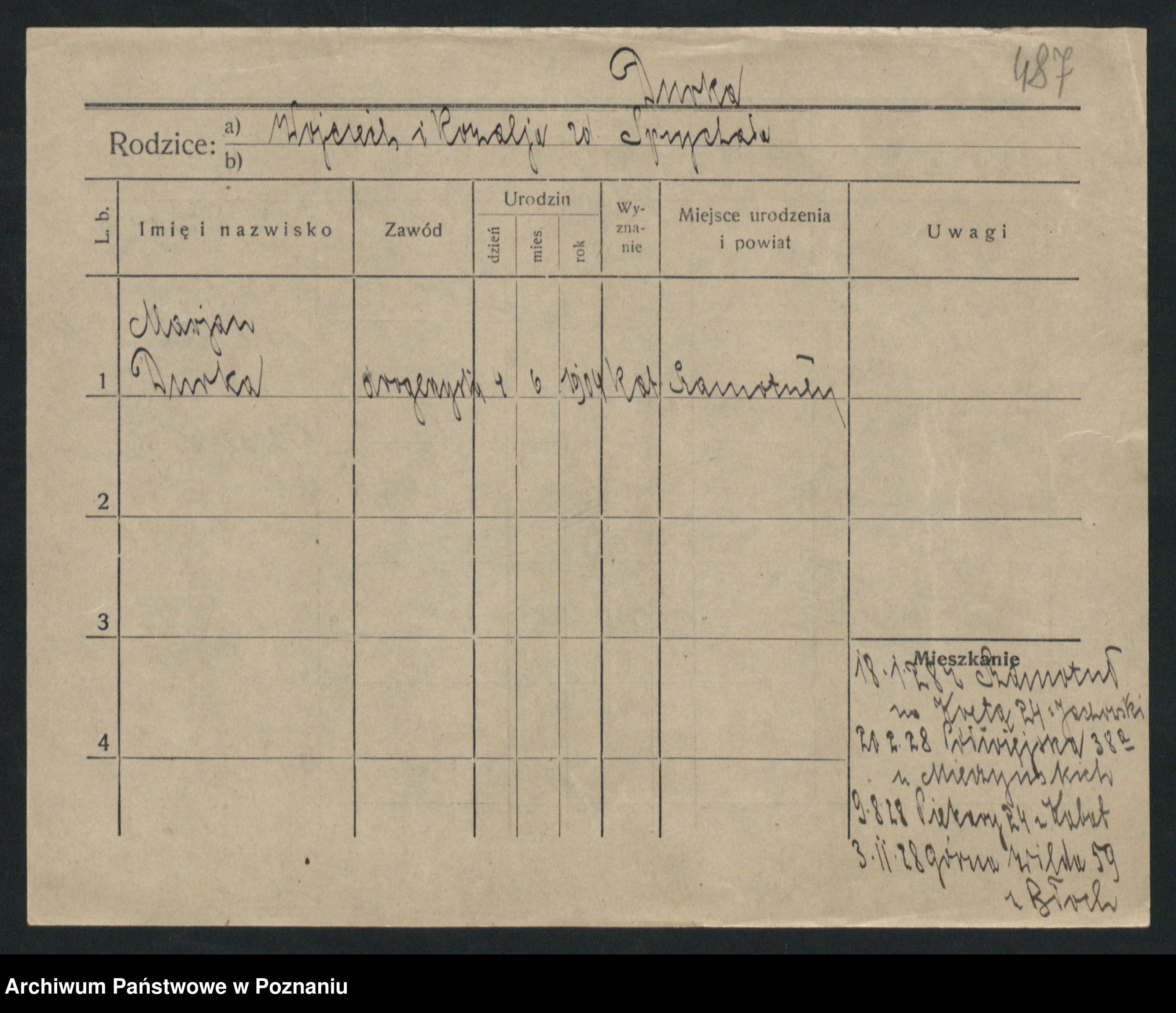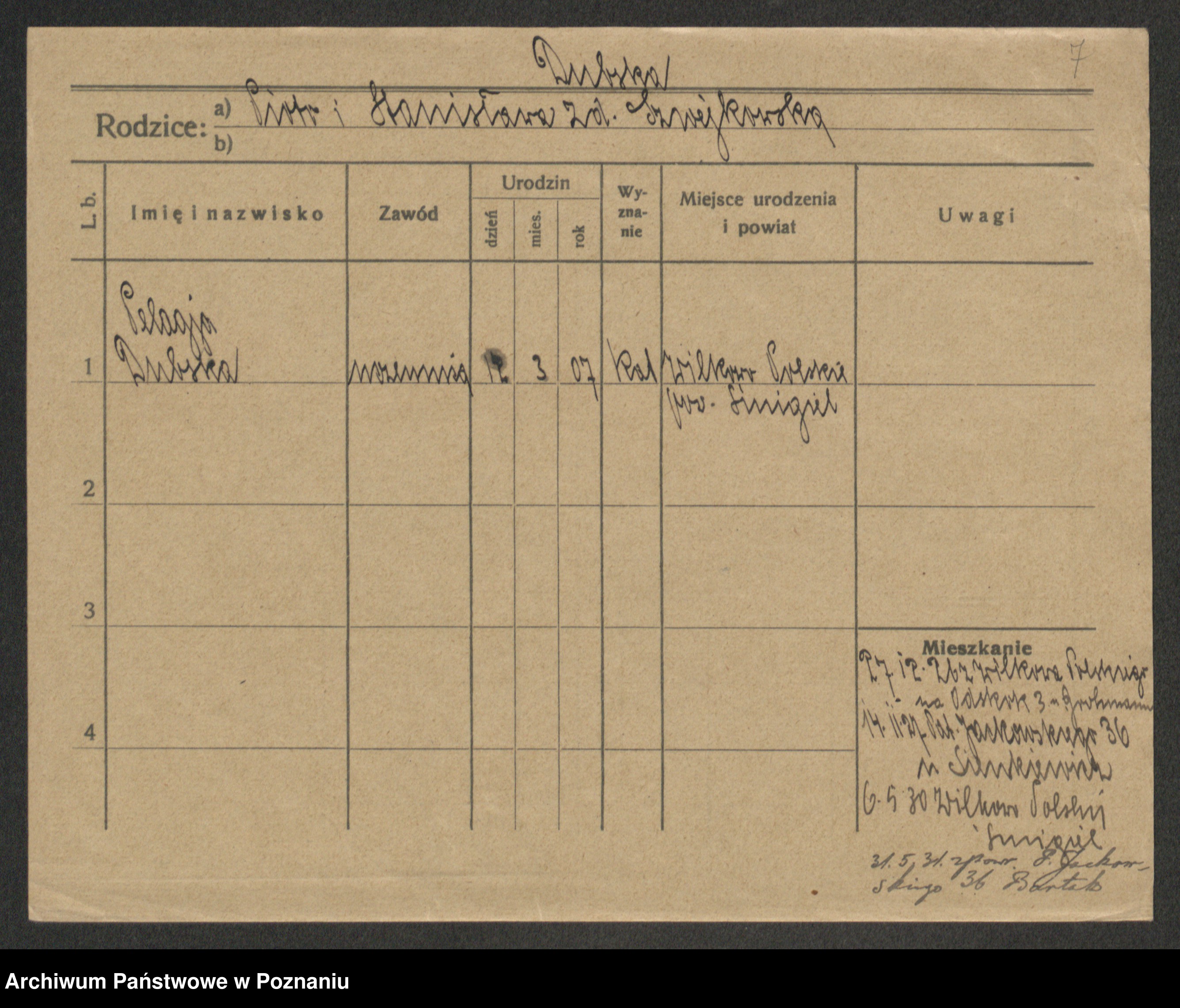 Podgląd karty osobowej dostępny jest po kliknięciu na nazwisko lub ikonkę karty. Można dokonywać powiększenia (ikony na górze) lub przechodzić między kolejnymi skanami (strzałki po bokach).