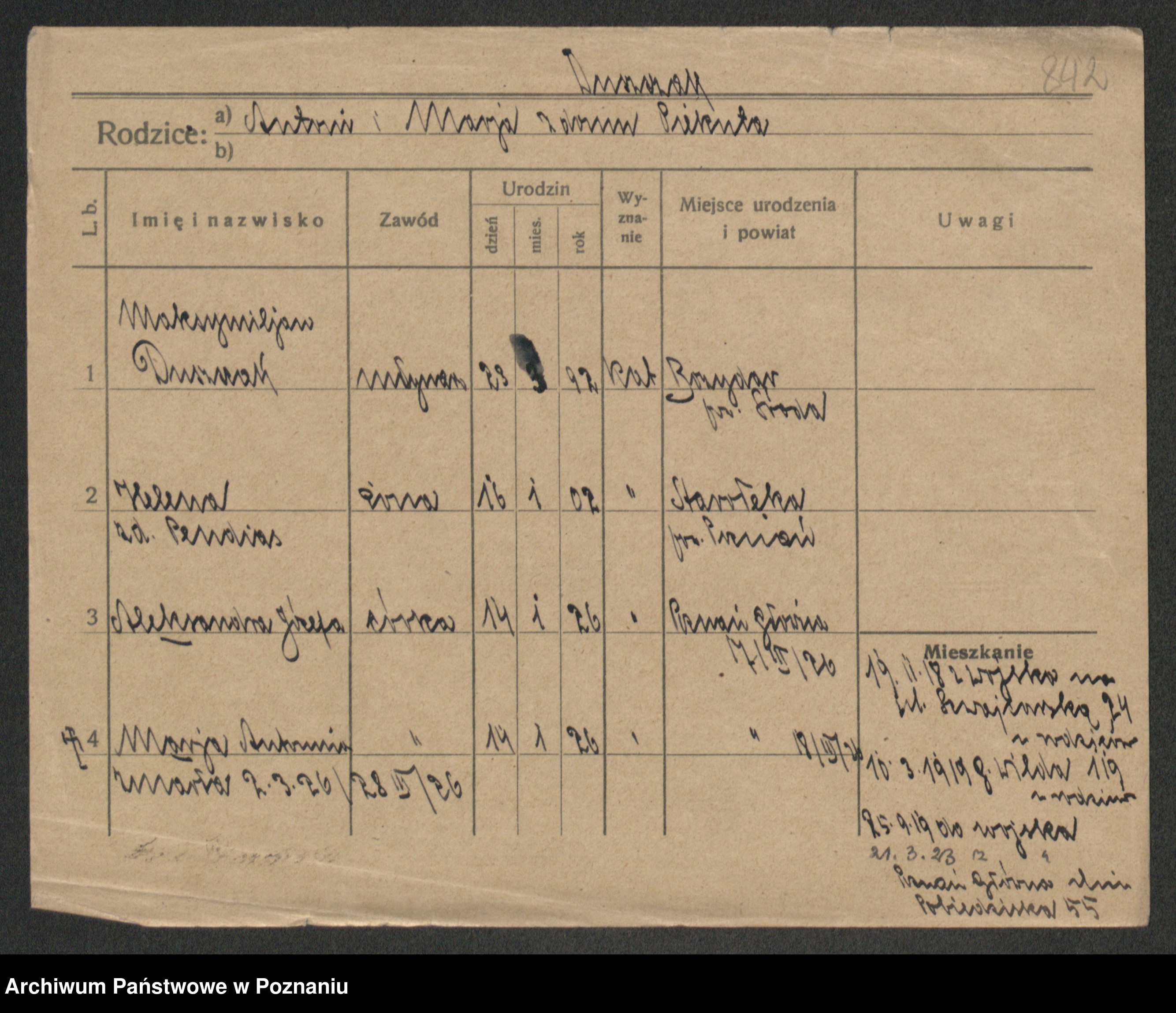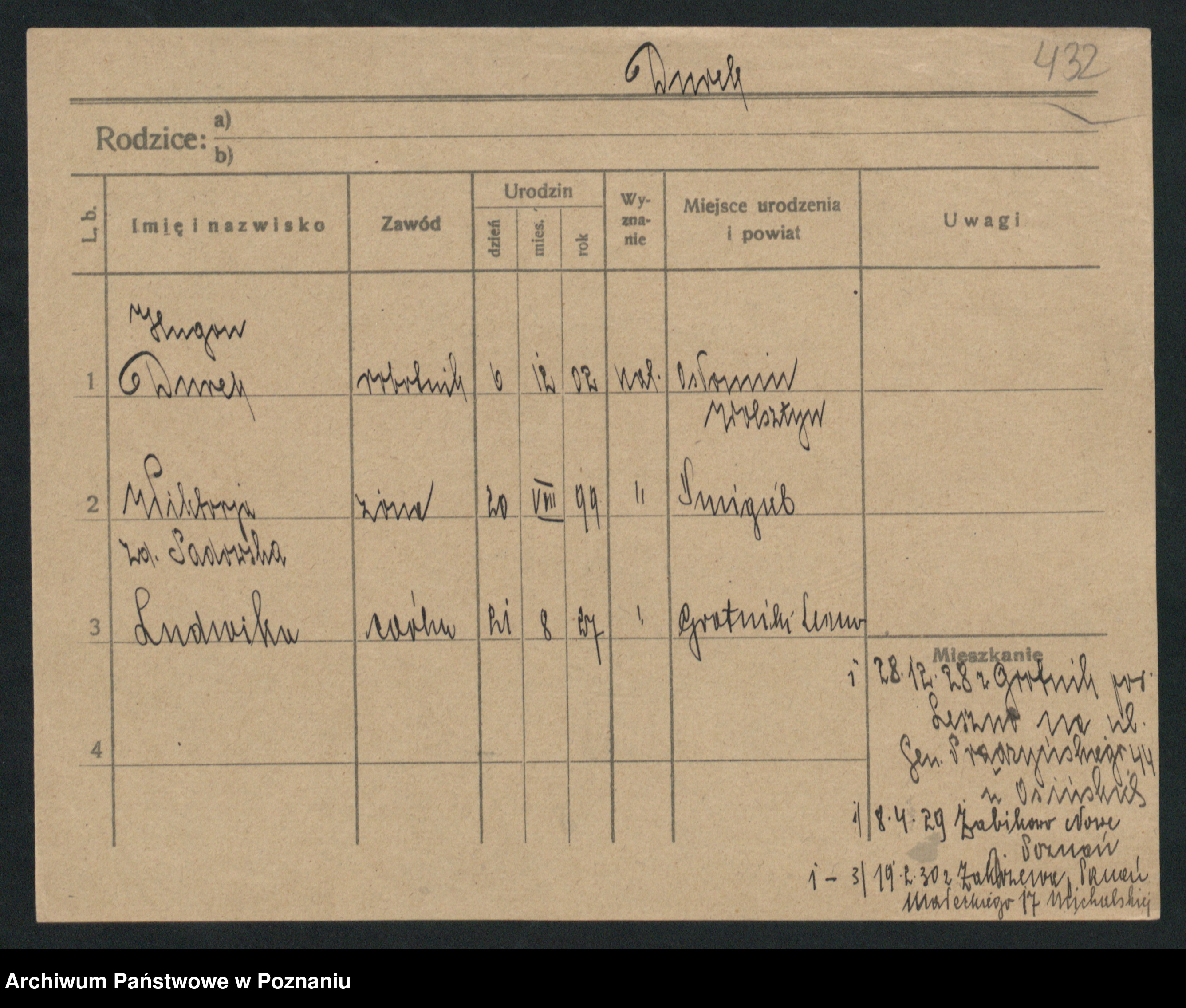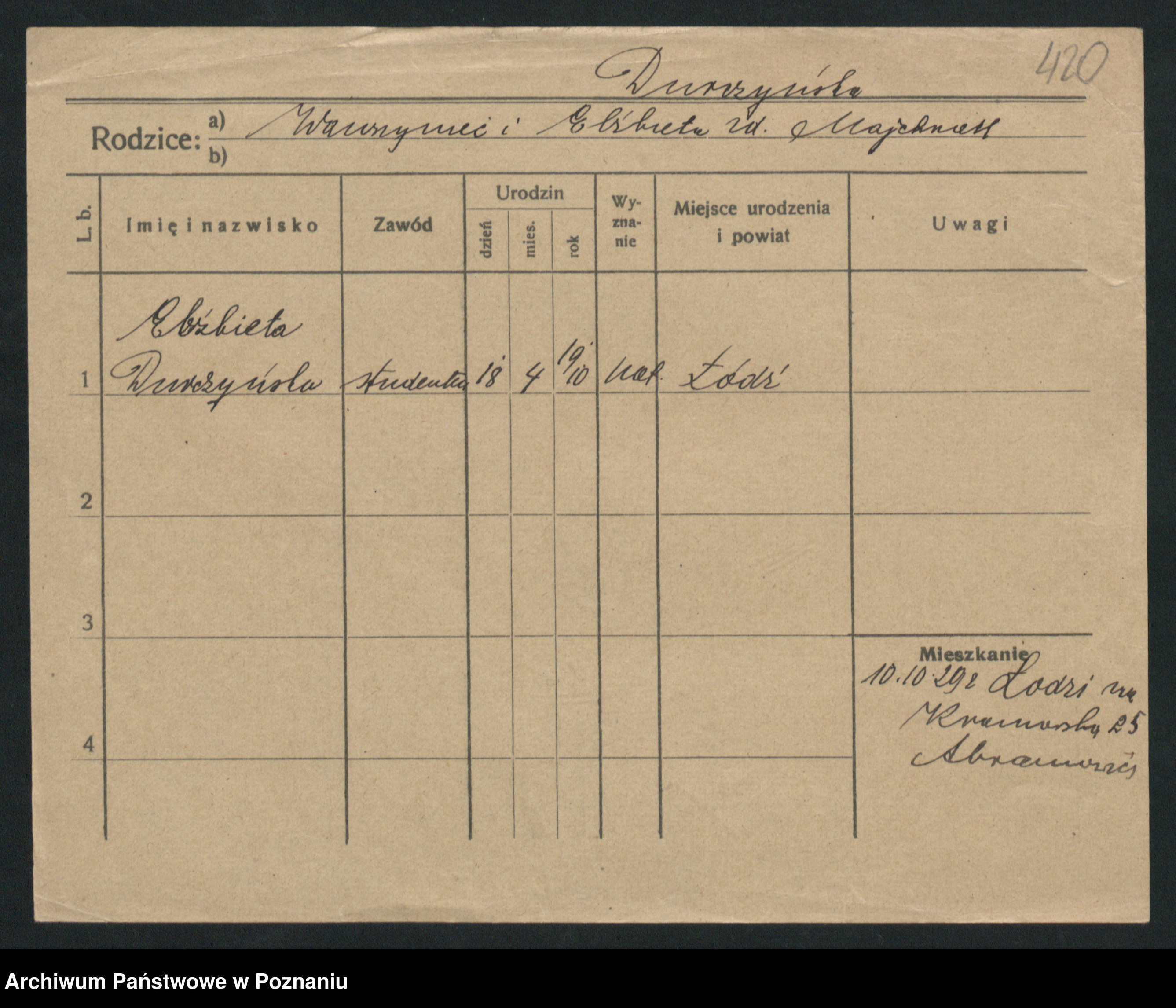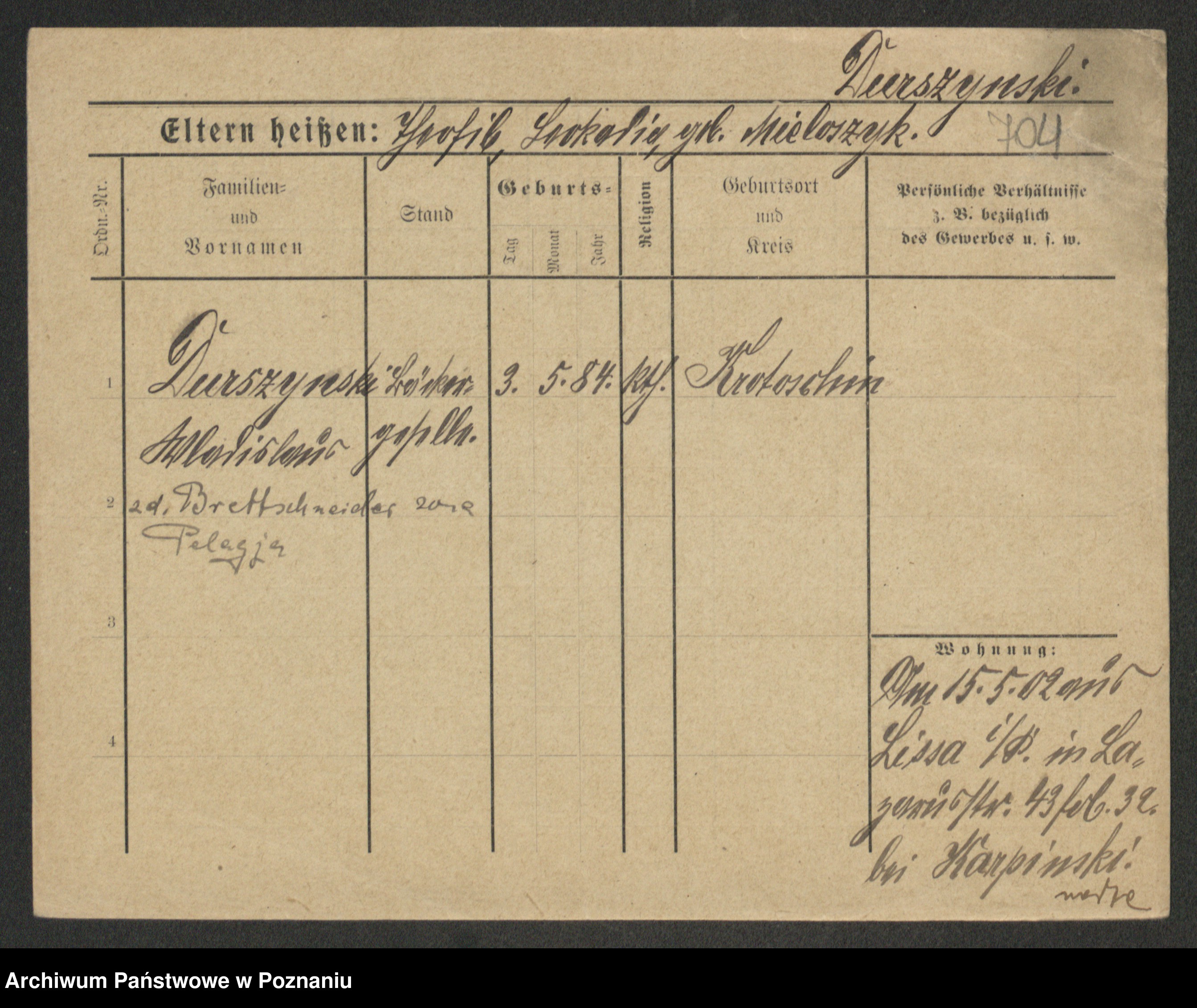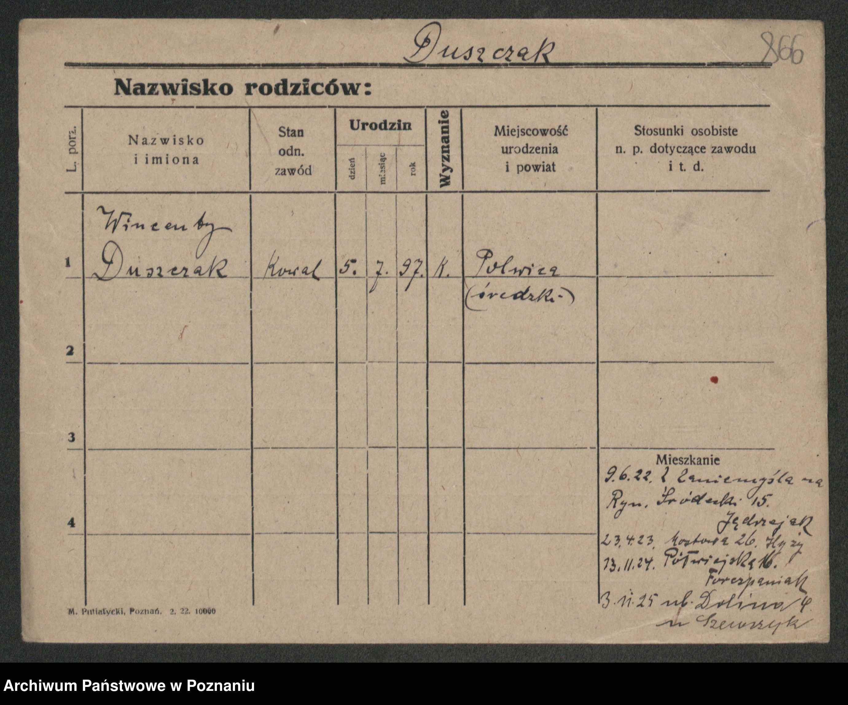 Podgląd karty osobowej dostępny jest po kliknięciu na nazwisko lub ikonkę karty. Można dokonywać powiększenia (ikony na górze) lub przechodzić między kolejnymi skanami (strzałki po bokach).
