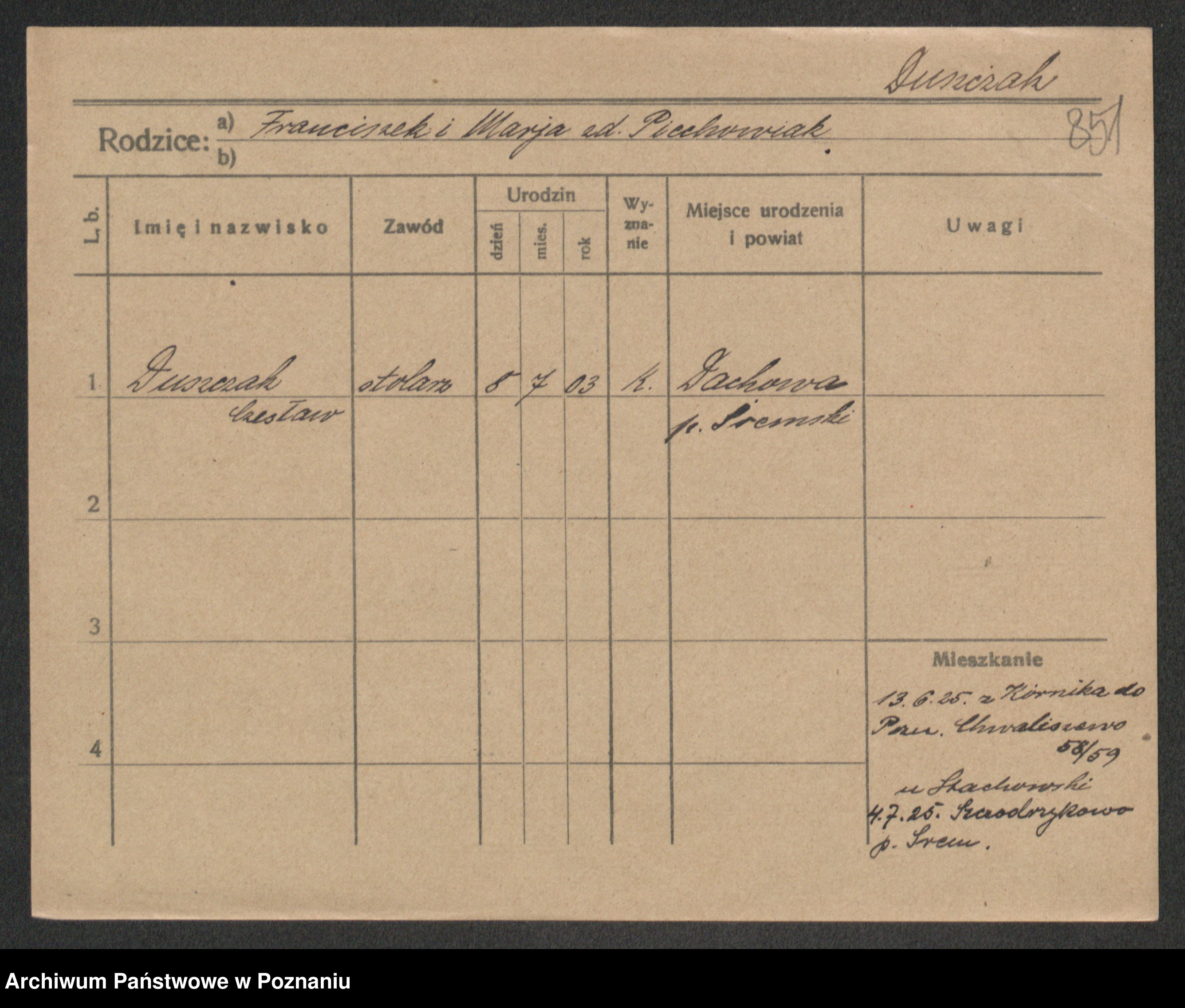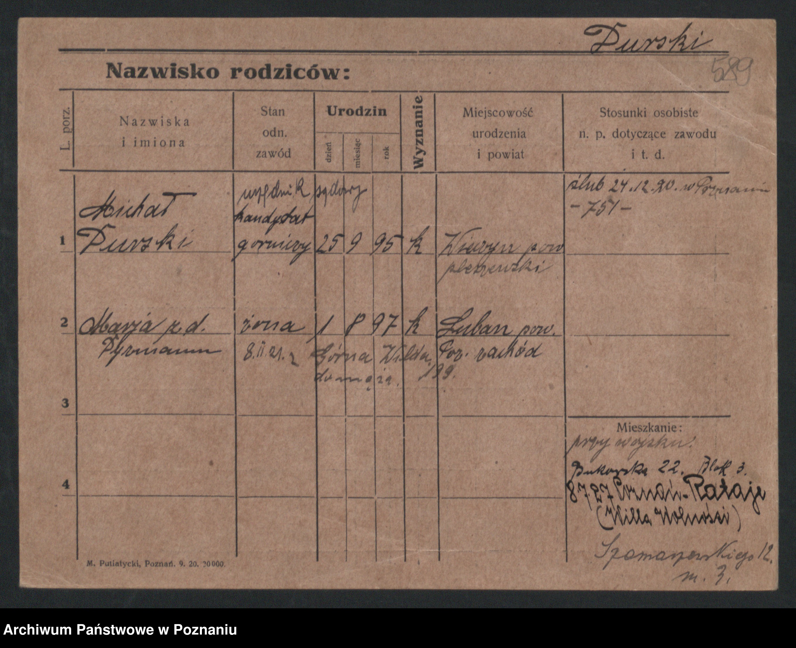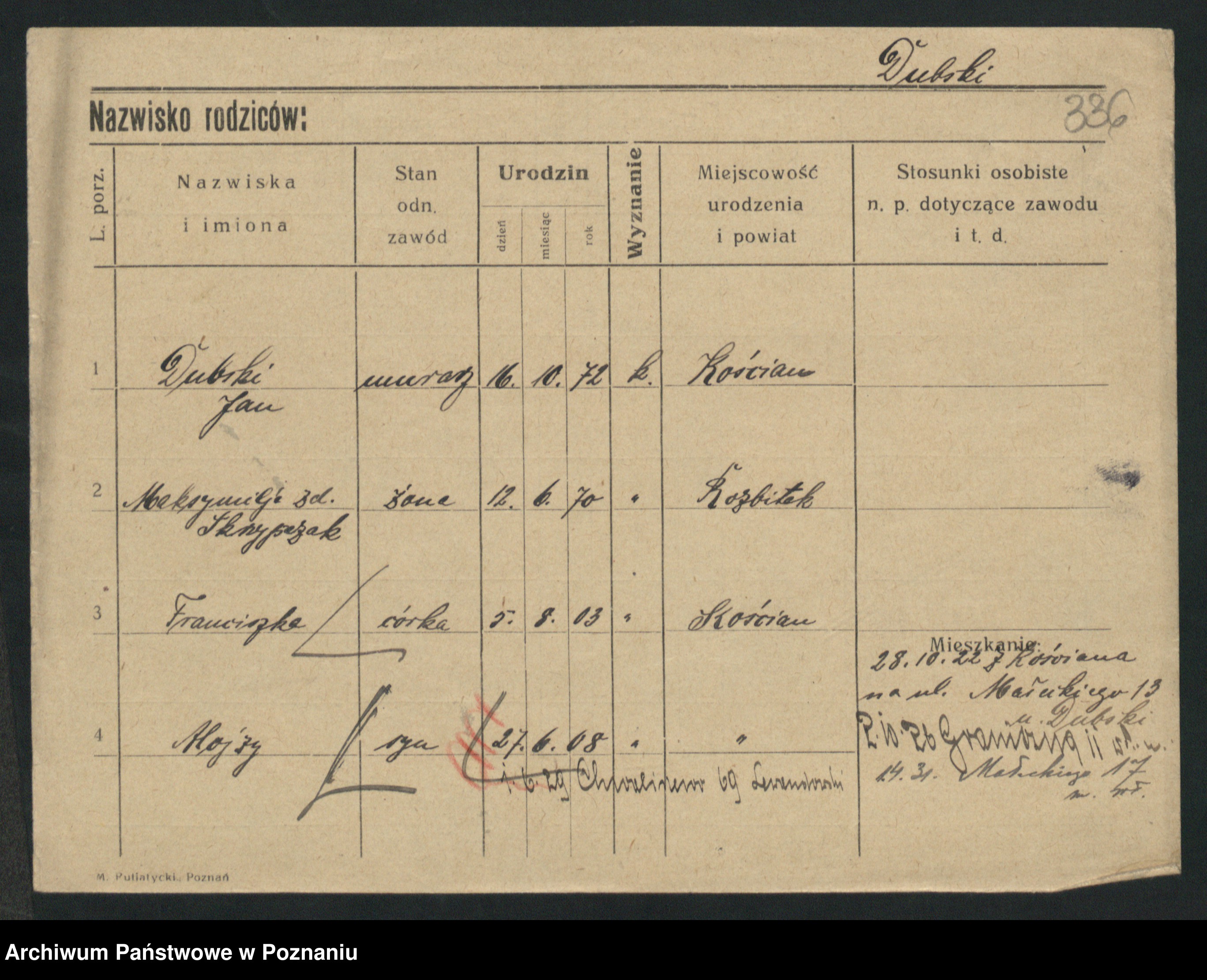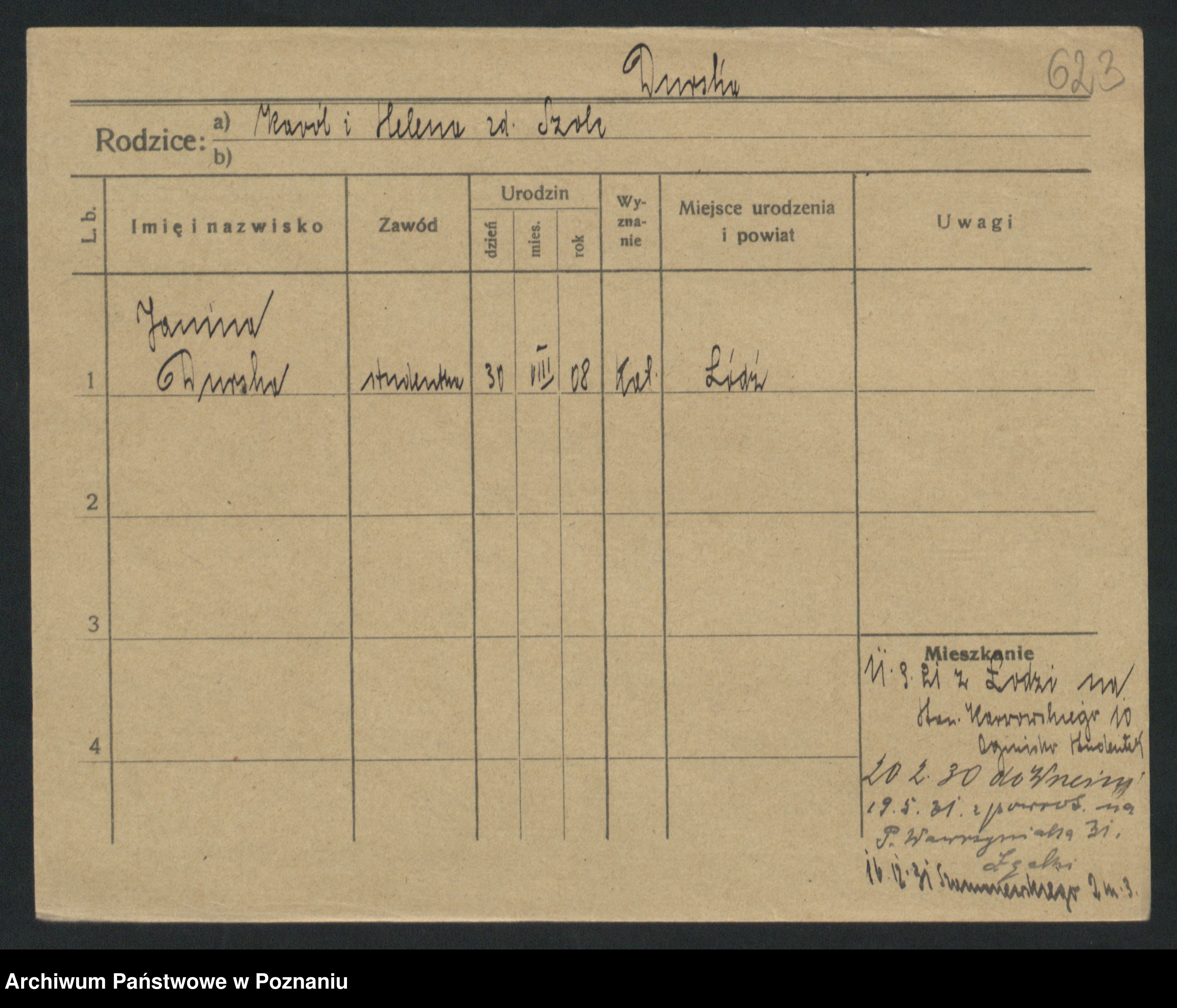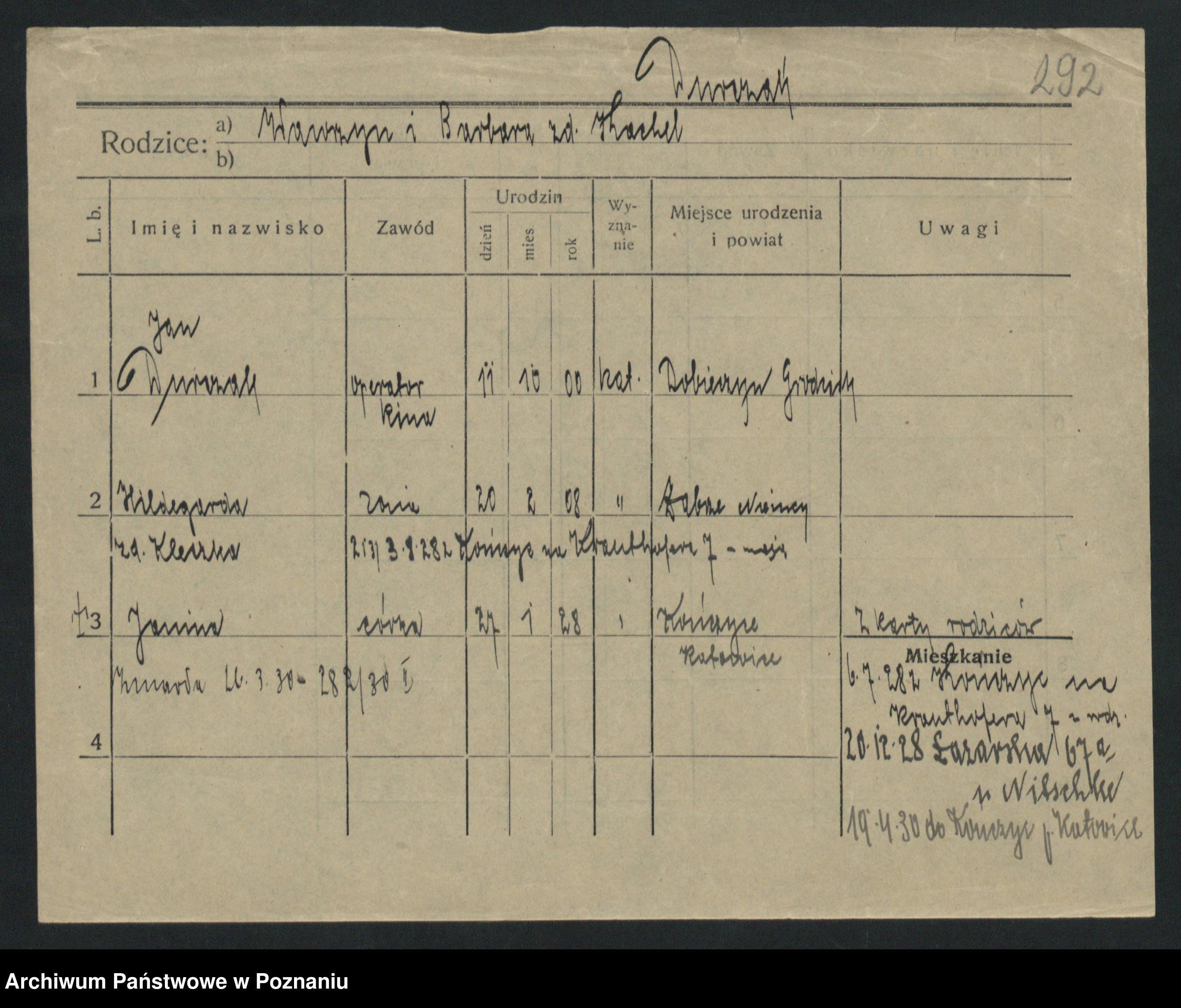 Podgląd karty osobowej dostępny jest po kliknięciu na nazwisko lub ikonkę karty. Można dokonywać powiększenia (ikony na górze) lub przechodzić między kolejnymi skanami (strzałki po bokach).