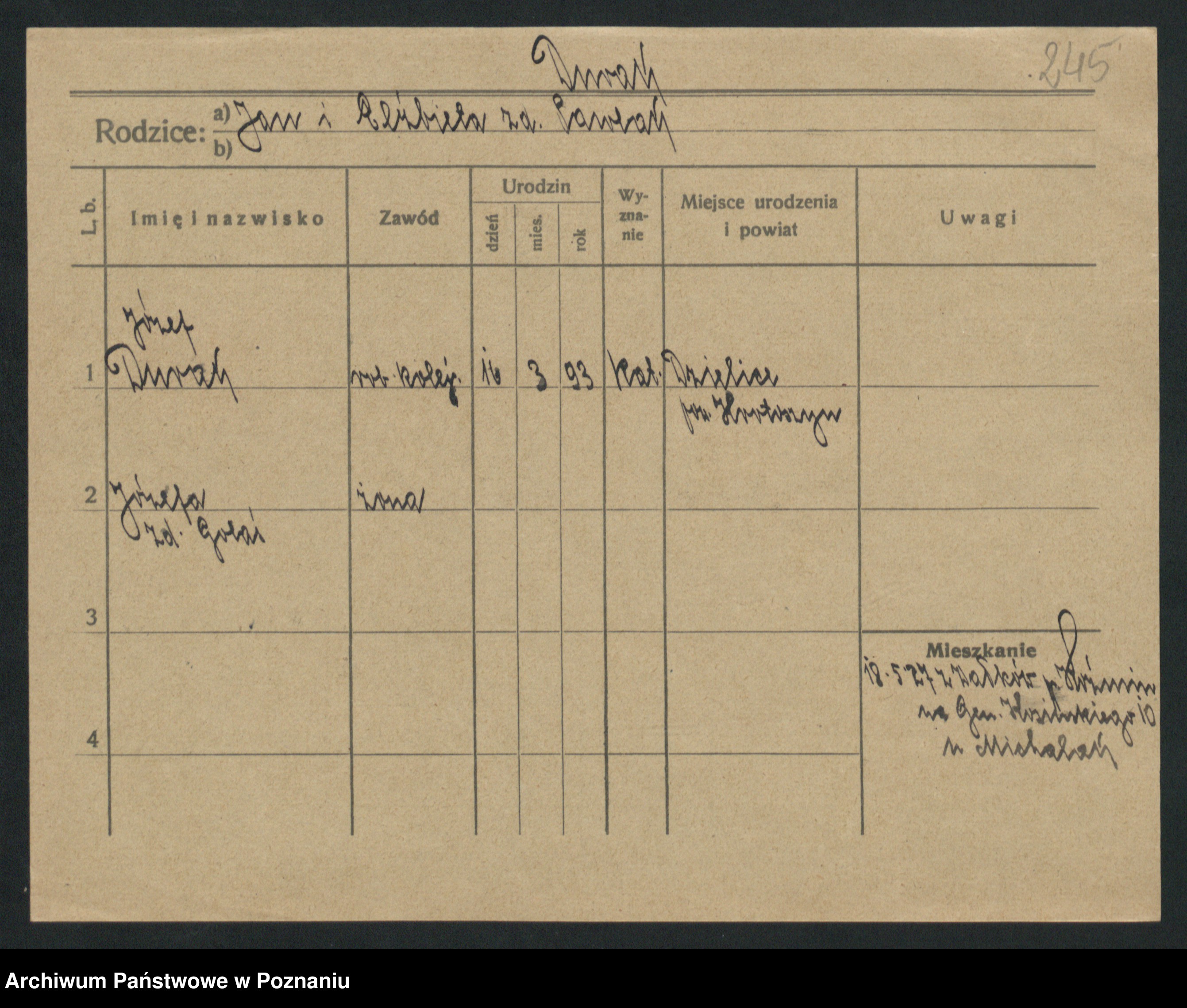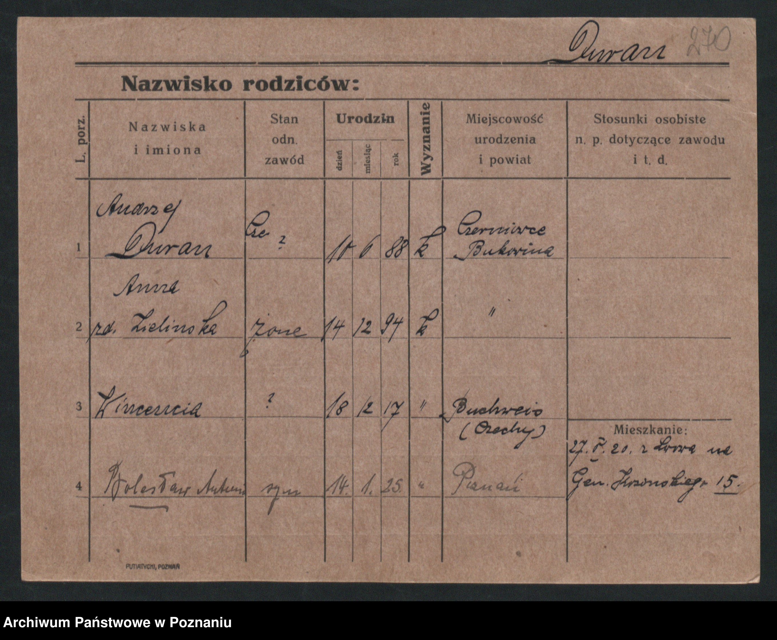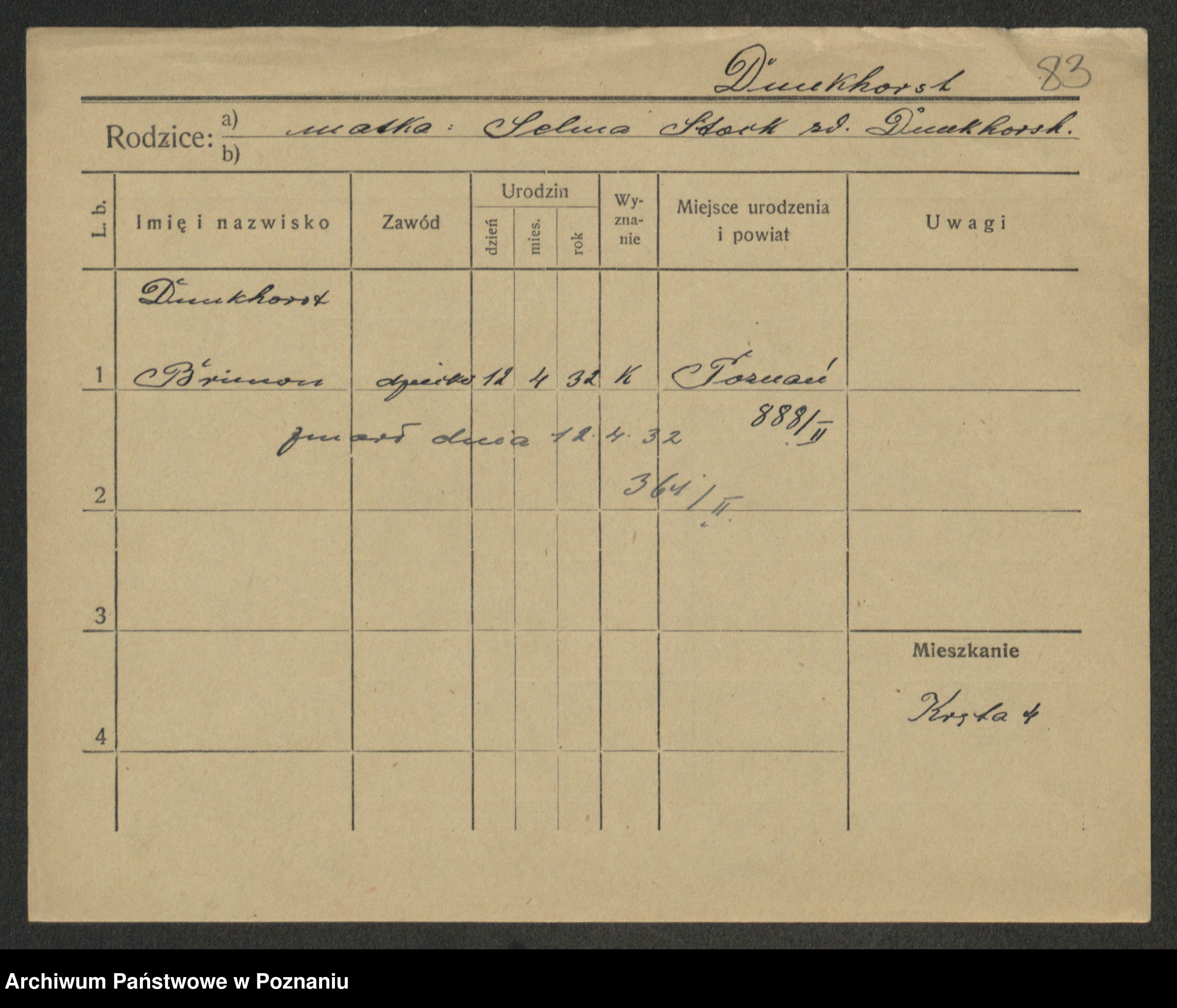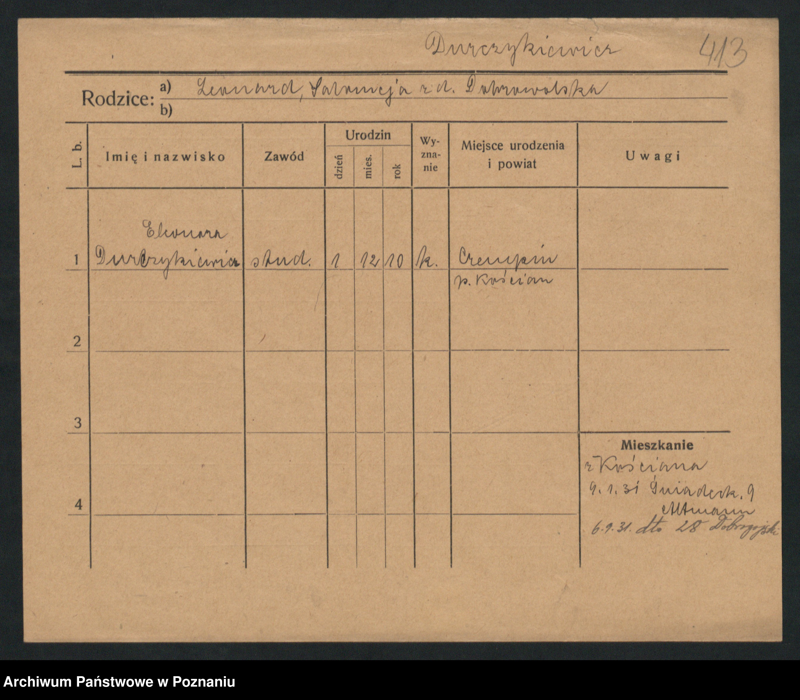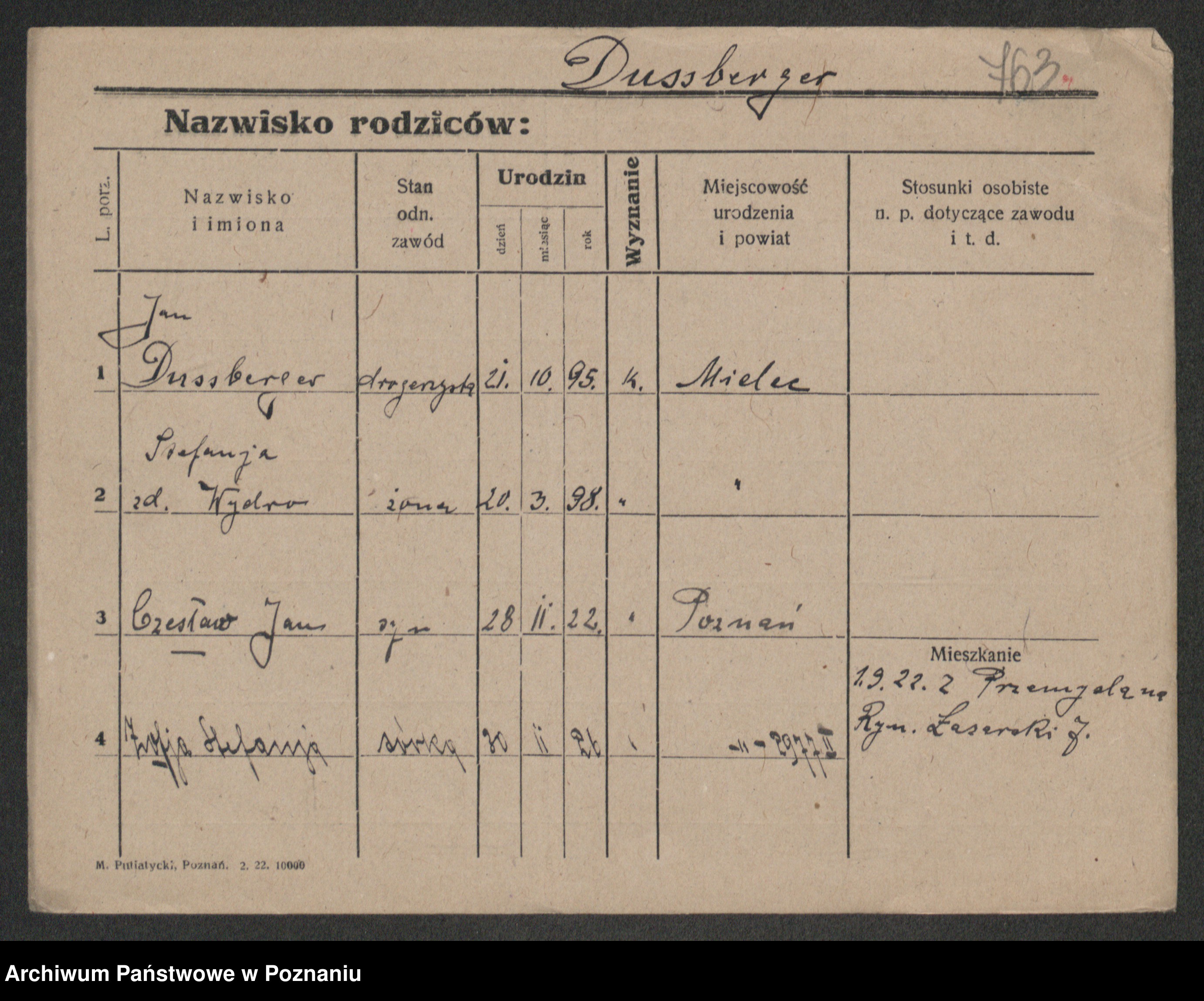 Podgląd karty osobowej dostępny jest po kliknięciu na nazwisko lub ikonkę karty. Można dokonywać powiększenia (ikony na górze) lub przechodzić między kolejnymi skanami (strzałki po bokach).