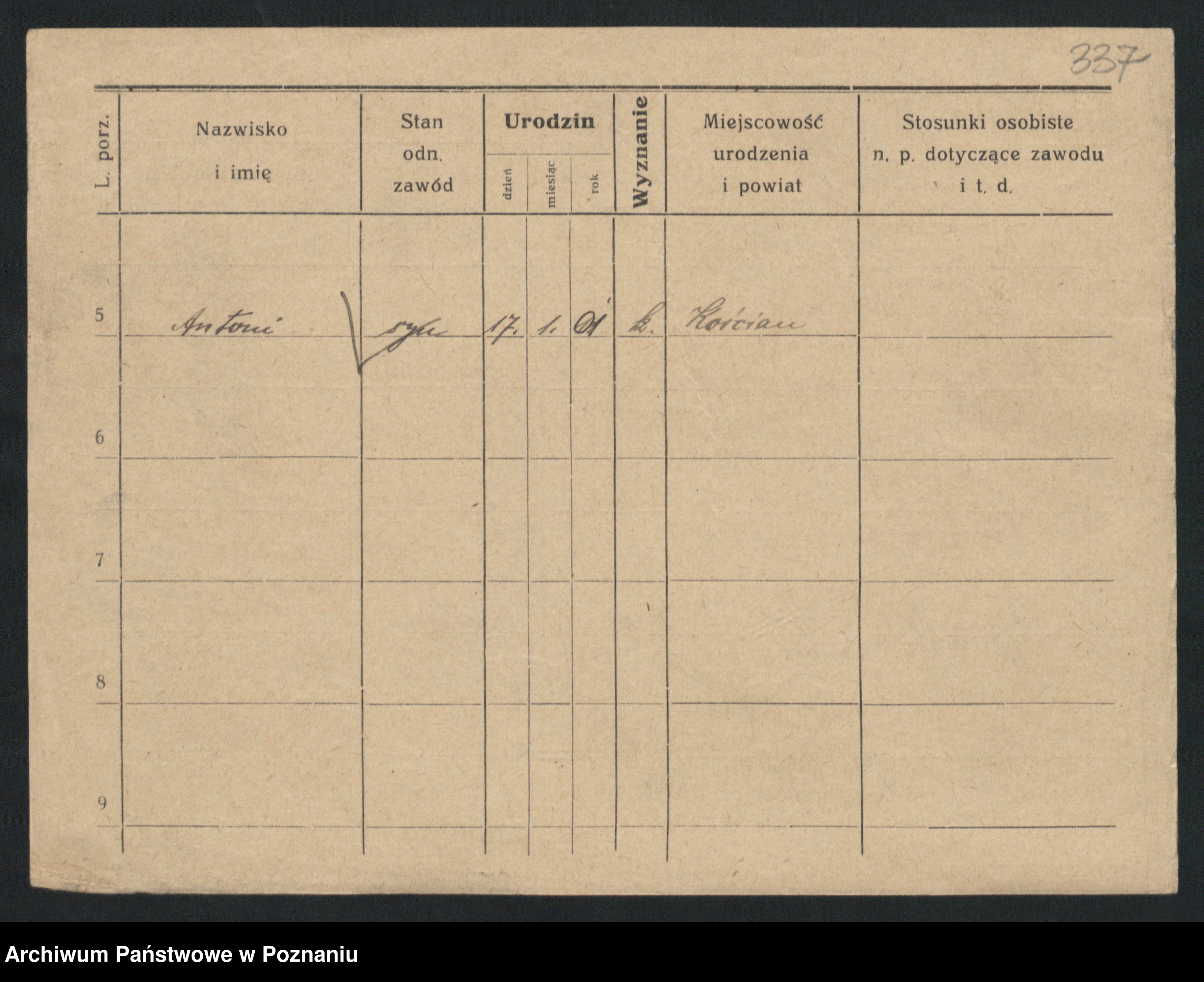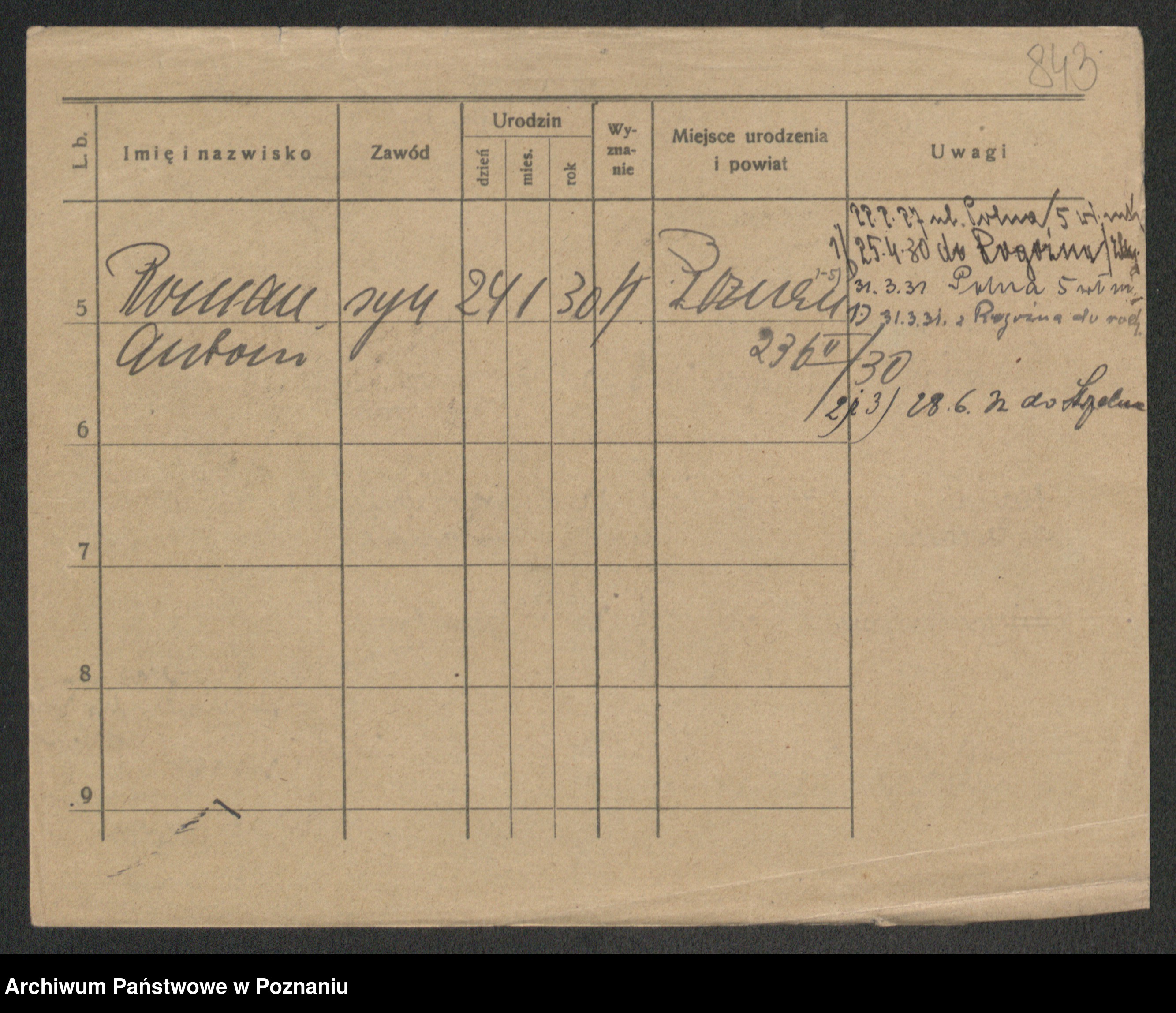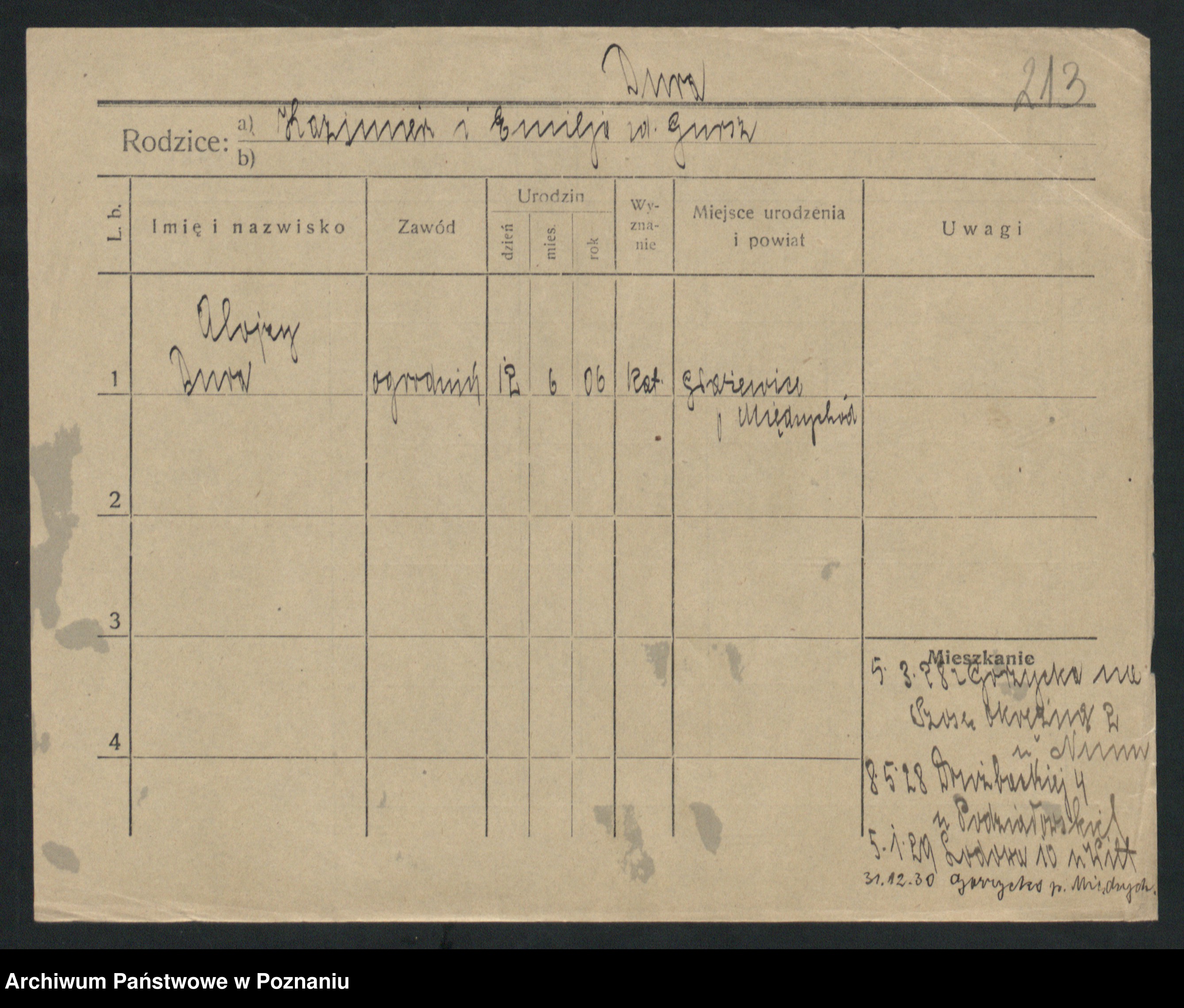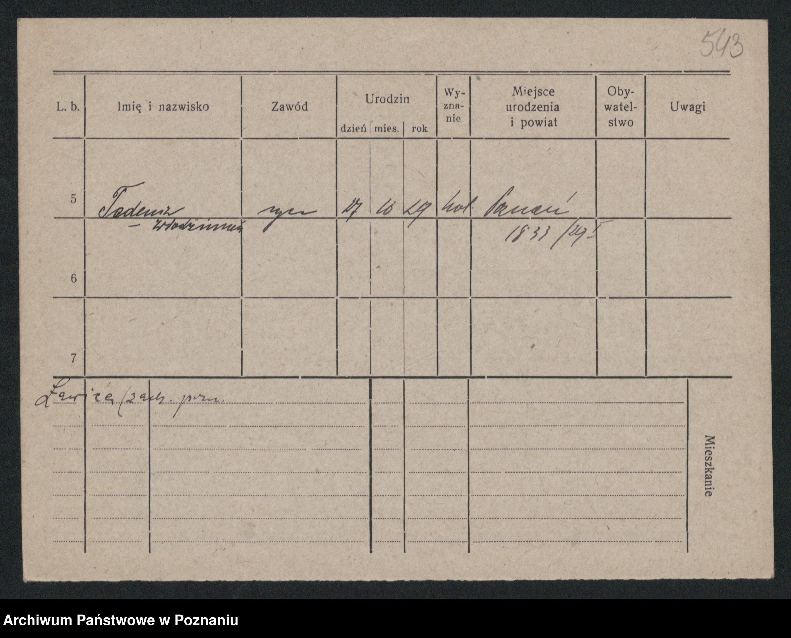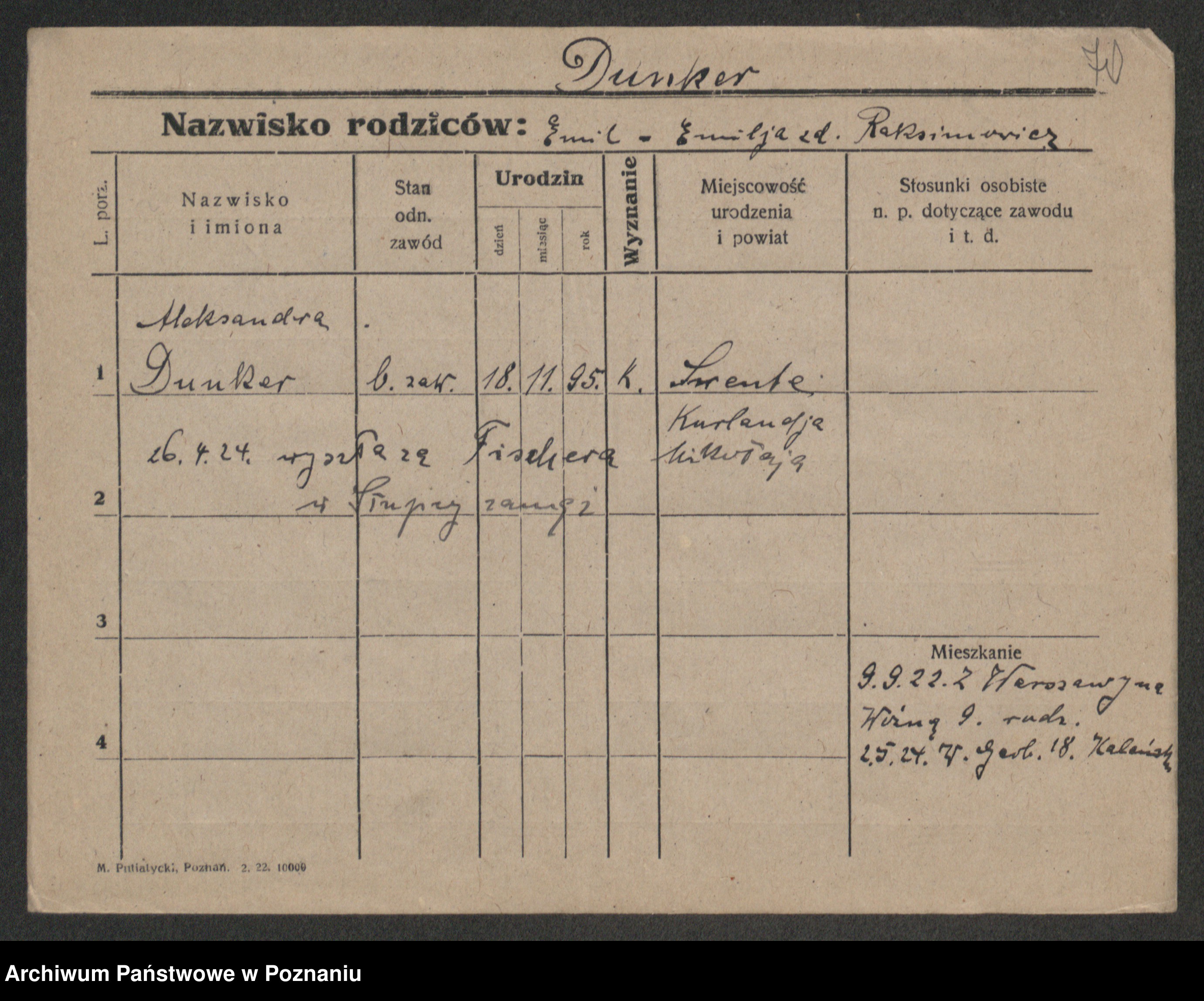 Podgląd karty osobowej dostępny jest po kliknięciu na nazwisko lub ikonkę karty. Można dokonywać powiększenia (ikony na górze) lub przechodzić między kolejnymi skanami (strzałki po bokach).