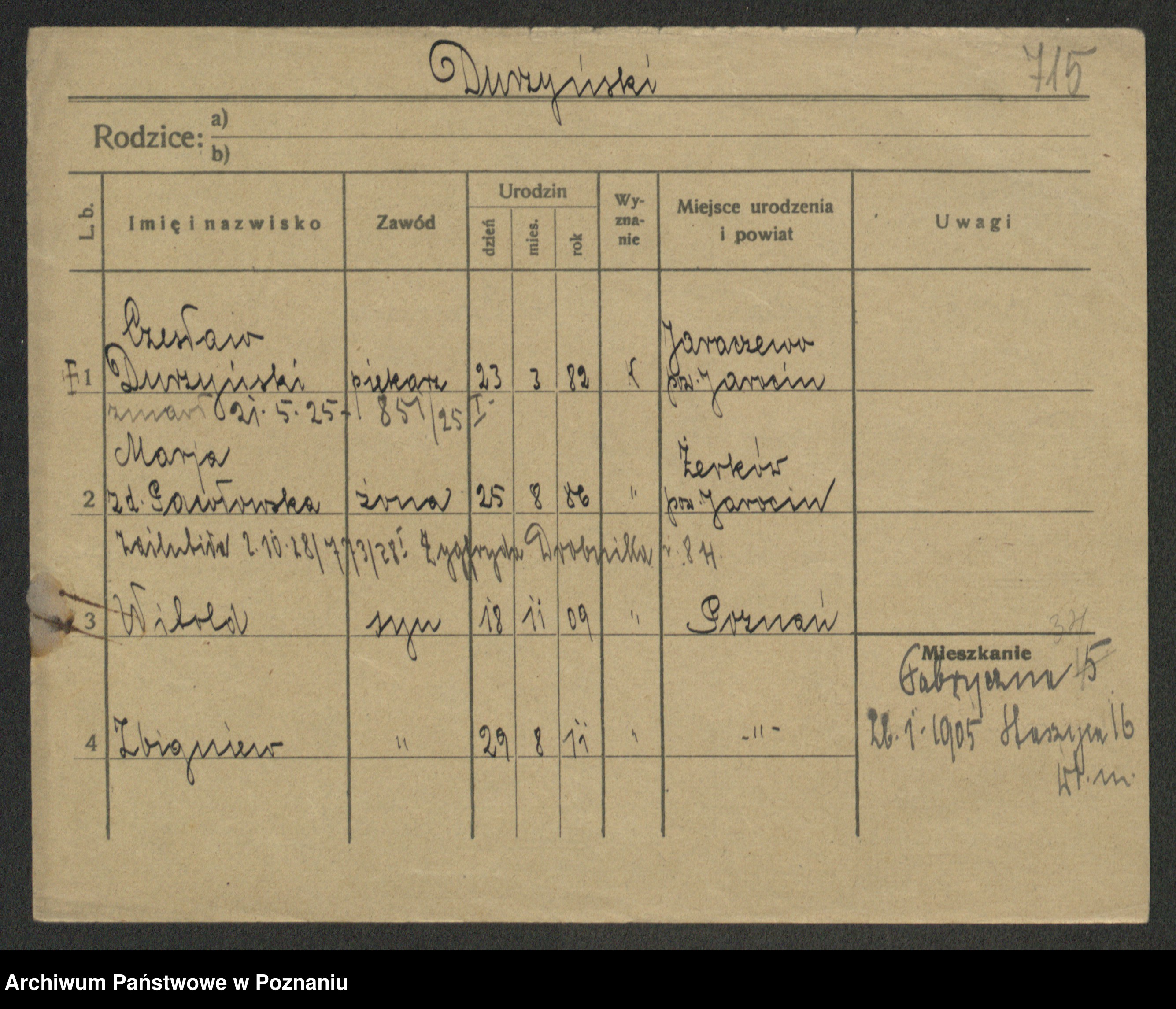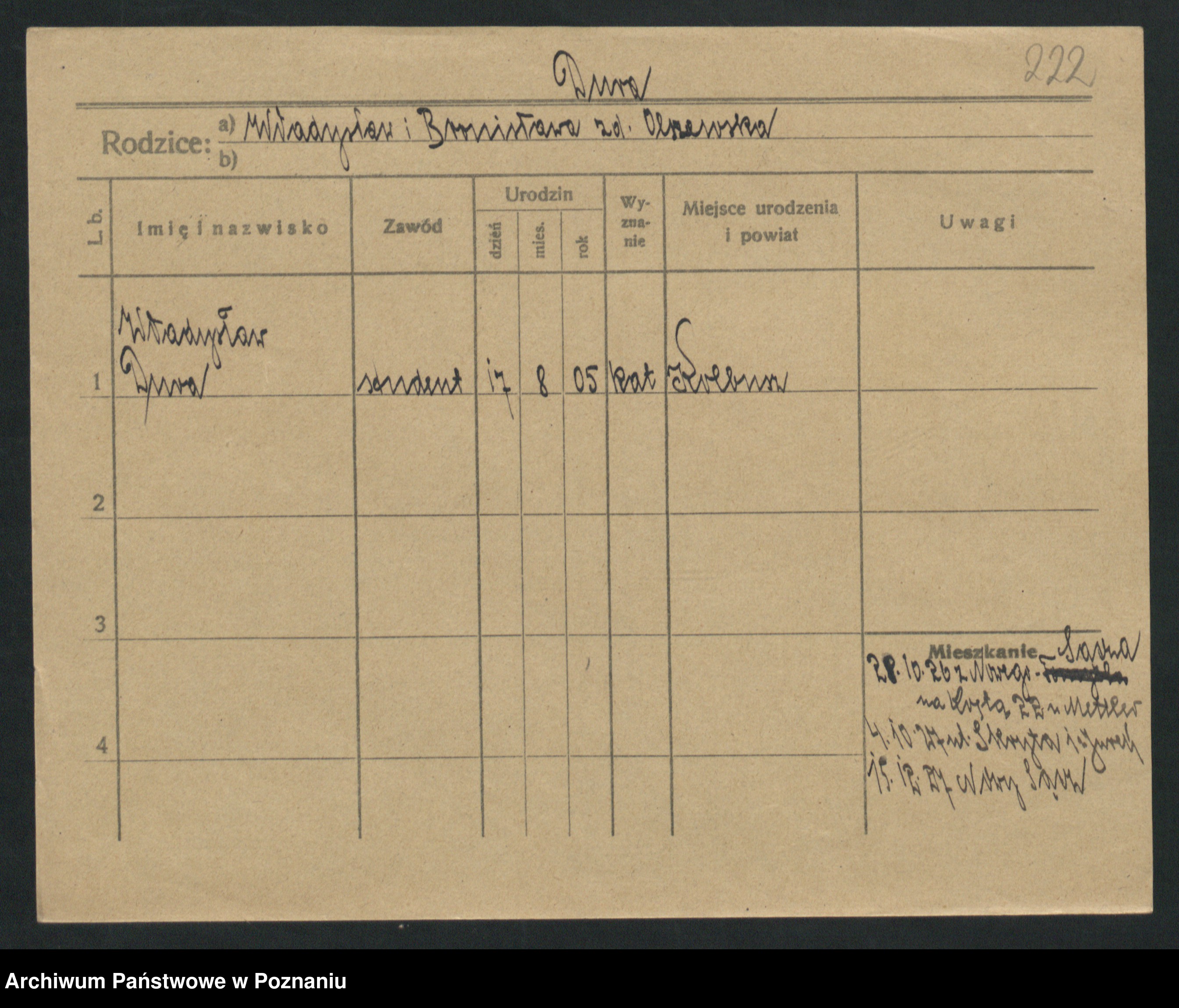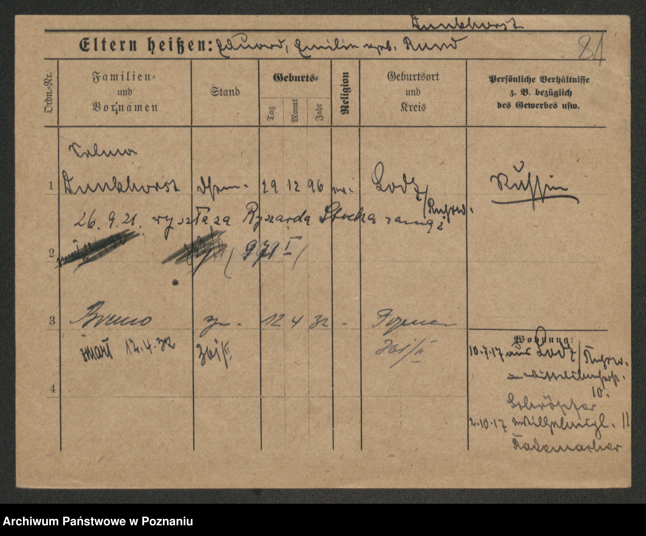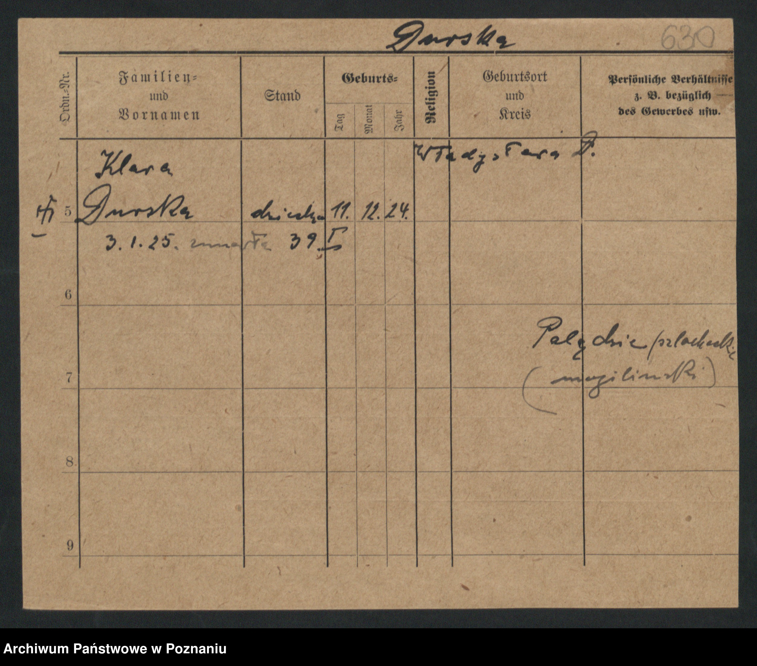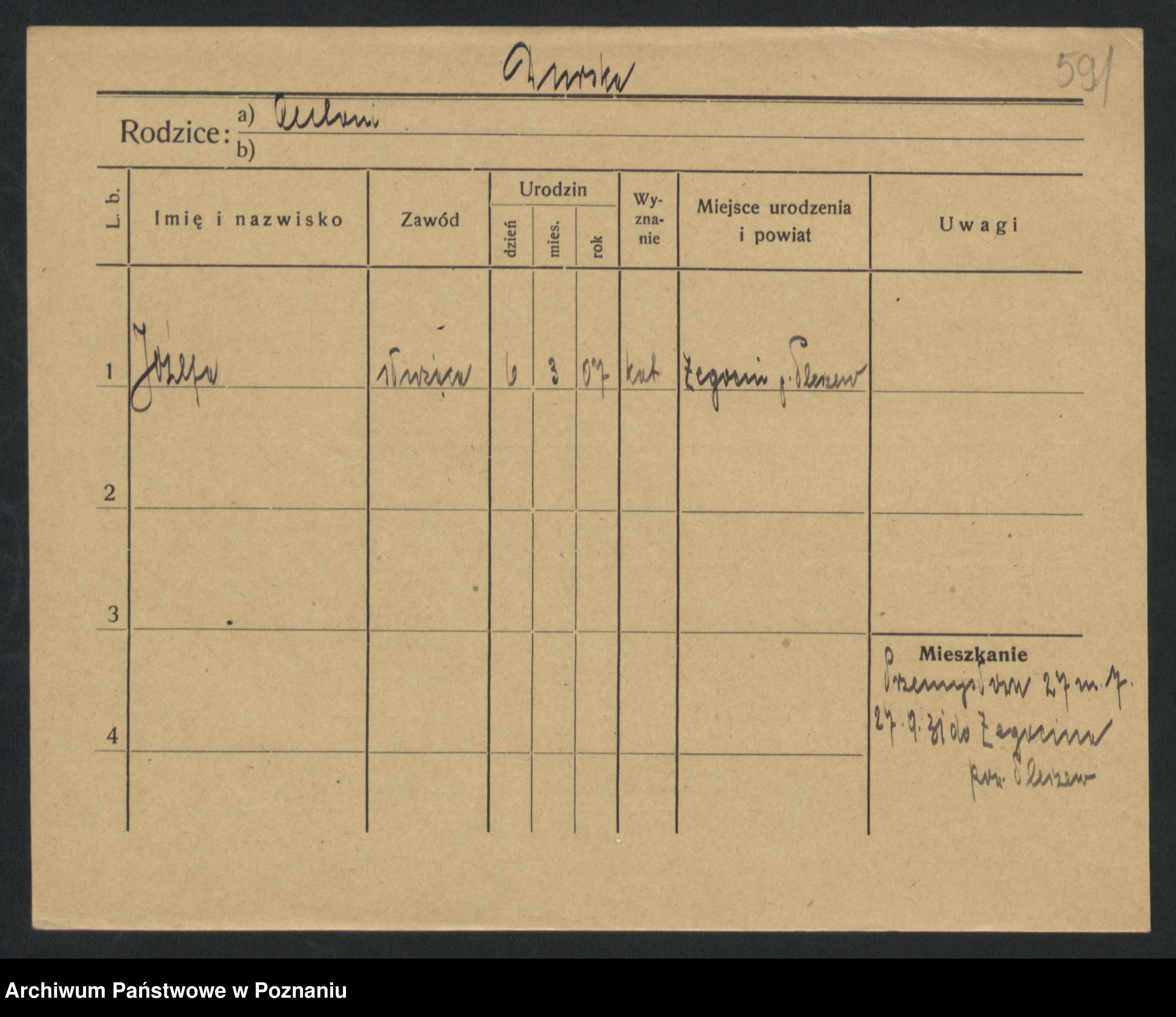Podgląd karty osobowej dostępny jest po kliknięciu na nazwisko lub ikonkę karty. Można dokonywać powiększenia (ikony na górze) lub przechodzić między kolejnymi skanami (strzałki po bokach).
