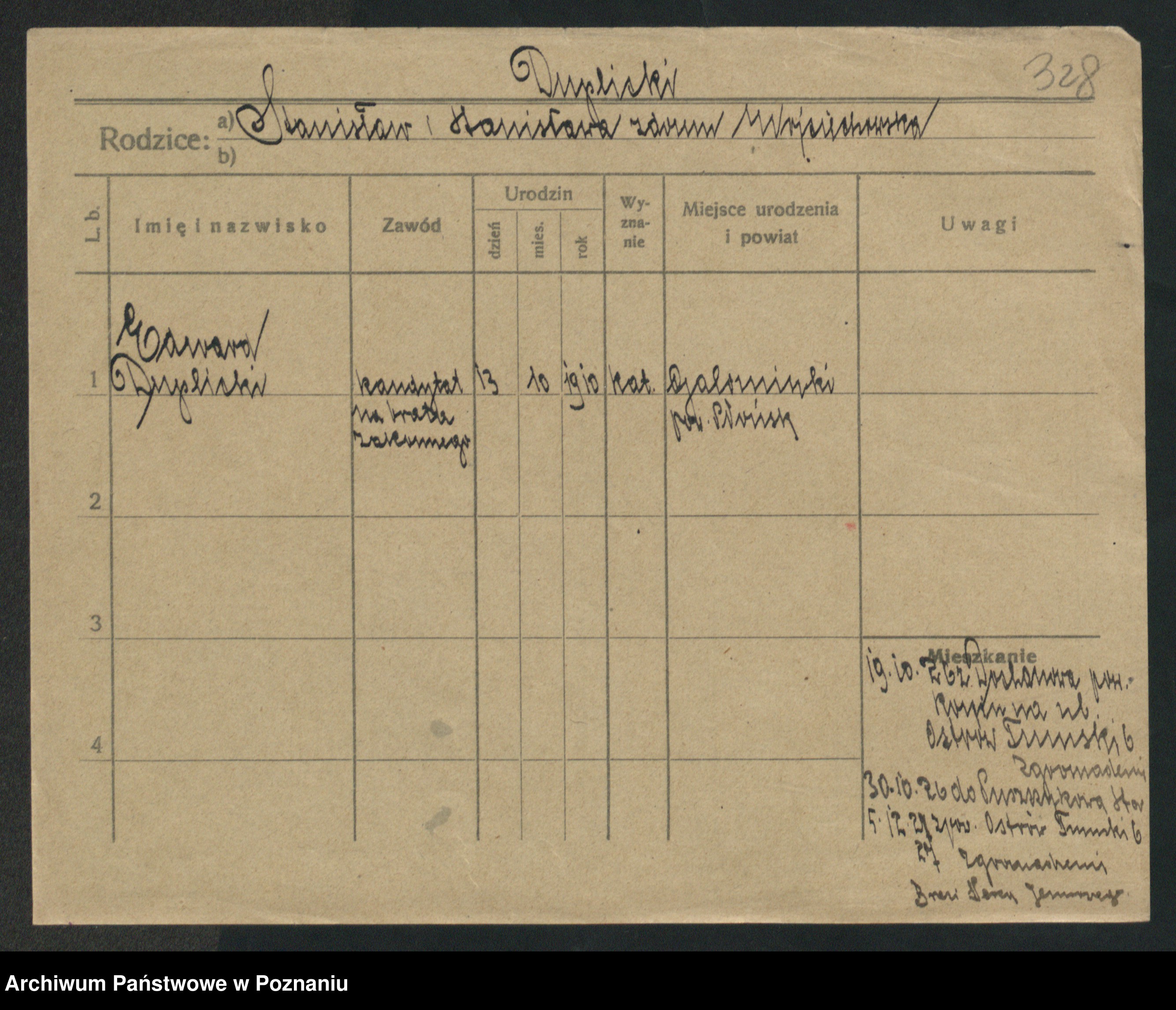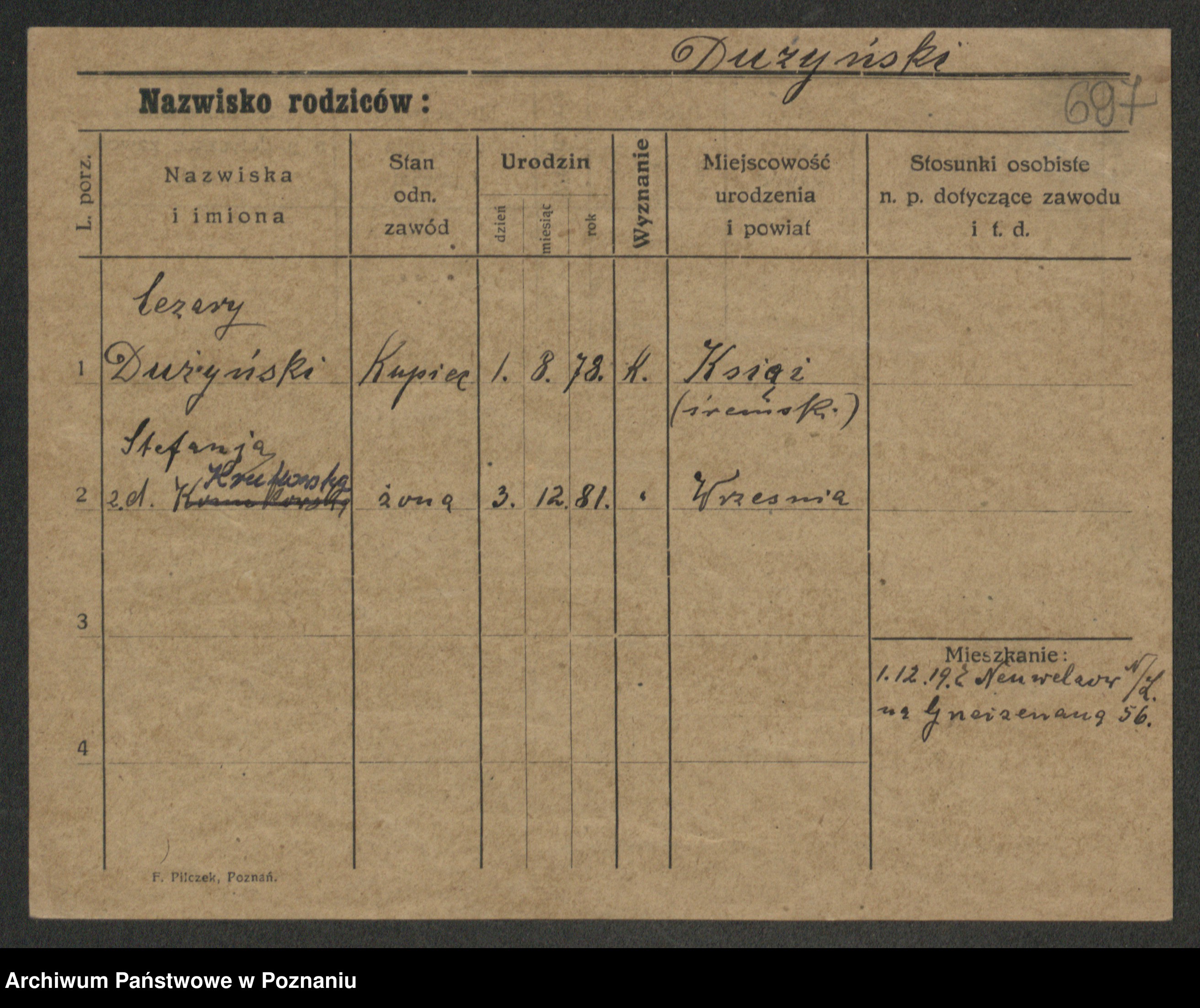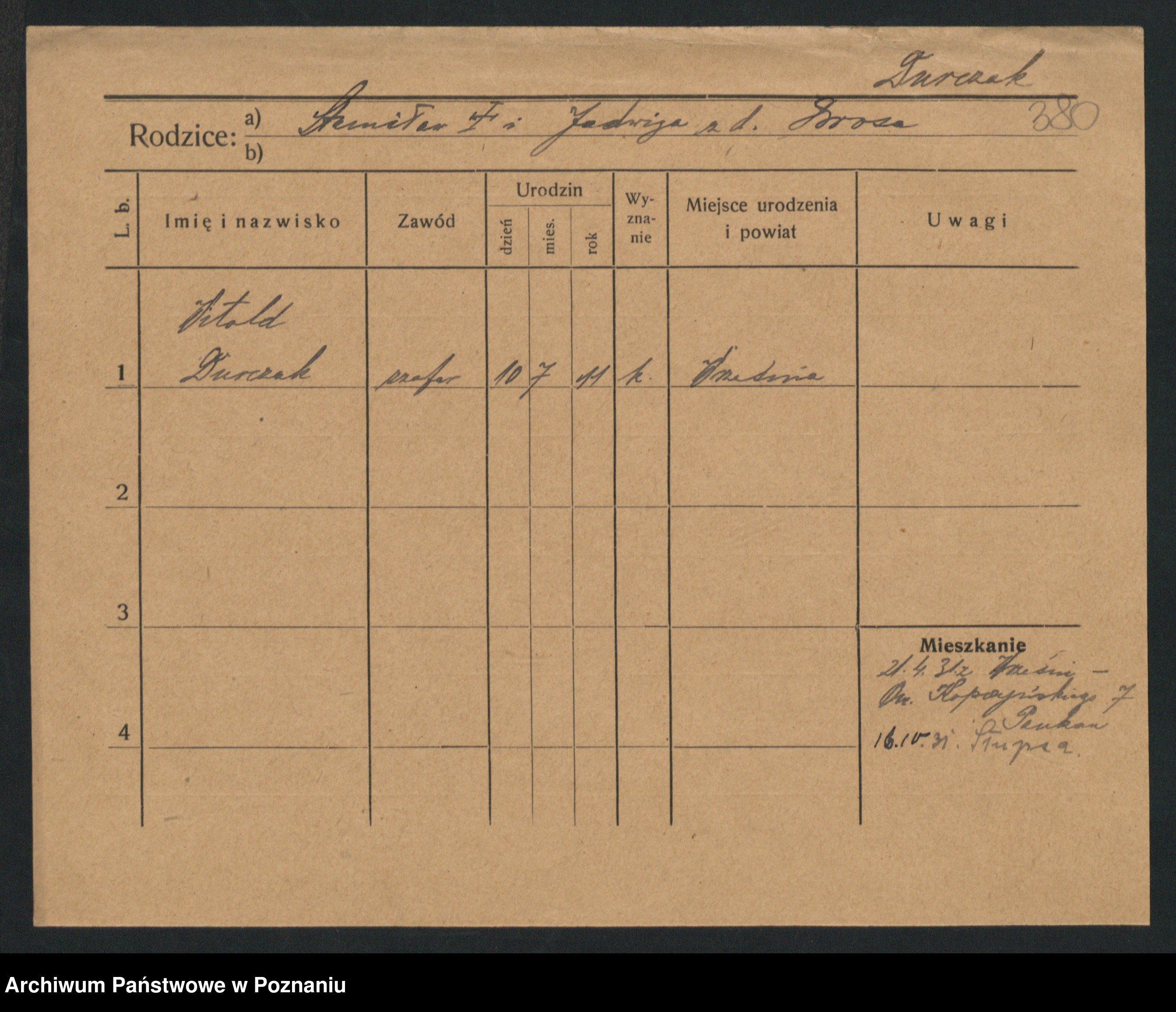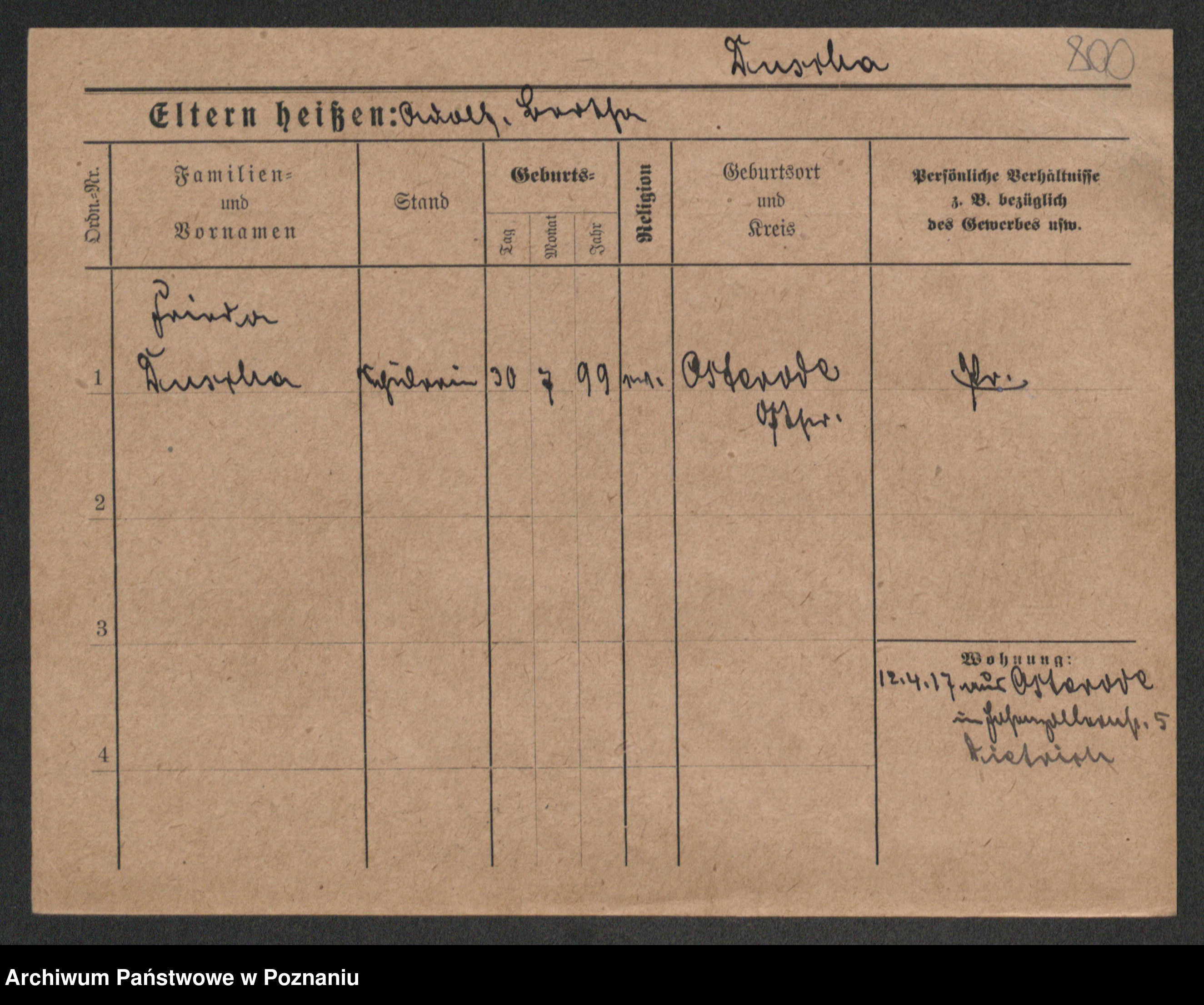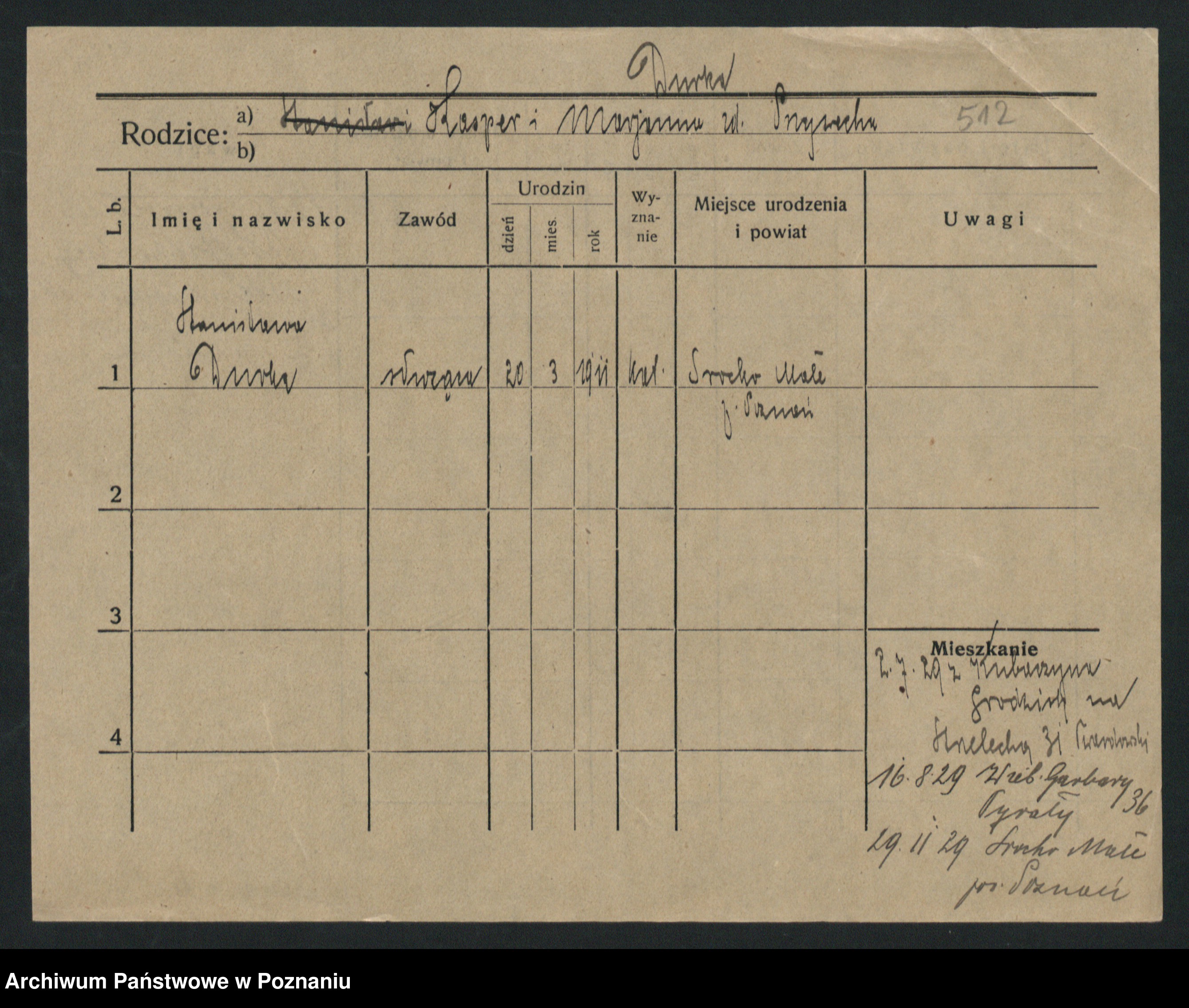 Podgląd karty osobowej dostępny jest po kliknięciu na nazwisko lub ikonkę karty. Można dokonywać powiększenia (ikony na górze) lub przechodzić między kolejnymi skanami (strzałki po bokach).