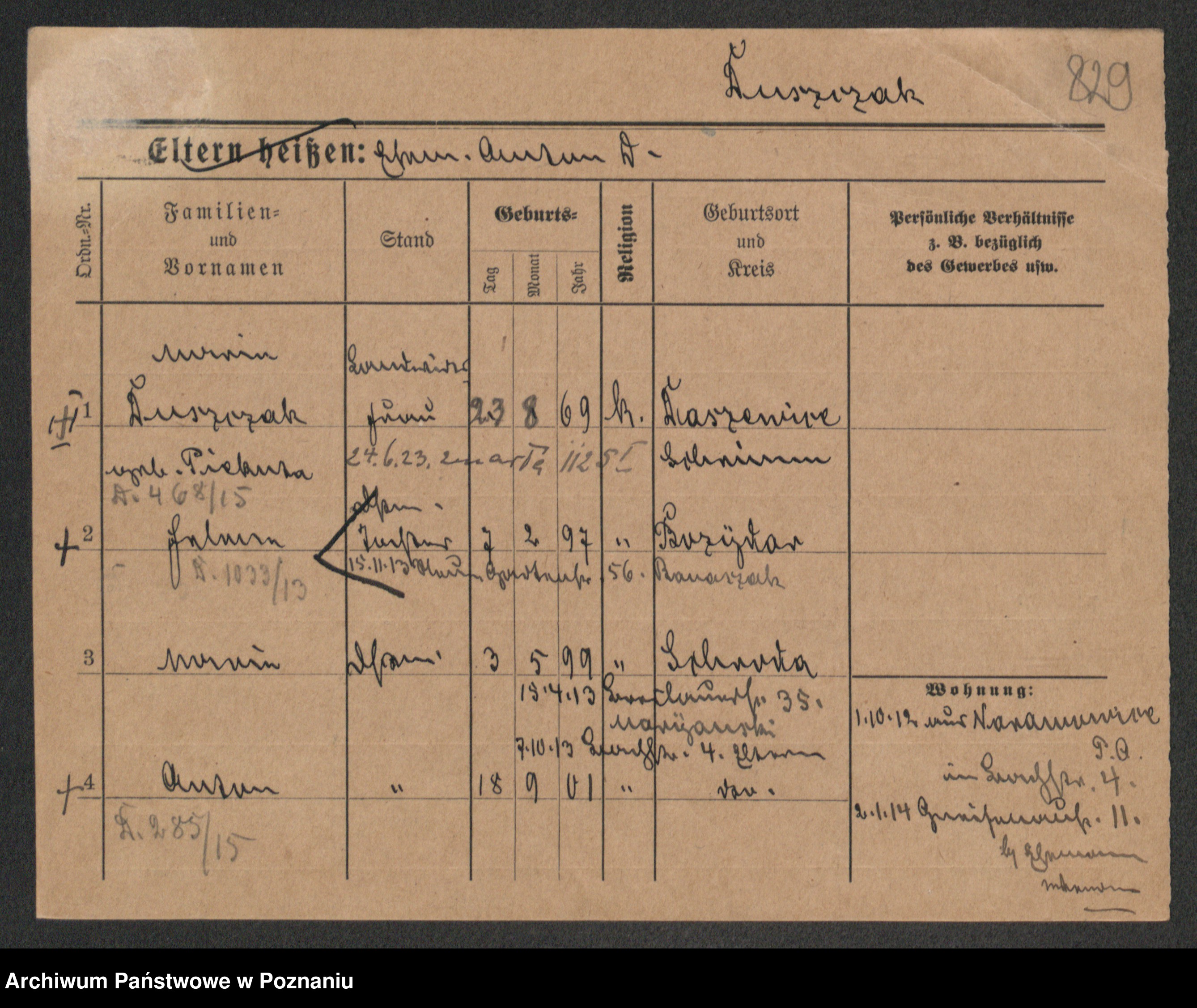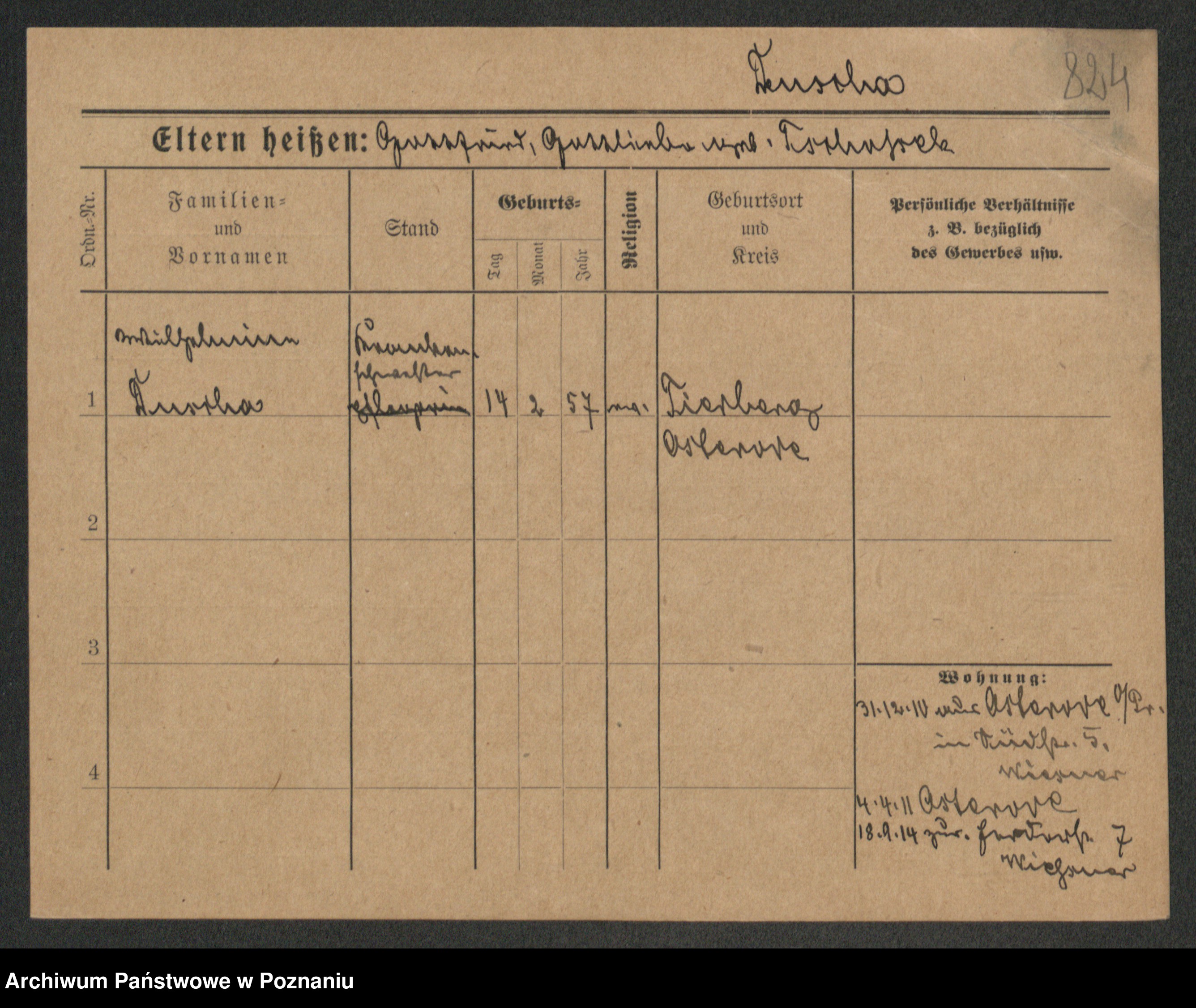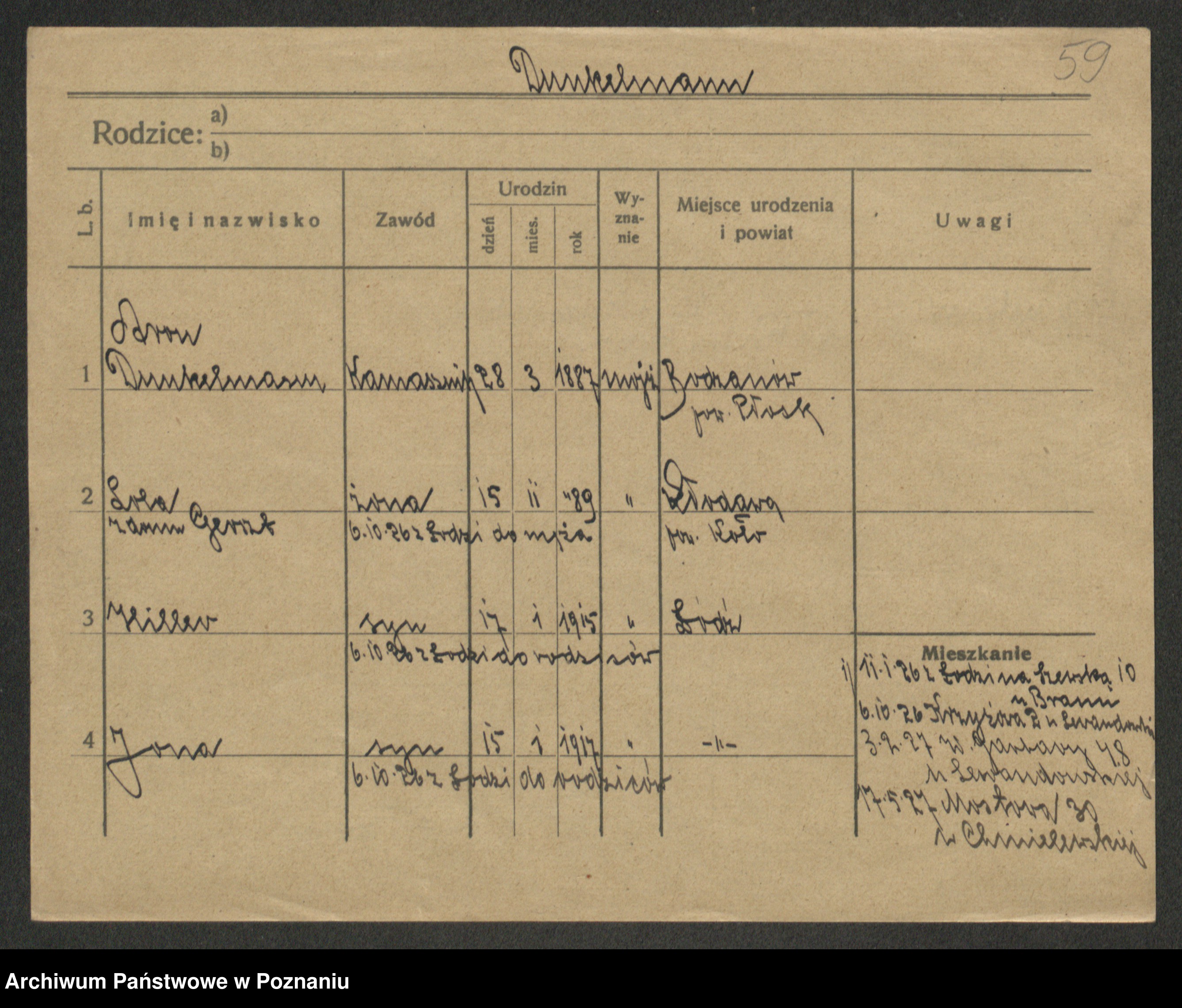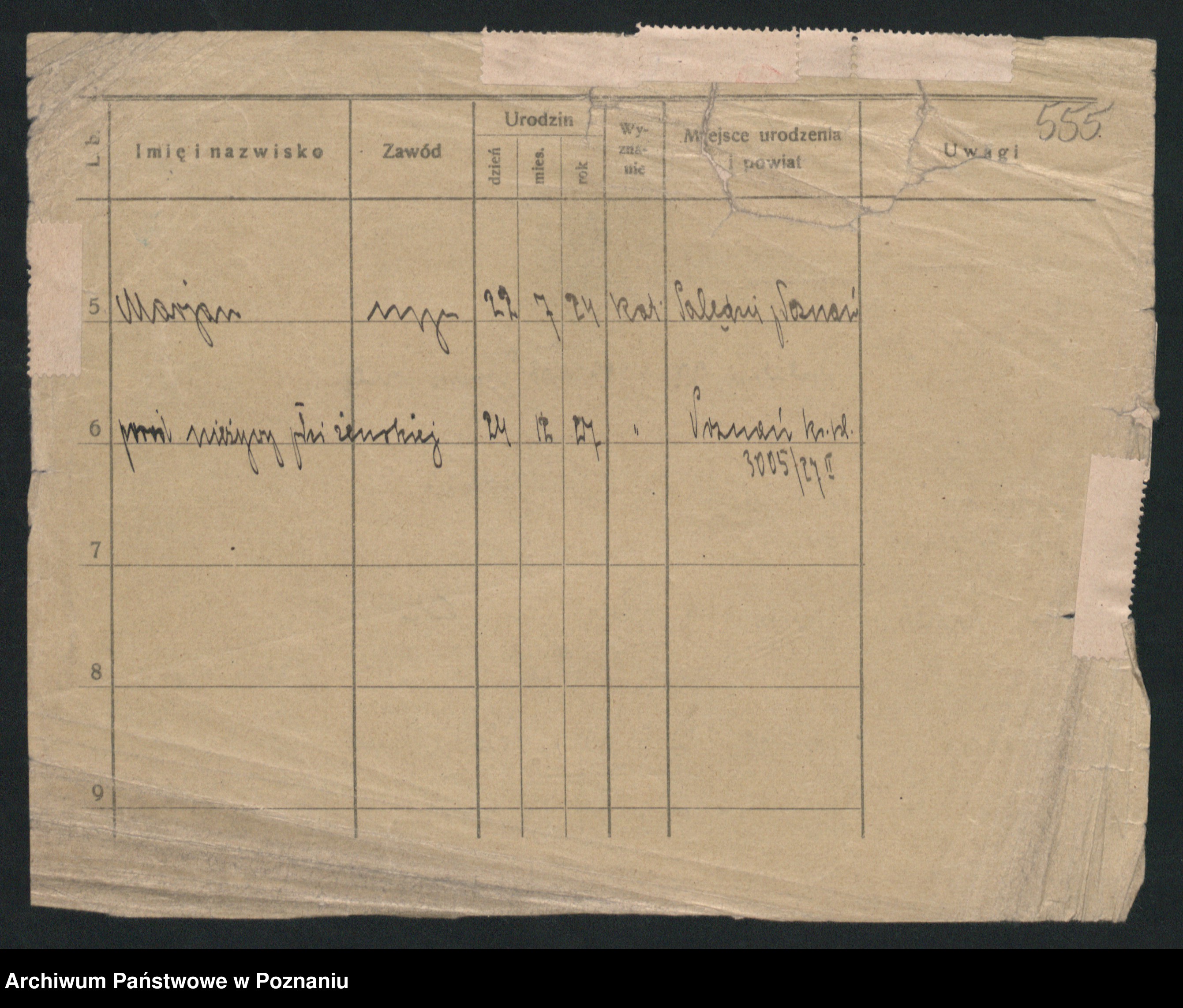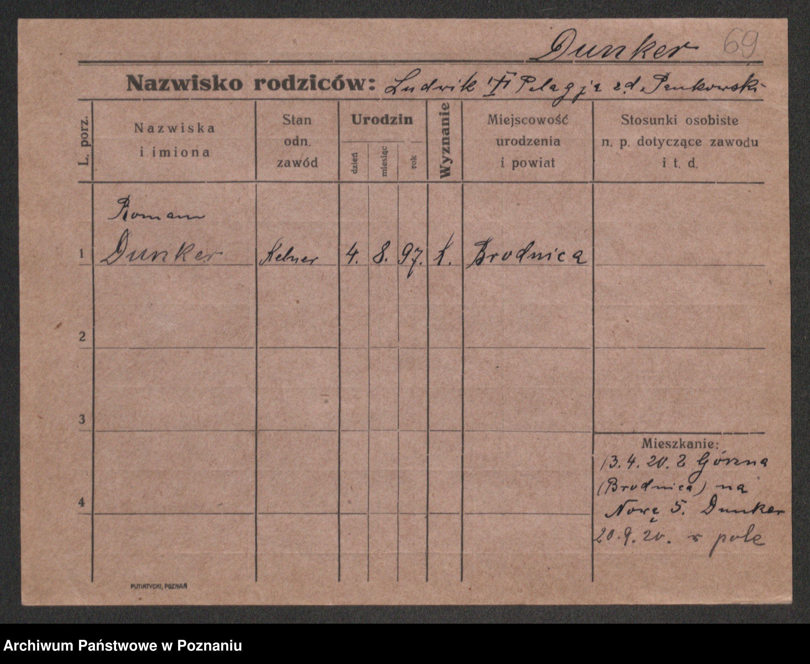 Podgląd karty osobowej dostępny jest po kliknięciu na nazwisko lub ikonkę karty. Można dokonywać powiększenia (ikony na górze) lub przechodzić między kolejnymi skanami (strzałki po bokach).