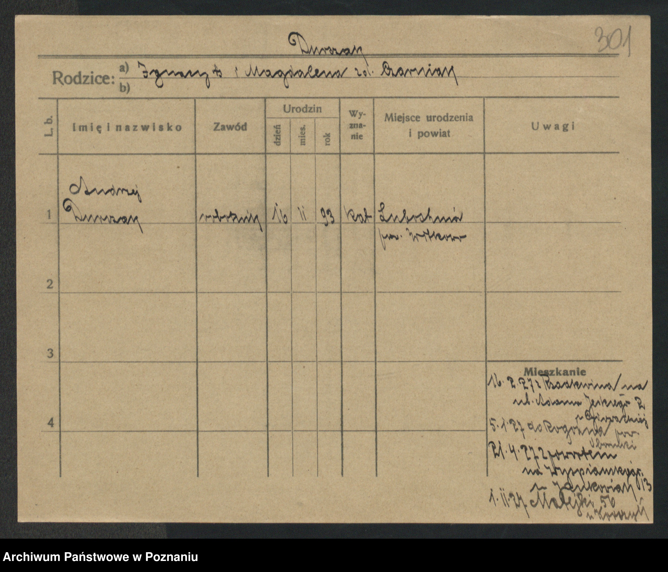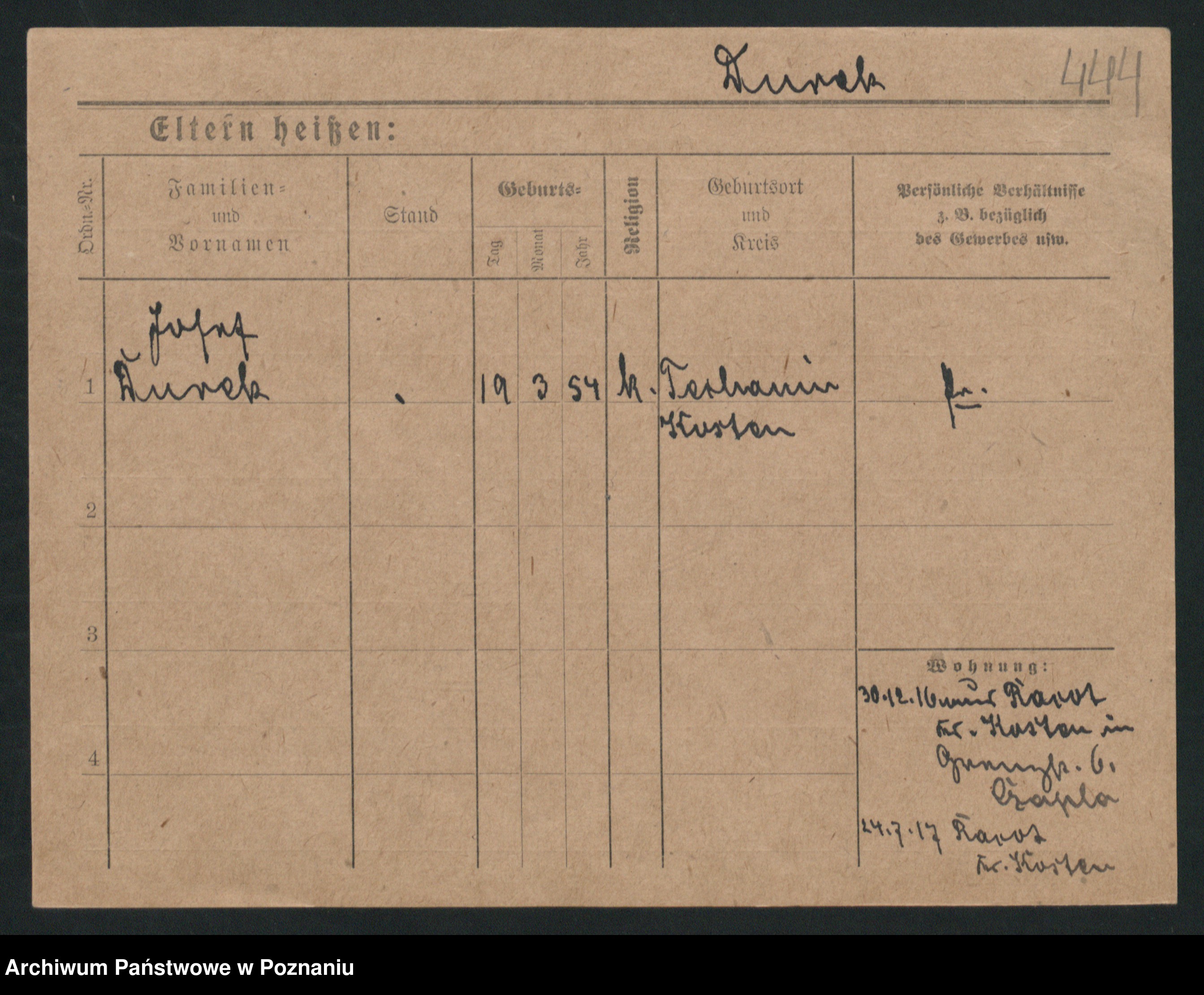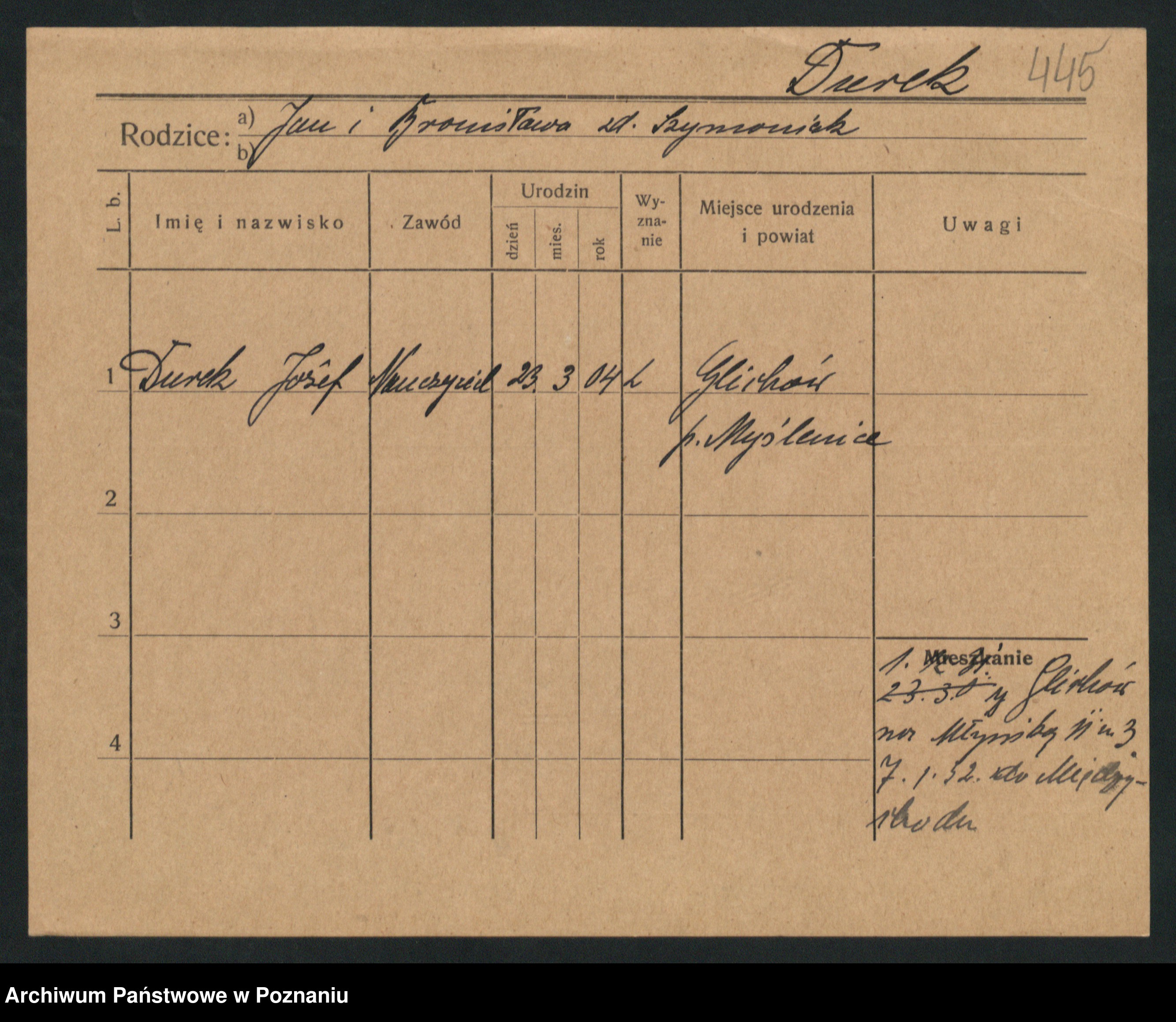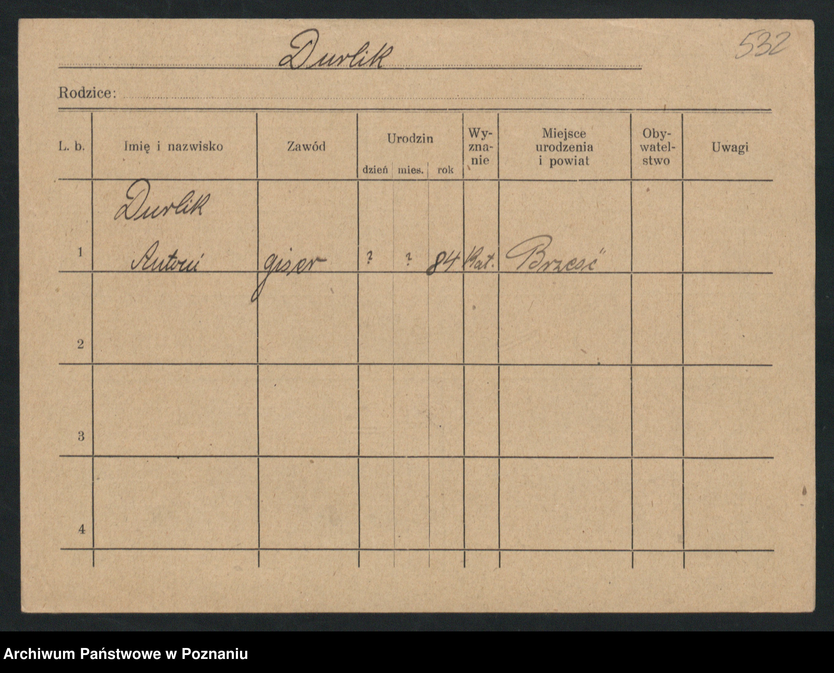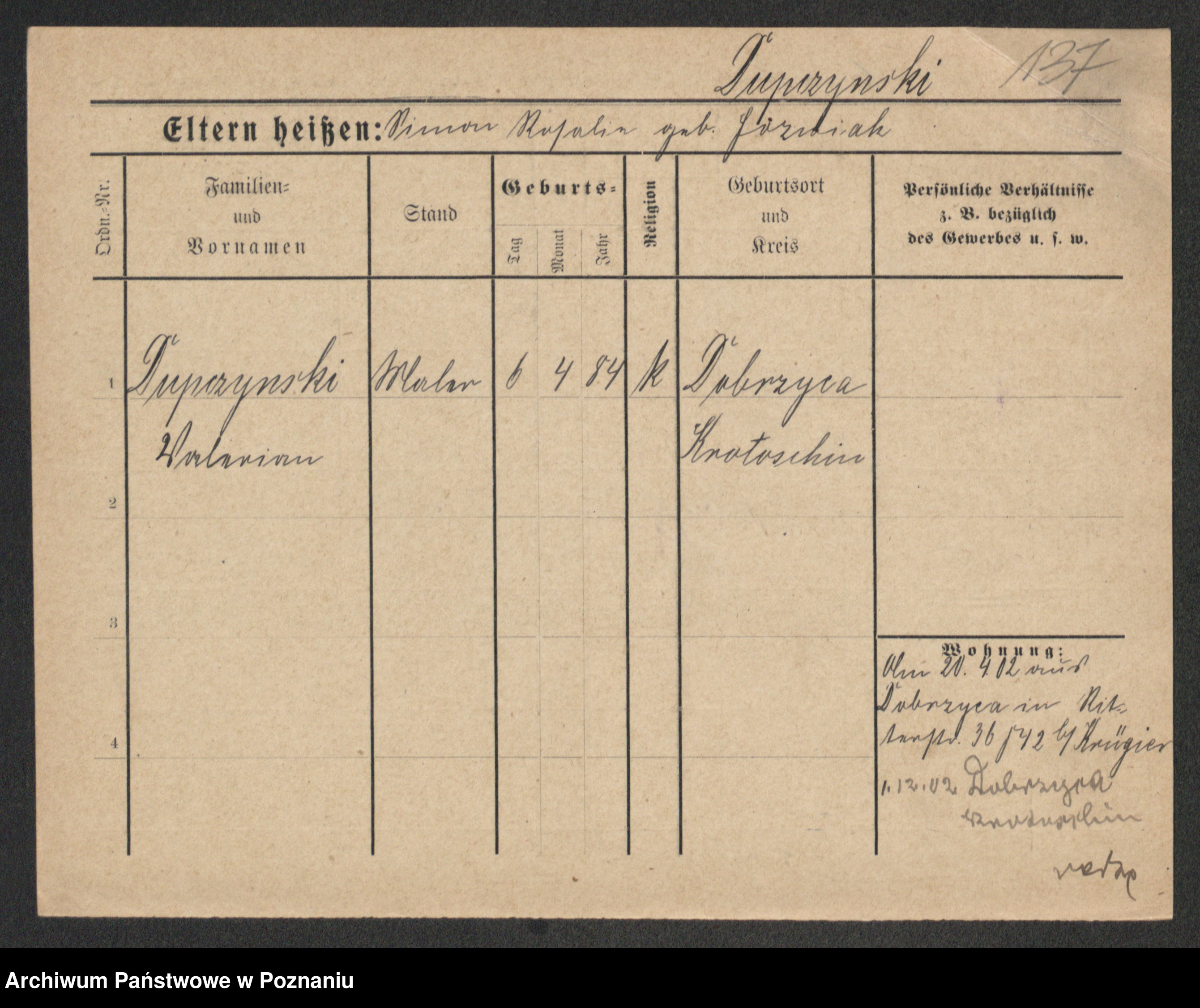 Podgląd karty osobowej dostępny jest po kliknięciu na nazwisko lub ikonkę karty. Można dokonywać powiększenia (ikony na górze) lub przechodzić między kolejnymi skanami (strzałki po bokach).