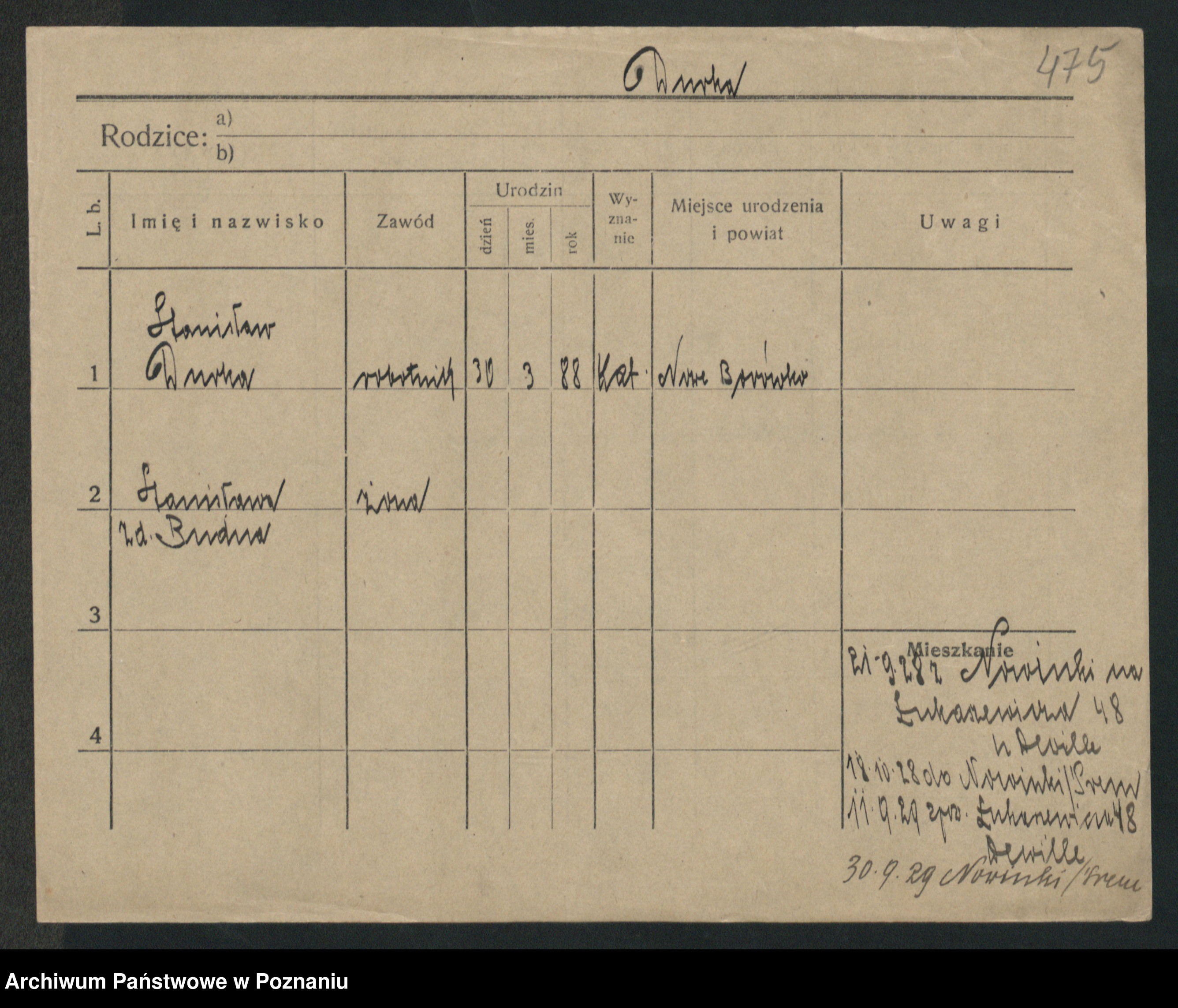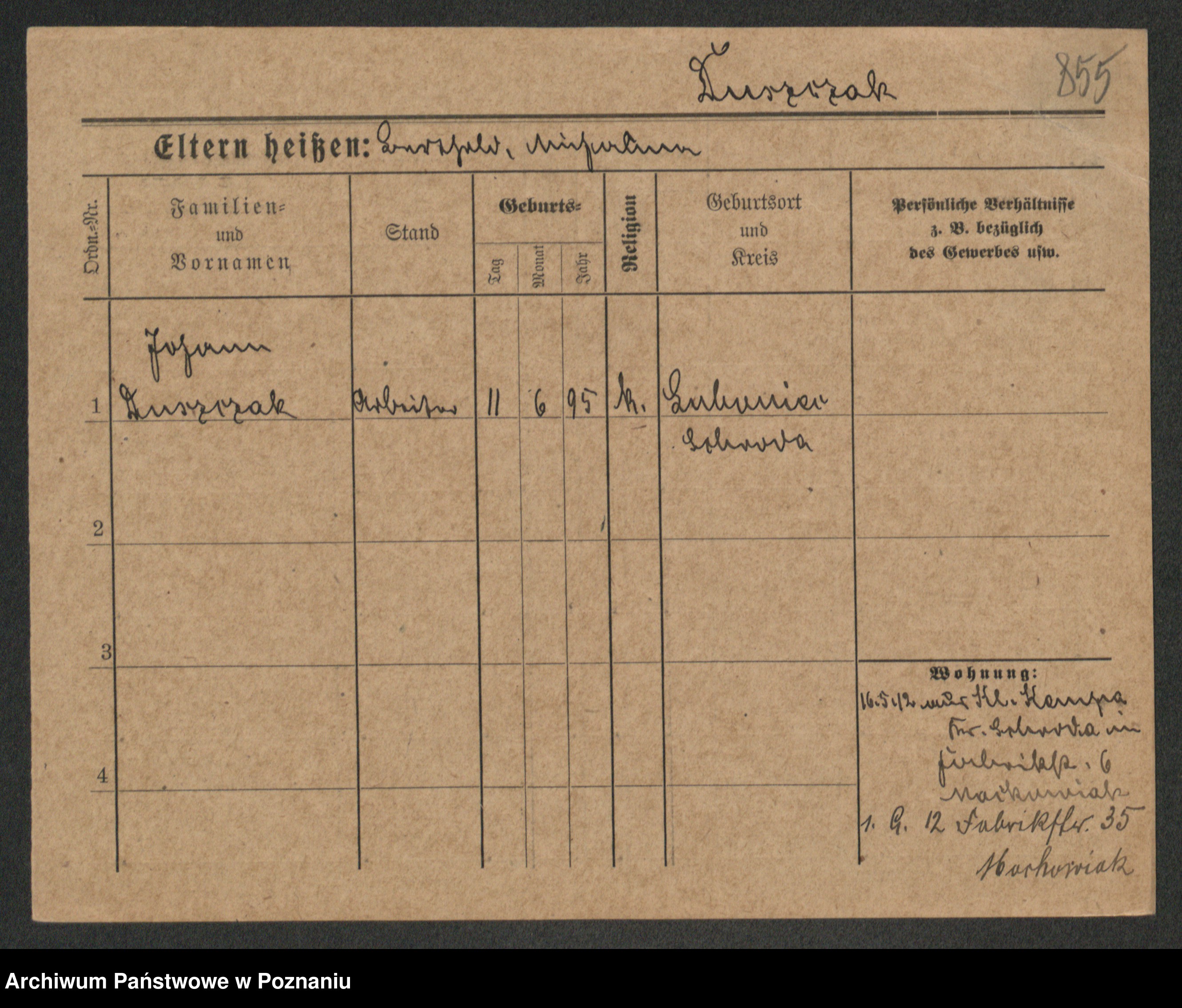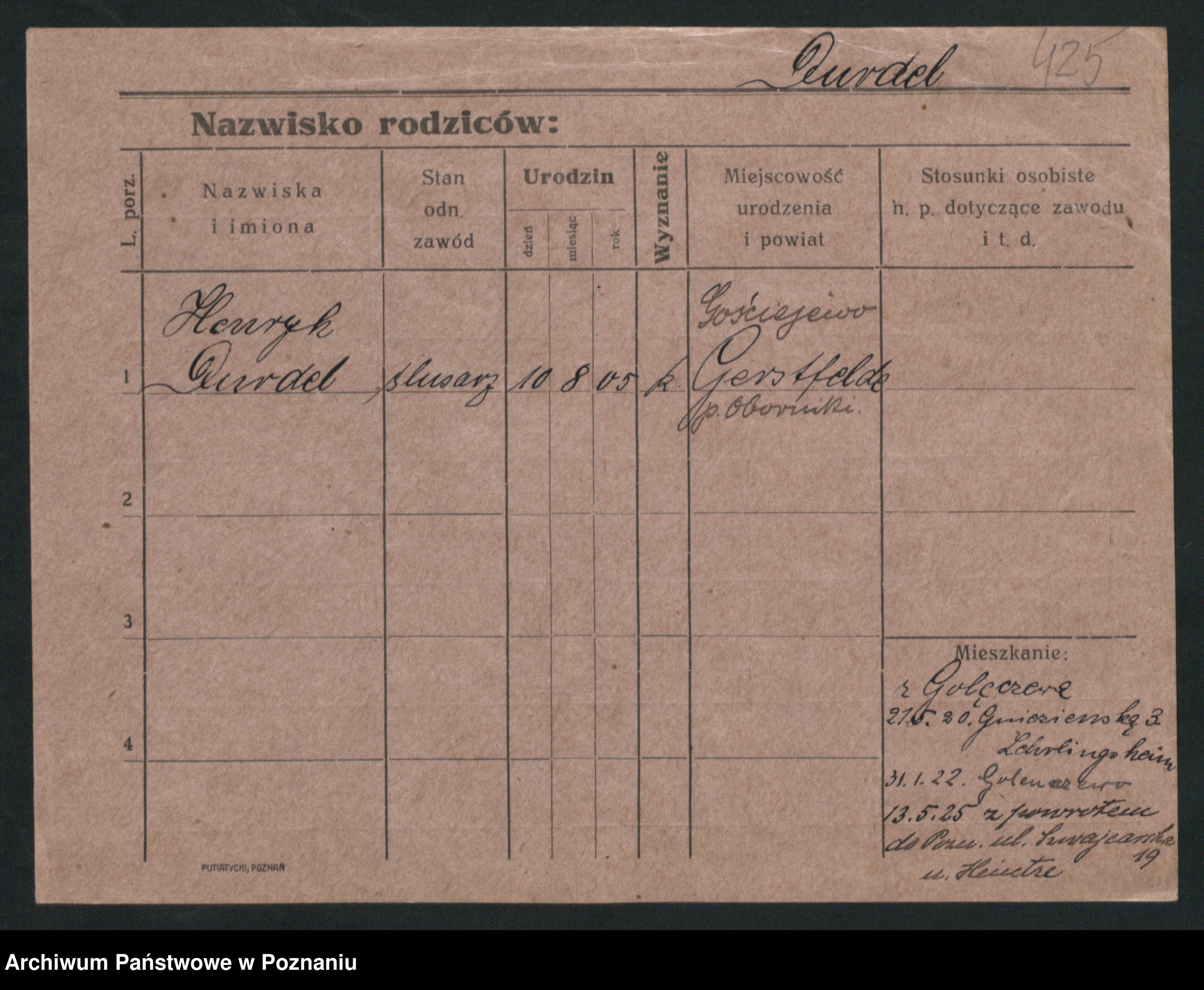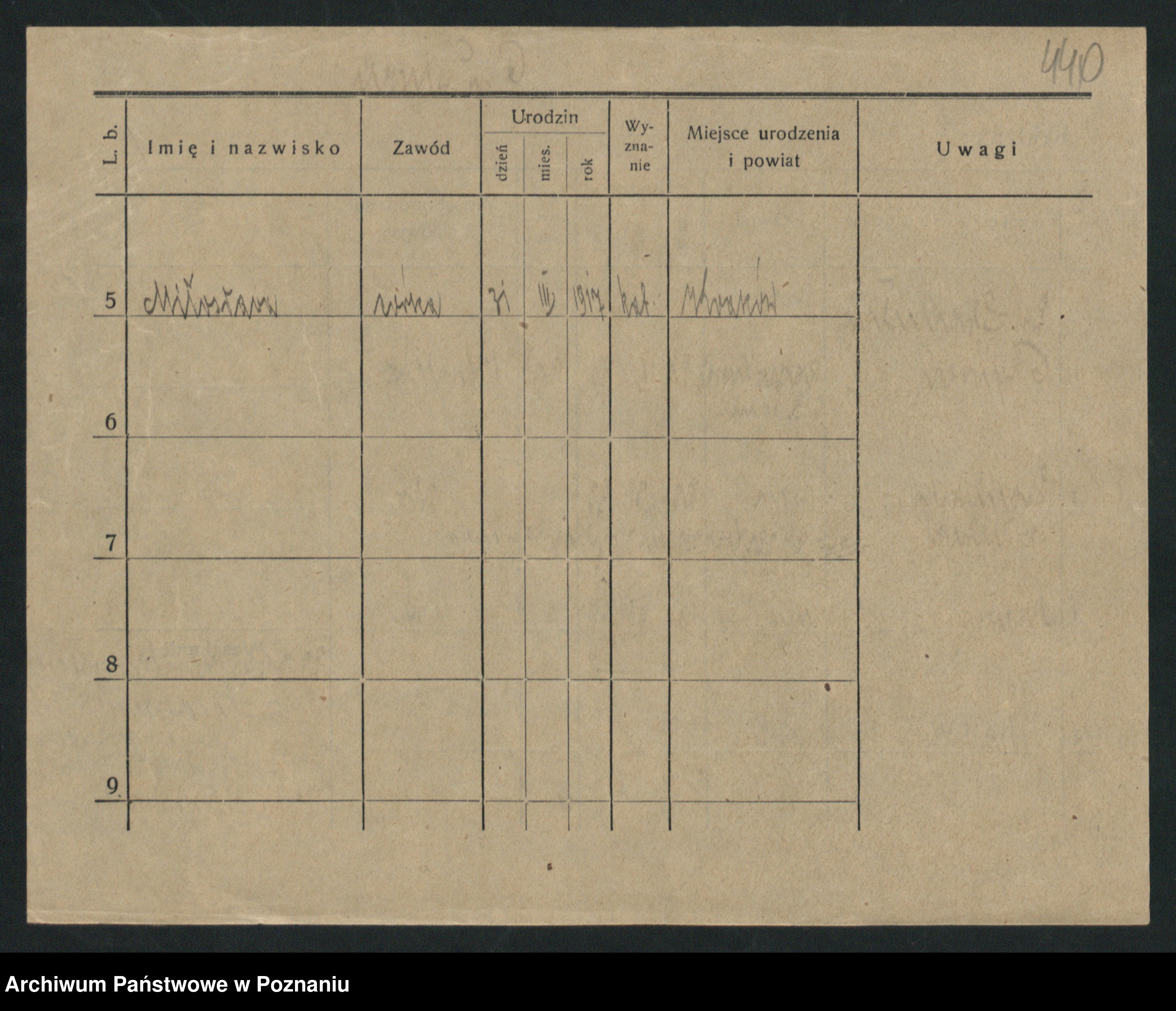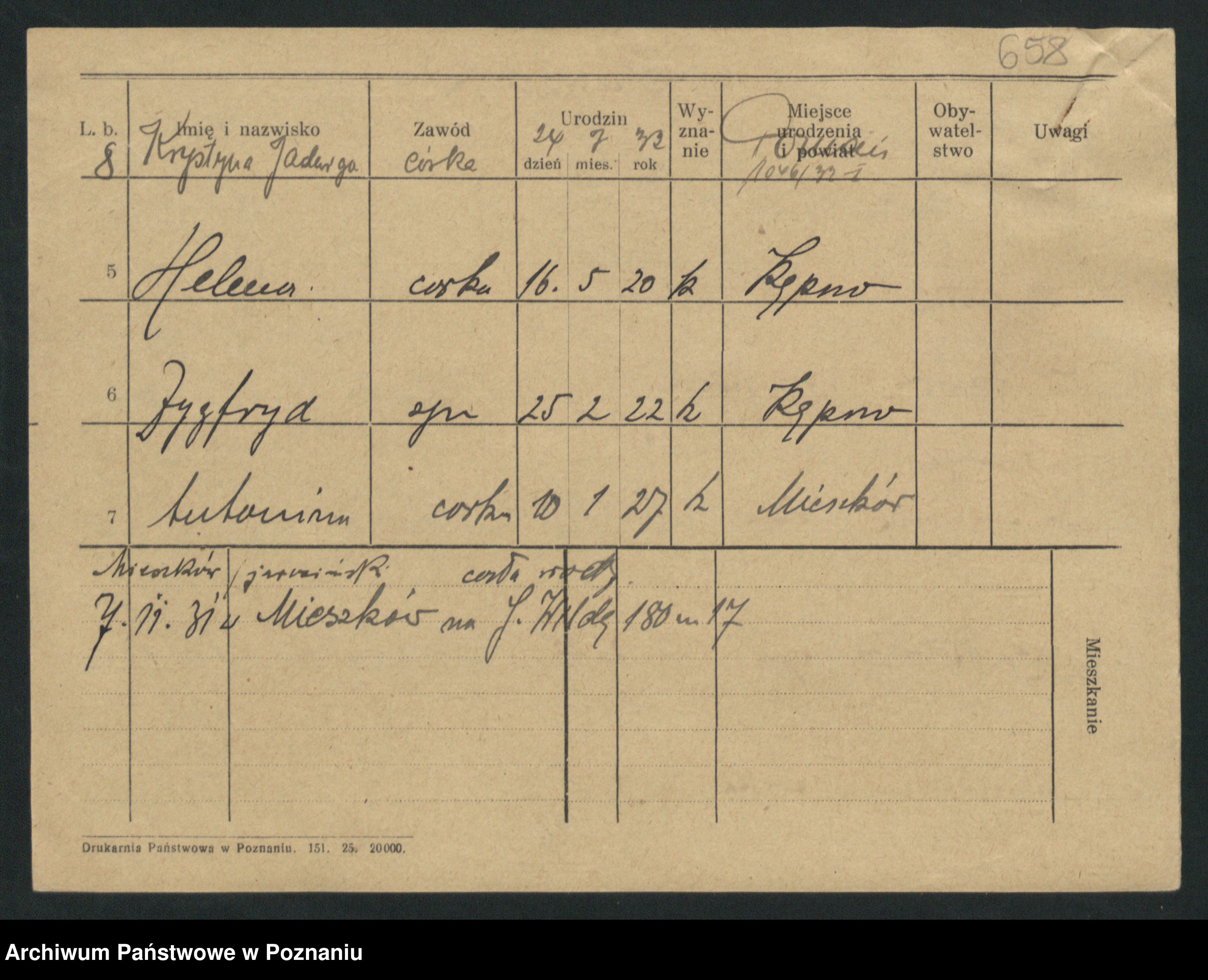 Podgląd karty osobowej dostępny jest po kliknięciu na nazwisko lub ikonkę karty. Można dokonywać powiększenia (ikony na górze) lub przechodzić między kolejnymi skanami (strzałki po bokach).