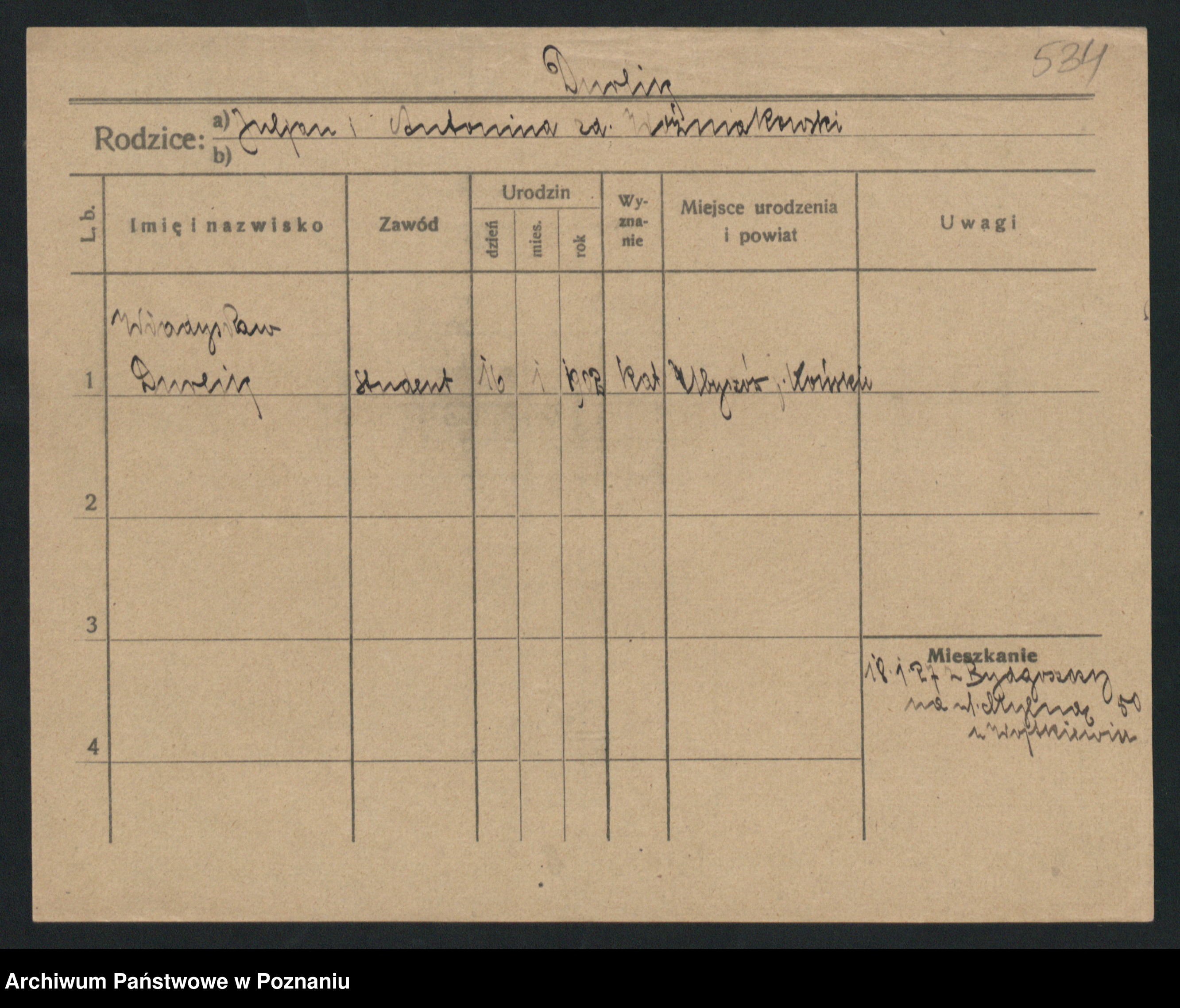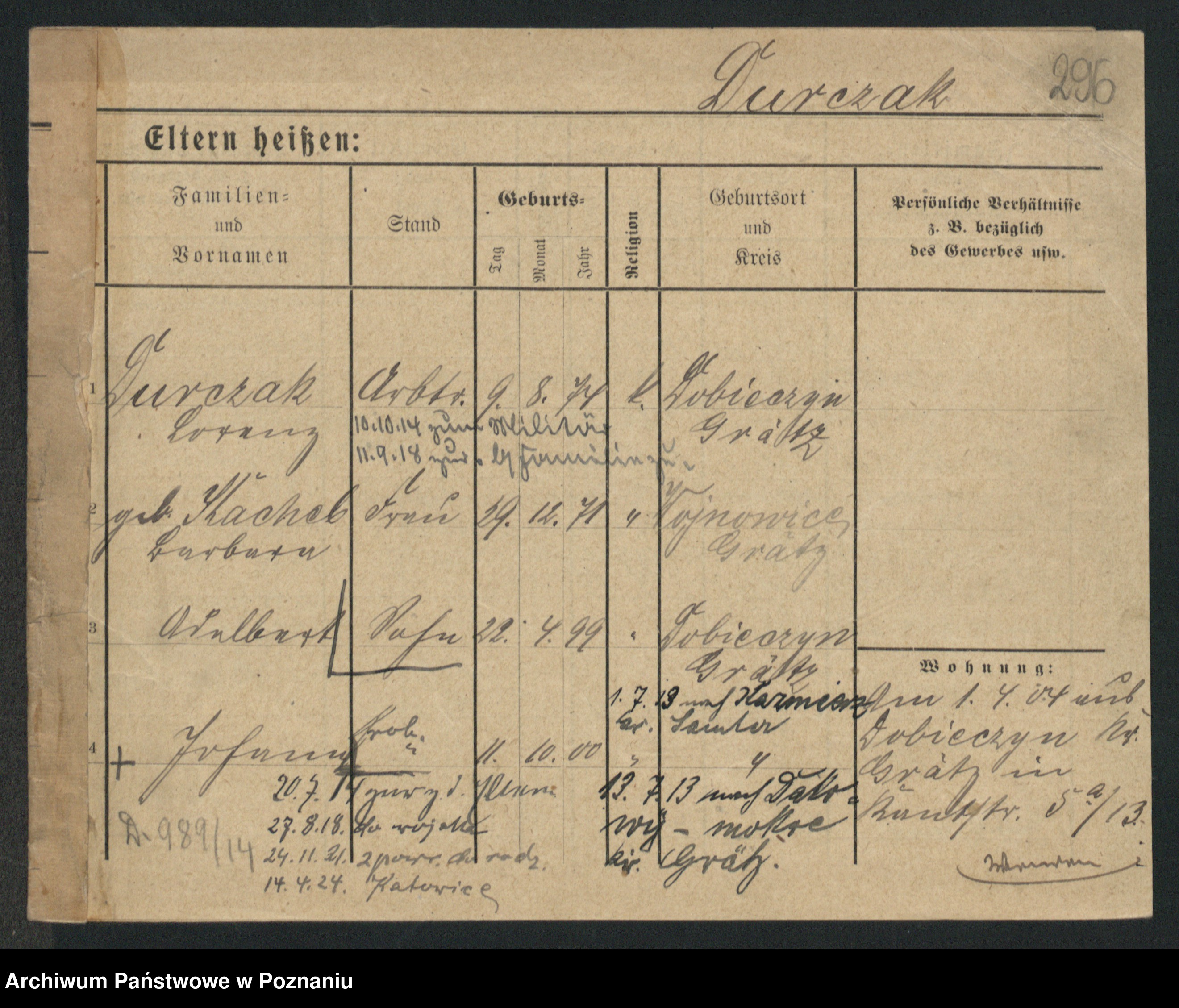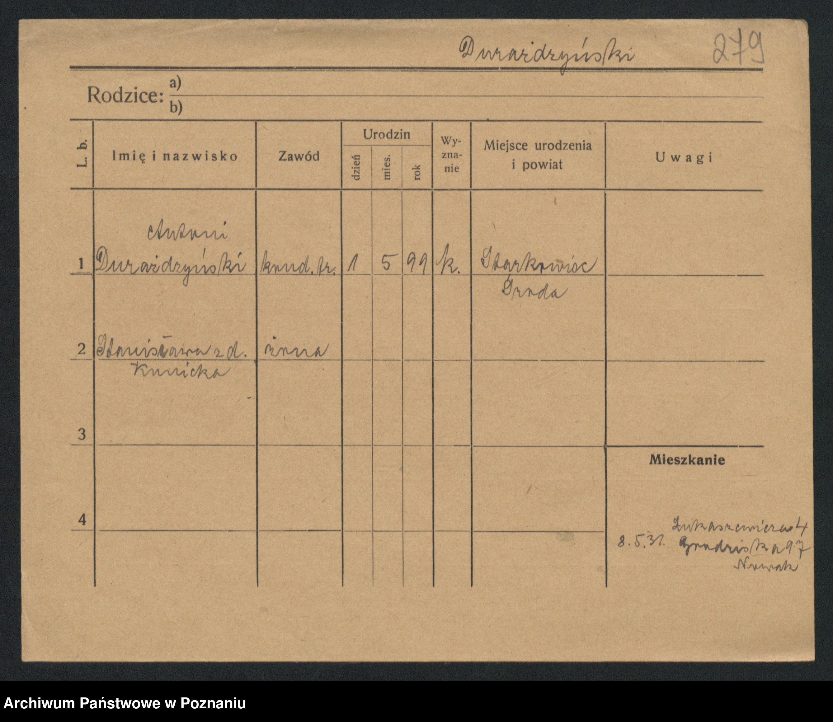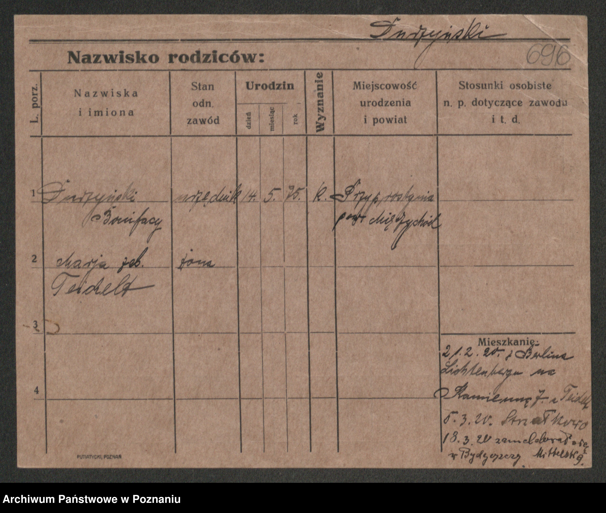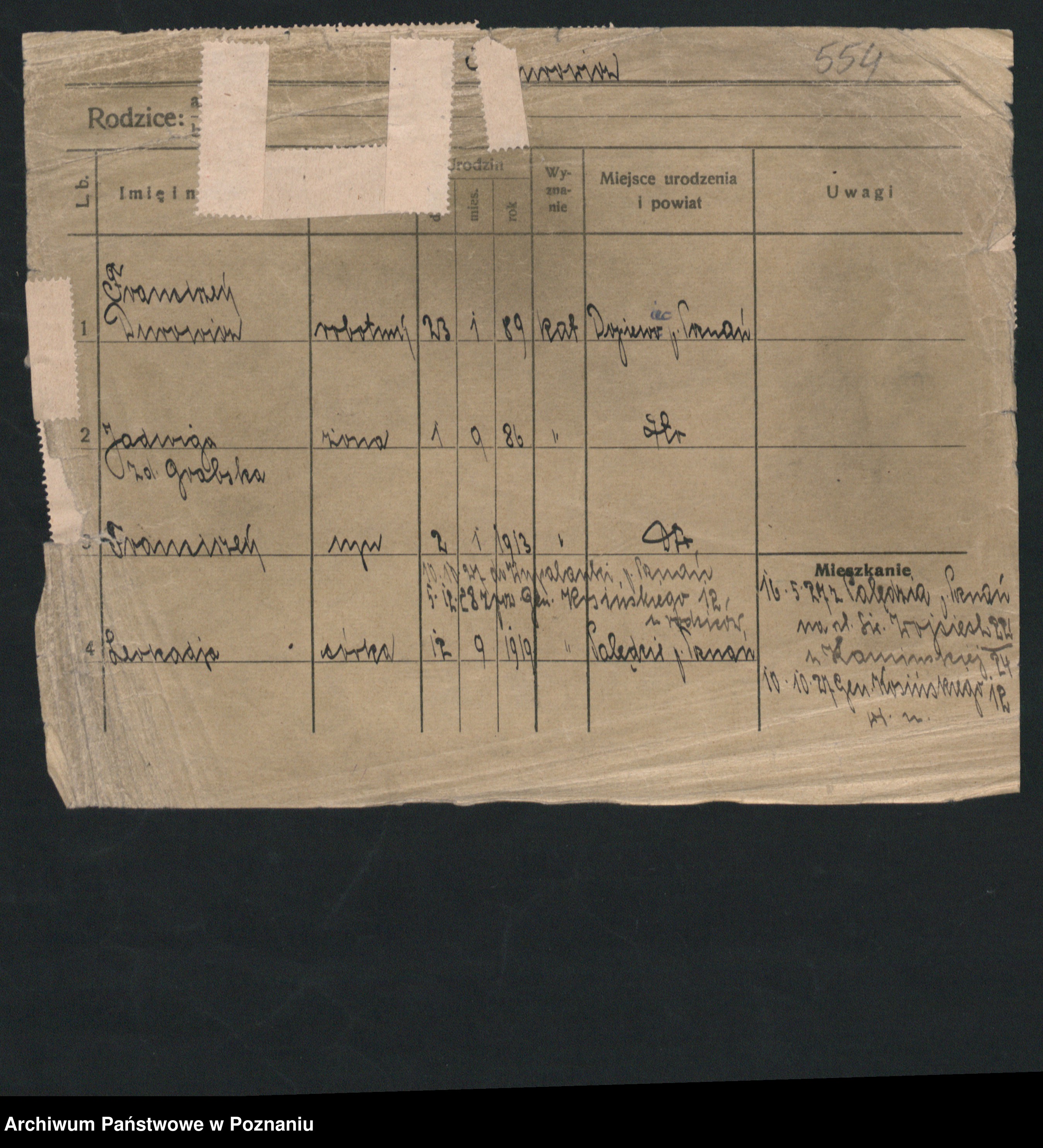 Podgląd karty osobowej dostępny jest po kliknięciu na nazwisko lub ikonkę karty. Można dokonywać powiększenia (ikony na górze) lub przechodzić między kolejnymi skanami (strzałki po bokach).