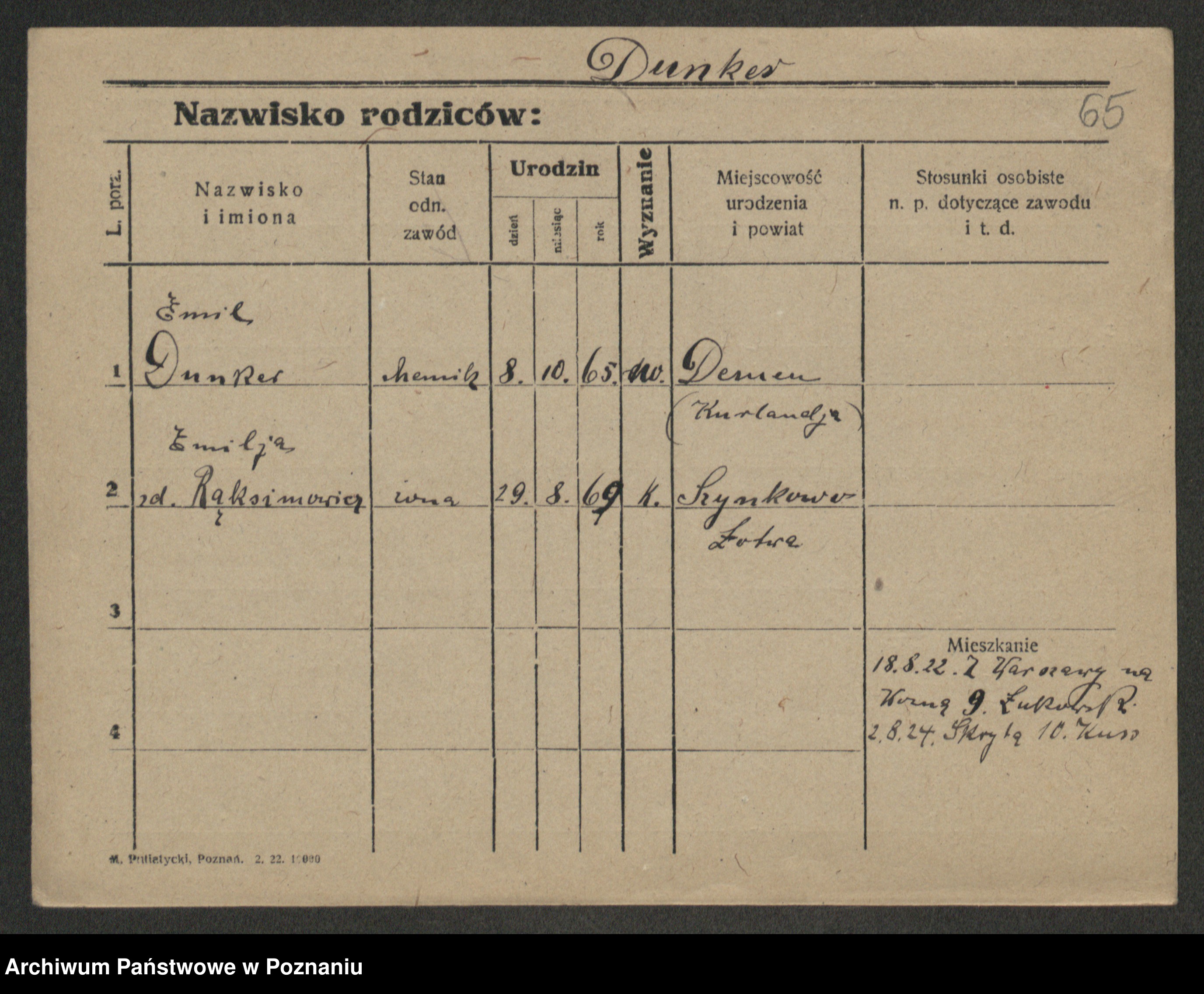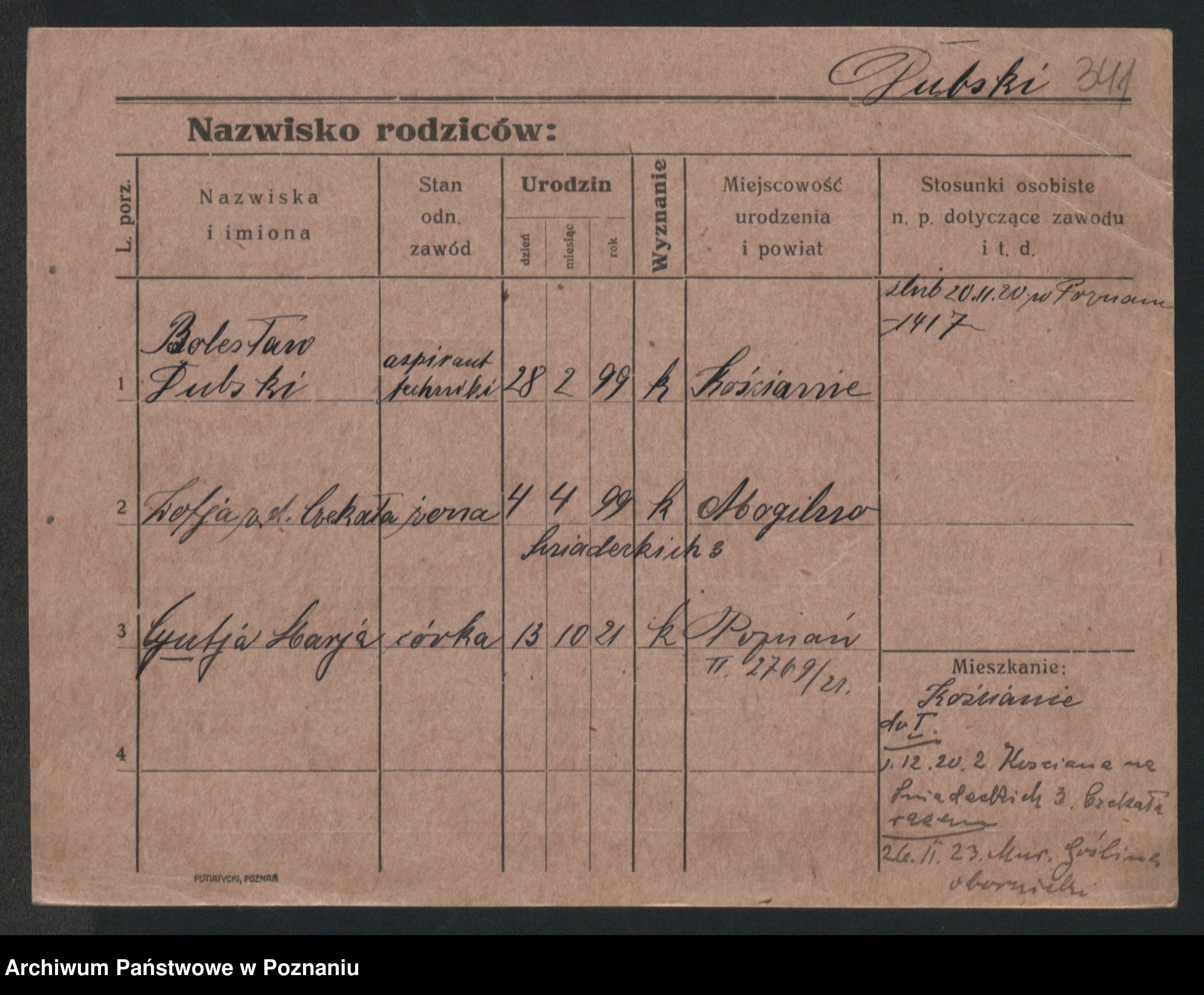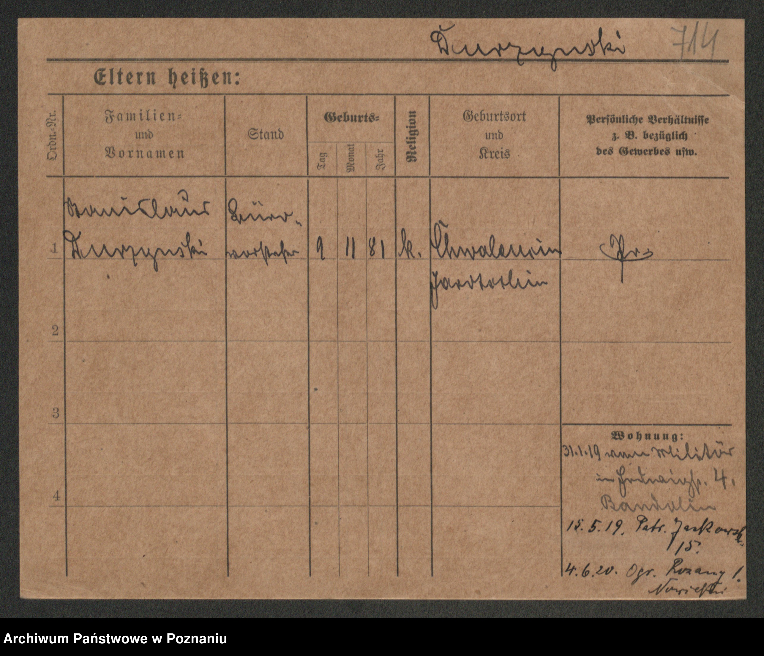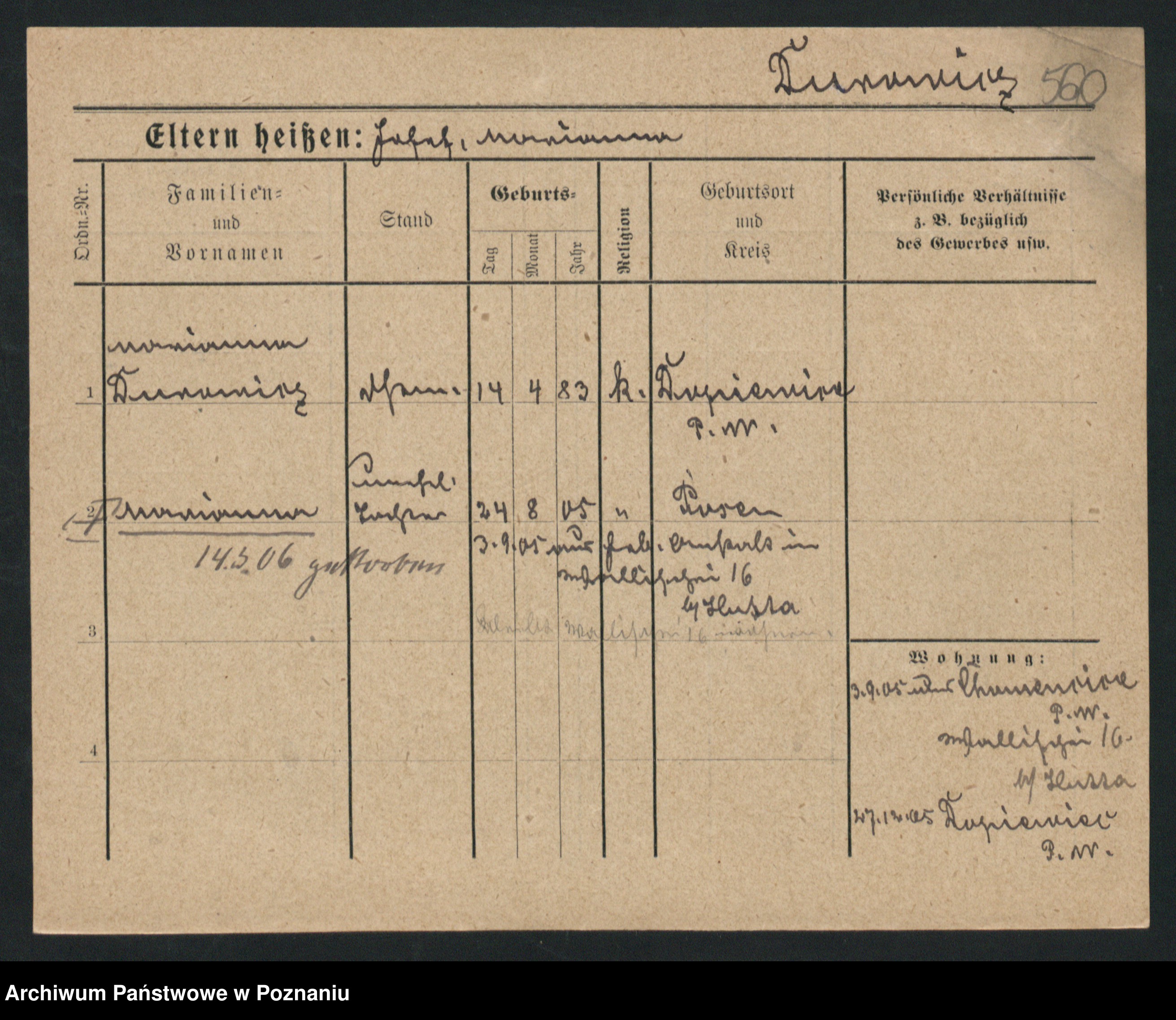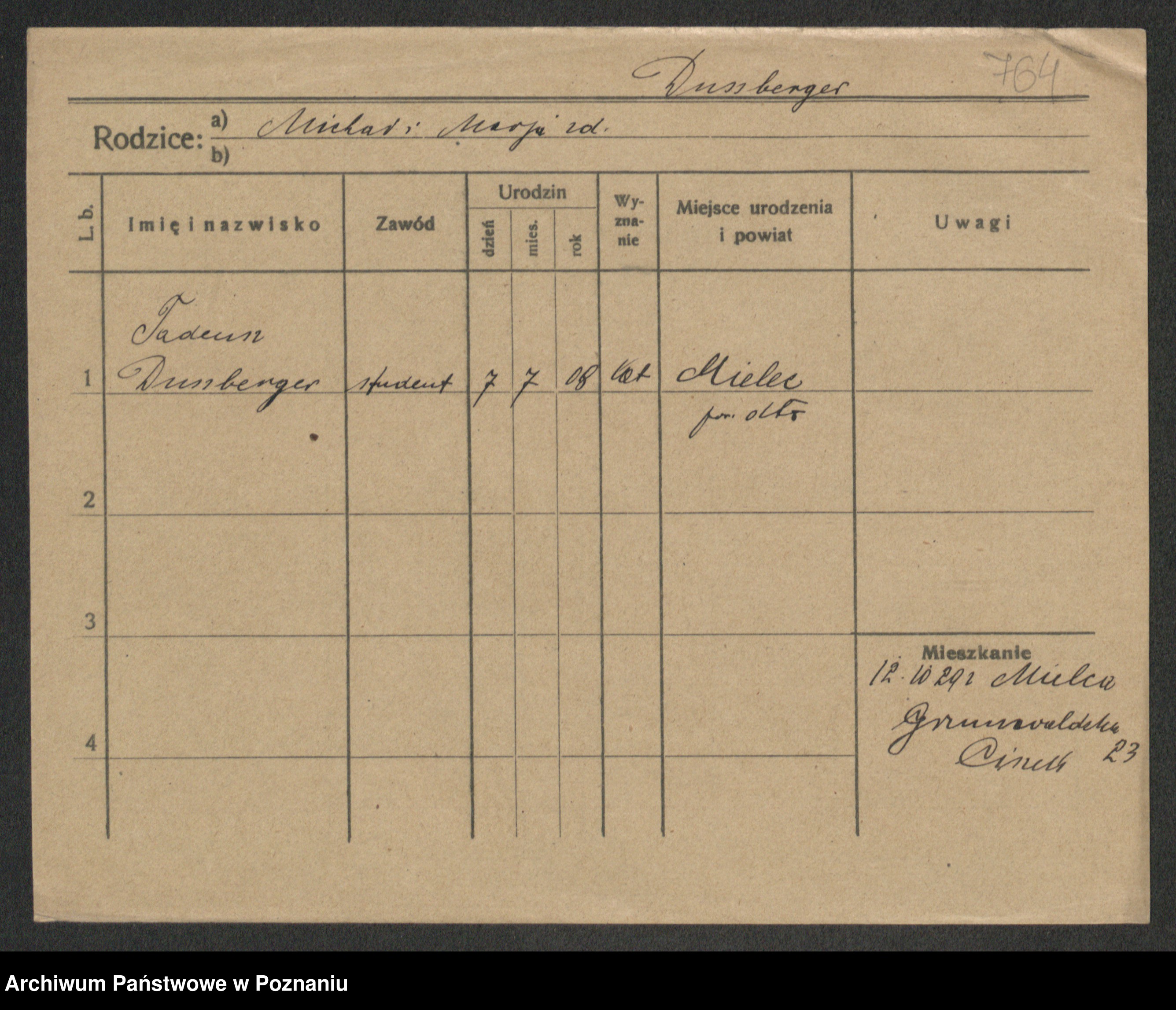Podgląd karty osobowej dostępny jest po kliknięciu na nazwisko lub ikonkę karty. Można dokonywać powiększenia (ikony na górze) lub przechodzić między kolejnymi skanami (strzałki po bokach).