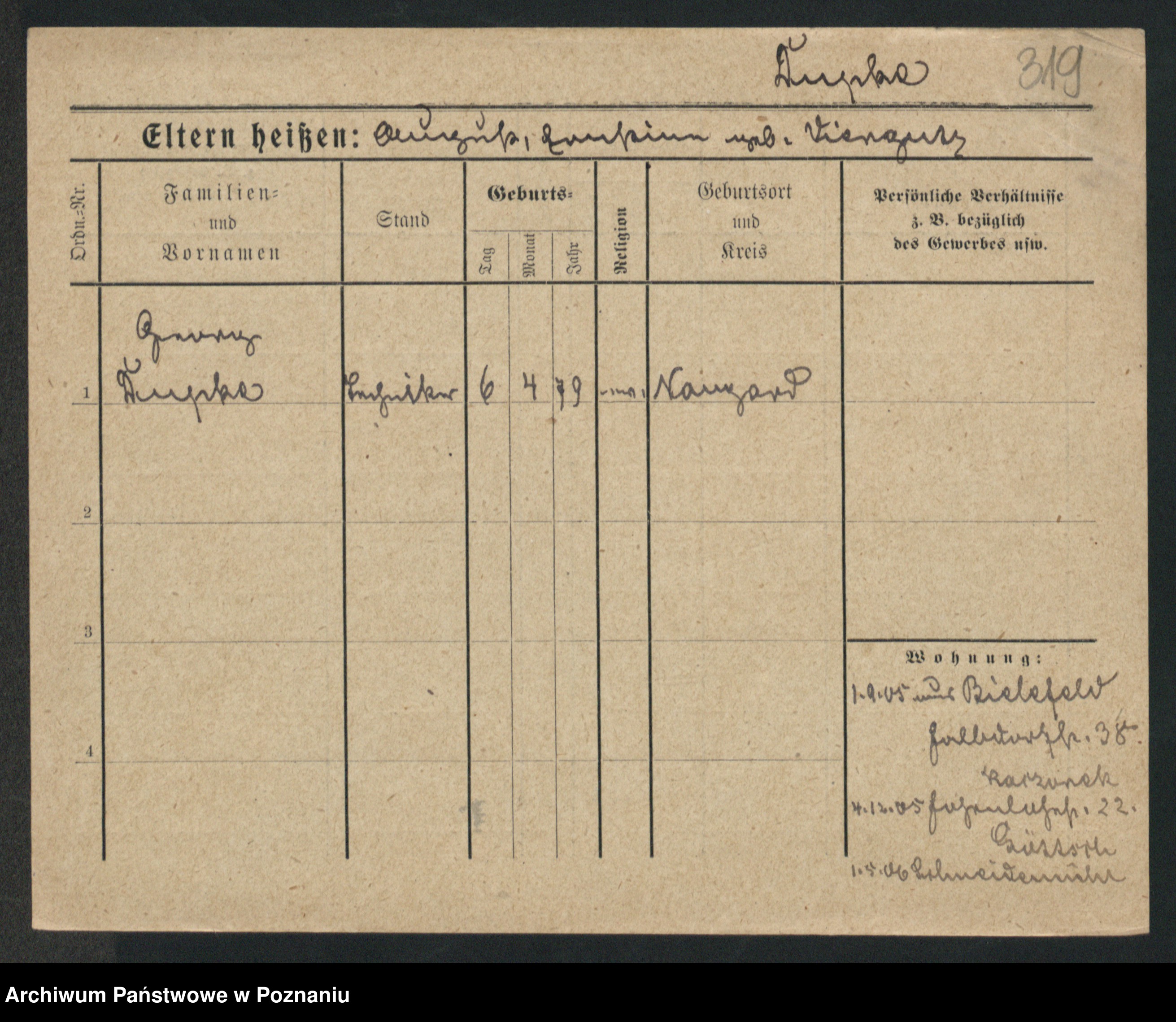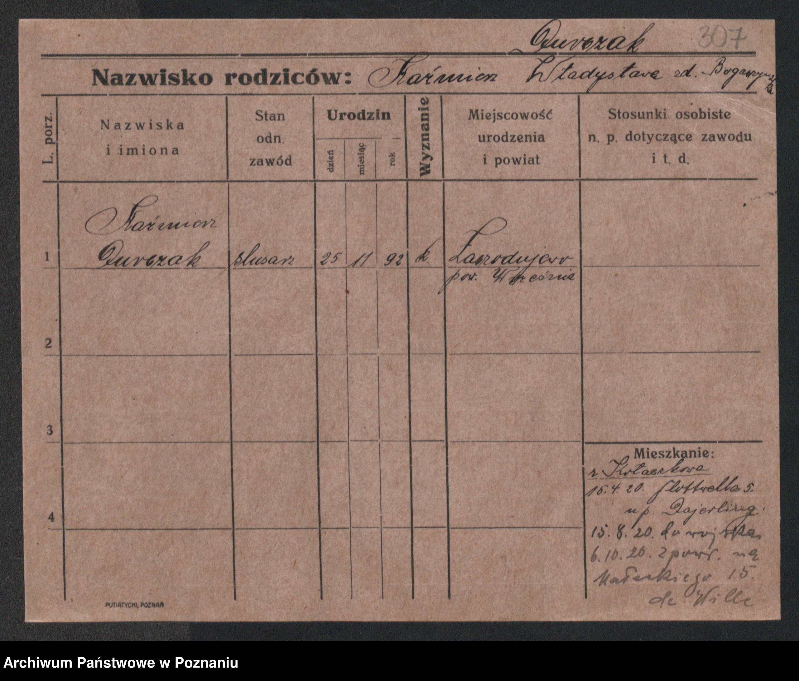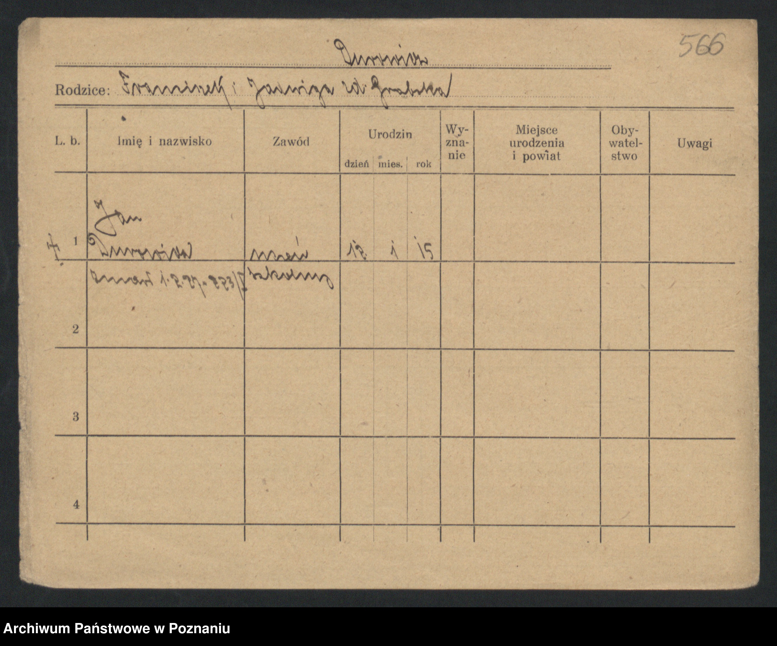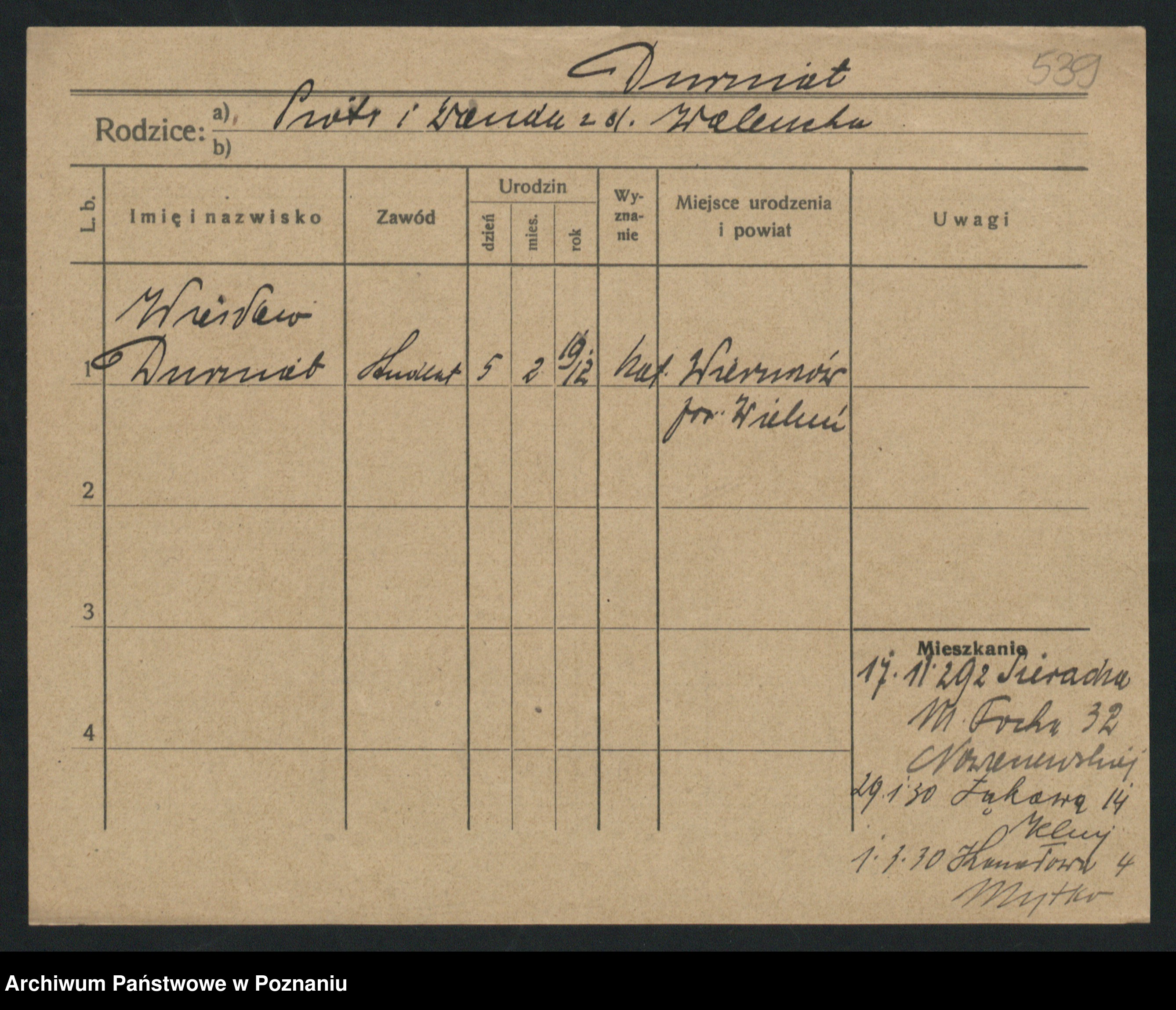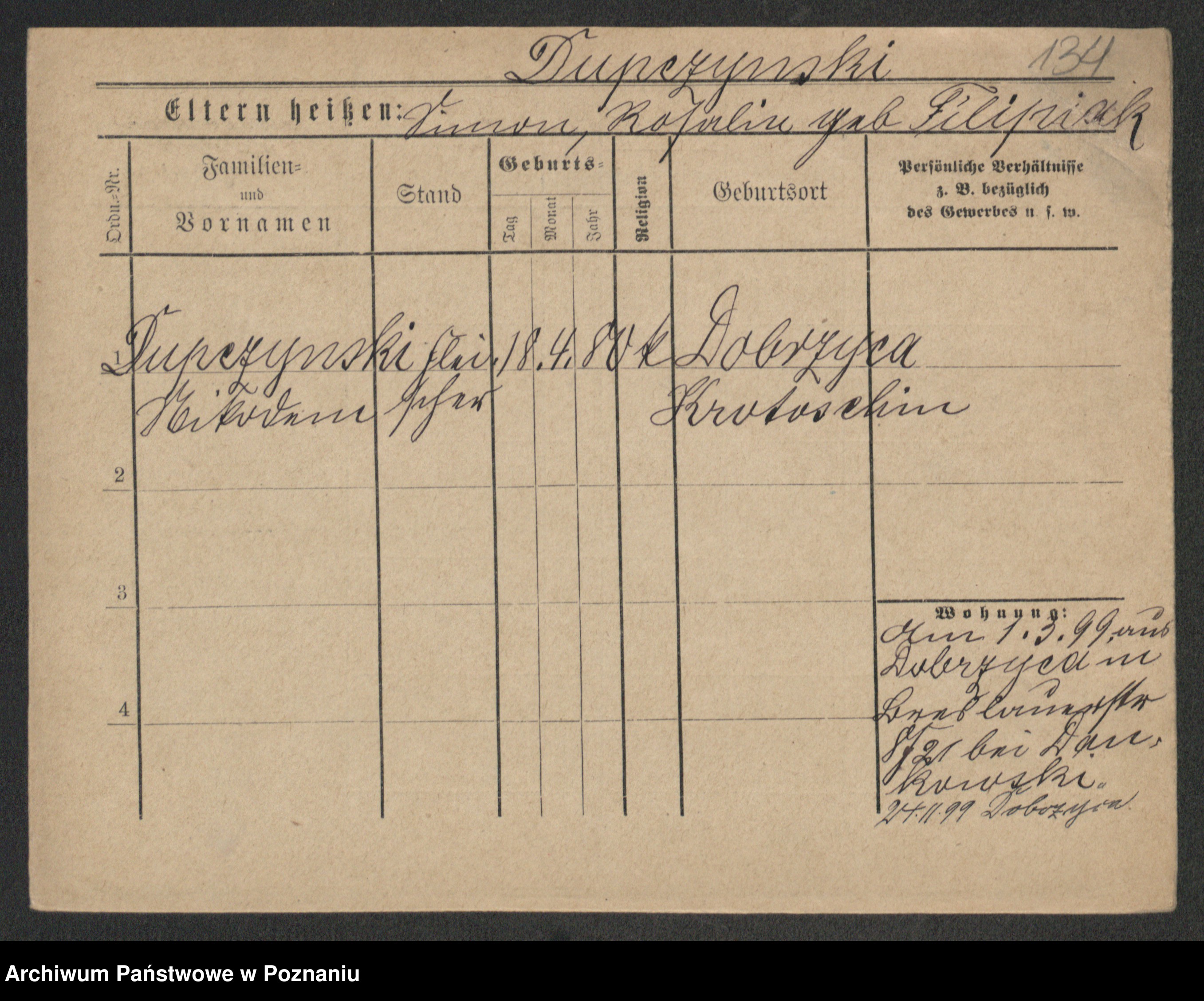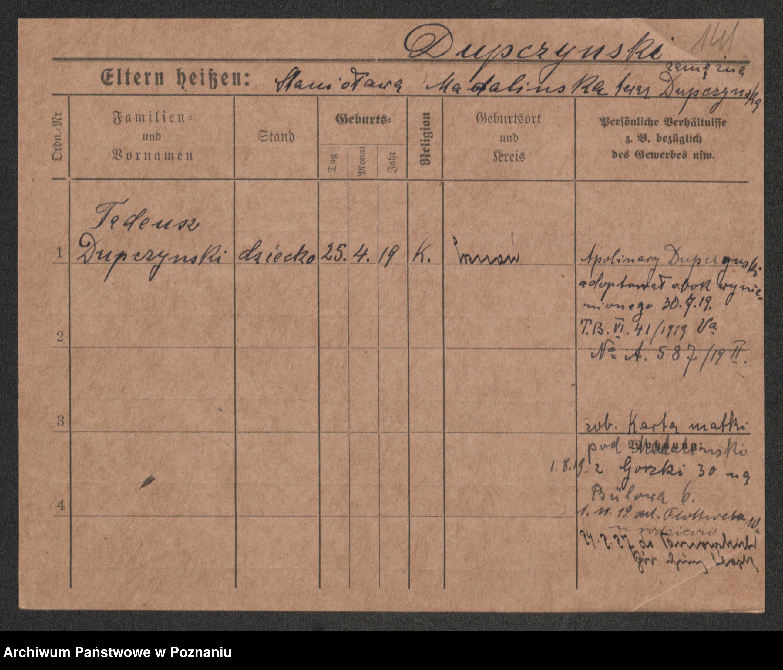 Podgląd karty osobowej dostępny jest po kliknięciu na nazwisko lub ikonkę karty. Można dokonywać powiększenia (ikony na górze) lub przechodzić między kolejnymi skanami (strzałki po bokach).