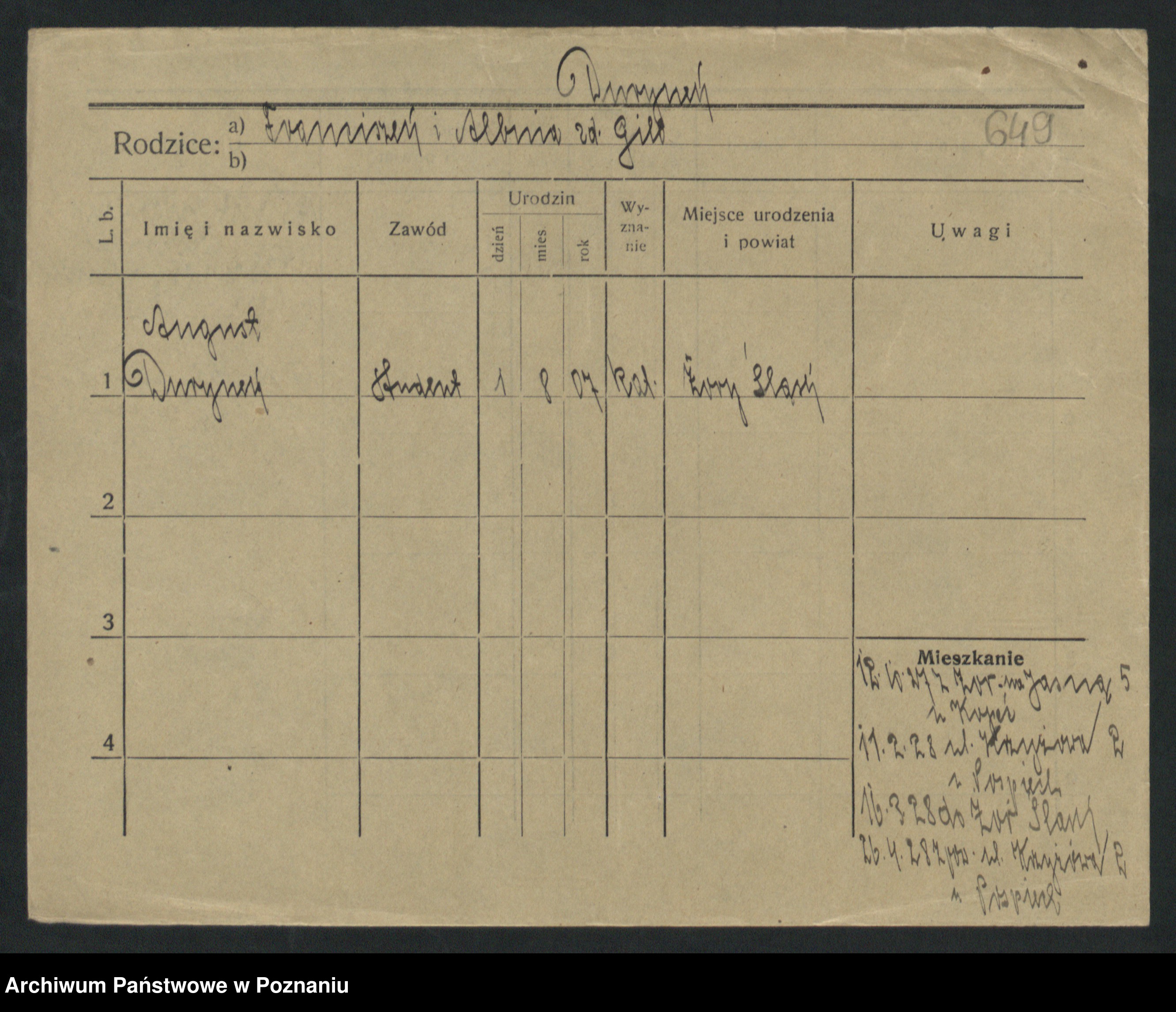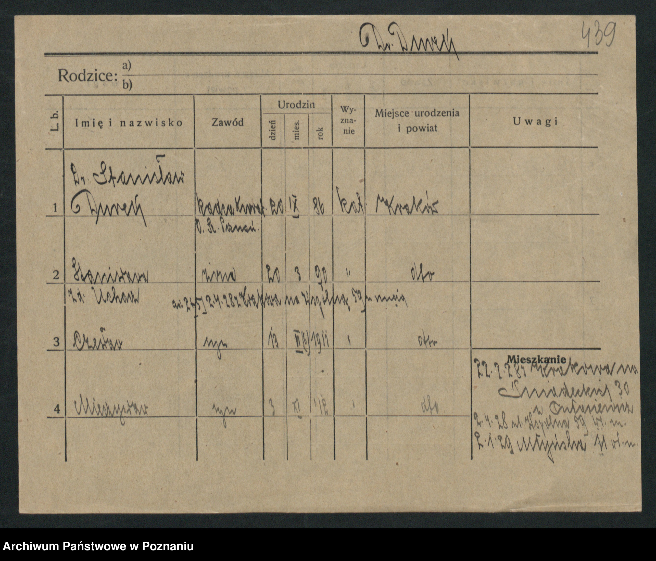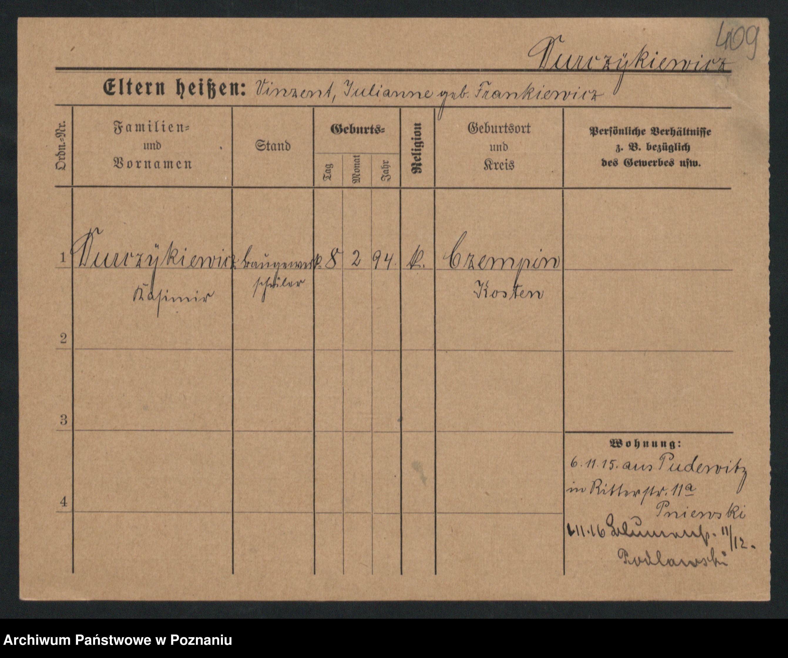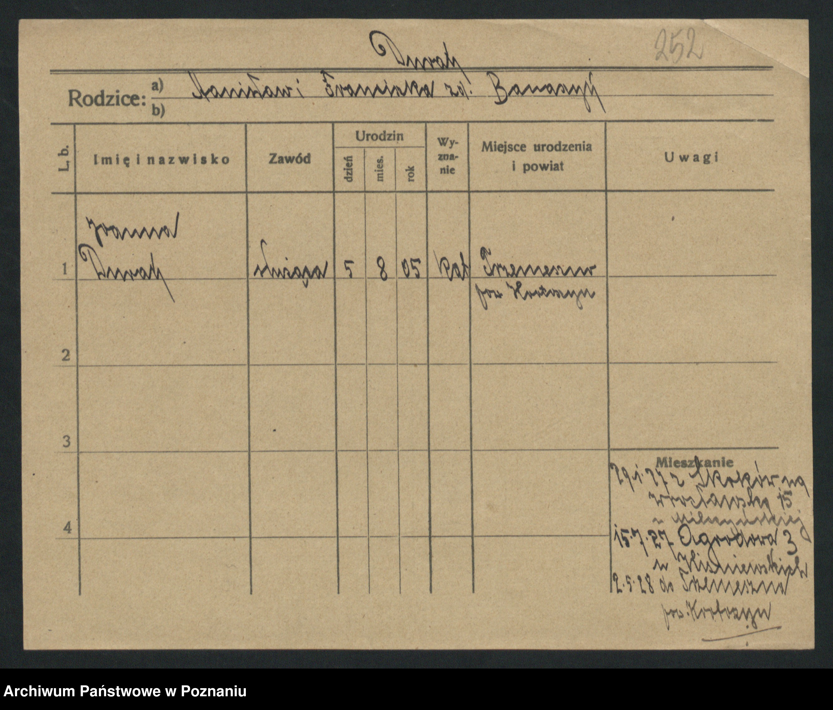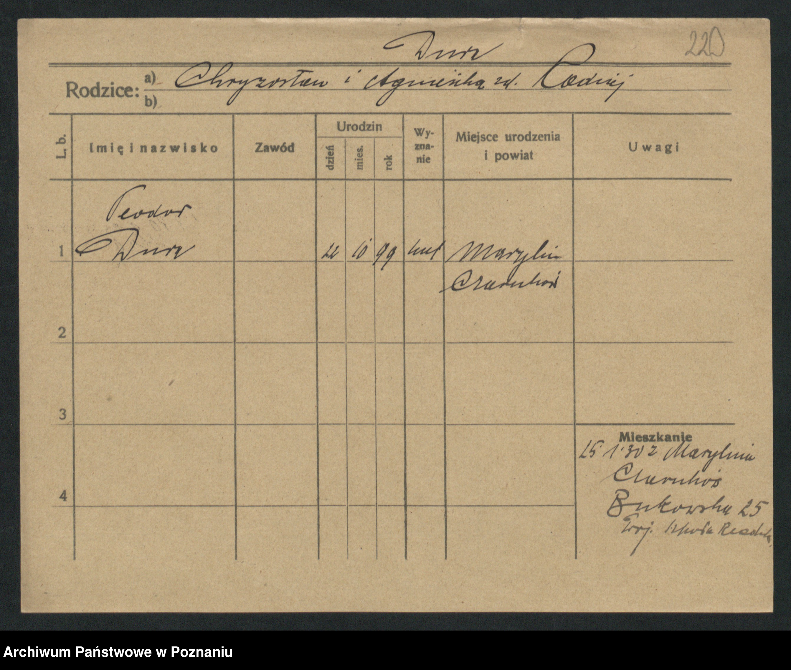 Podgląd karty osobowej dostępny jest po kliknięciu na nazwisko lub ikonkę karty. Można dokonywać powiększenia (ikony na górze) lub przechodzić między kolejnymi skanami (strzałki po bokach).