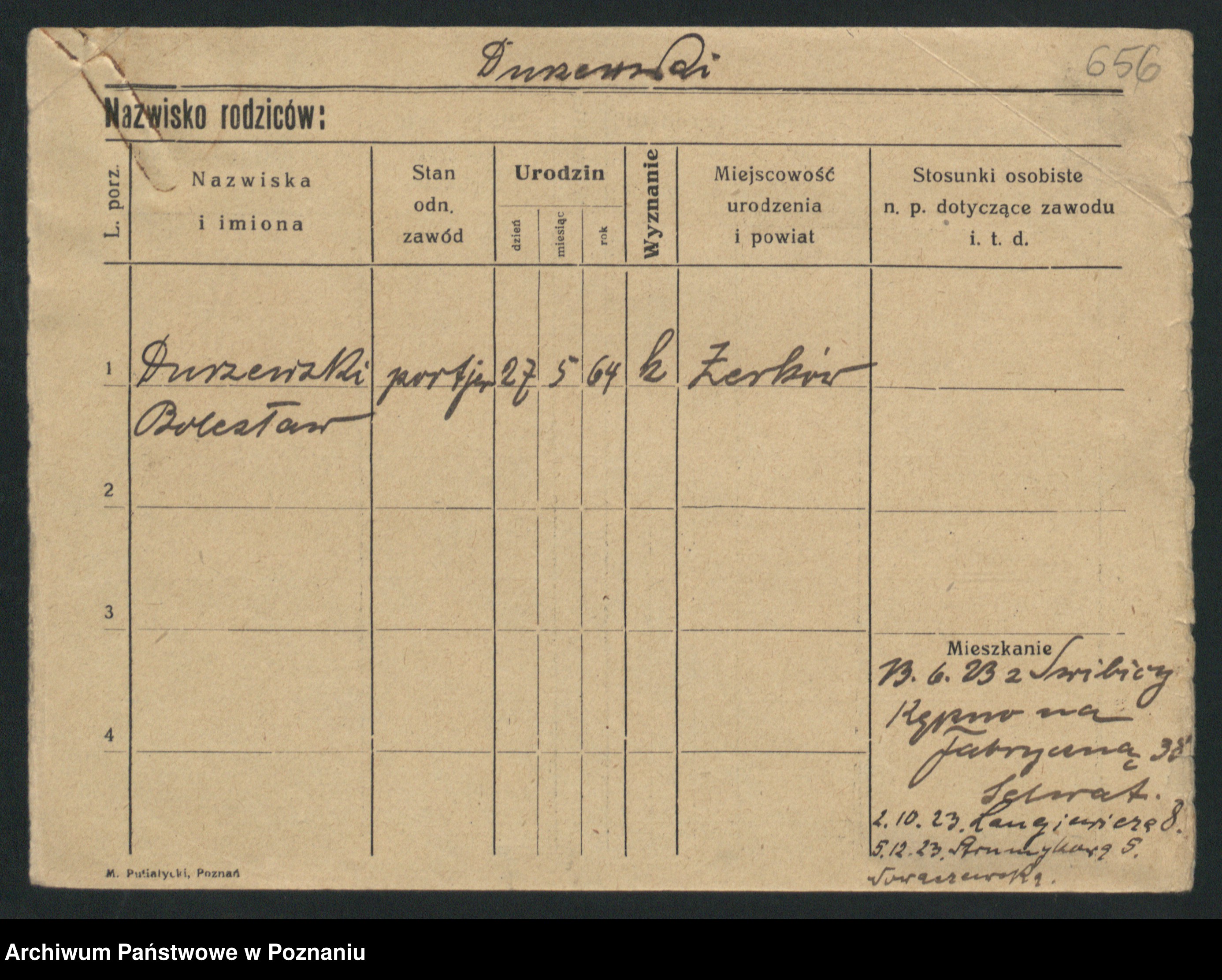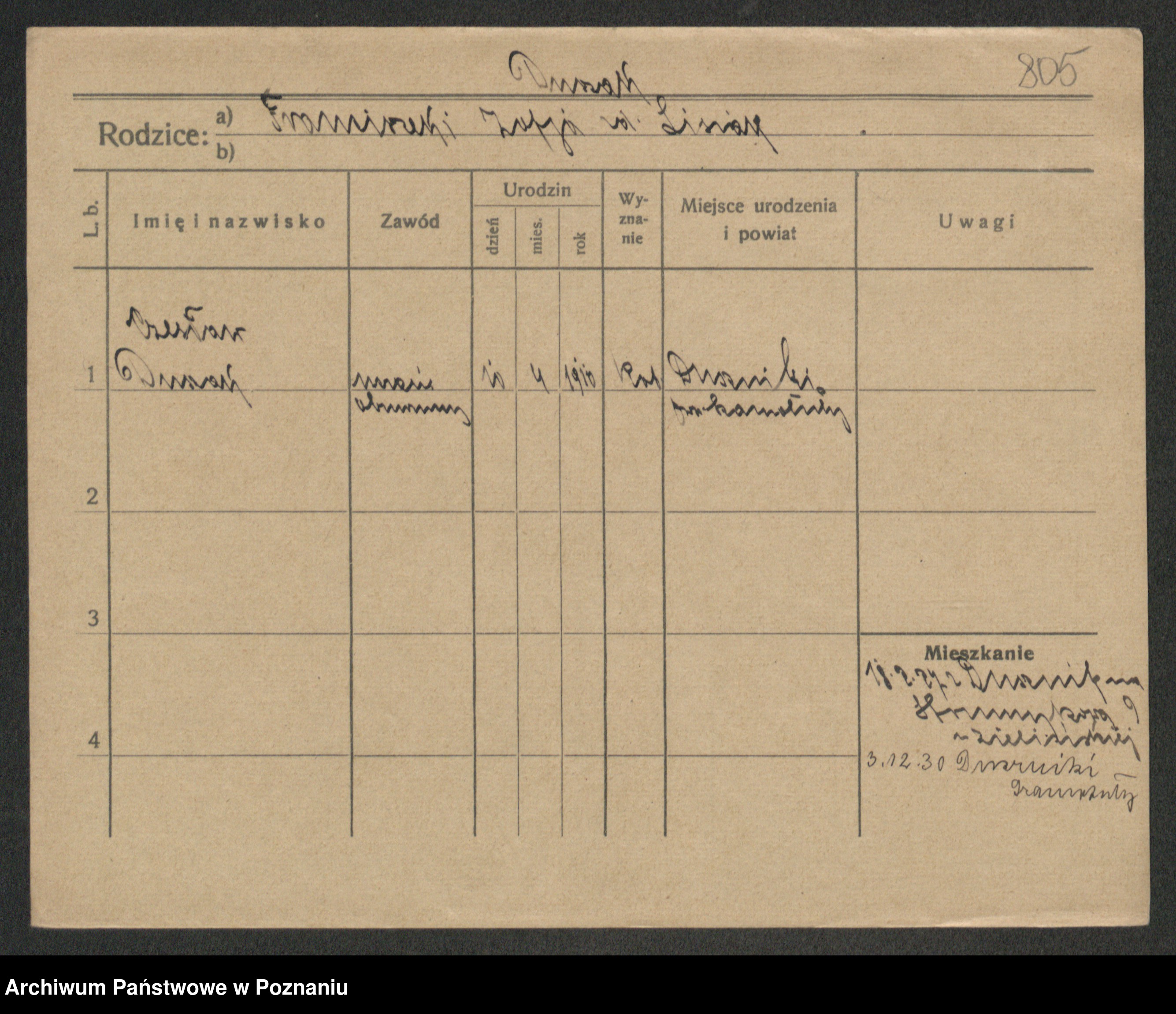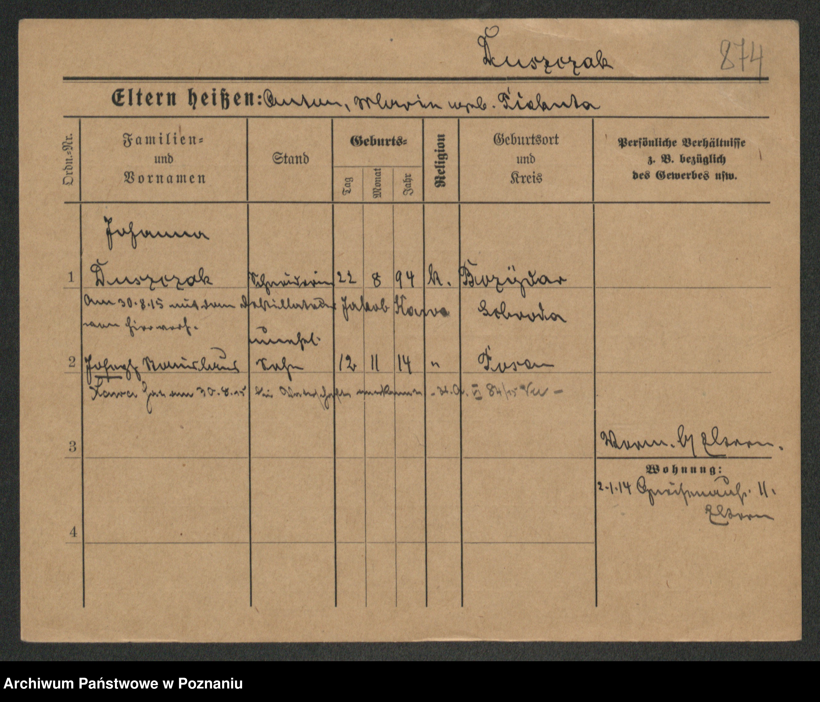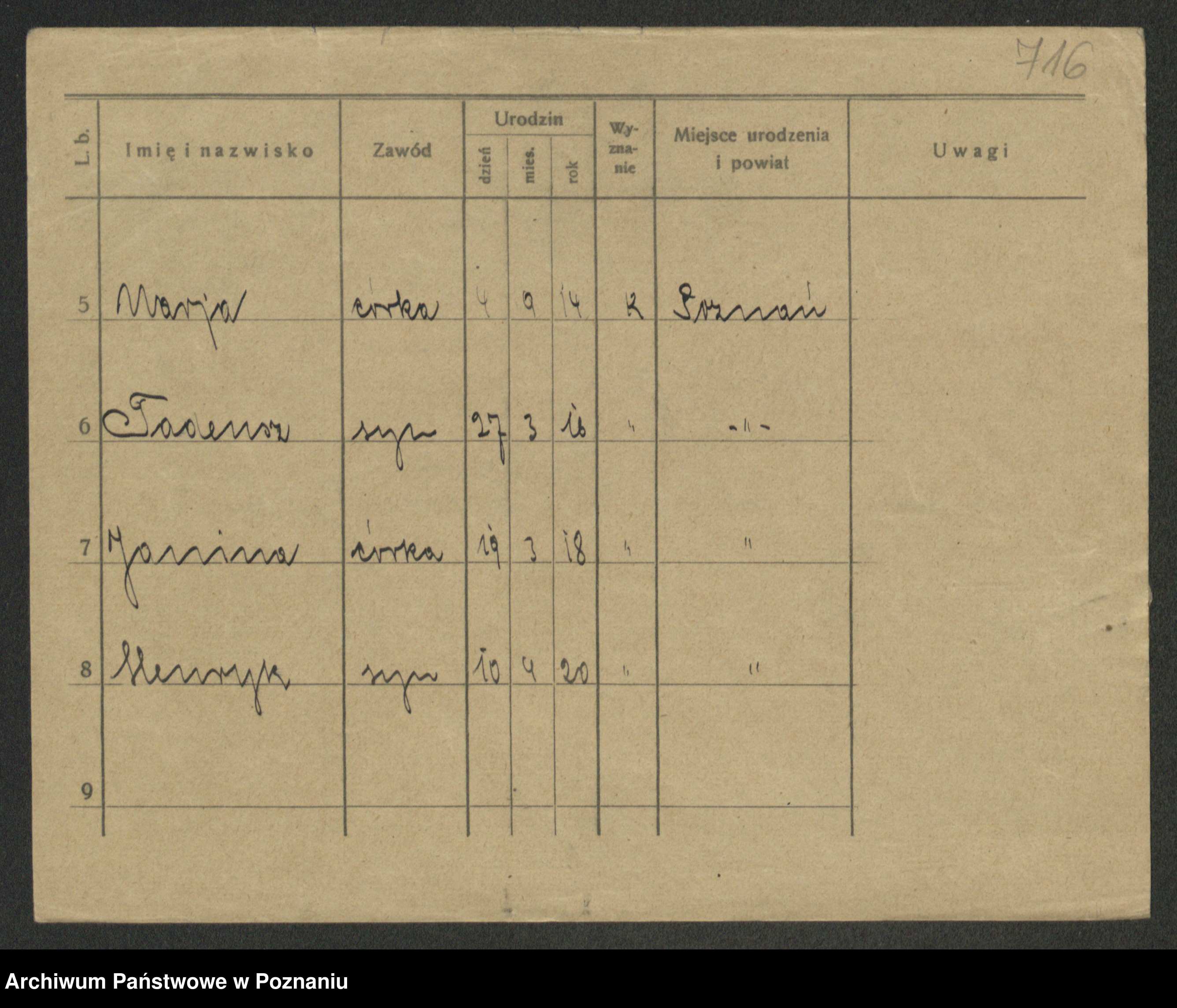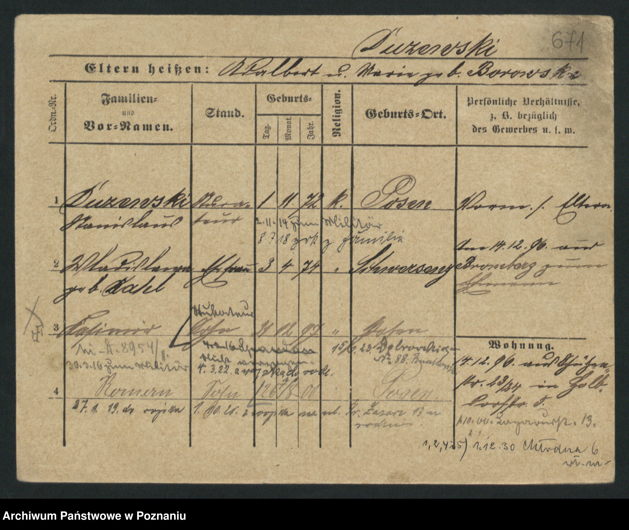 Podgląd karty osobowej dostępny jest po kliknięciu na nazwisko lub ikonkę karty. Można dokonywać powiększenia (ikony na górze) lub przechodzić między kolejnymi skanami (strzałki po bokach).