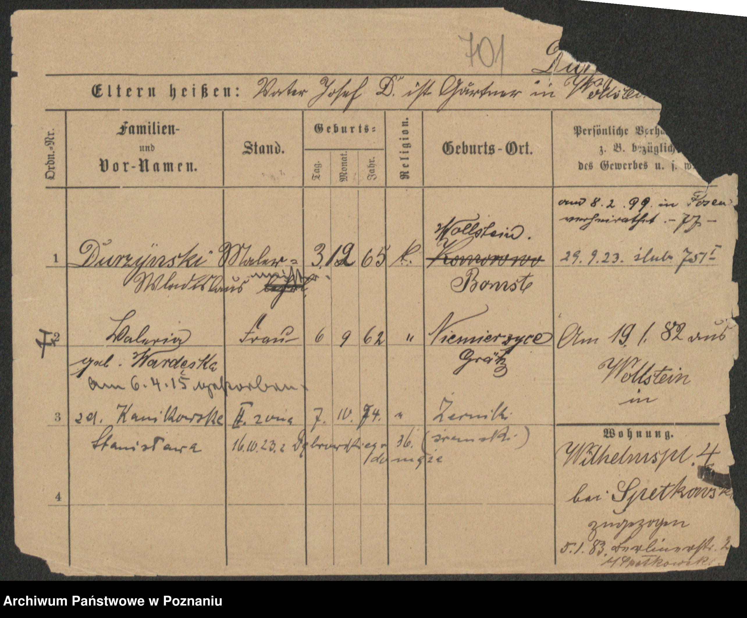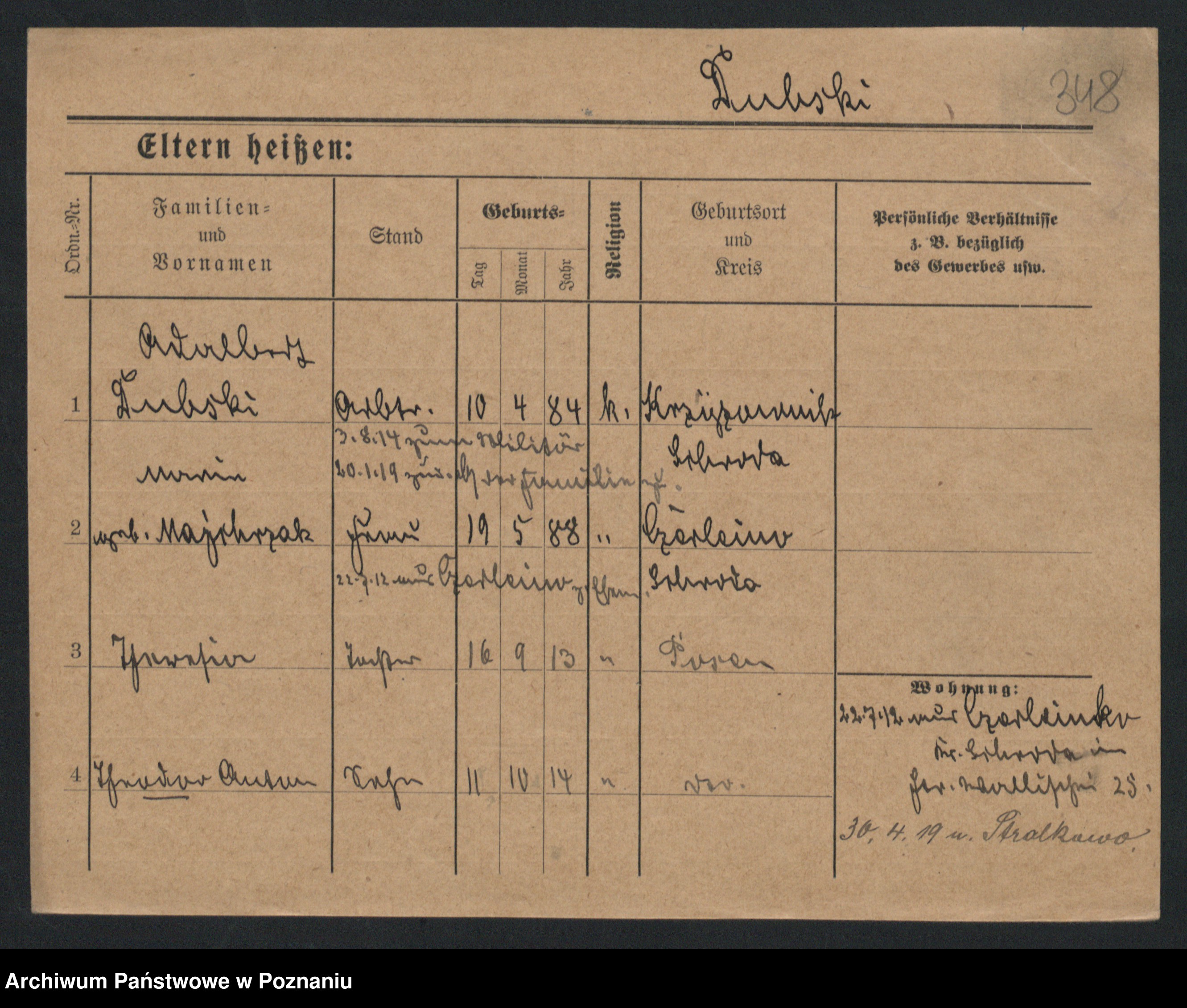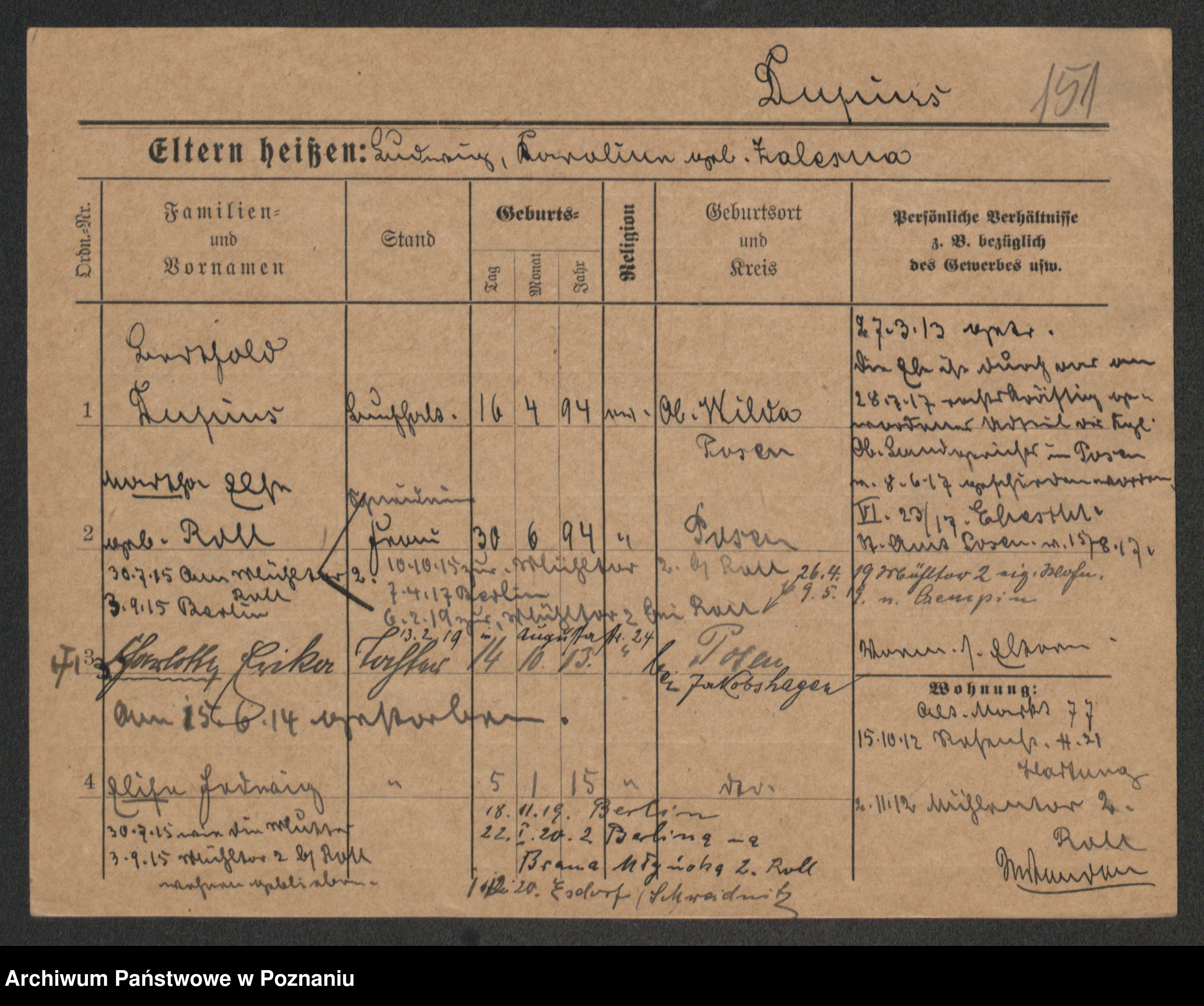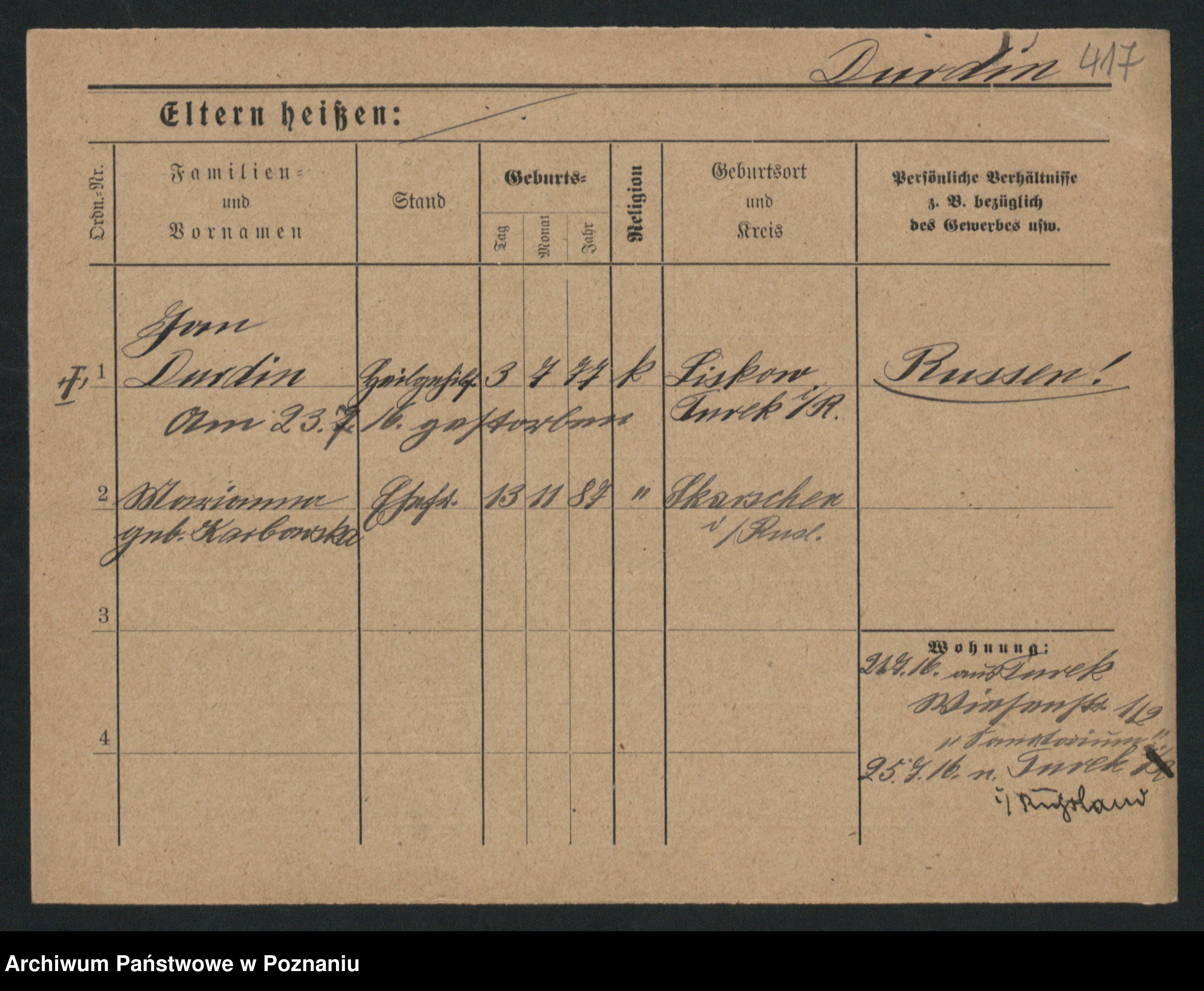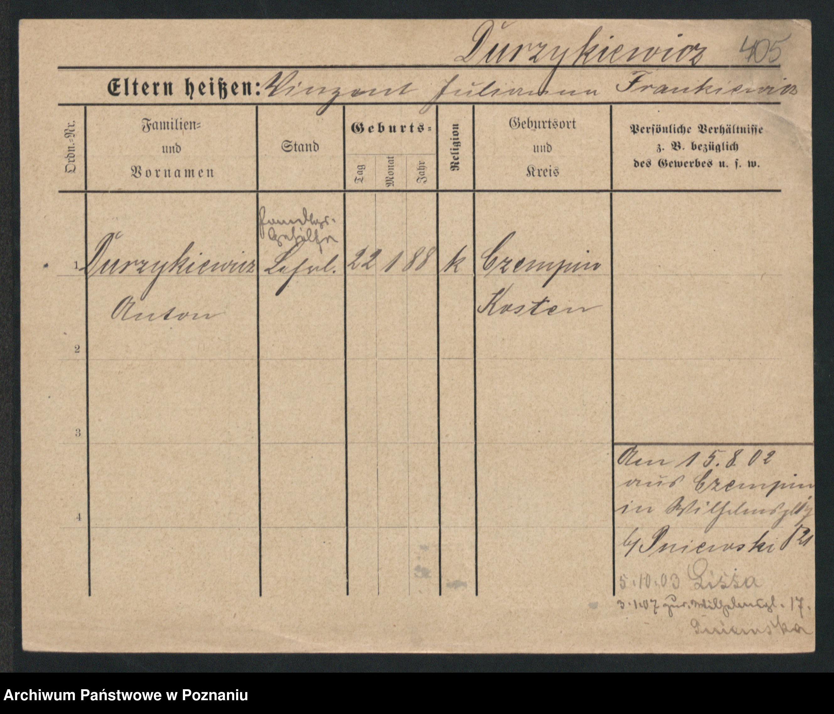 Podgląd karty osobowej dostępny jest po kliknięciu na nazwisko lub ikonkę karty. Można dokonywać powiększenia (ikony na górze) lub przechodzić między kolejnymi skanami (strzałki po bokach).