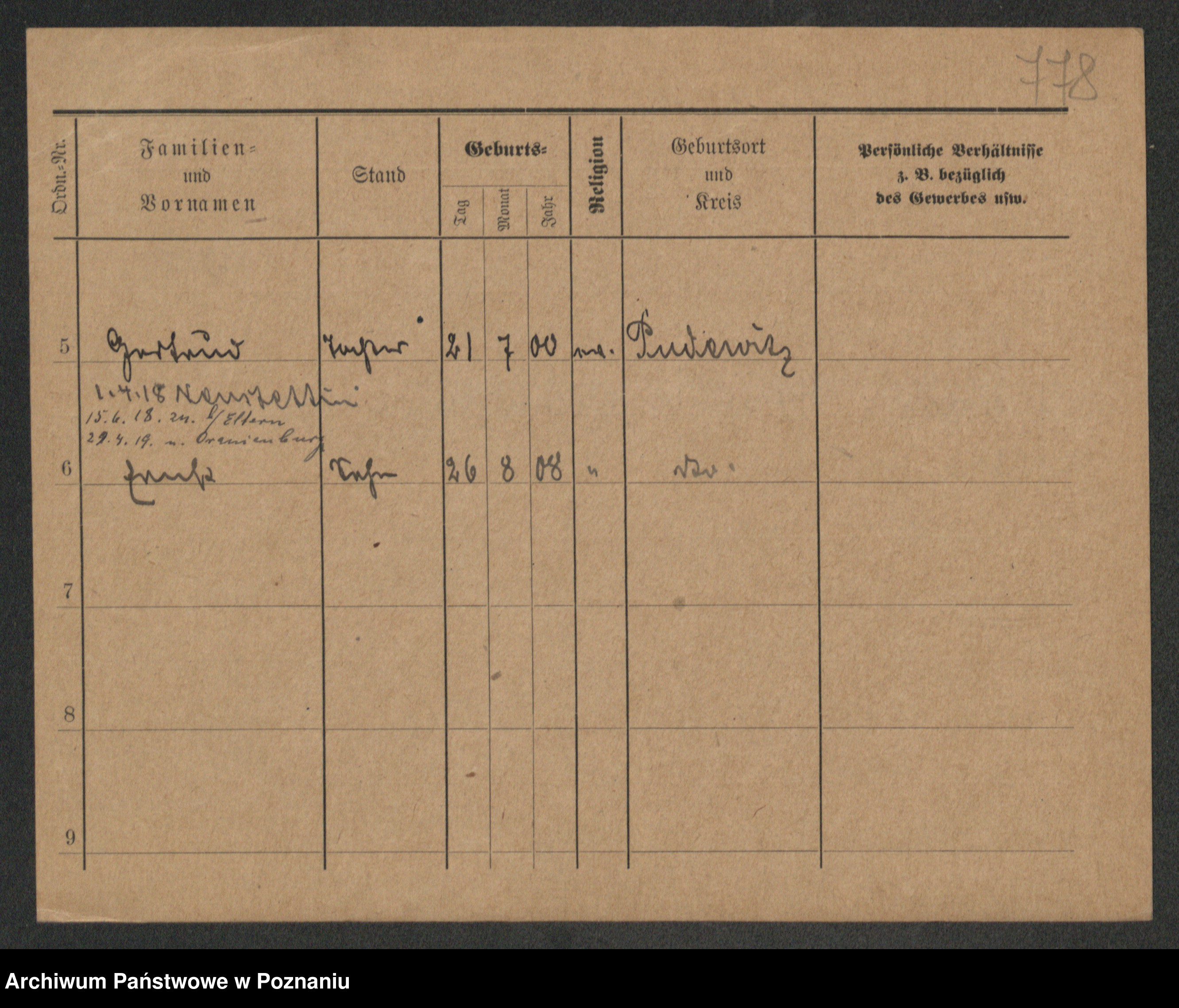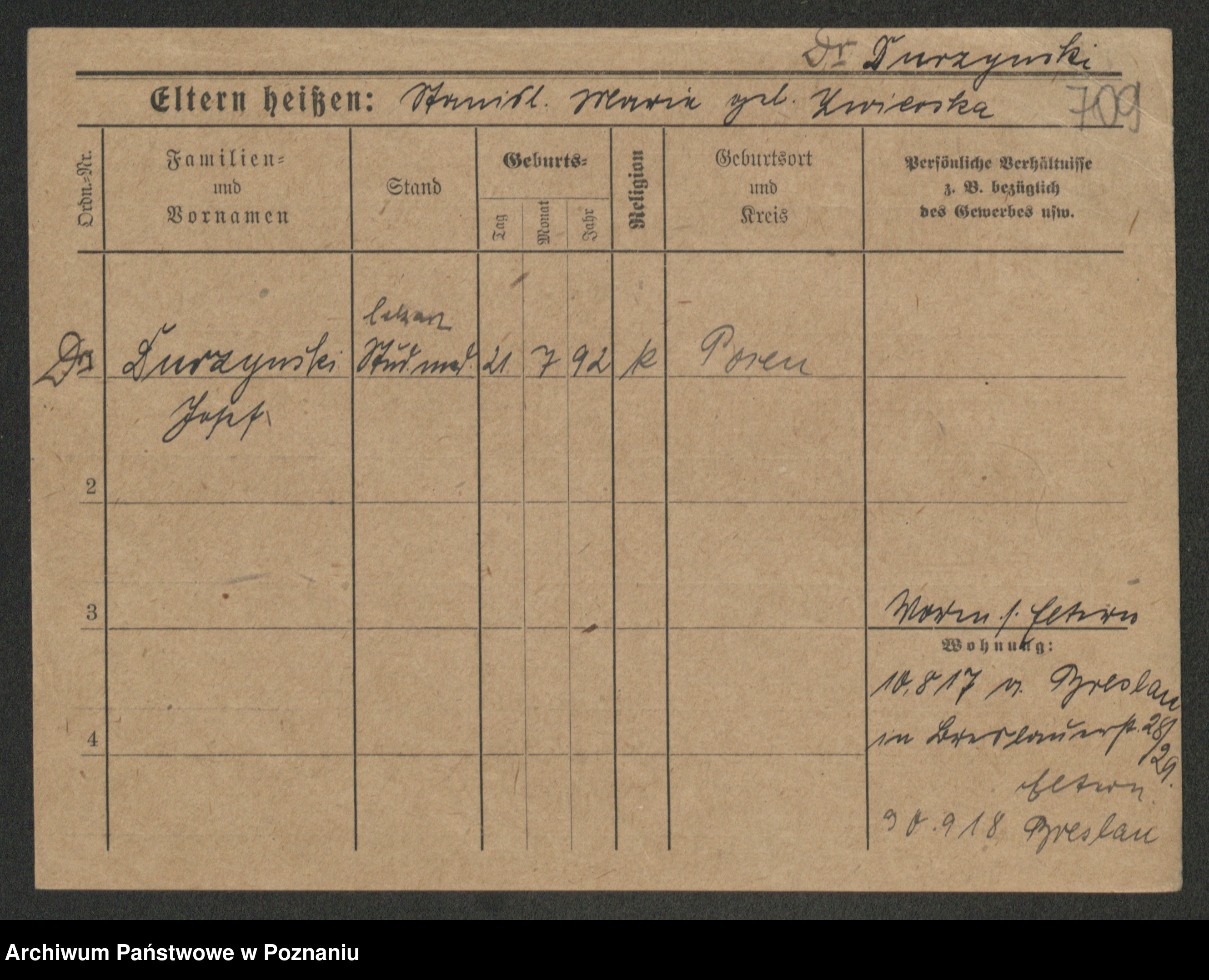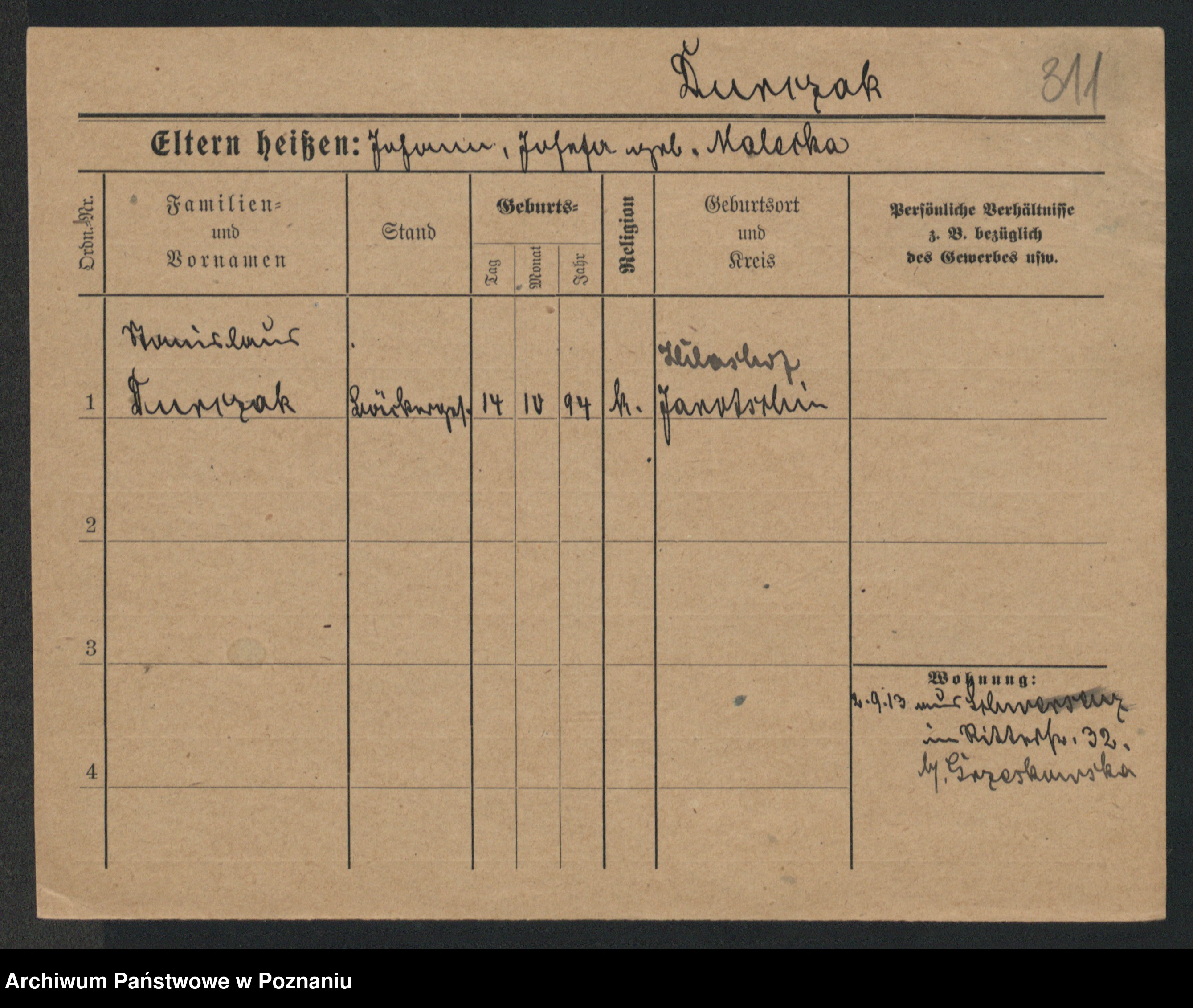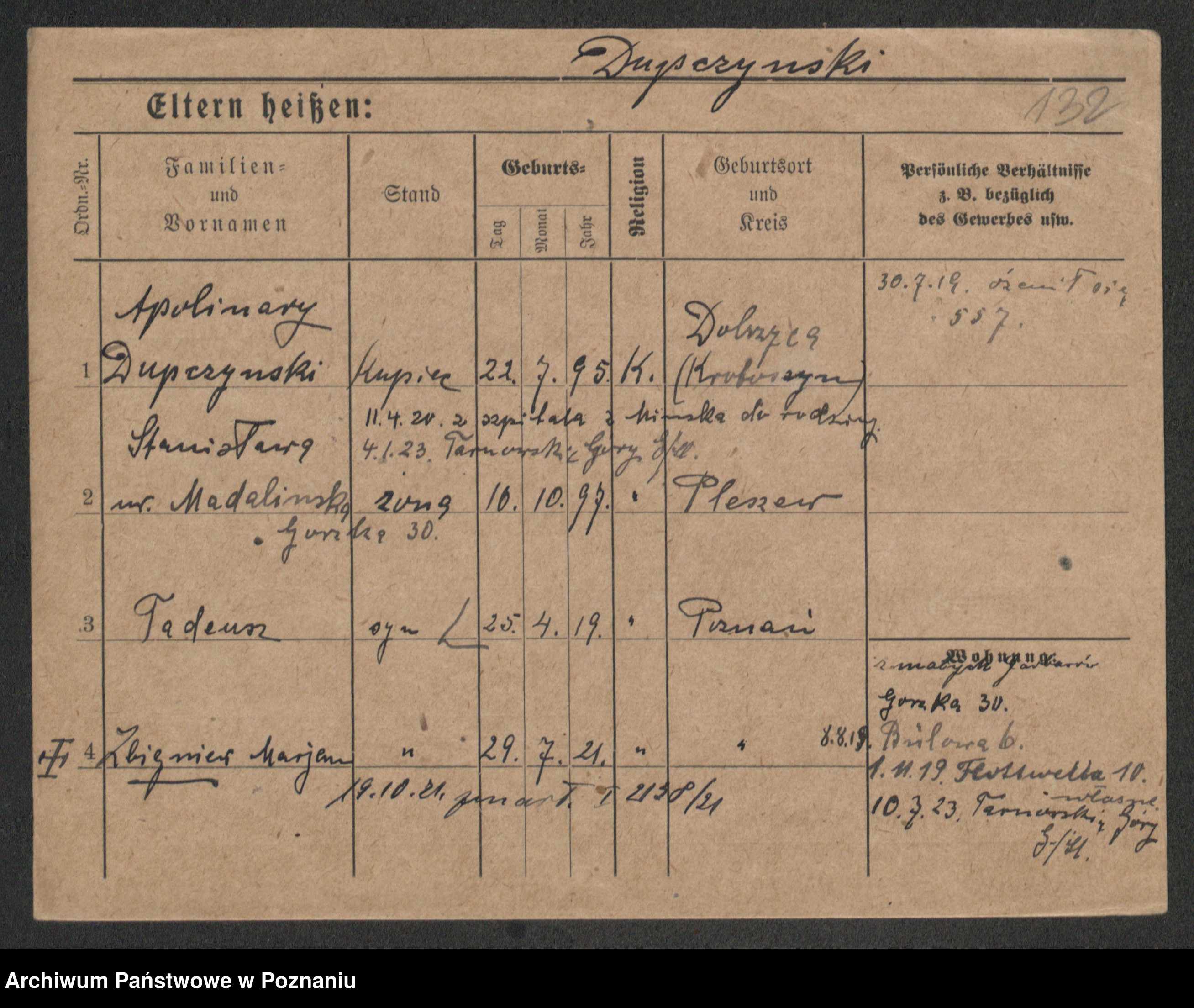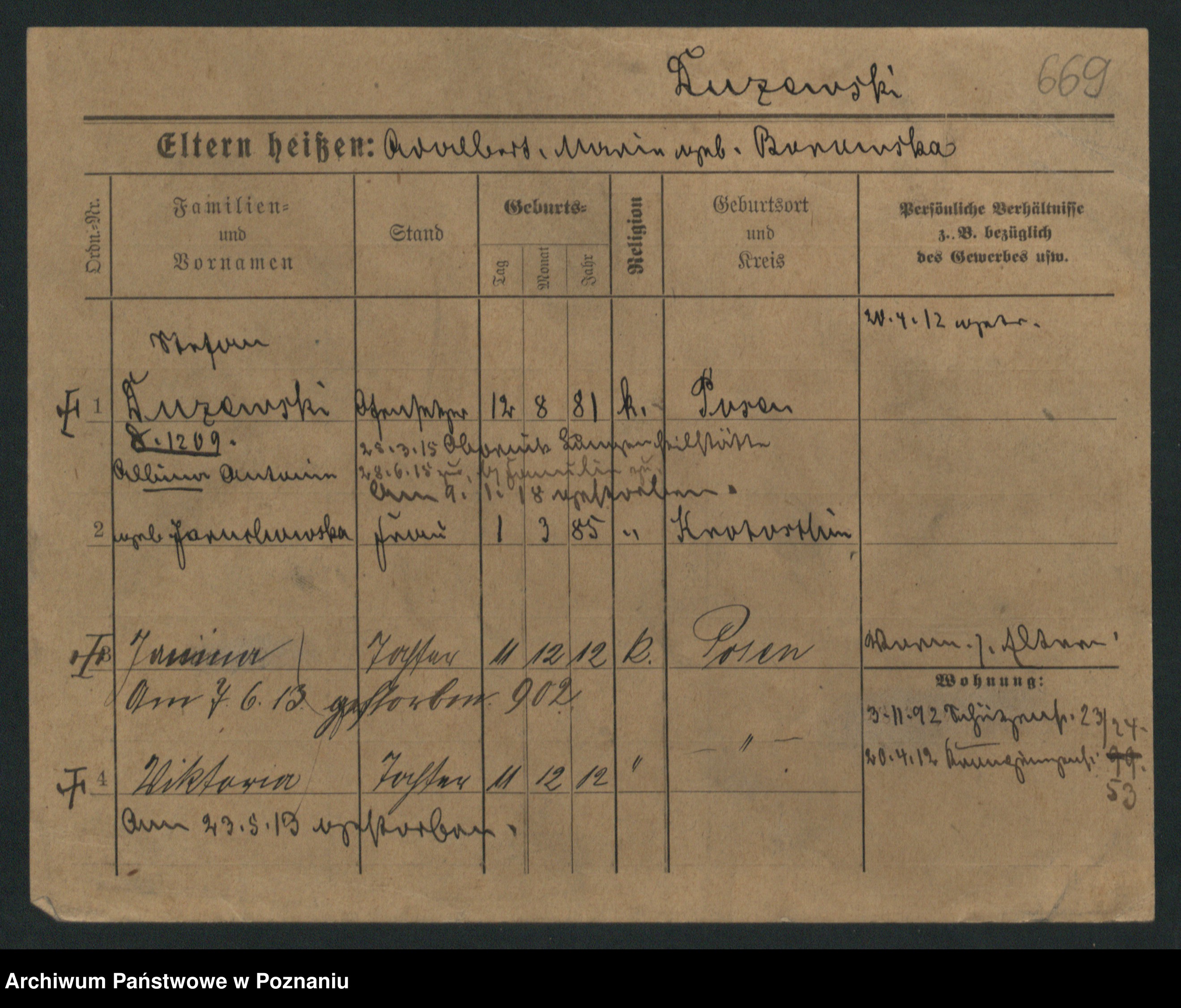 Podgląd karty osobowej dostępny jest po kliknięciu na nazwisko lub ikonkę karty. Można dokonywać powiększenia (ikony na górze) lub przechodzić między kolejnymi skanami (strzałki po bokach).