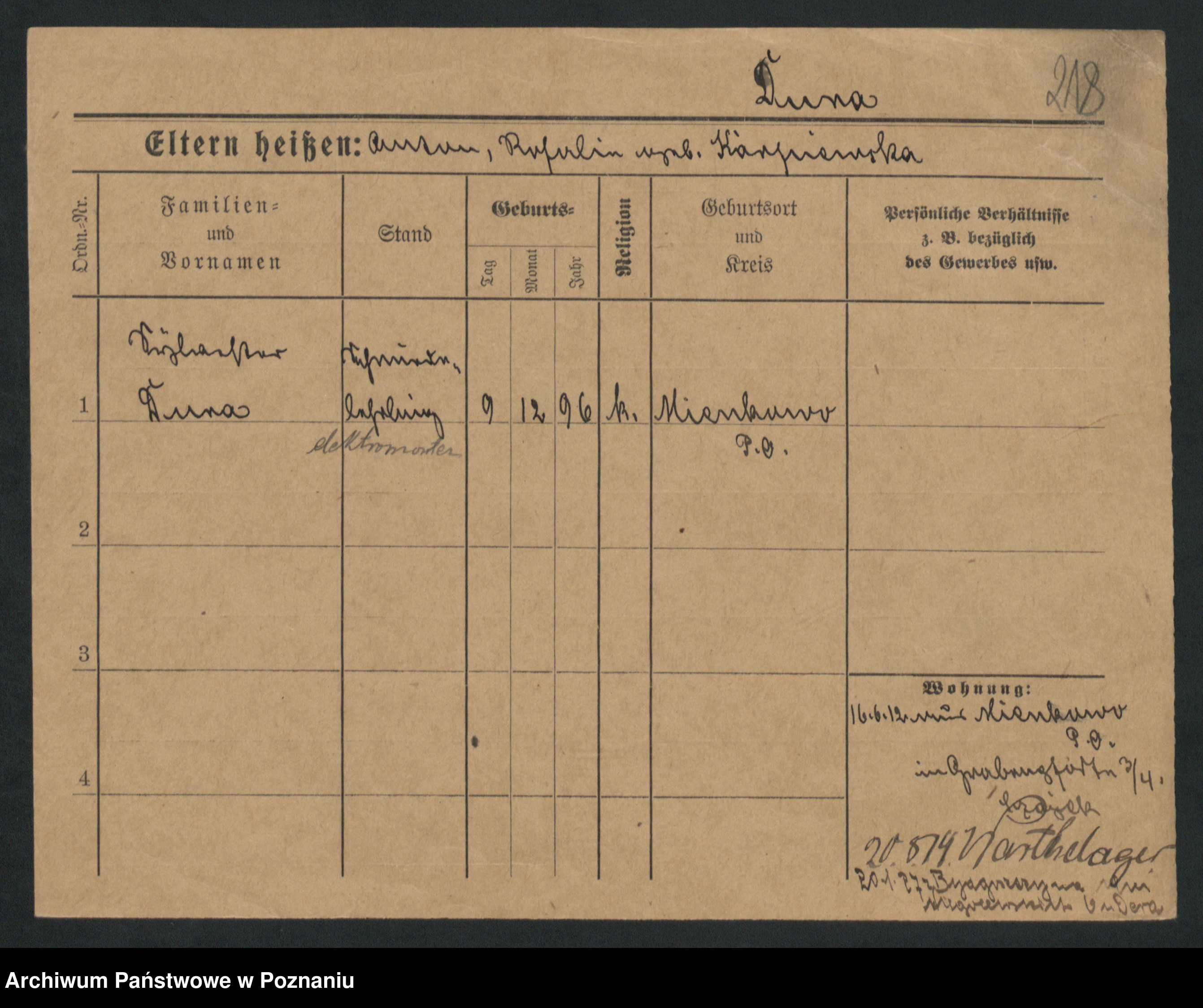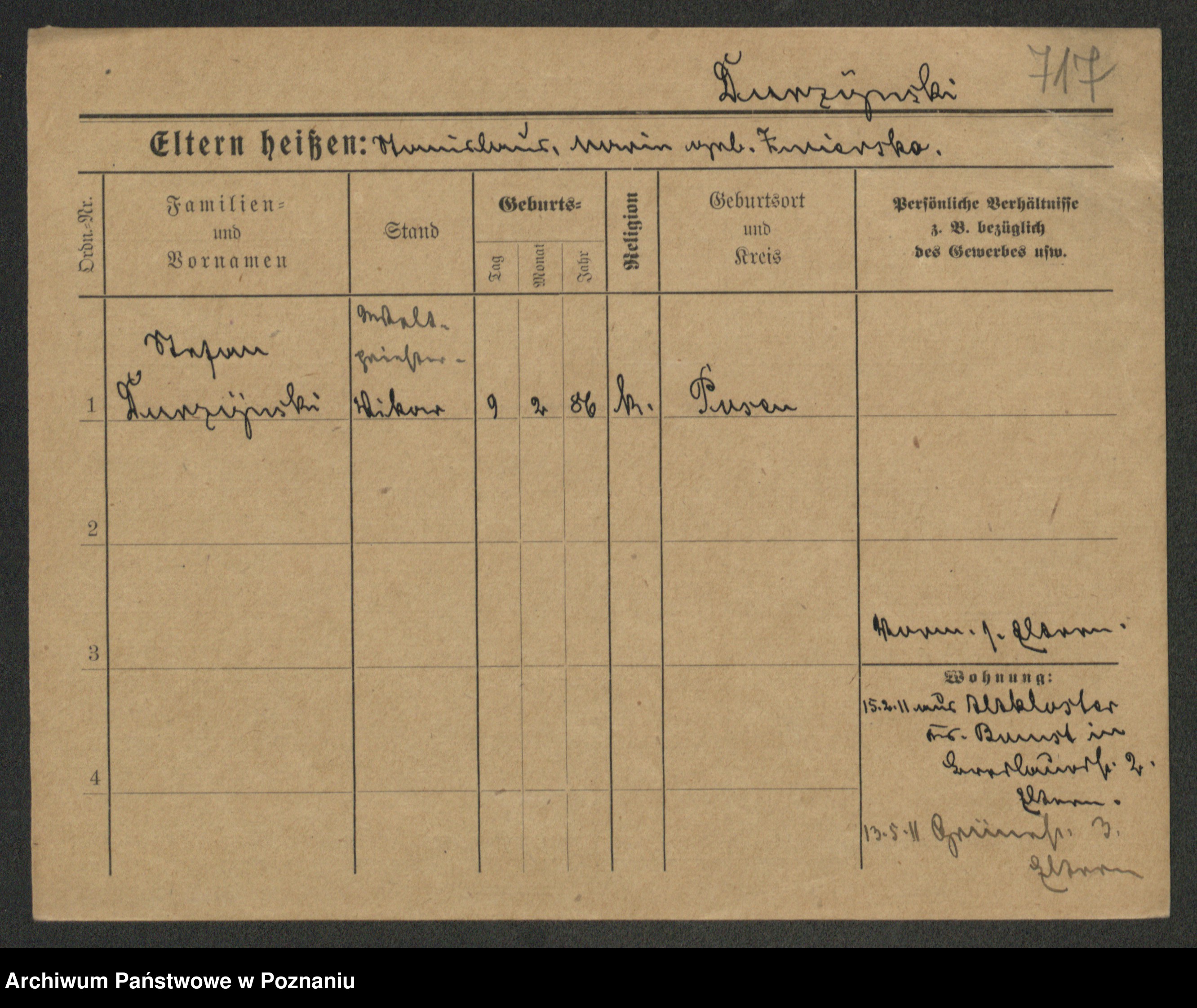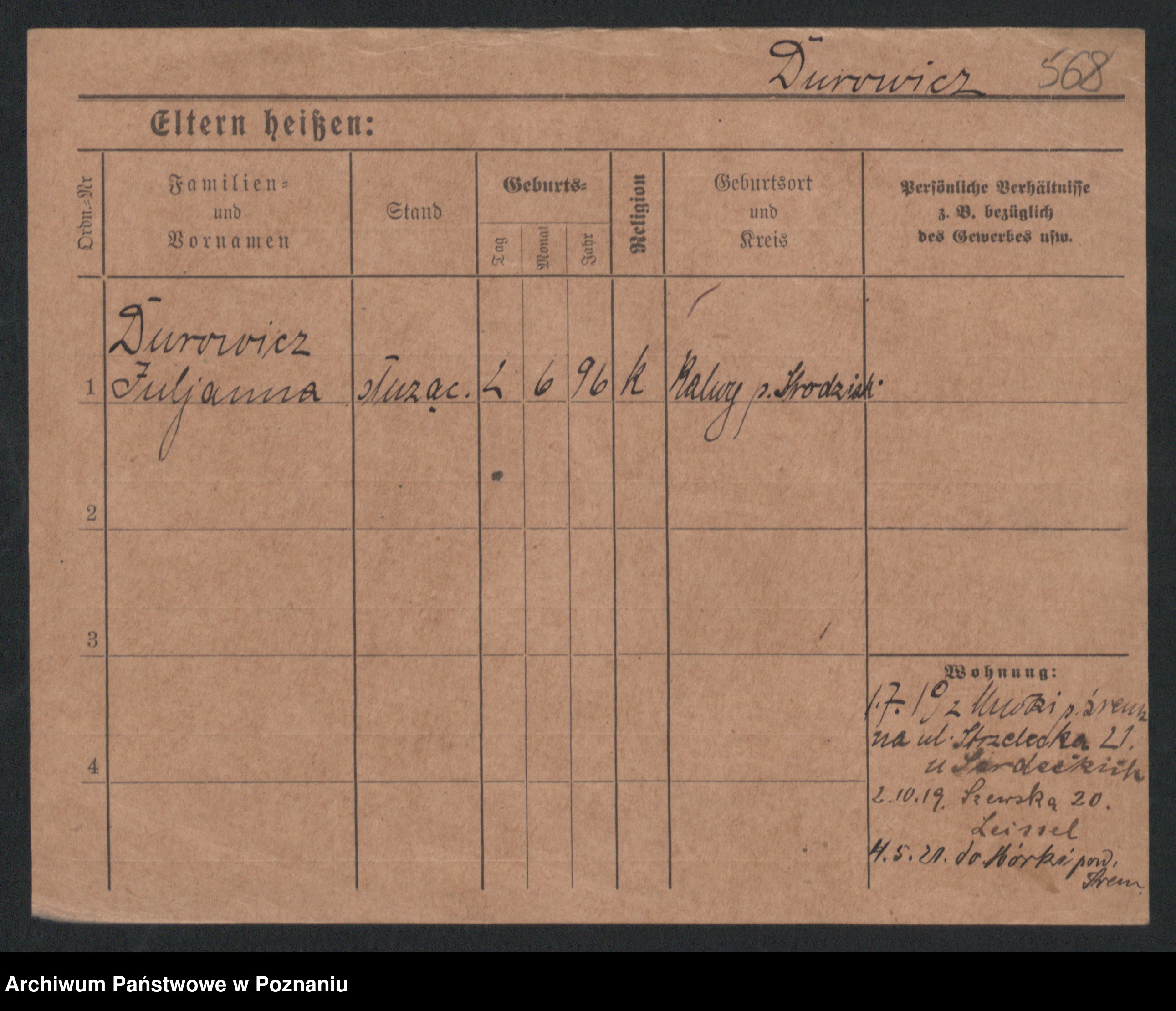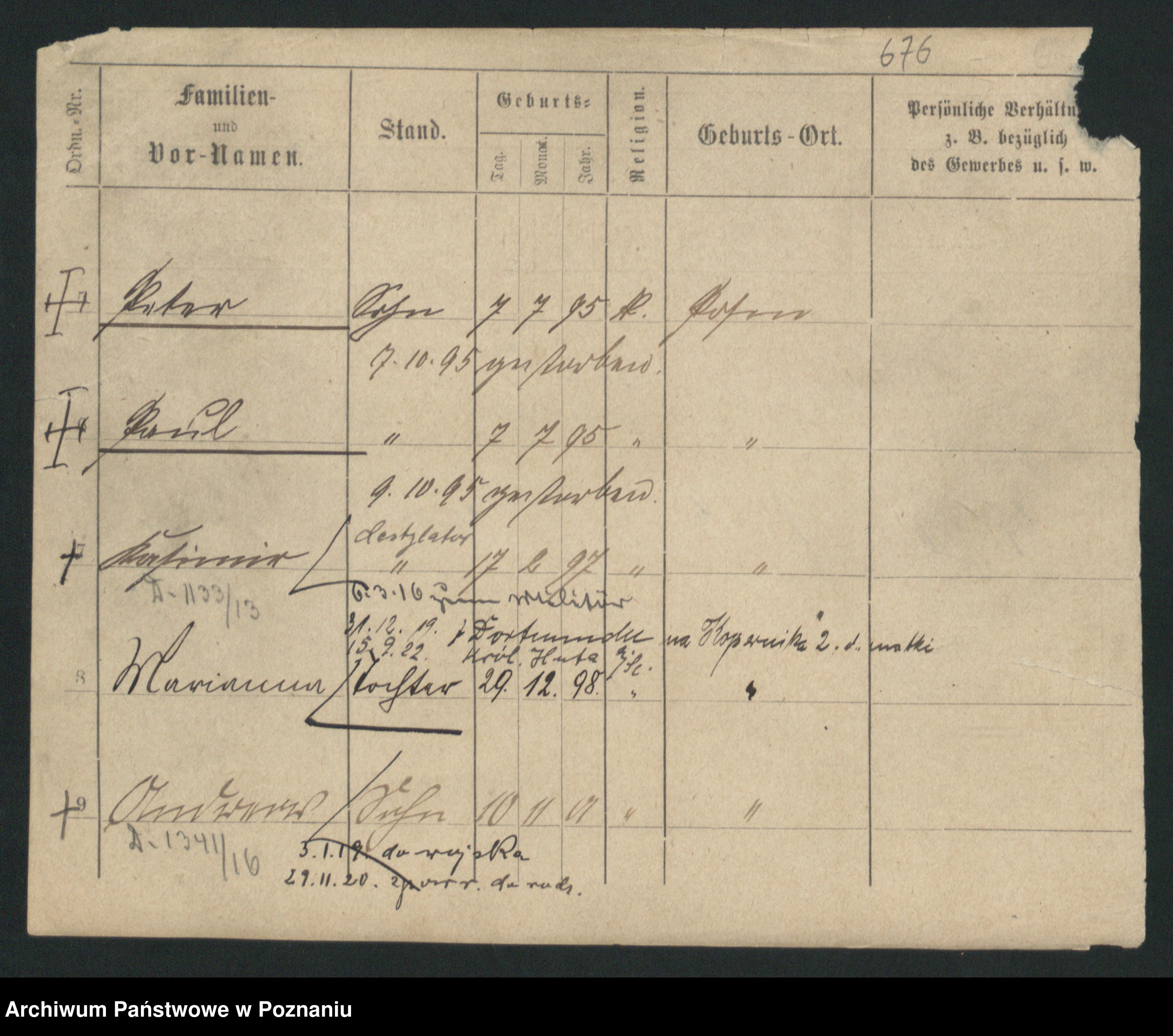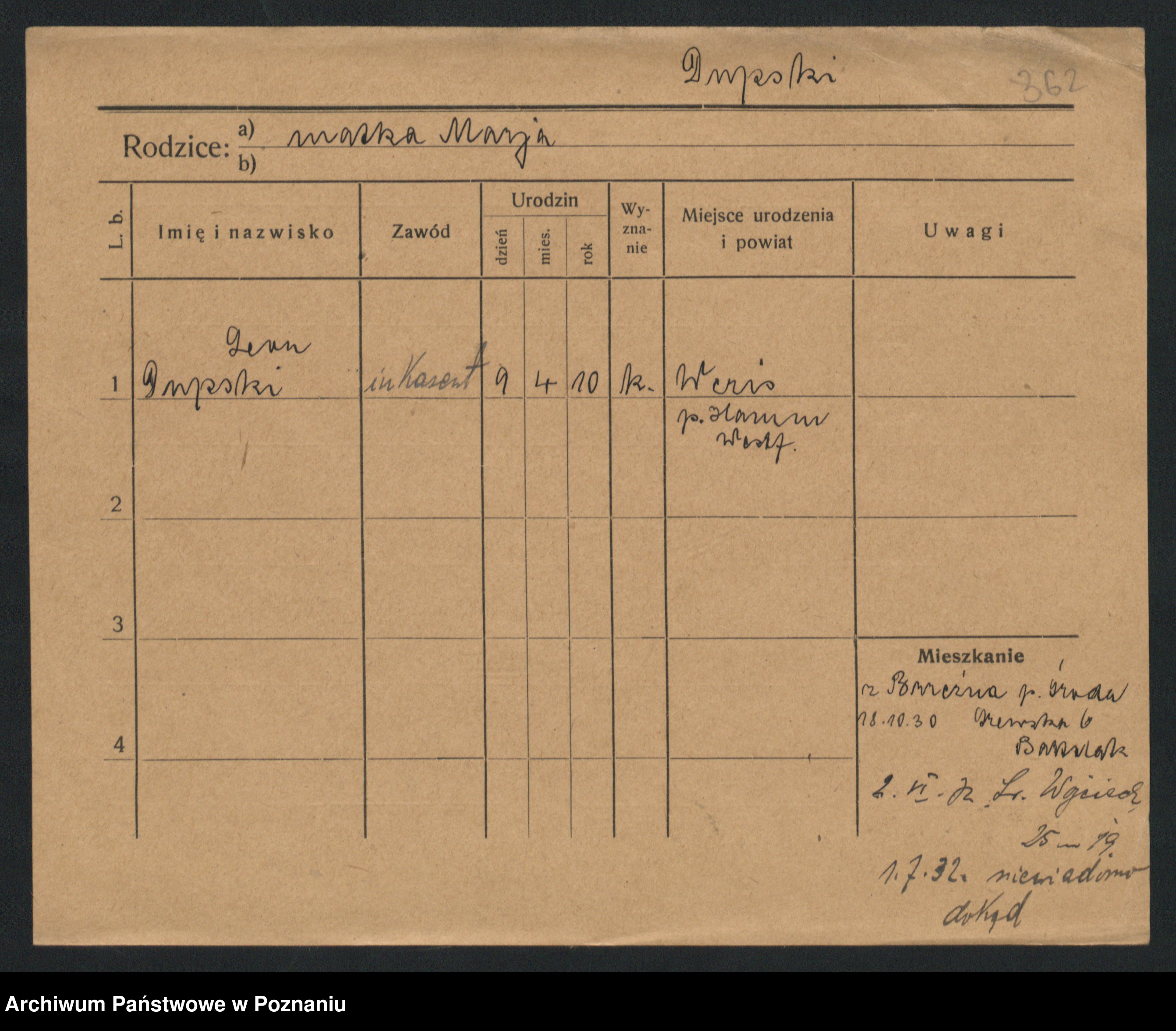 Podgląd karty osobowej dostępny jest po kliknięciu na nazwisko lub ikonkę karty. Można dokonywać powiększenia (ikony na górze) lub przechodzić między kolejnymi skanami (strzałki po bokach).