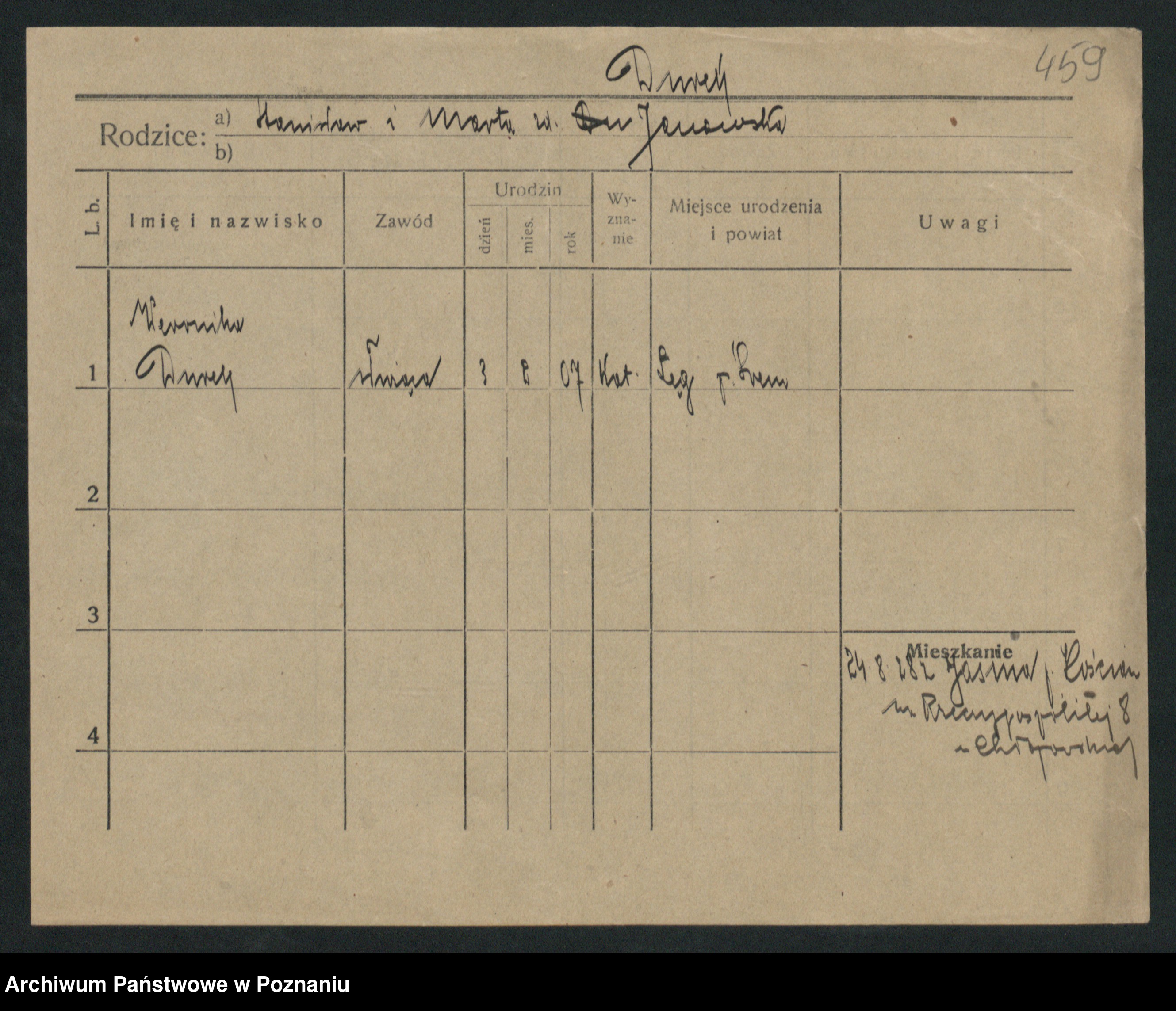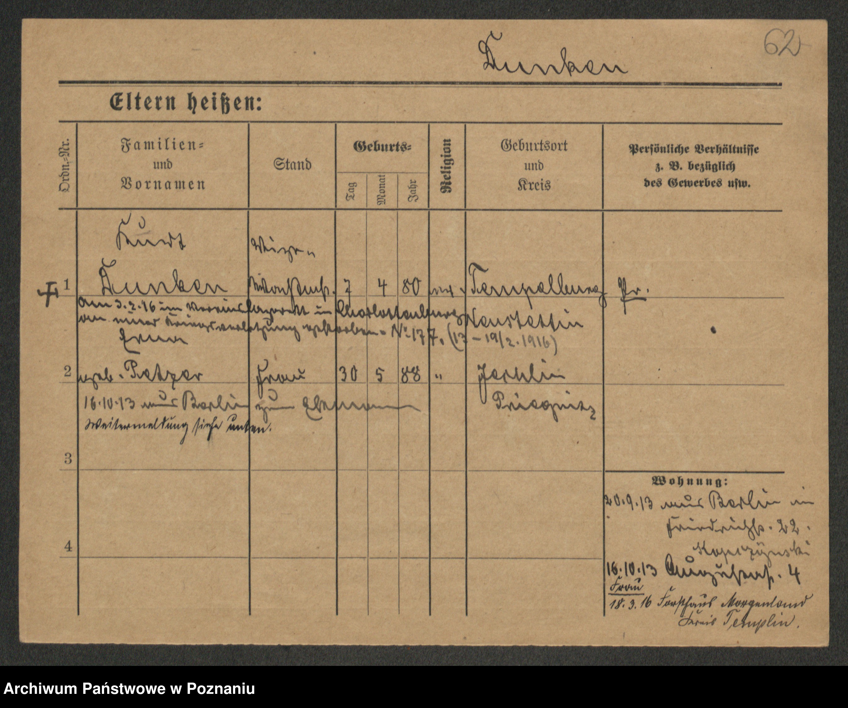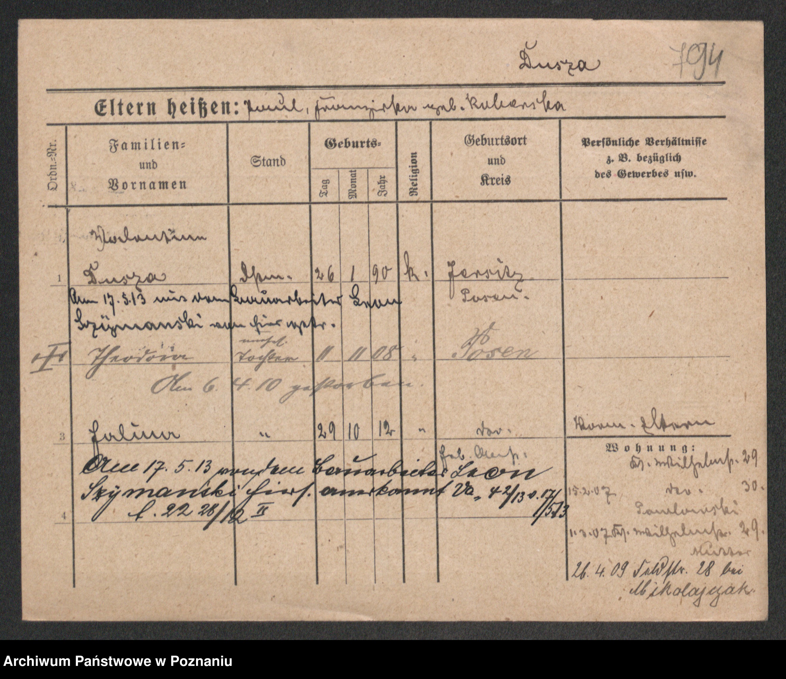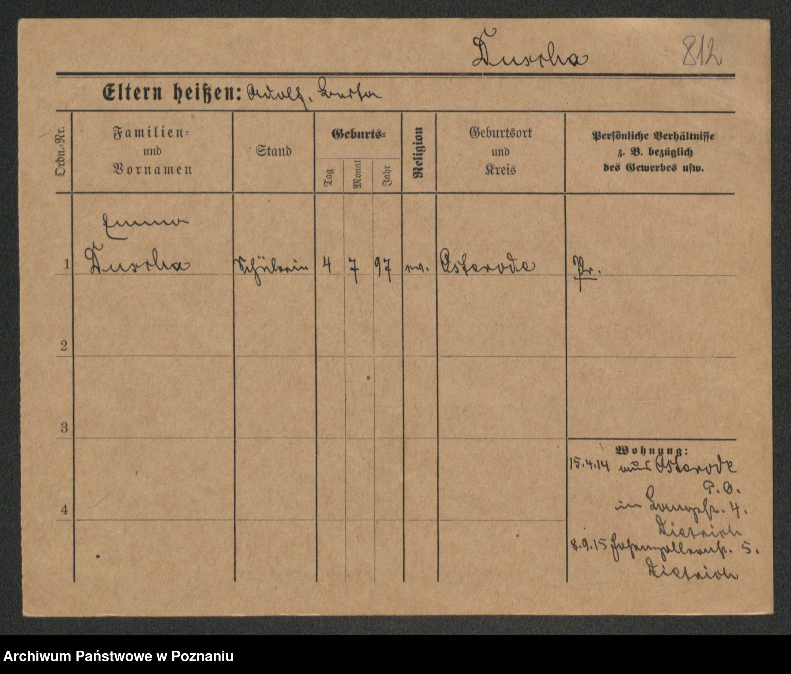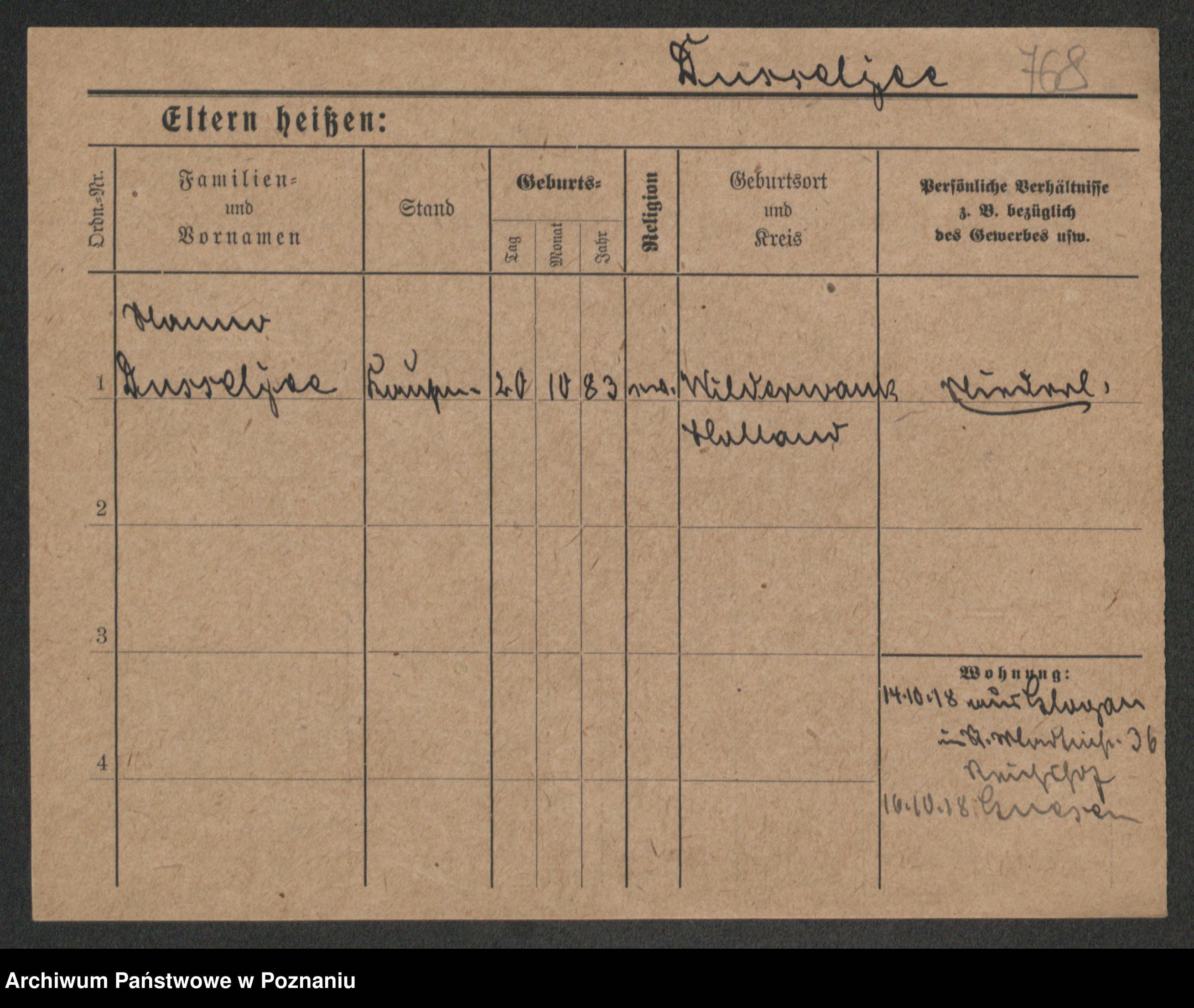 Podgląd karty osobowej dostępny jest po kliknięciu na nazwisko lub ikonkę karty. Można dokonywać powiększenia (ikony na górze) lub przechodzić między kolejnymi skanami (strzałki po bokach).