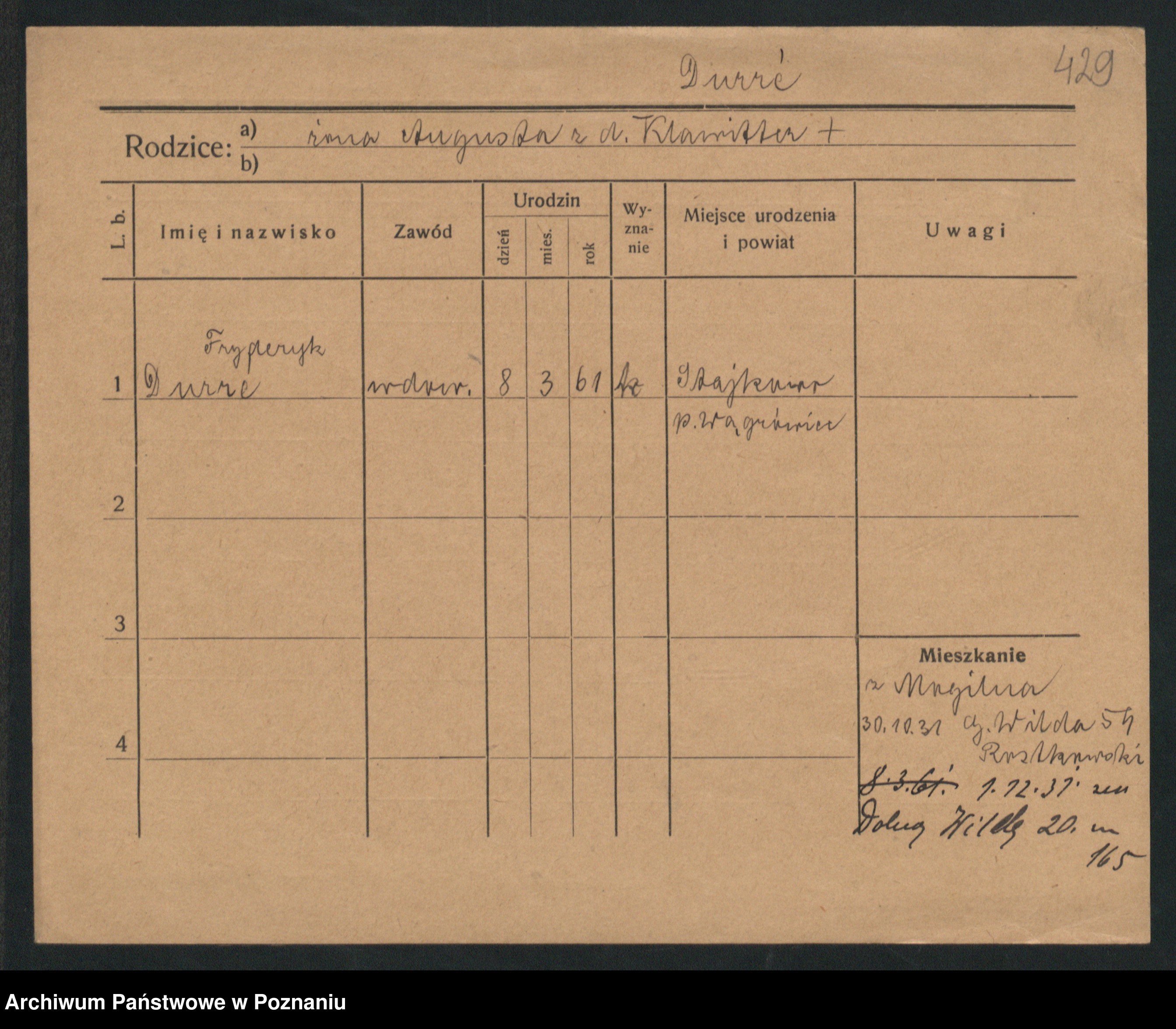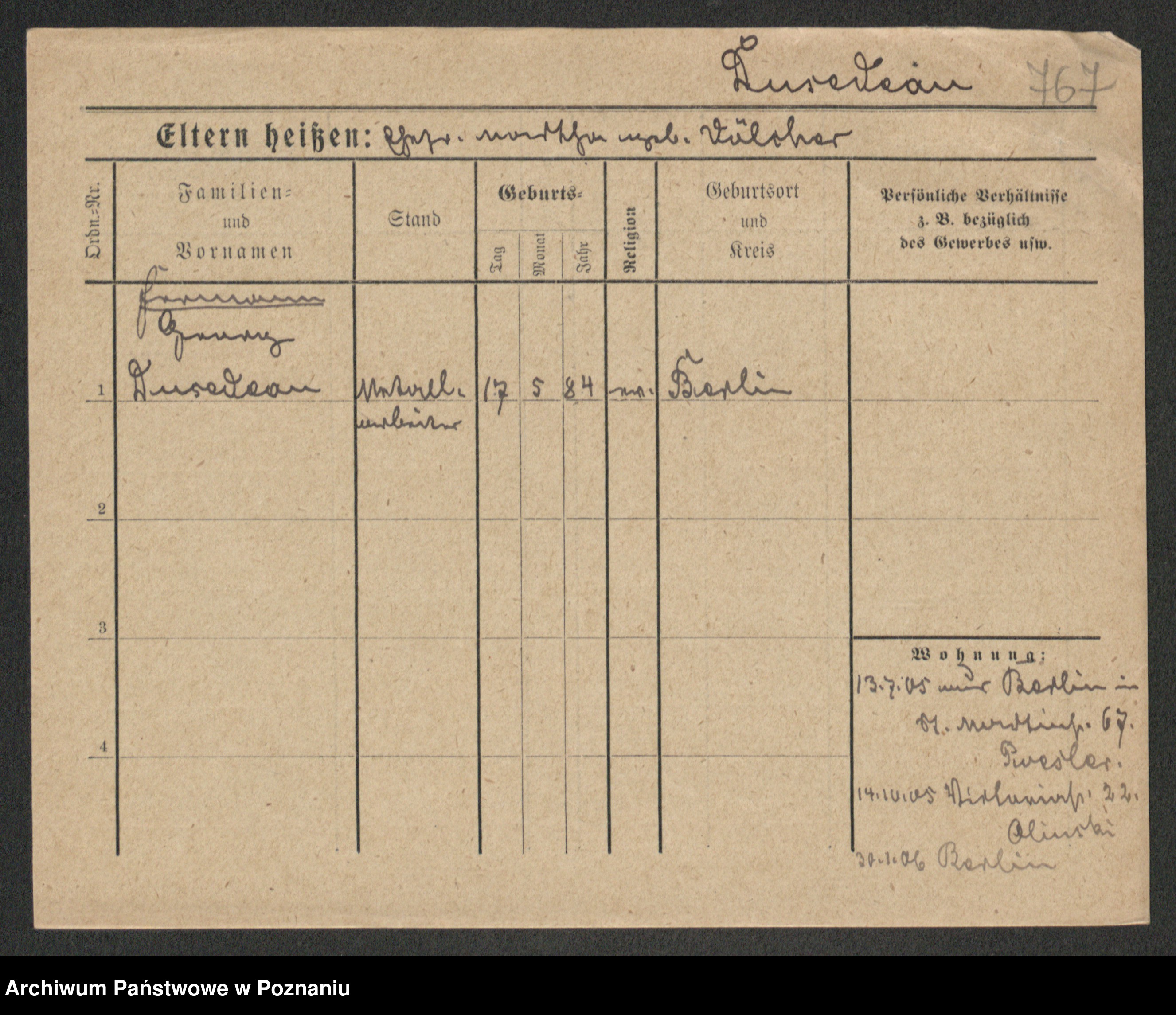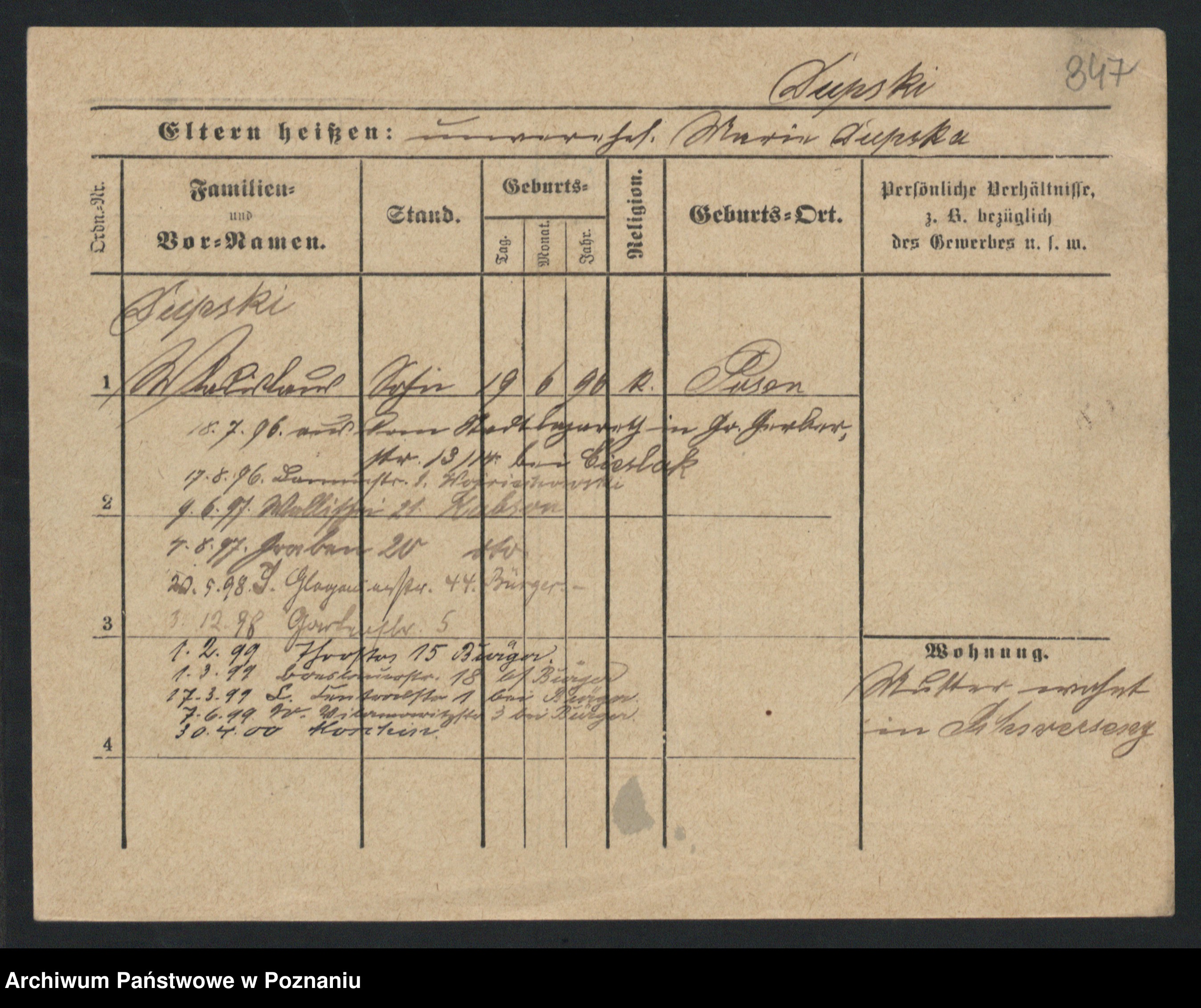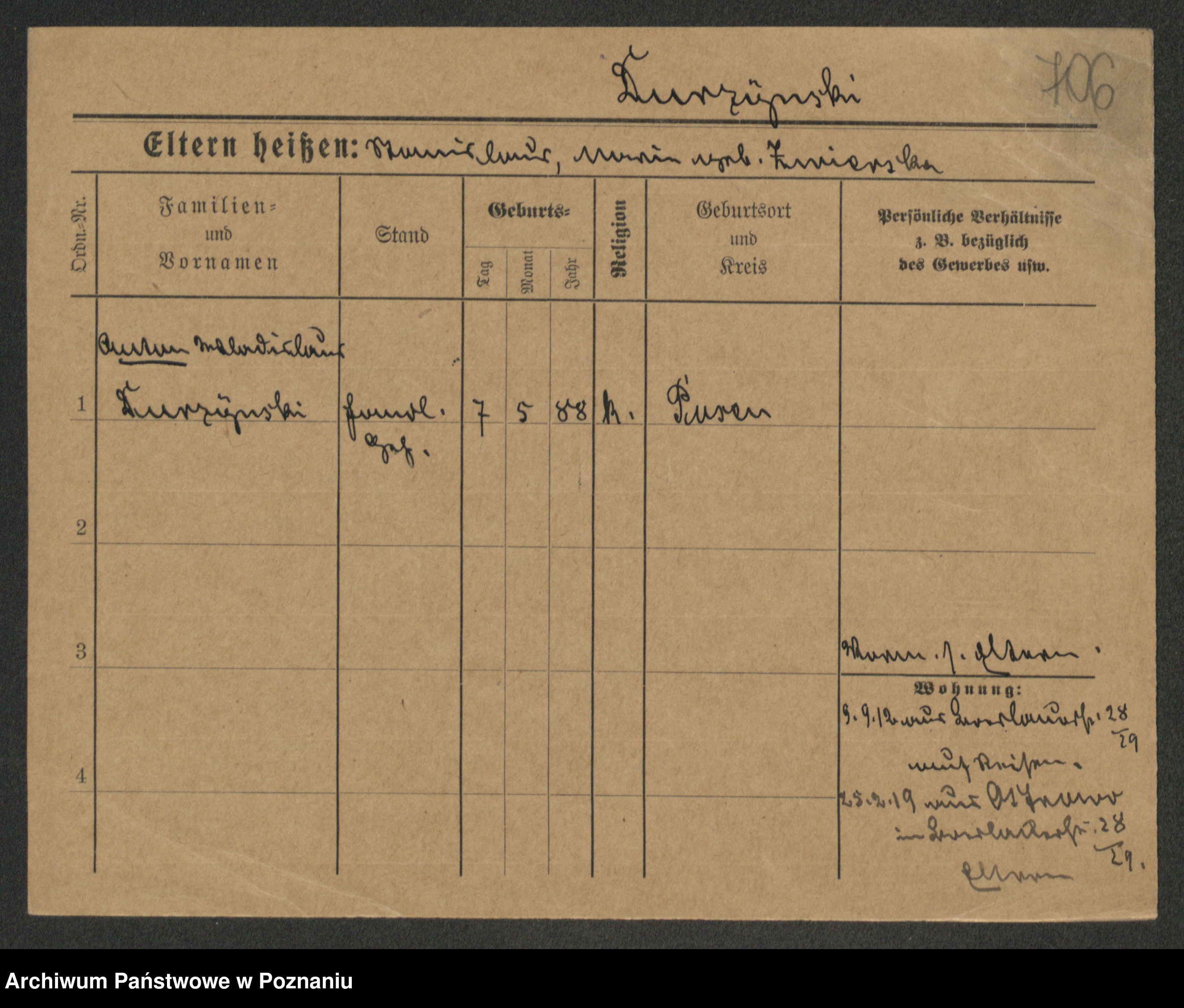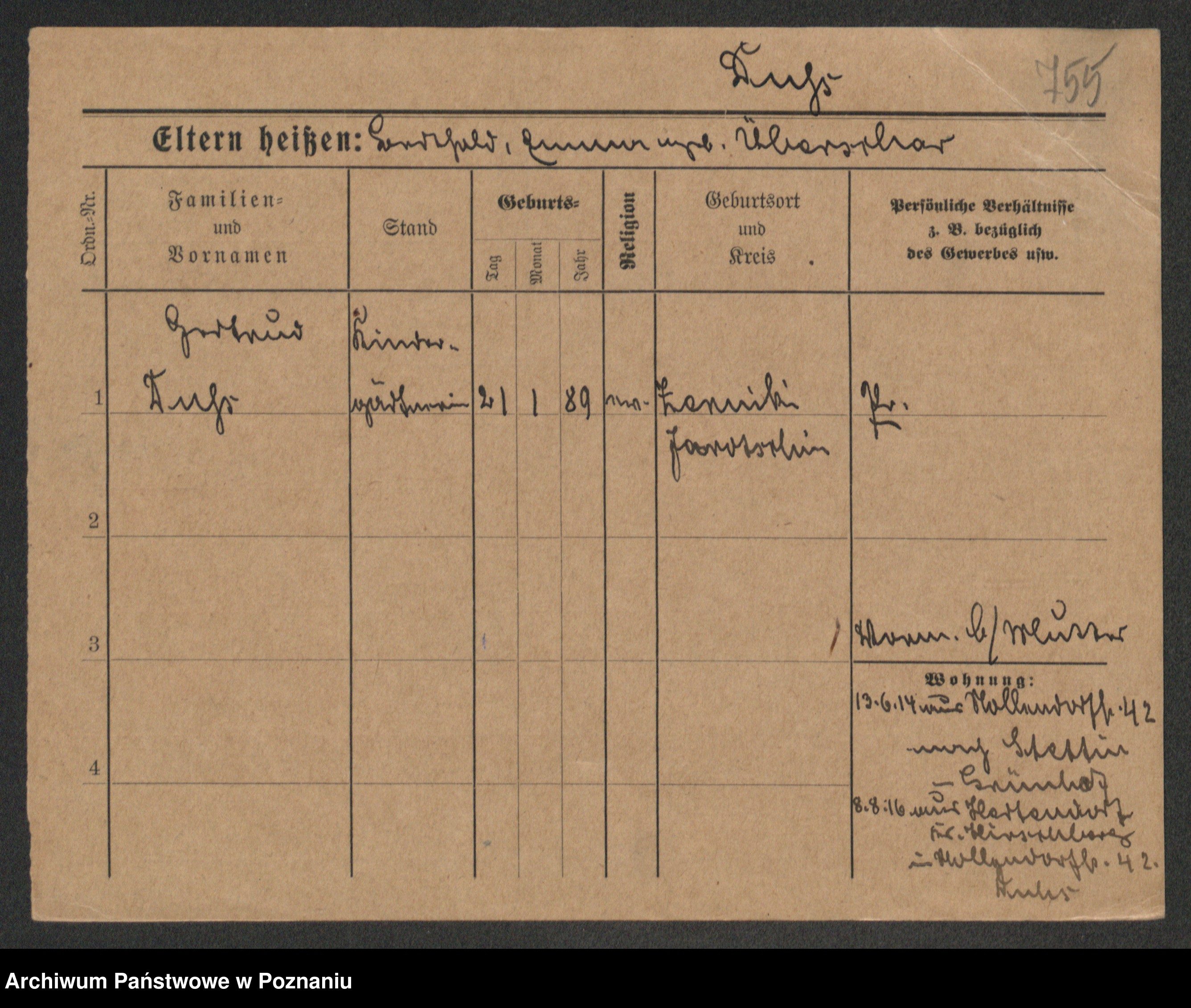 Podgląd karty osobowej dostępny jest po kliknięciu na nazwisko lub ikonkę karty. Można dokonywać powiększenia (ikony na górze) lub przechodzić między kolejnymi skanami (strzałki po bokach).