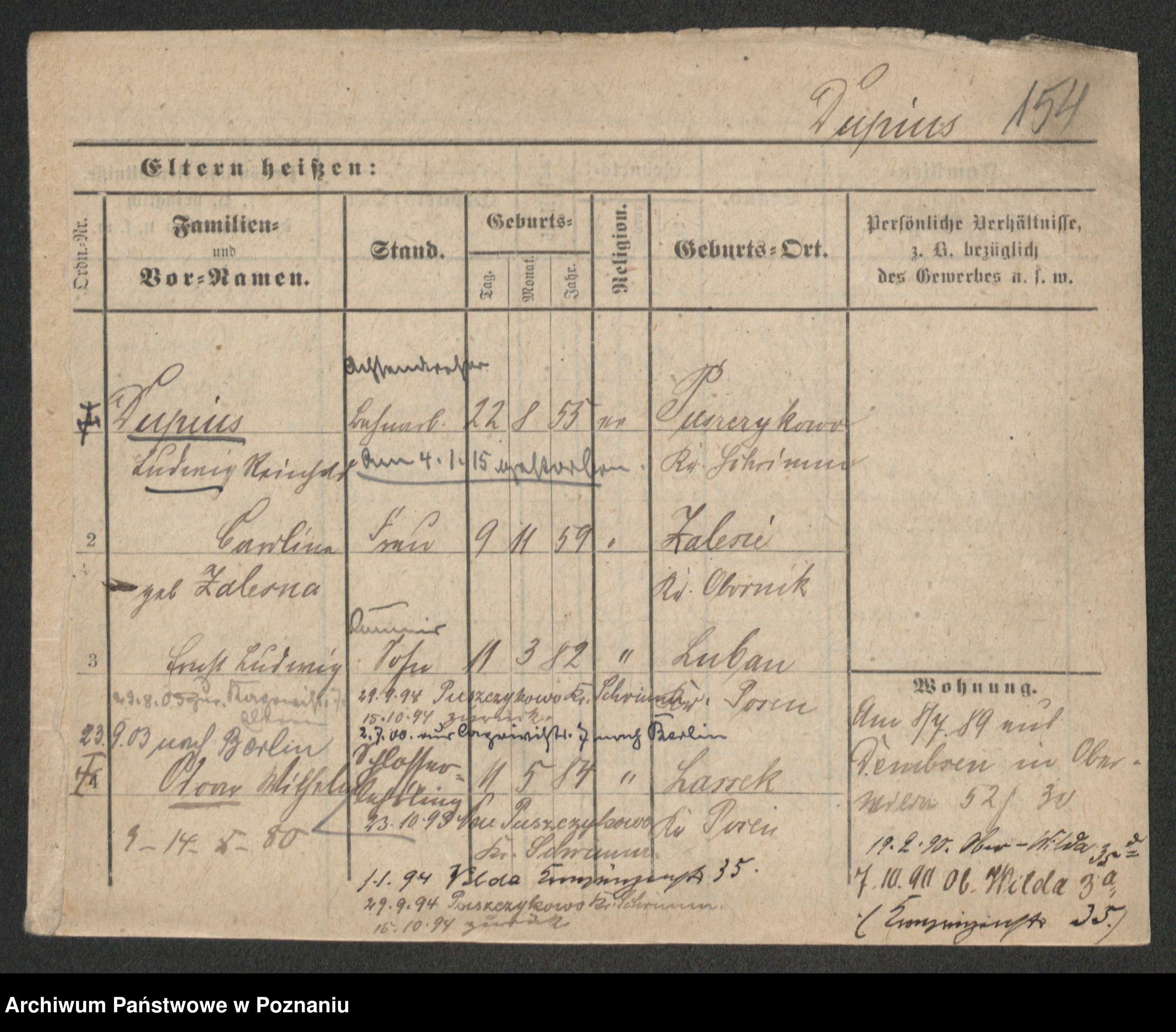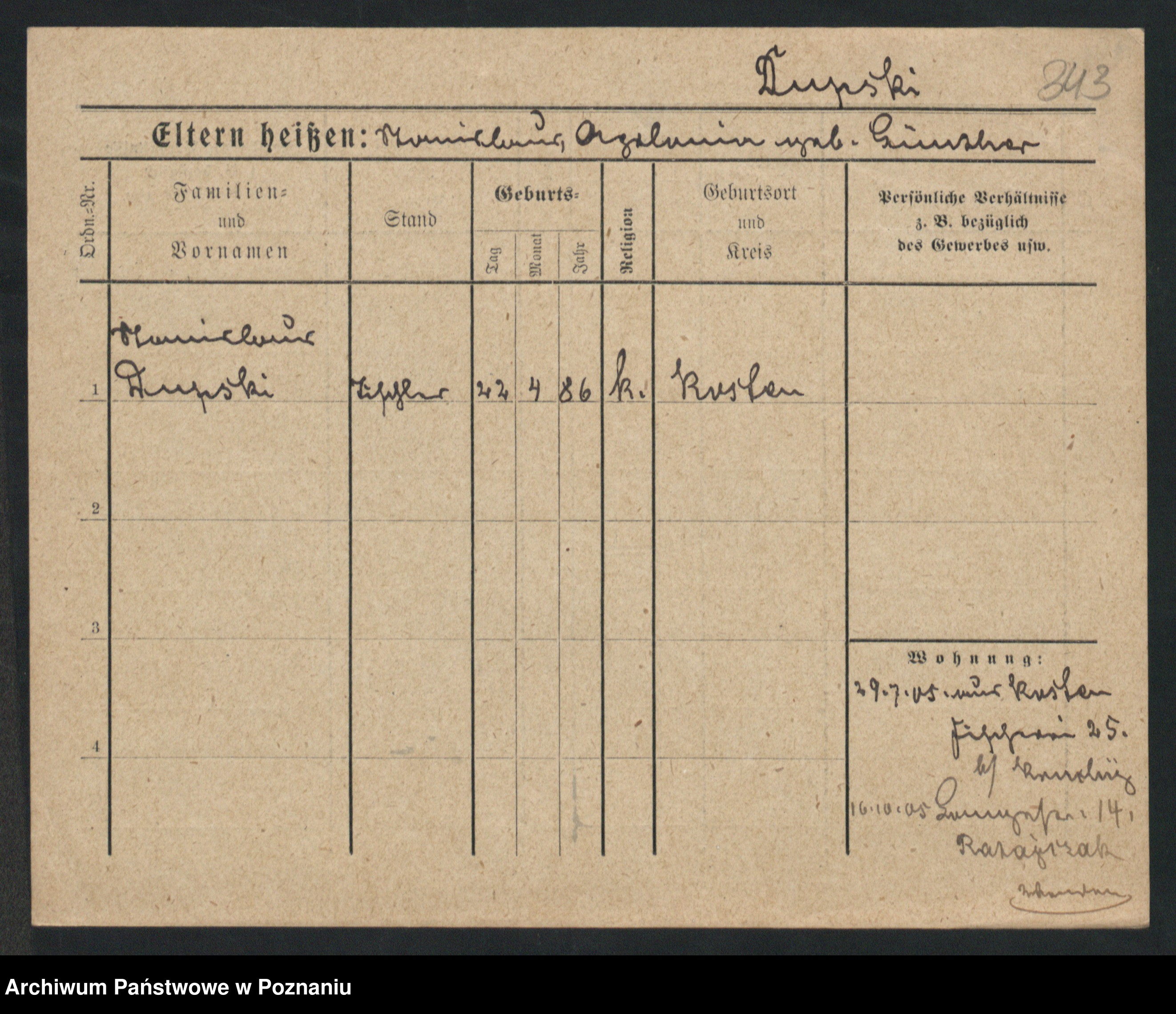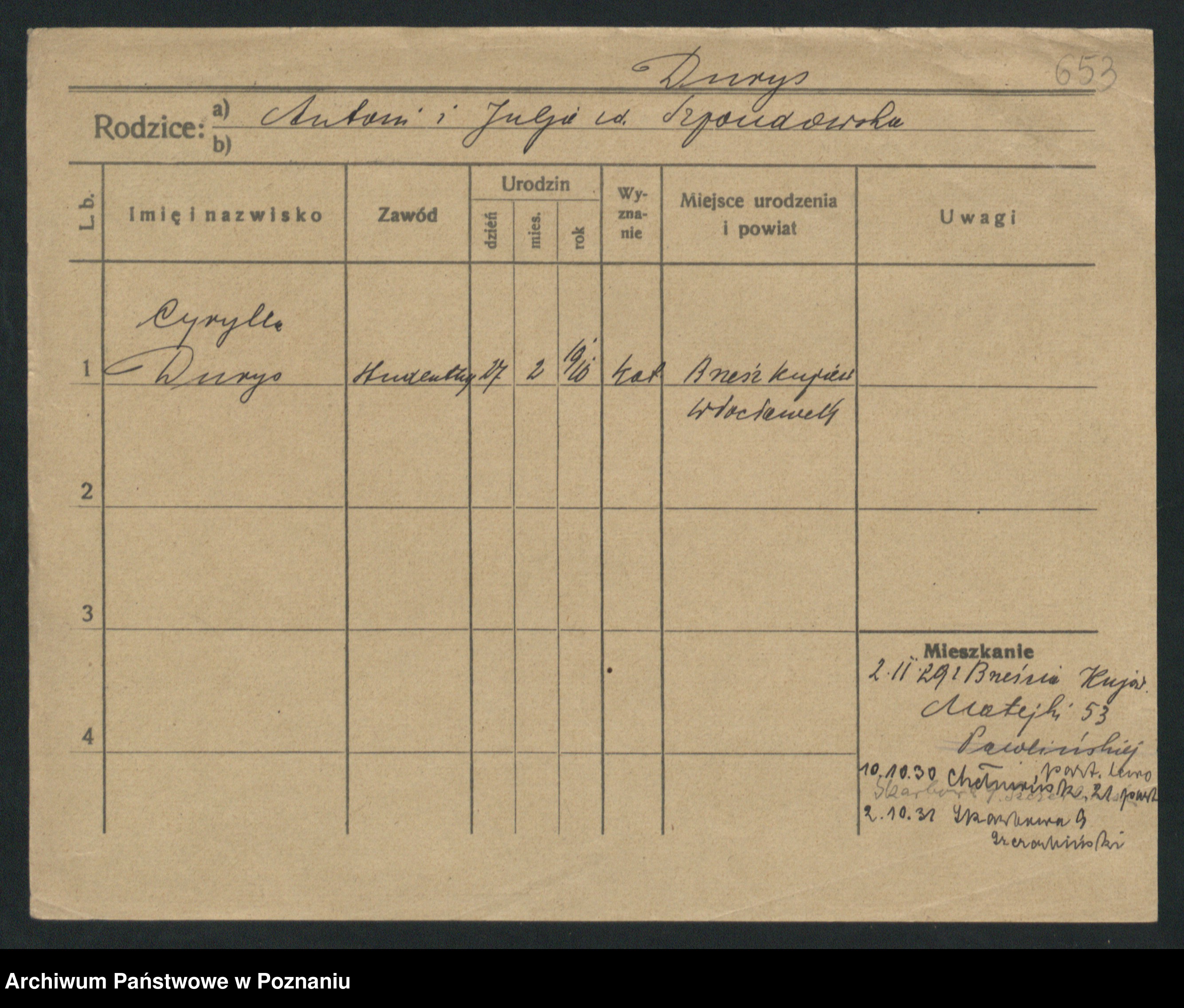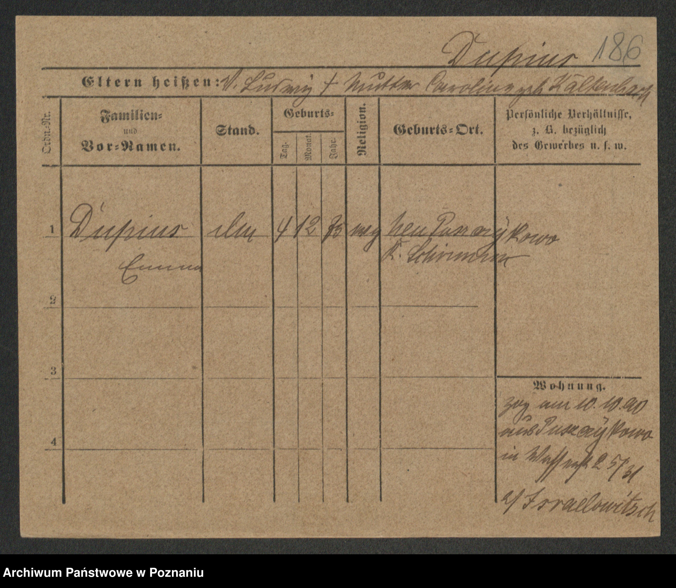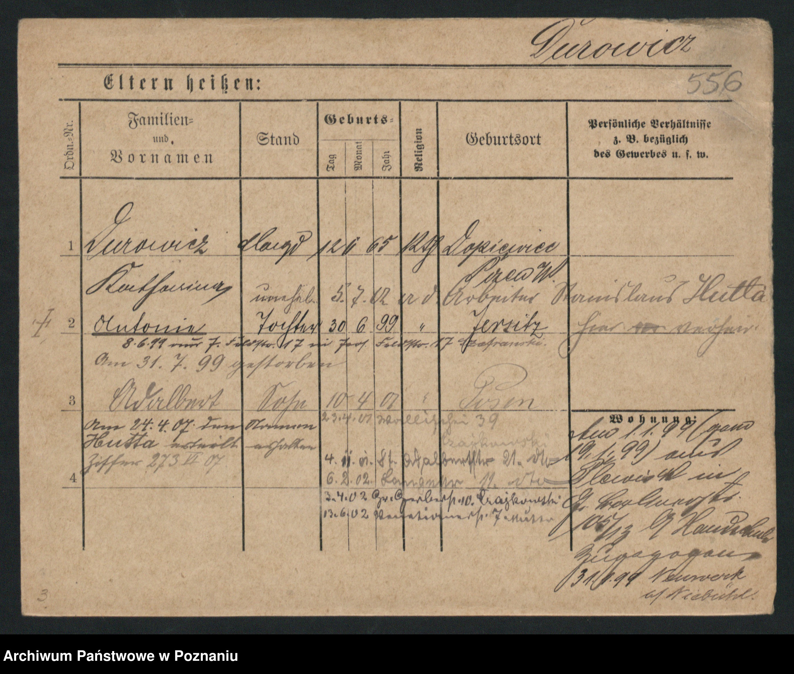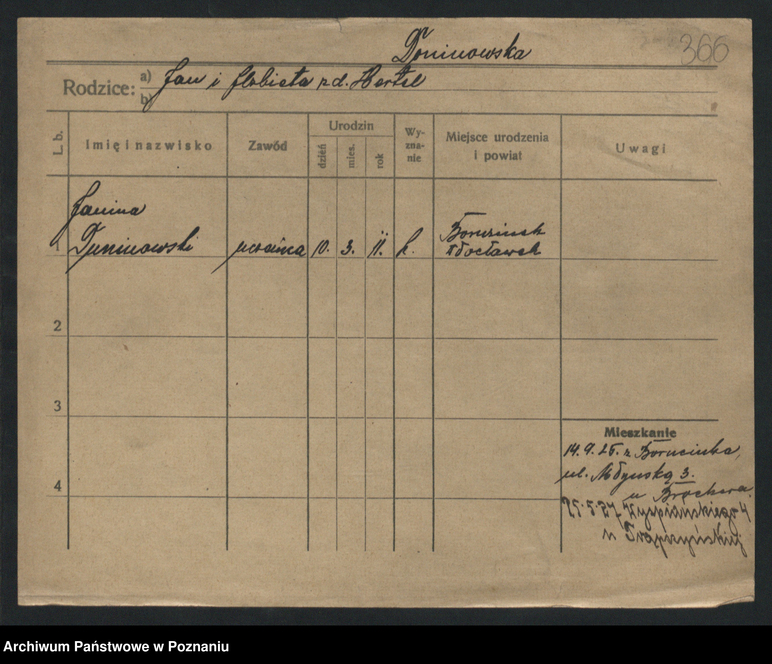 Podgląd karty osobowej dostępny jest po kliknięciu na nazwisko lub ikonkę karty. Można dokonywać powiększenia (ikony na górze) lub przechodzić między kolejnymi skanami (strzałki po bokach).