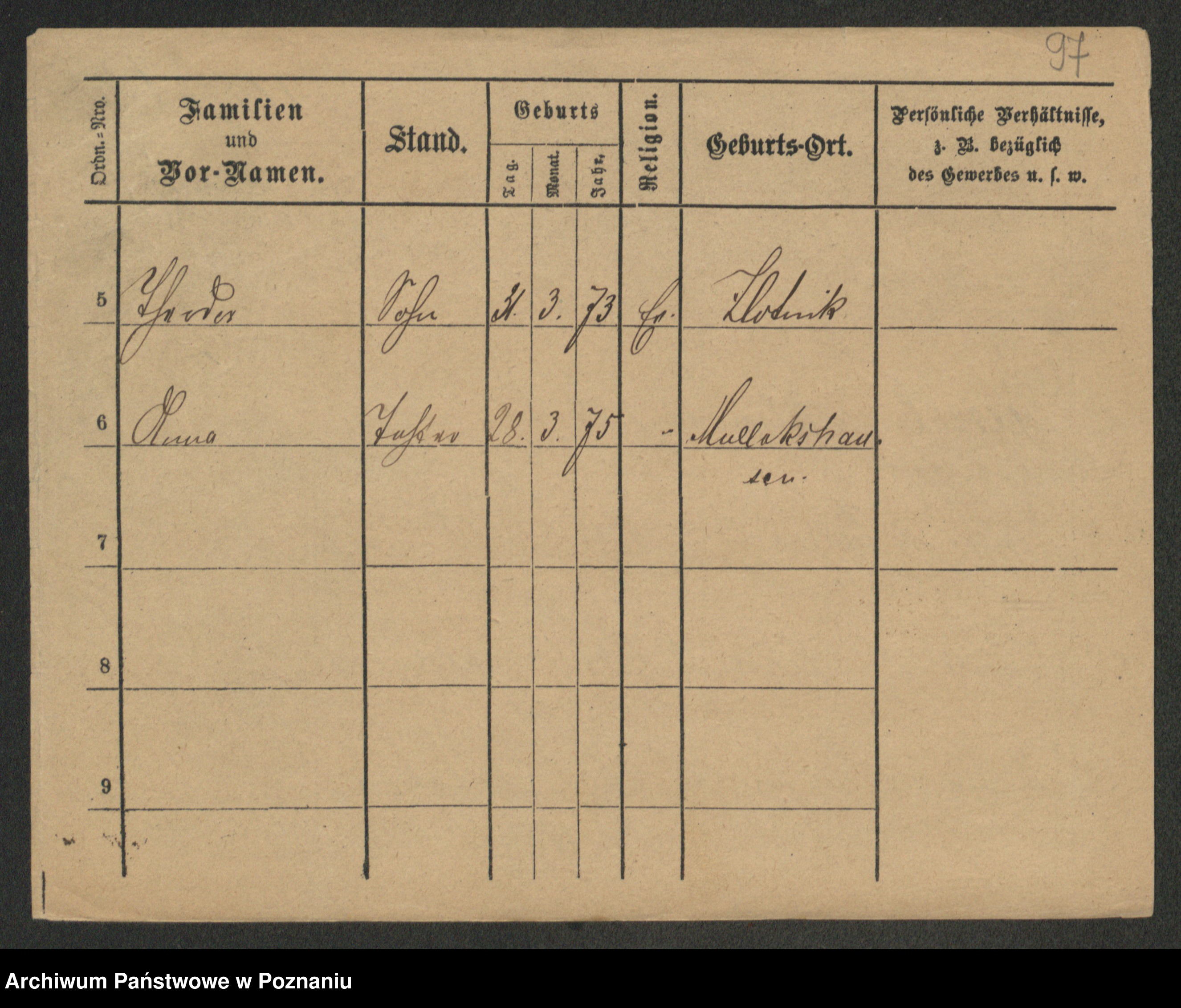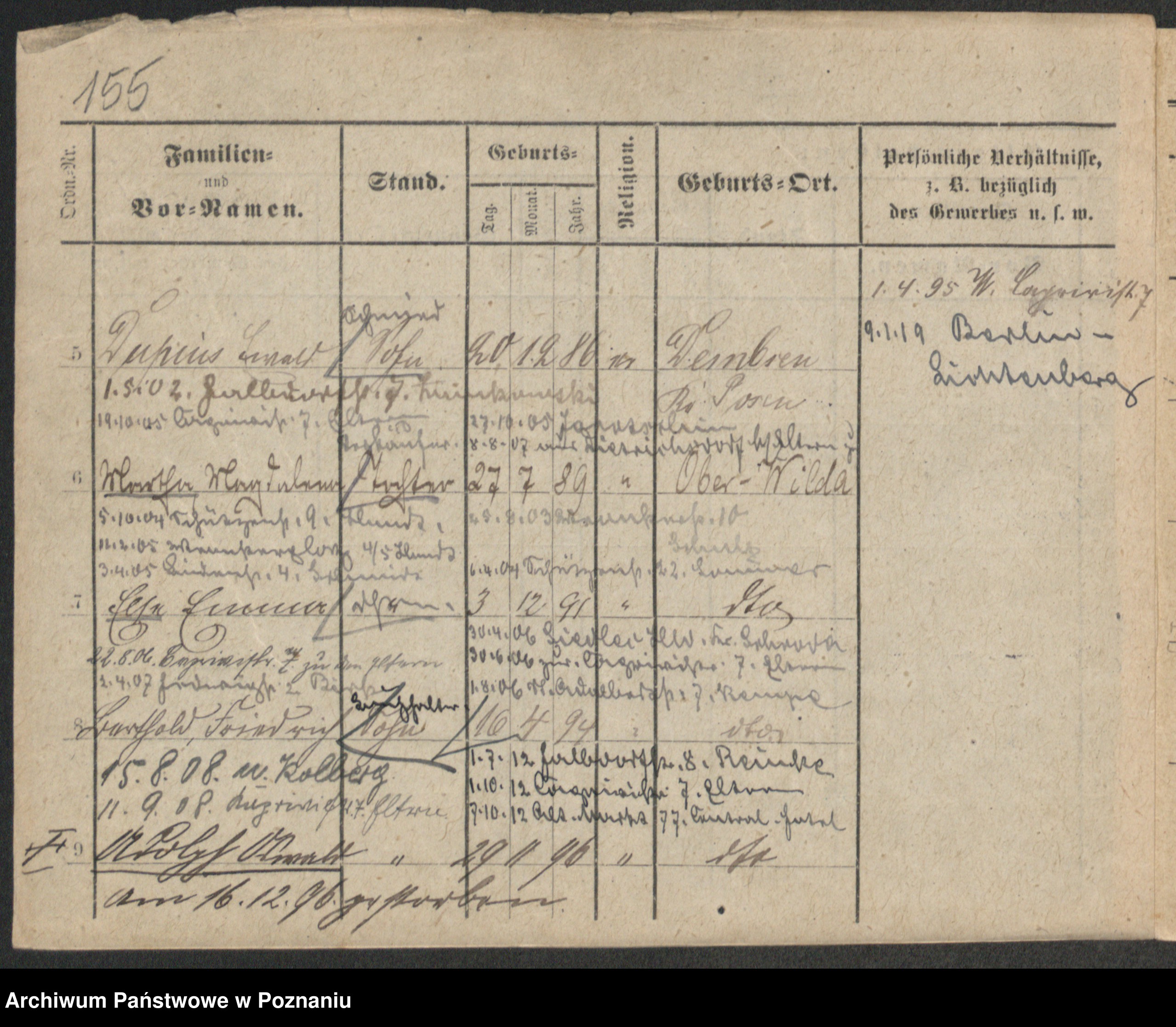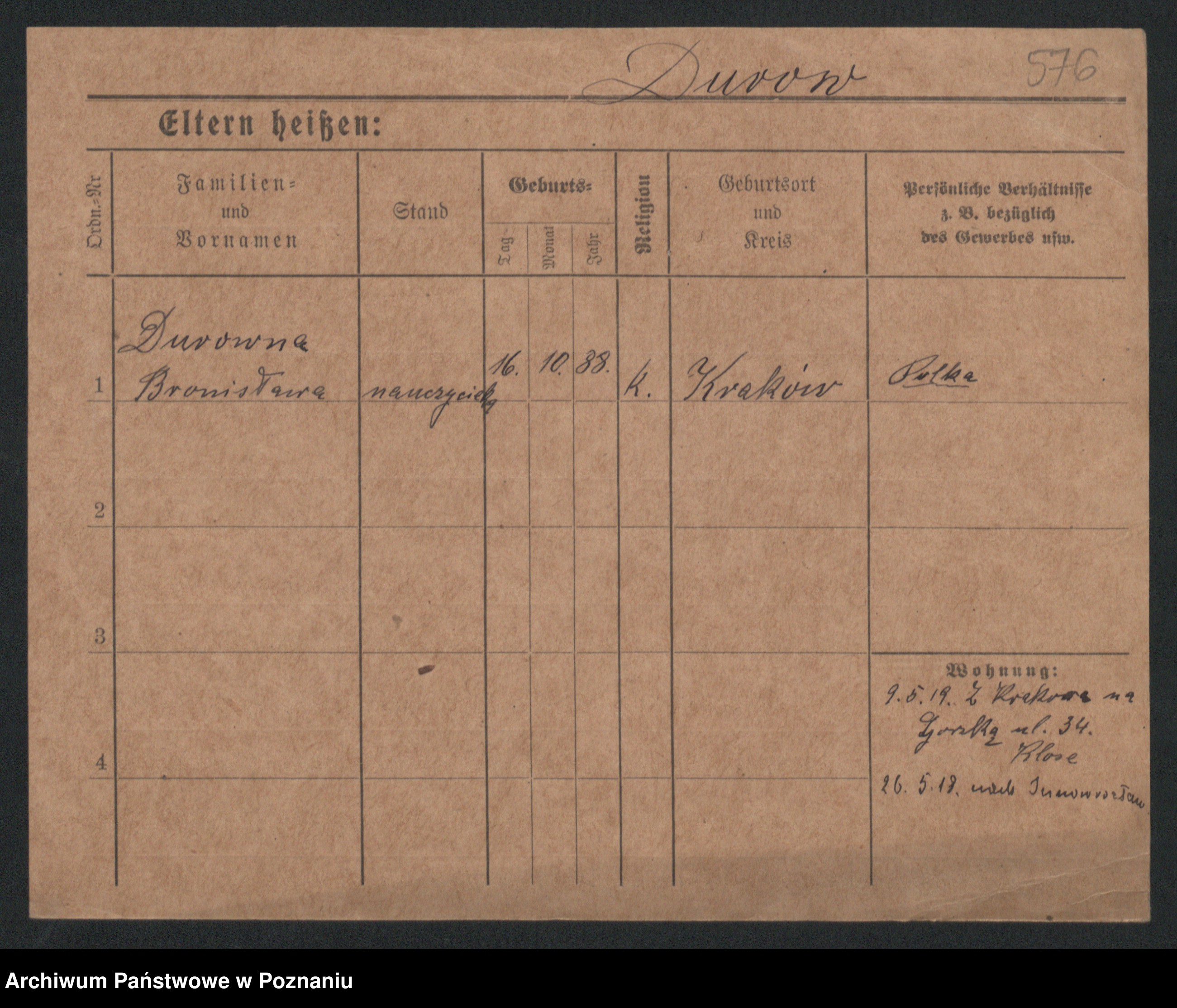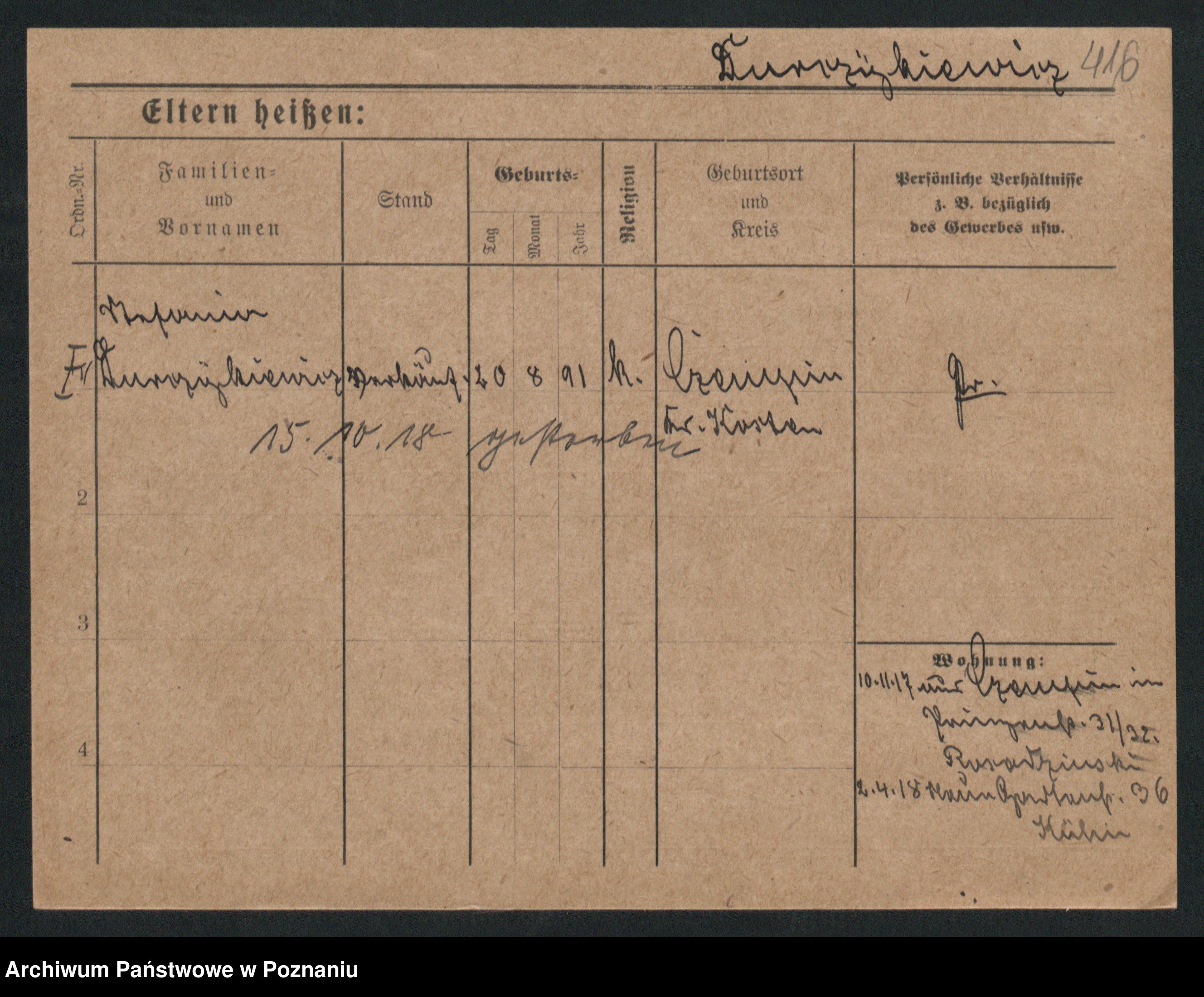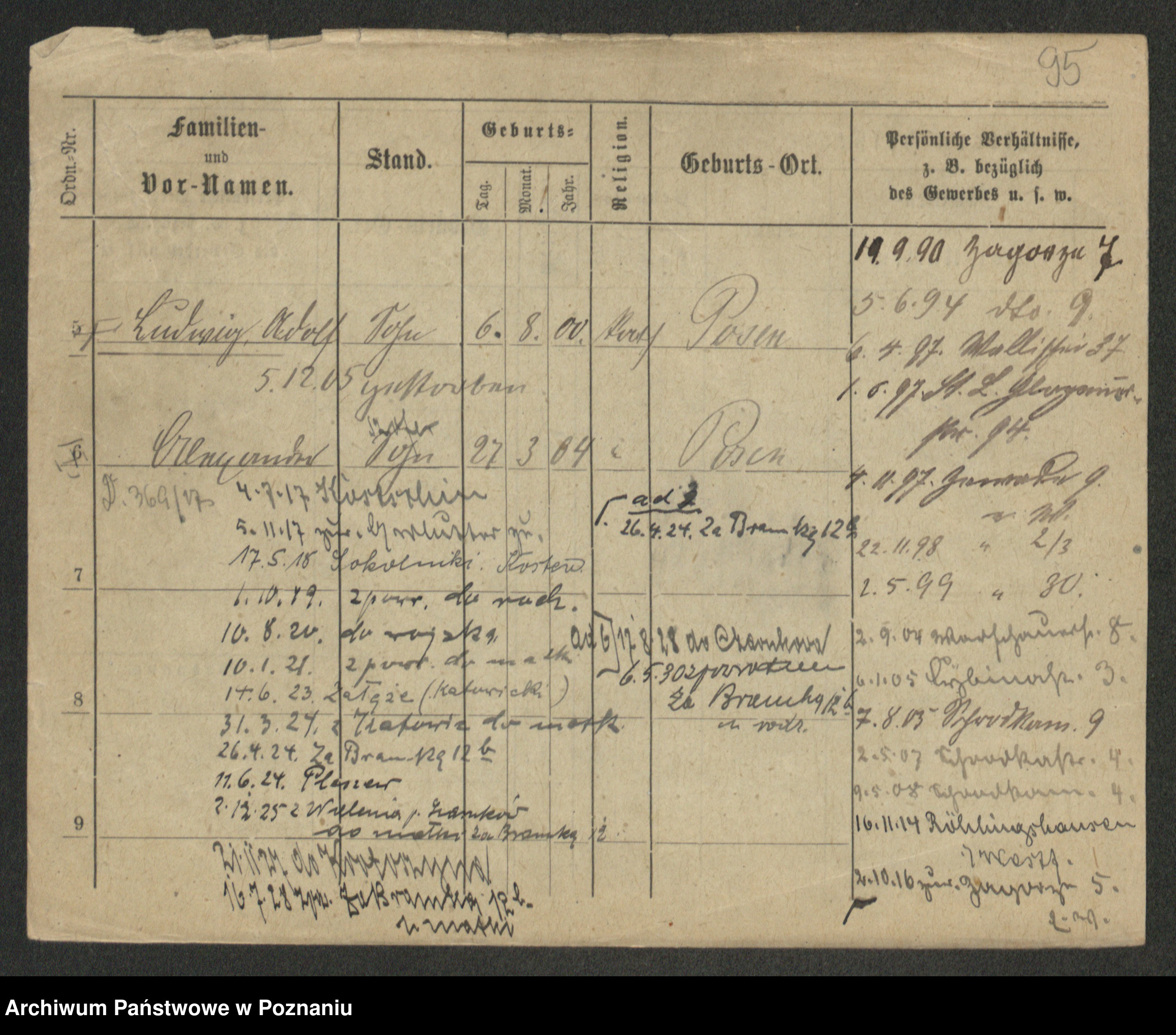 Podgląd karty osobowej dostępny jest po kliknięciu na nazwisko lub ikonkę karty. Można dokonywać powiększenia (ikony na górze) lub przechodzić między kolejnymi skanami (strzałki po bokach).