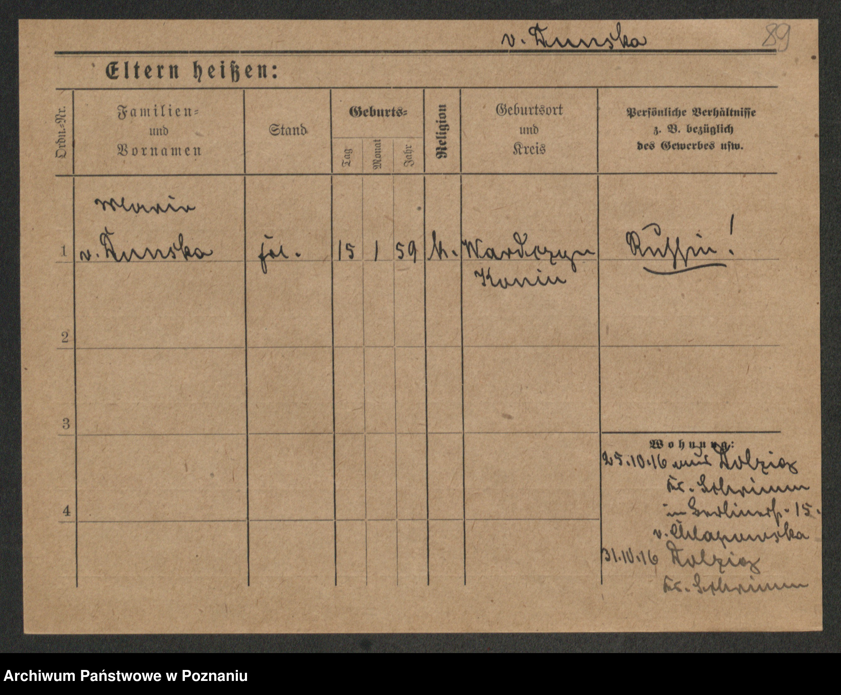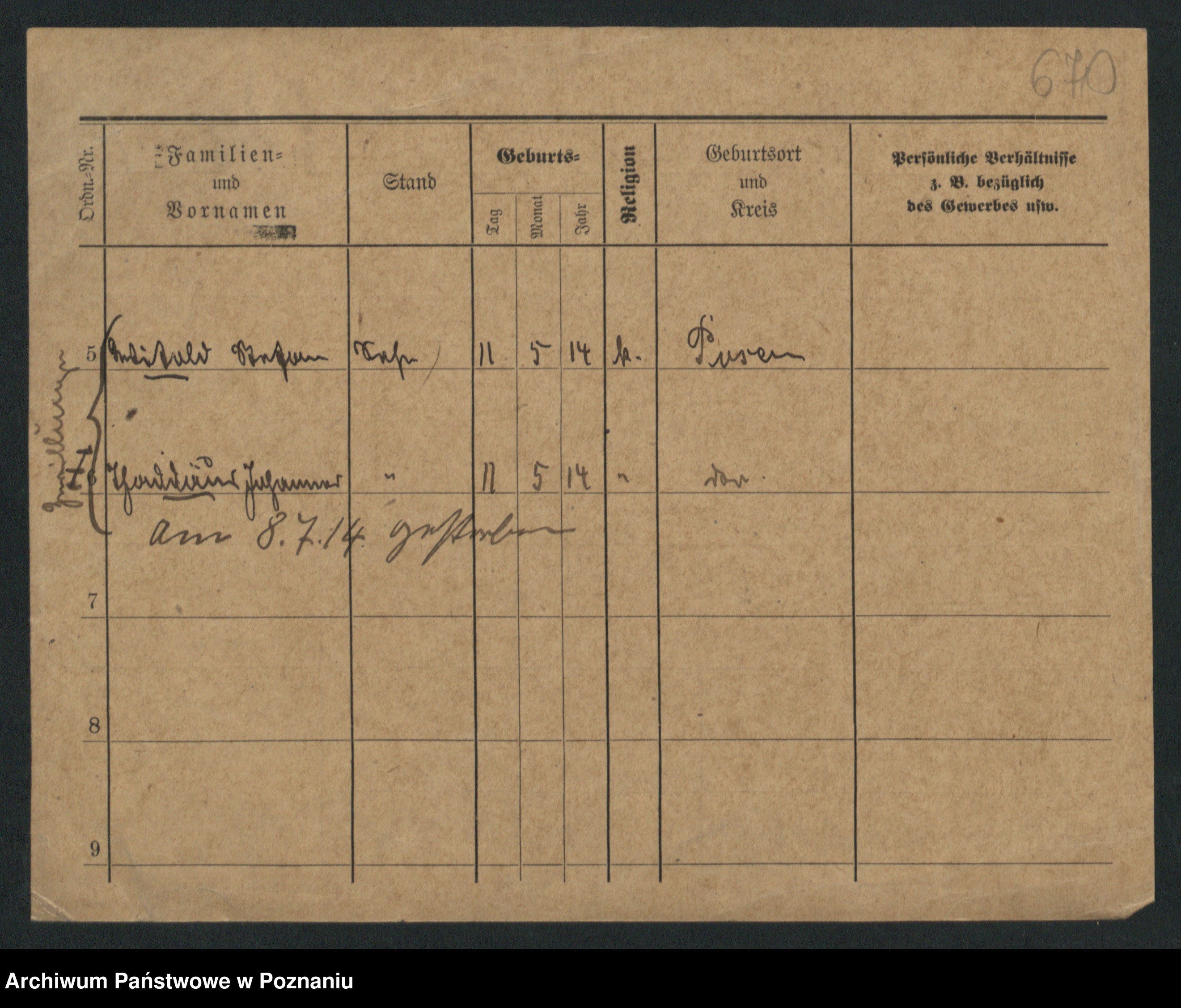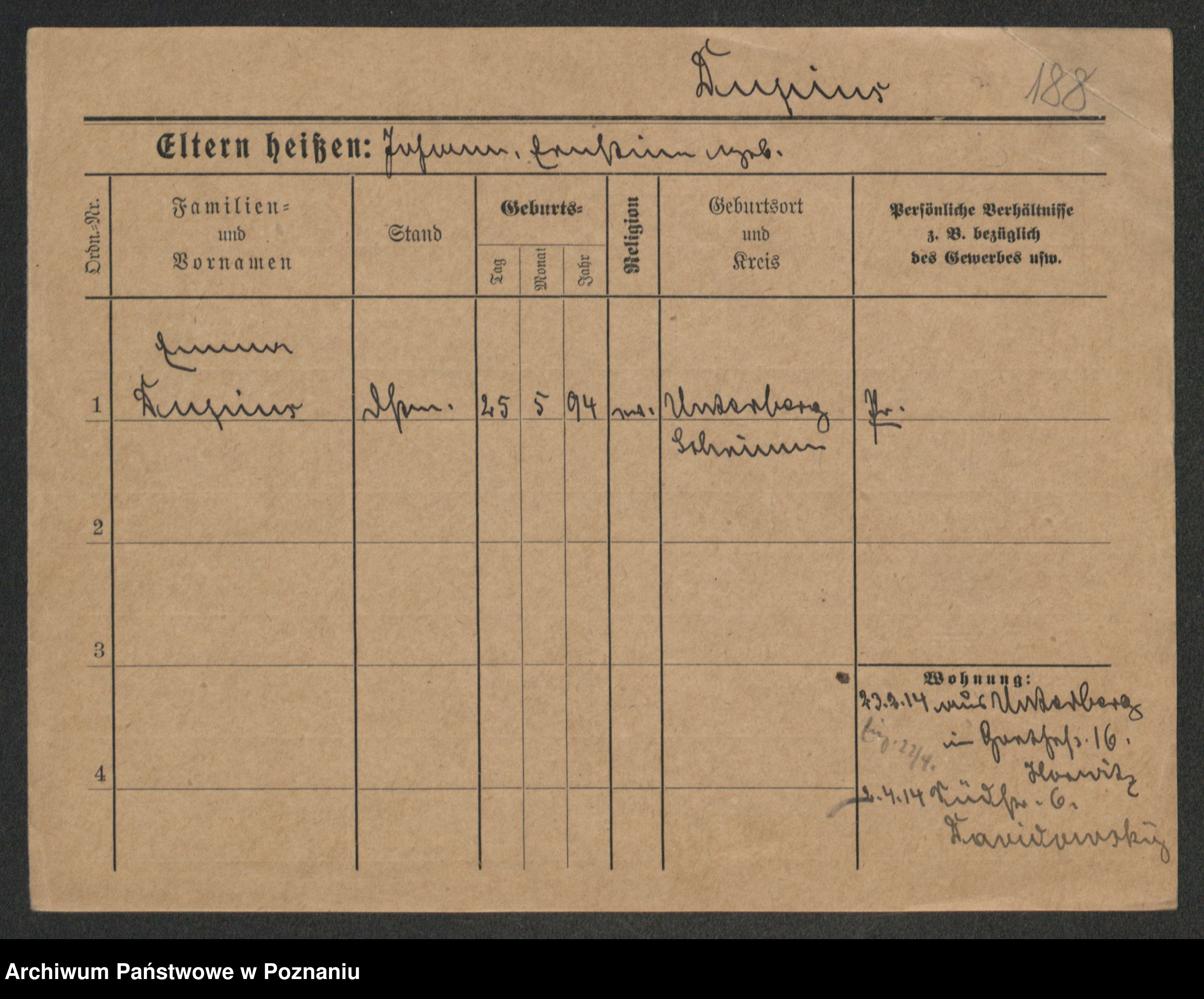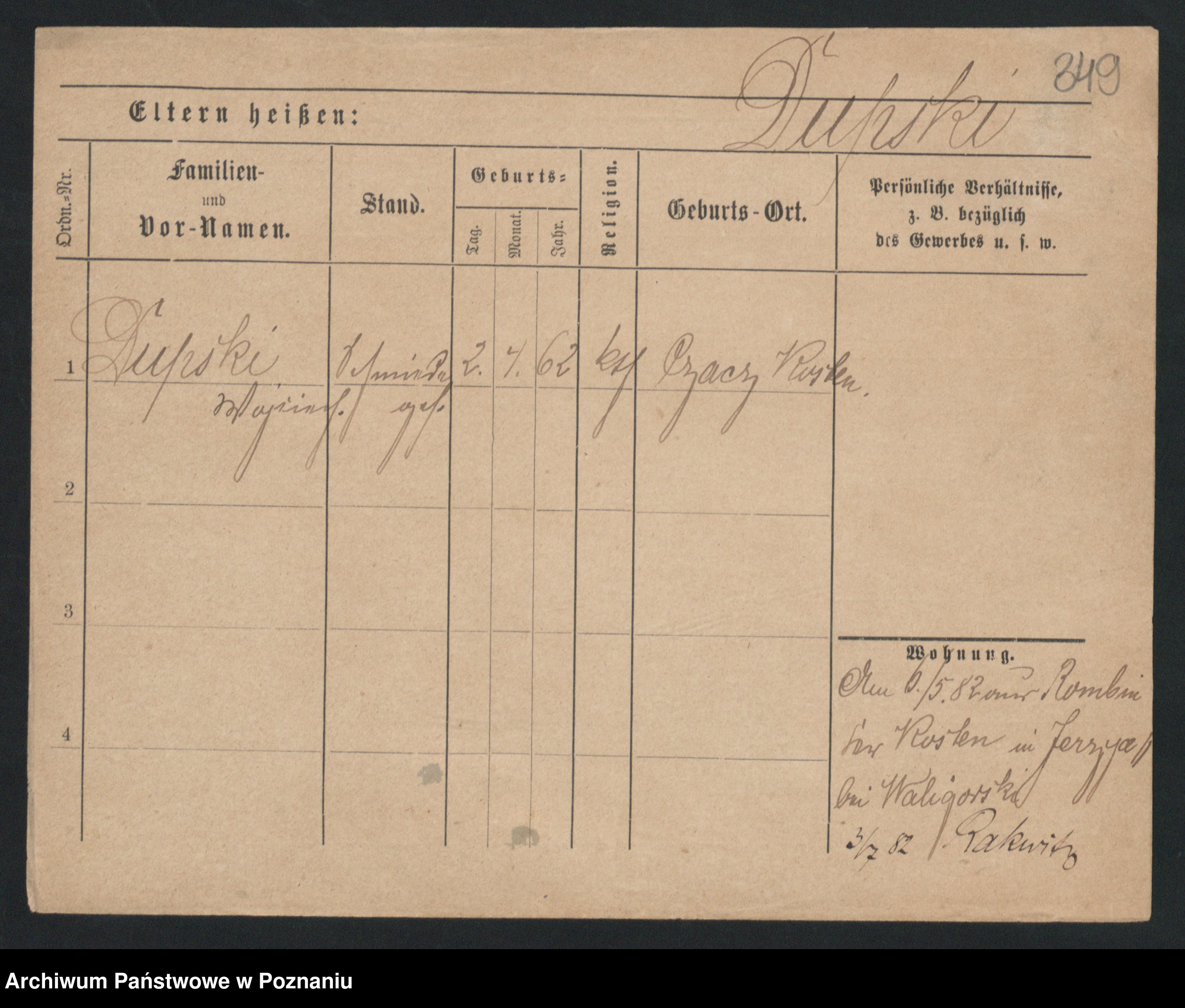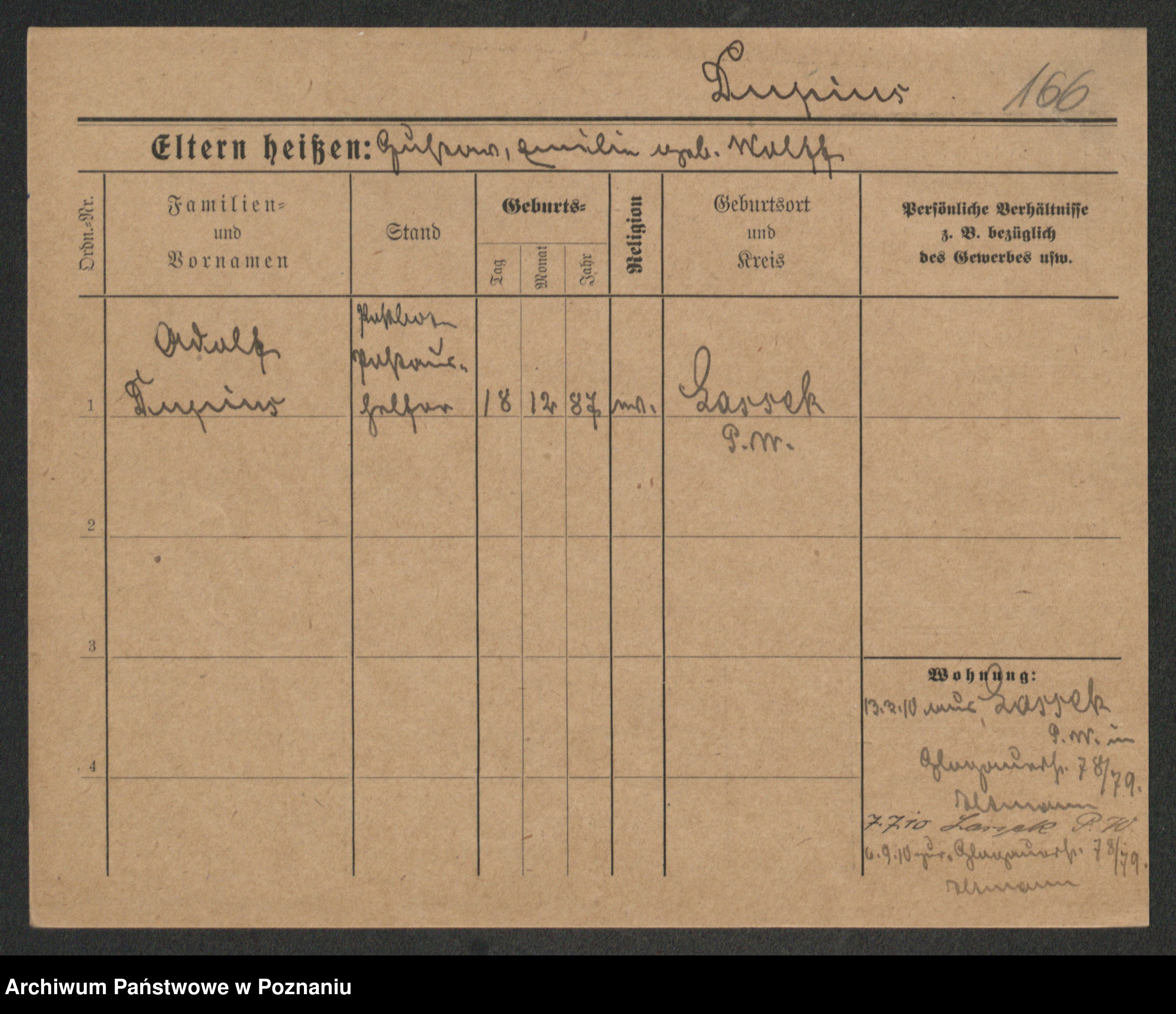 Podgląd karty osobowej dostępny jest po kliknięciu na nazwisko lub ikonkę karty. Można dokonywać powiększenia (ikony na górze) lub przechodzić między kolejnymi skanami (strzałki po bokach).