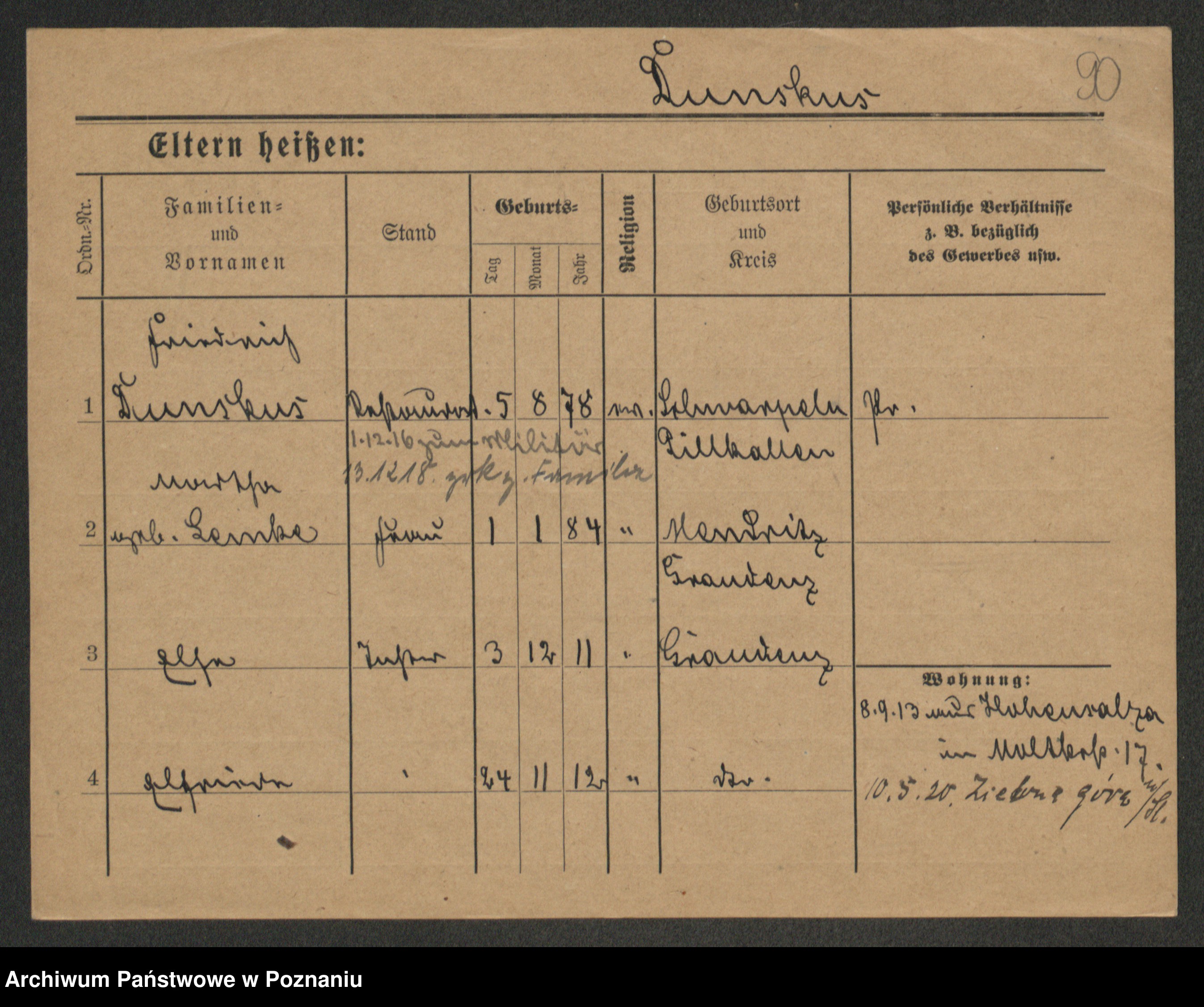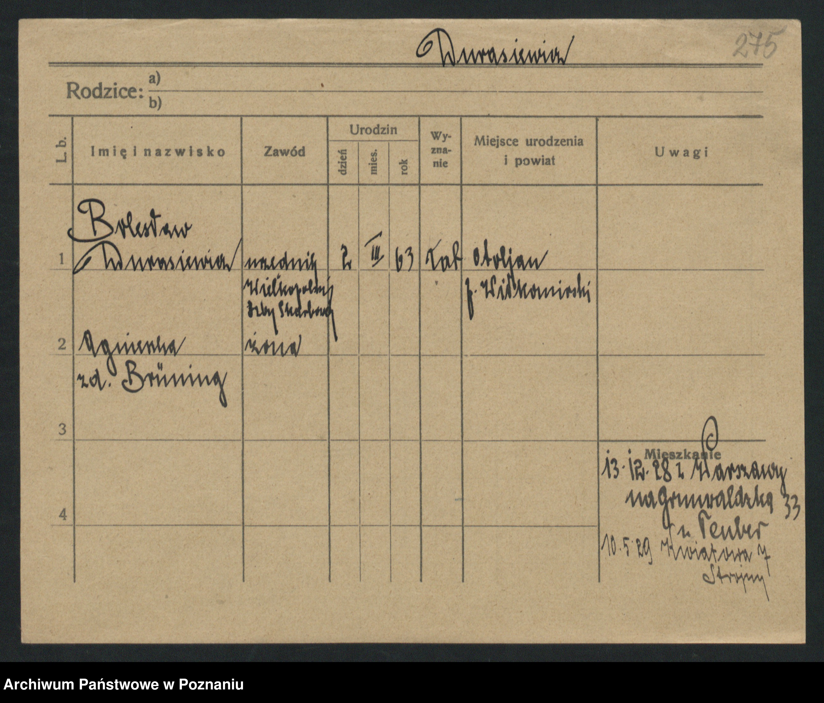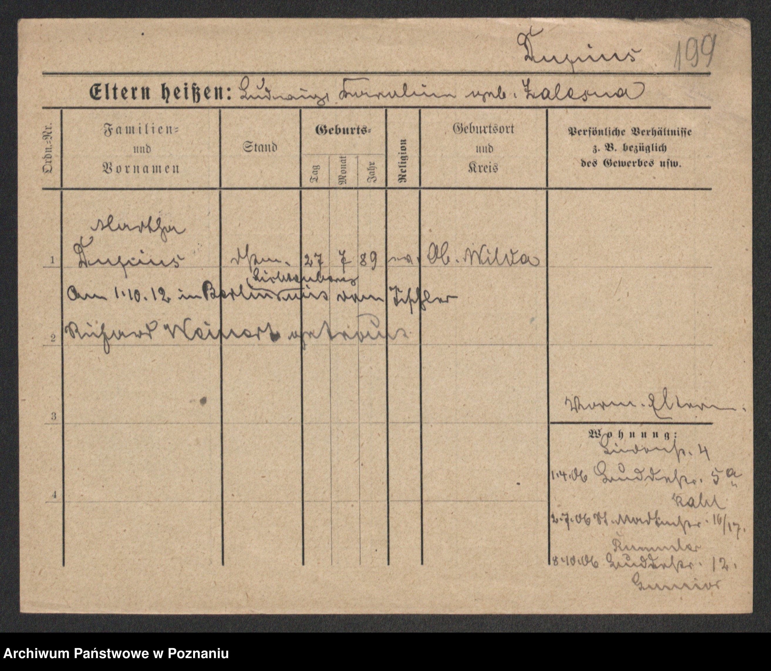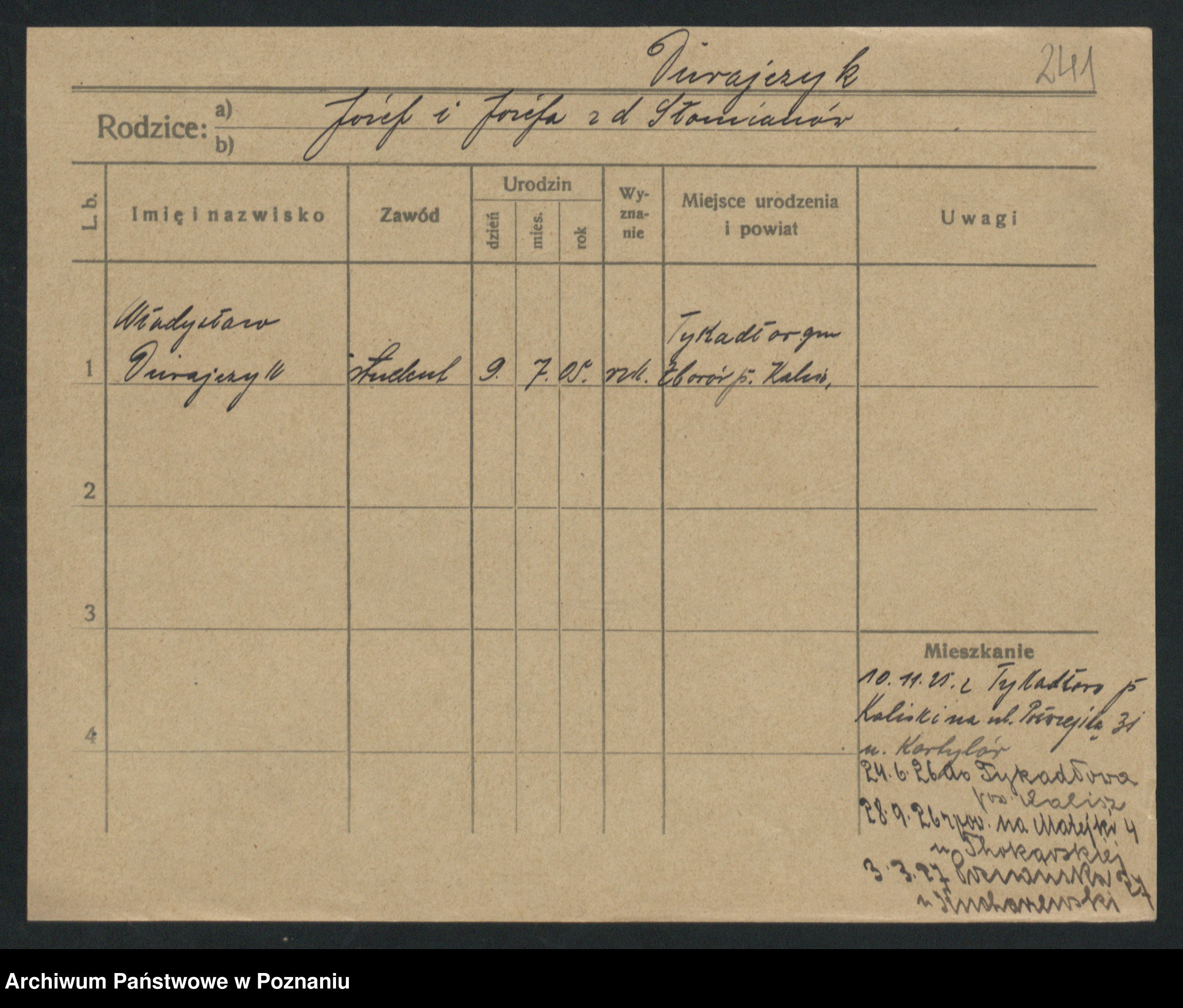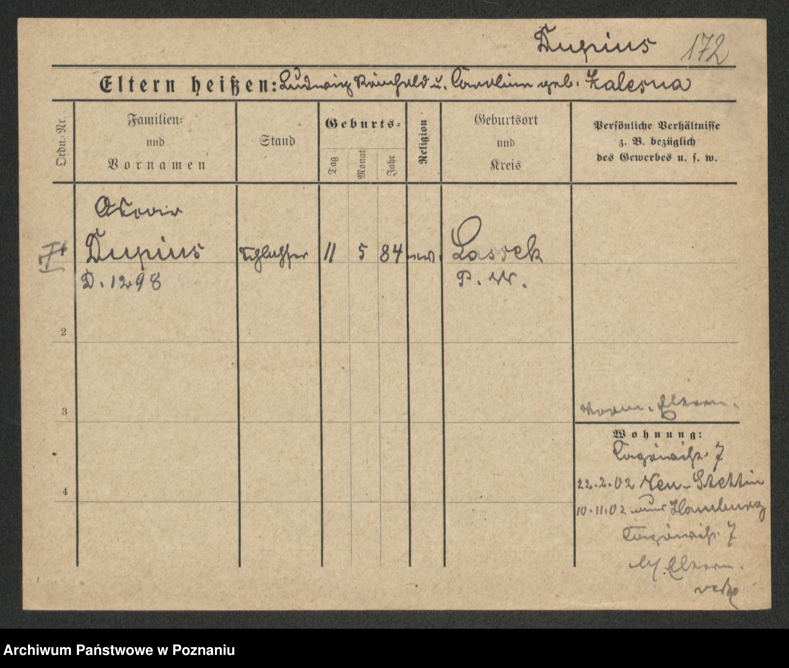 Podgląd karty osobowej dostępny jest po kliknięciu na nazwisko lub ikonkę karty. Można dokonywać powiększenia (ikony na górze) lub przechodzić między kolejnymi skanami (strzałki po bokach).