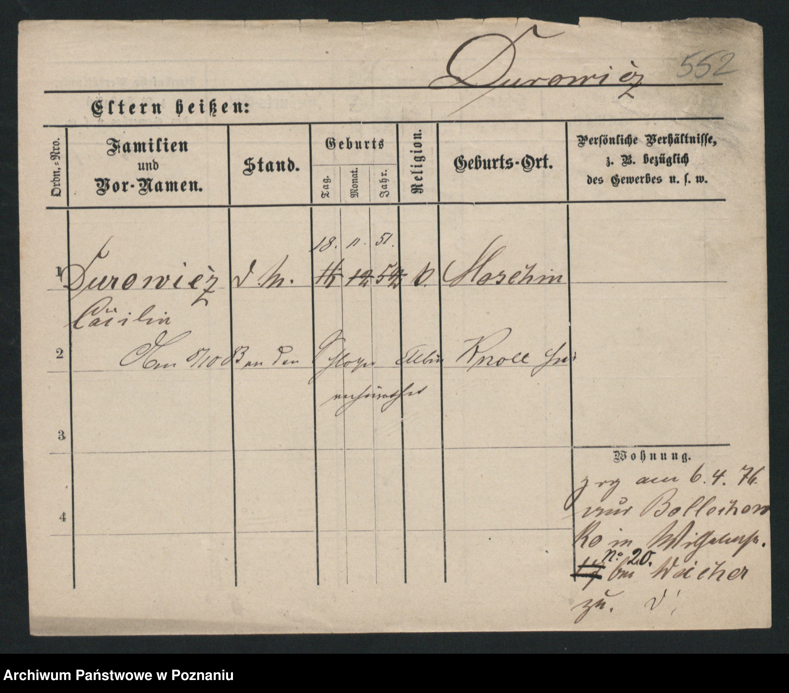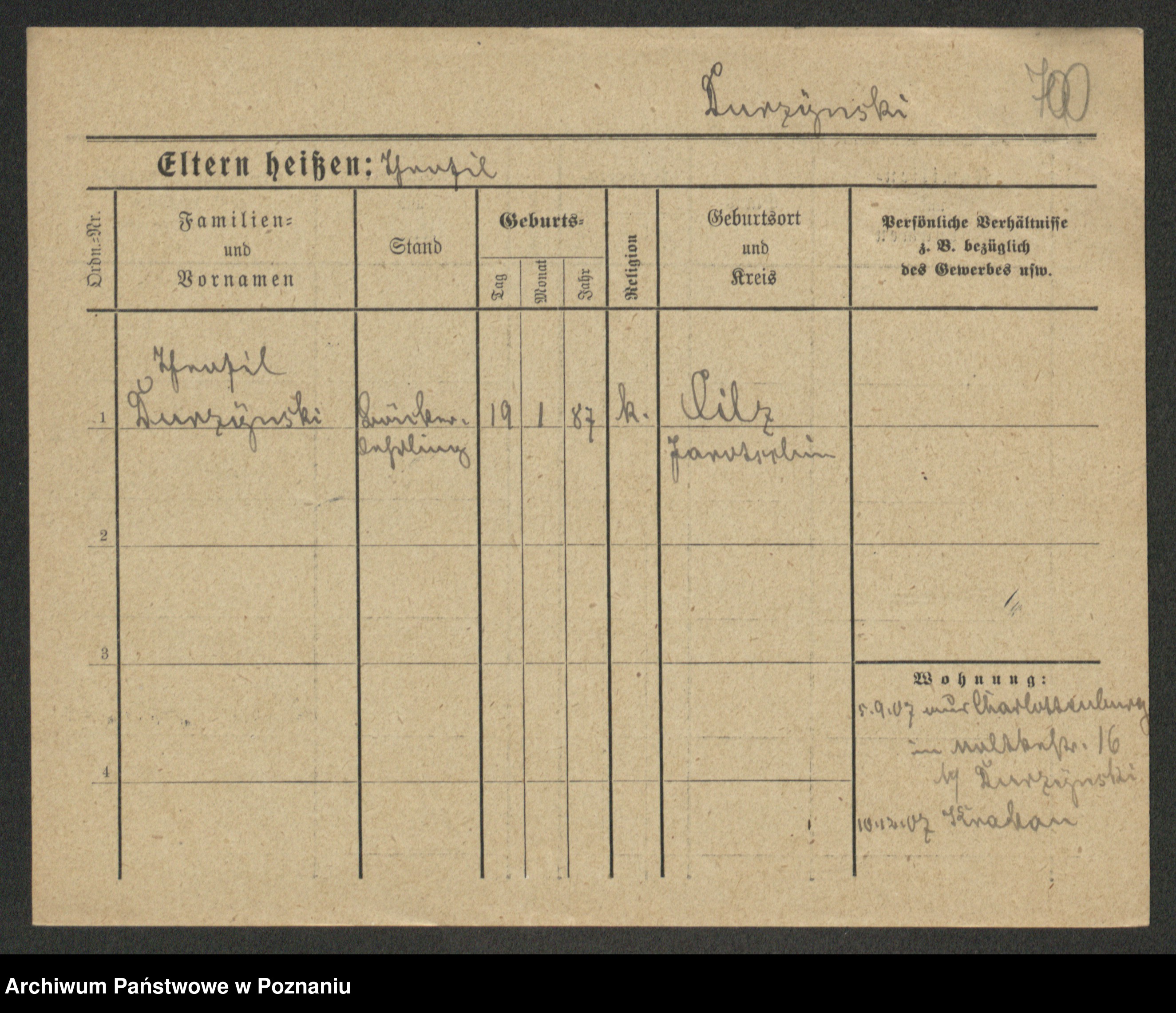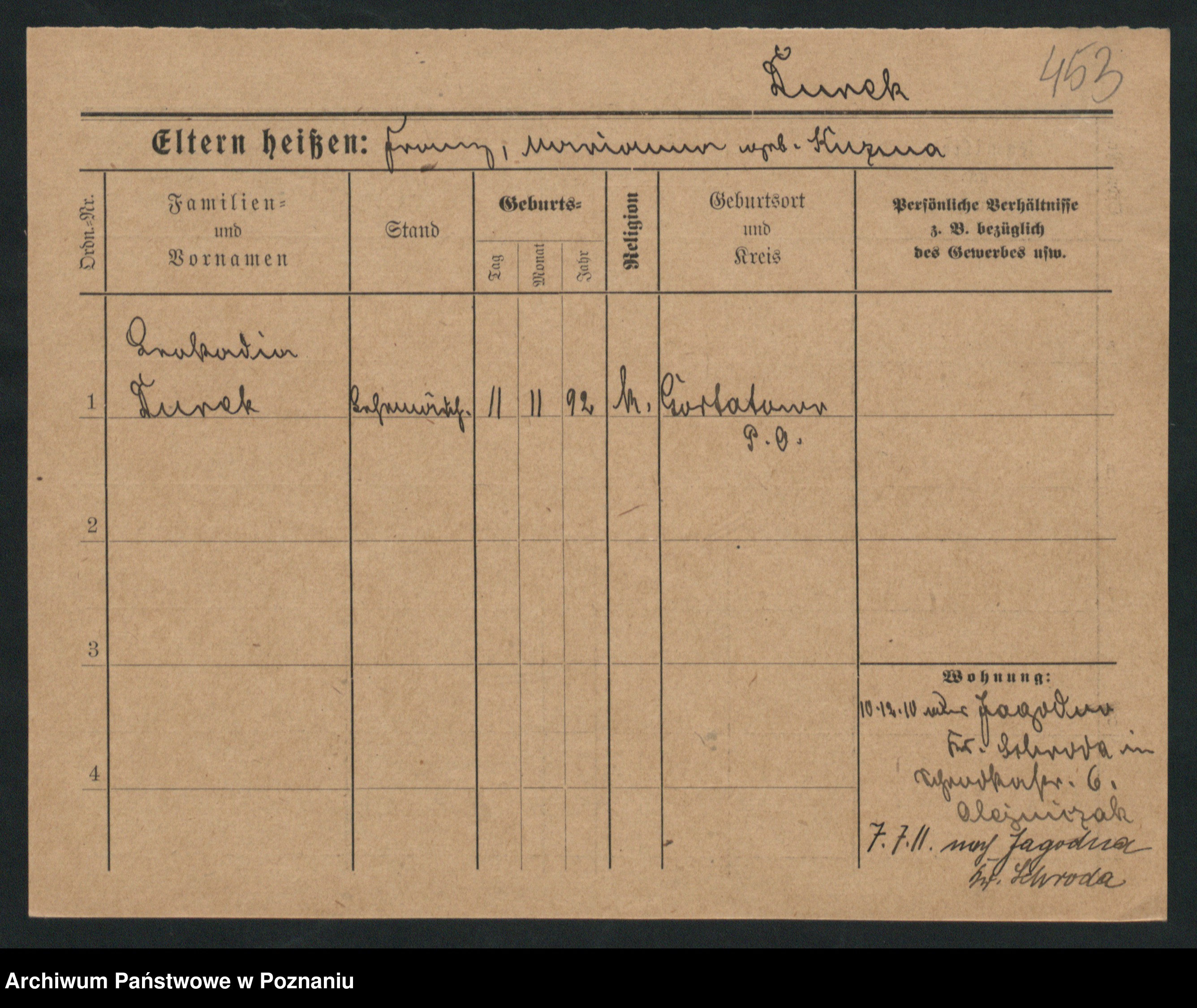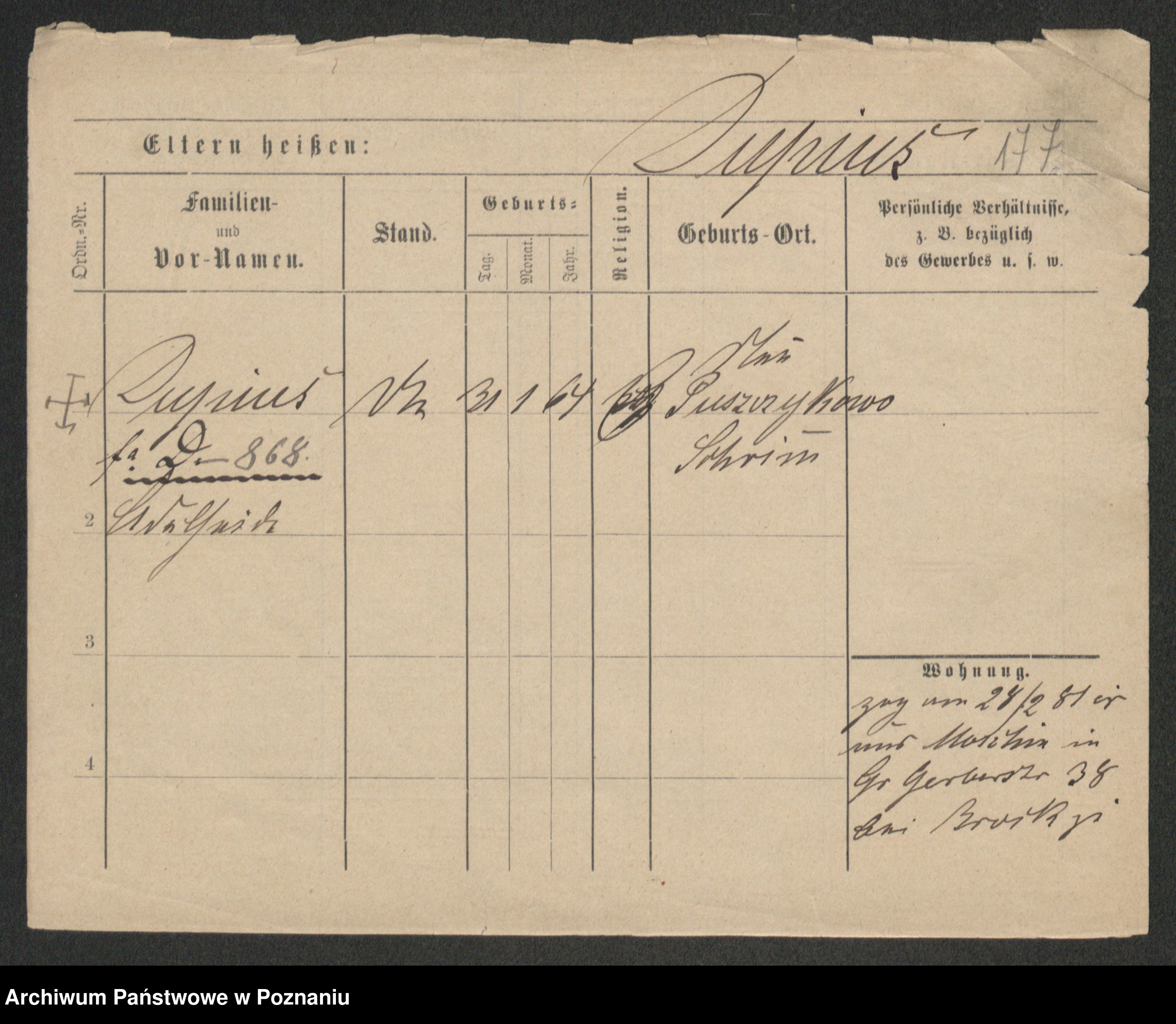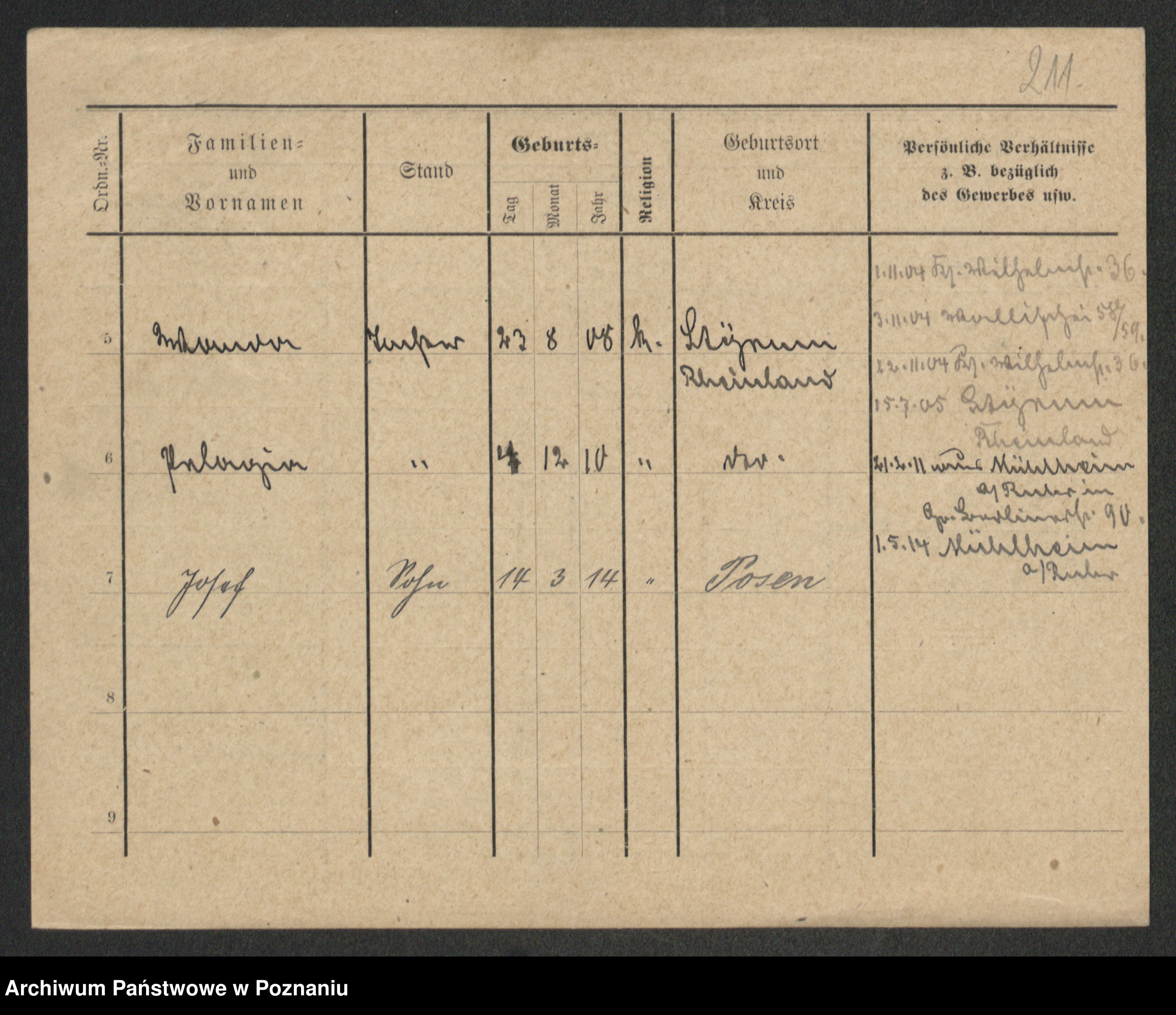 Podgląd karty osobowej dostępny jest po kliknięciu na nazwisko lub ikonkę karty. Można dokonywać powiększenia (ikony na górze) lub przechodzić między kolejnymi skanami (strzałki po bokach).