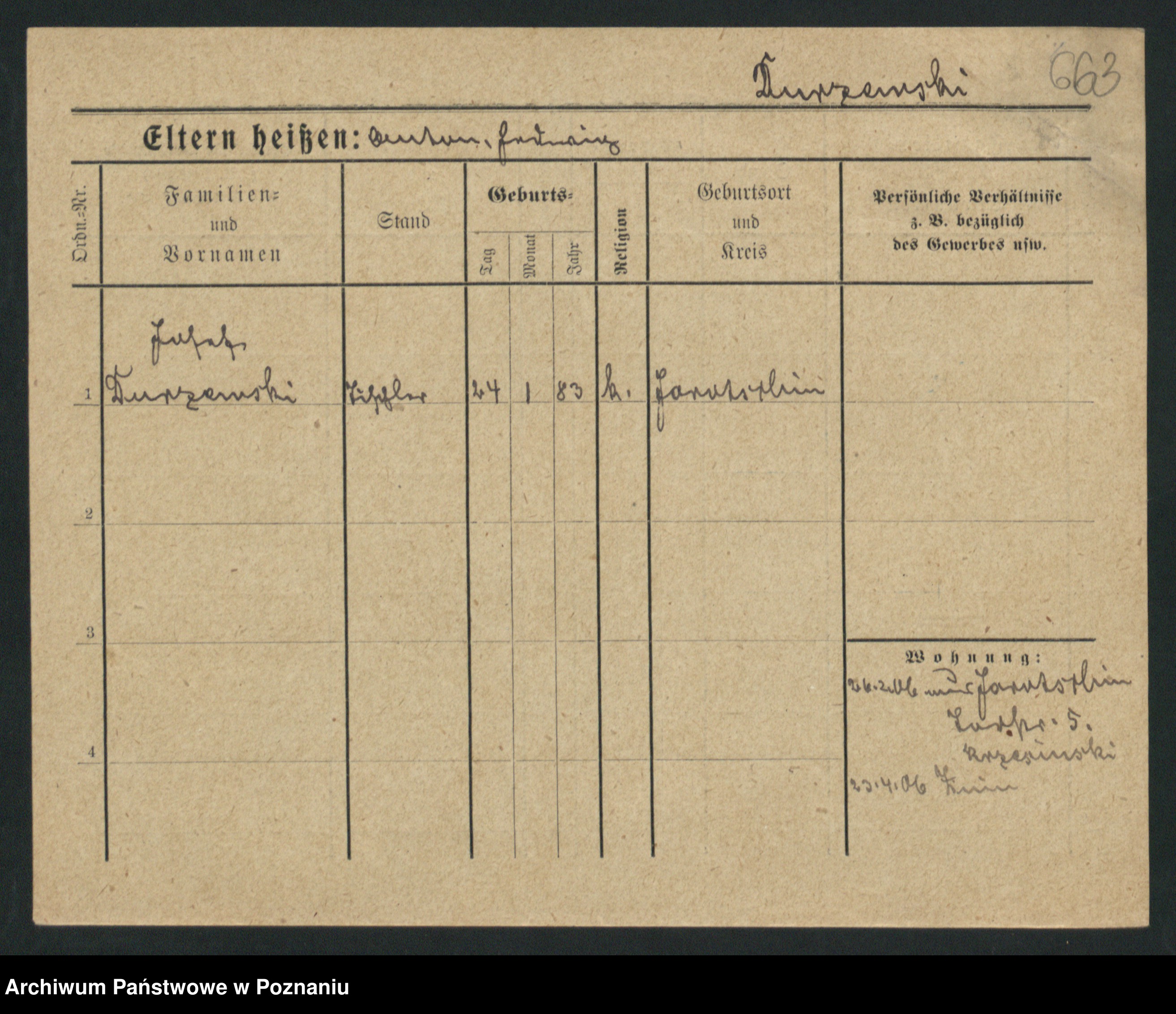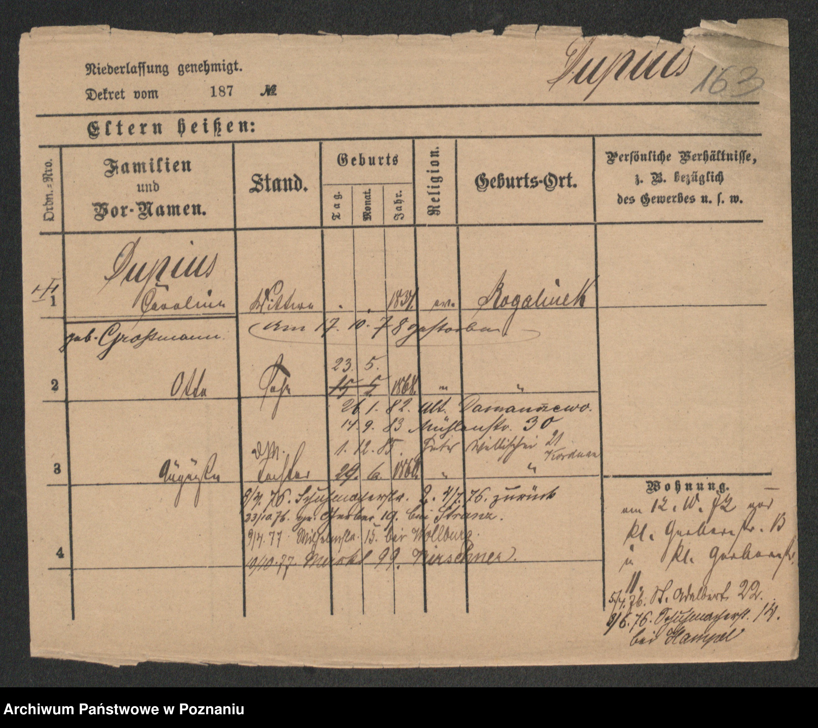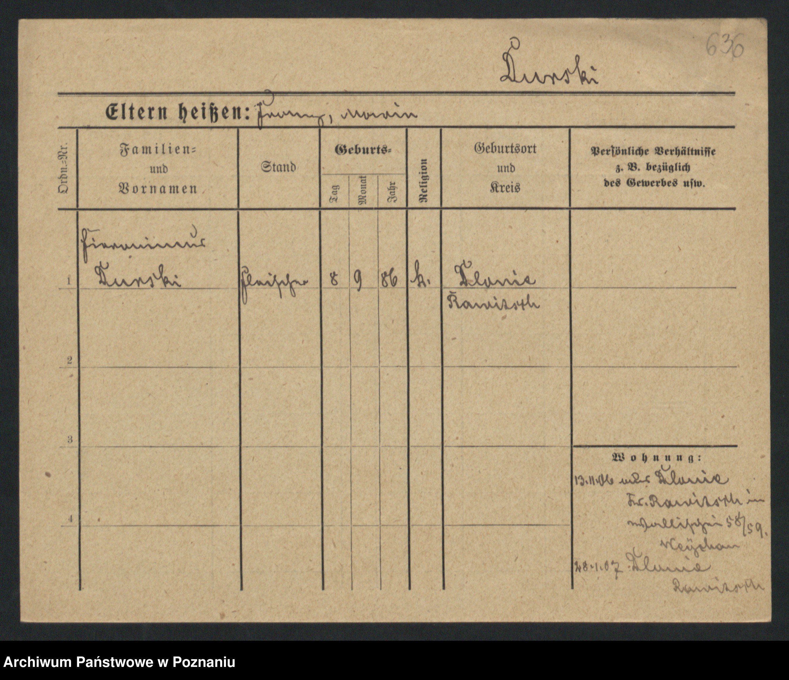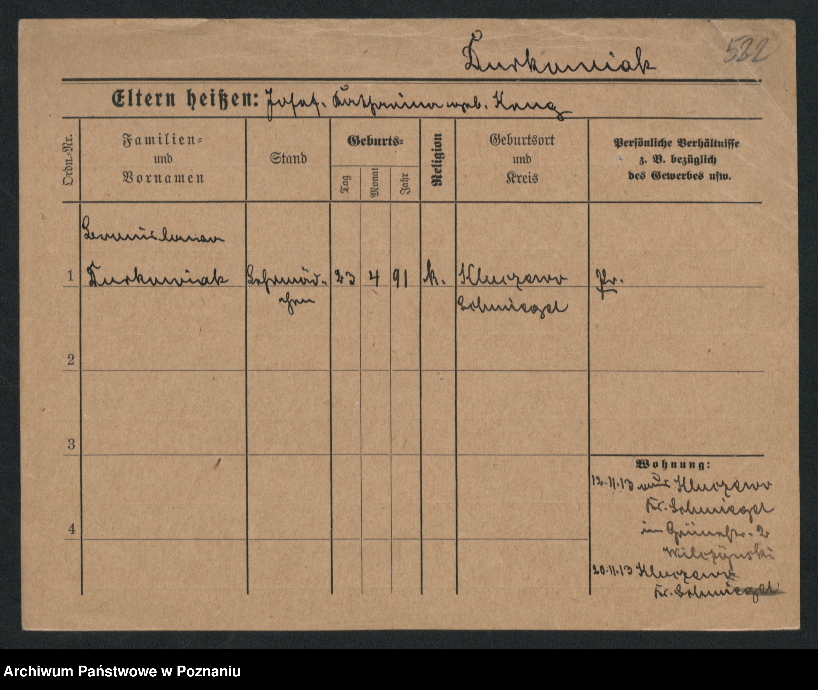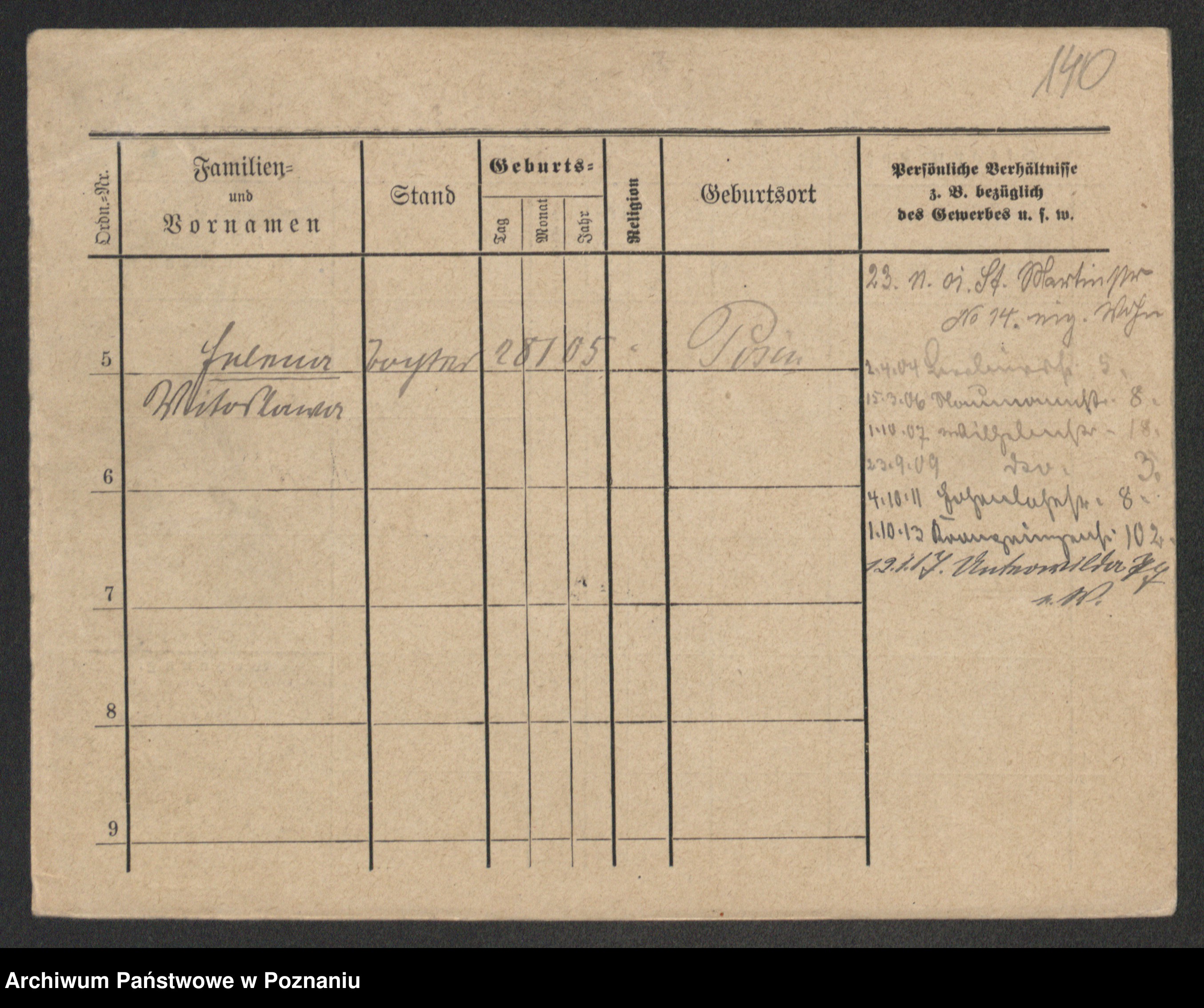 Podgląd karty osobowej dostępny jest po kliknięciu na nazwisko lub ikonkę karty. Można dokonywać powiększenia (ikony na górze) lub przechodzić między kolejnymi skanami (strzałki po bokach).