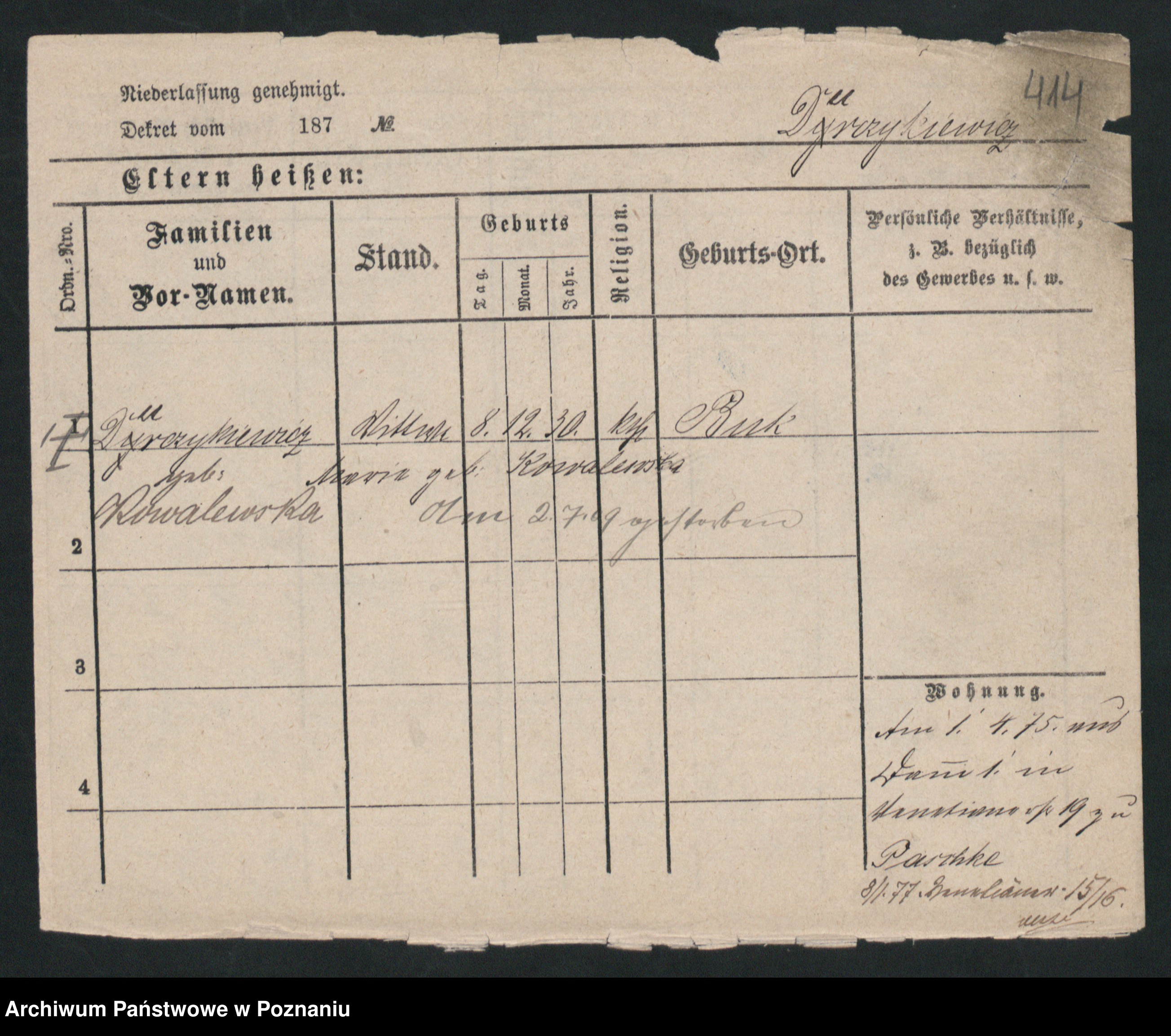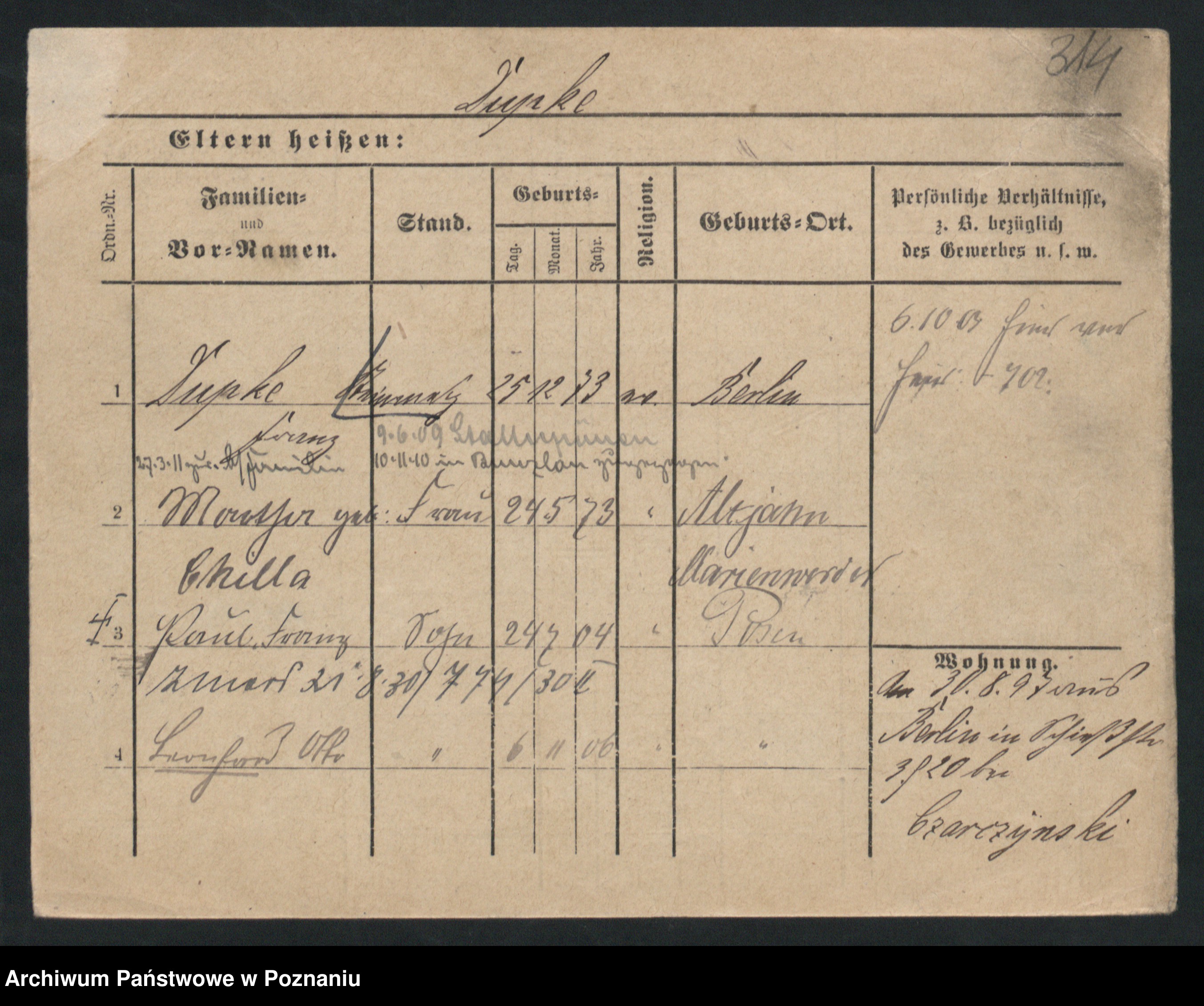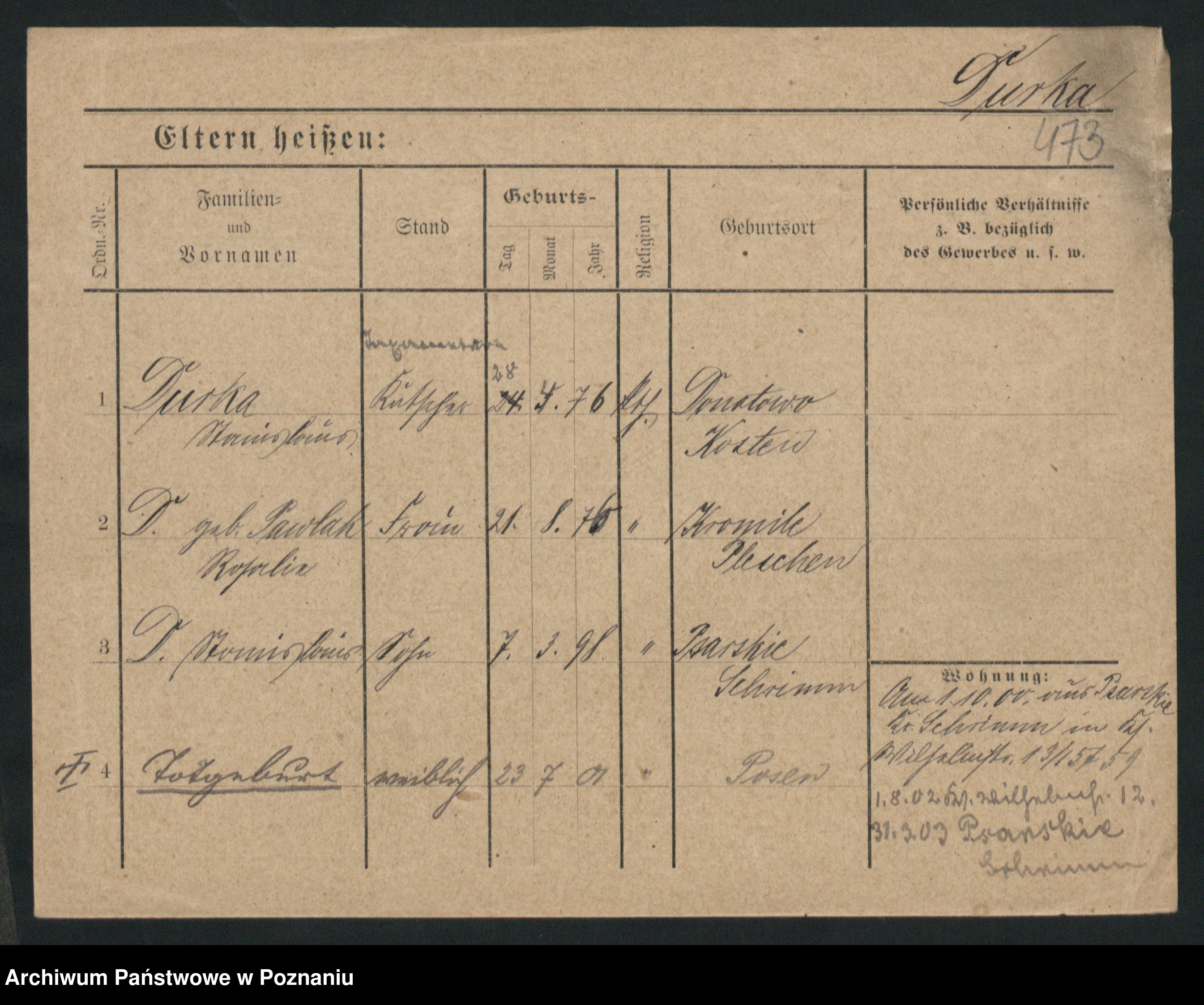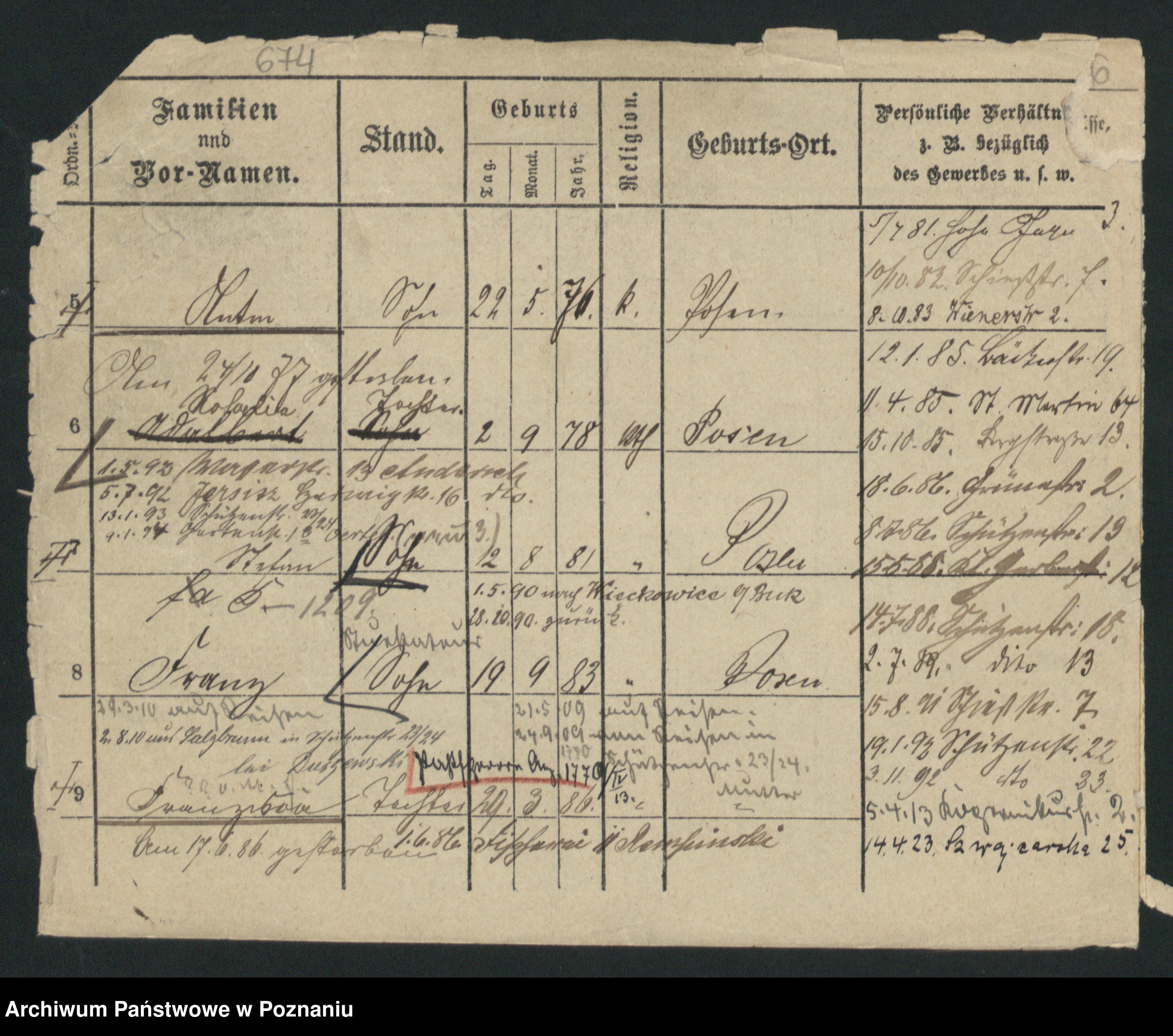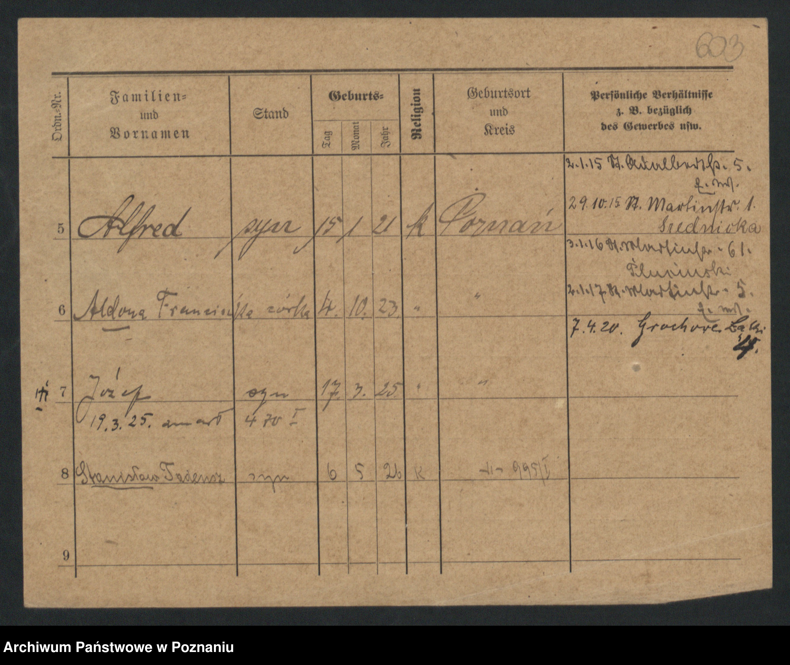 Podgląd karty osobowej dostępny jest po kliknięciu na nazwisko lub ikonkę karty. Można dokonywać powiększenia (ikony na górze) lub przechodzić między kolejnymi skanami (strzałki po bokach).