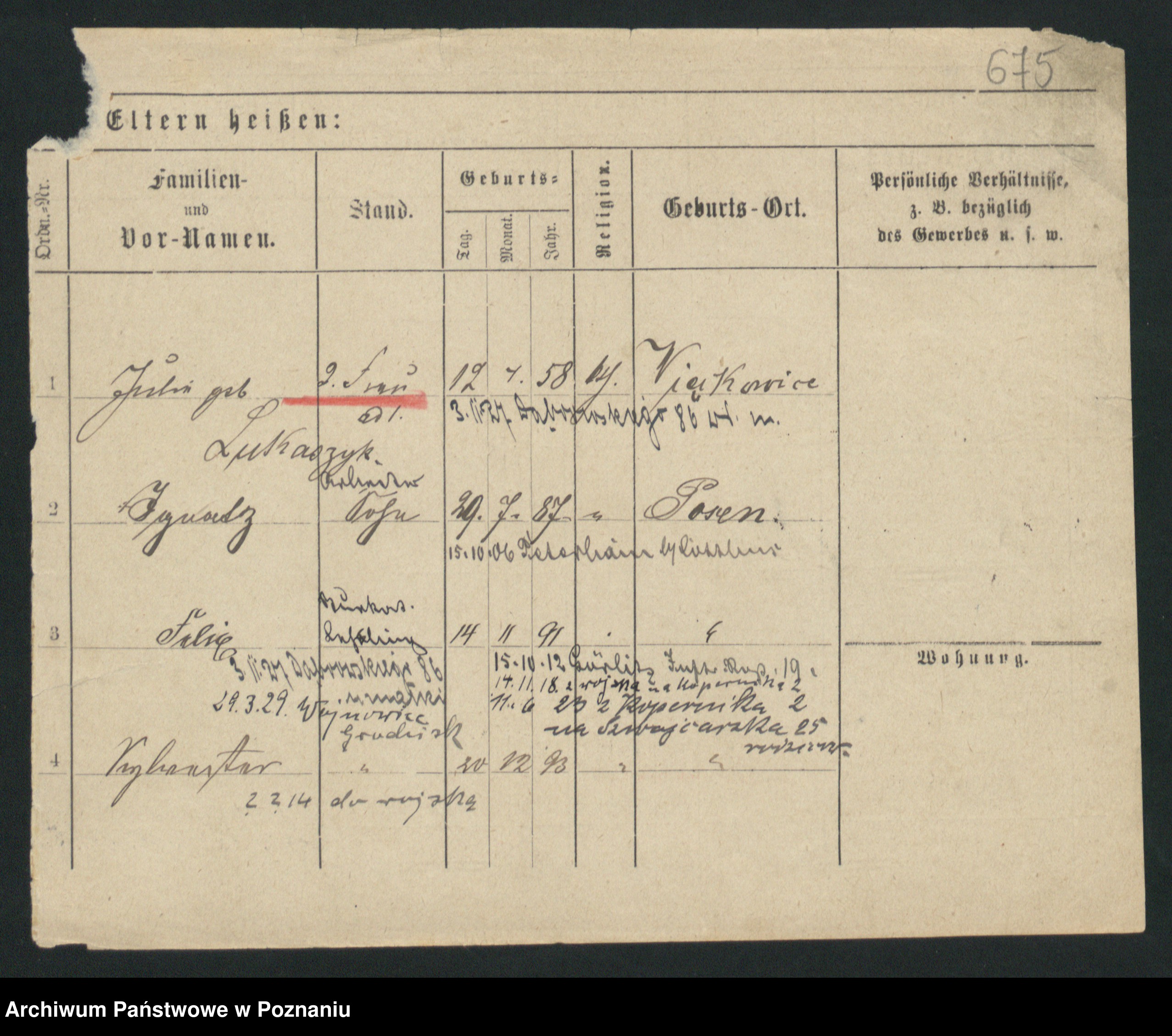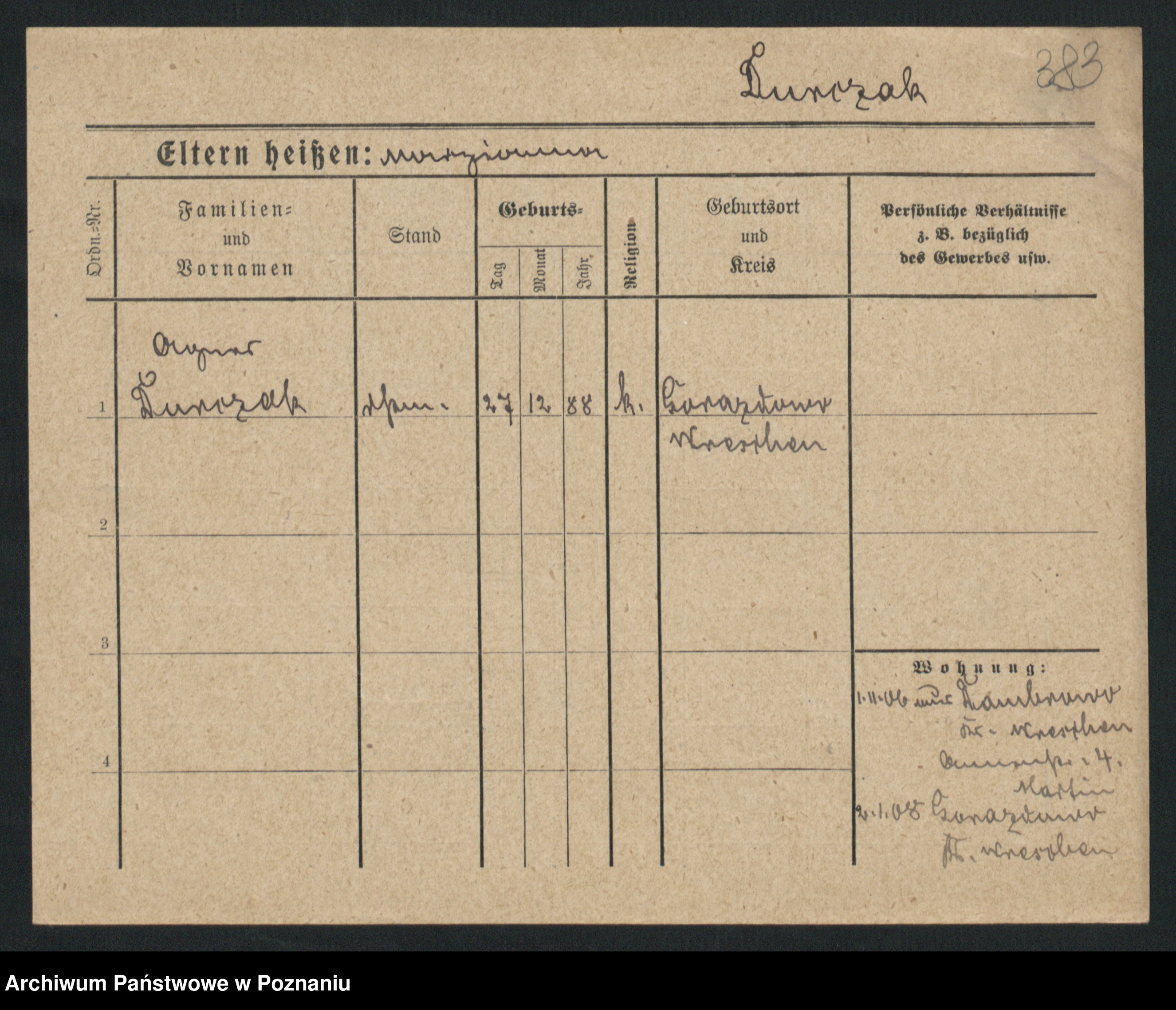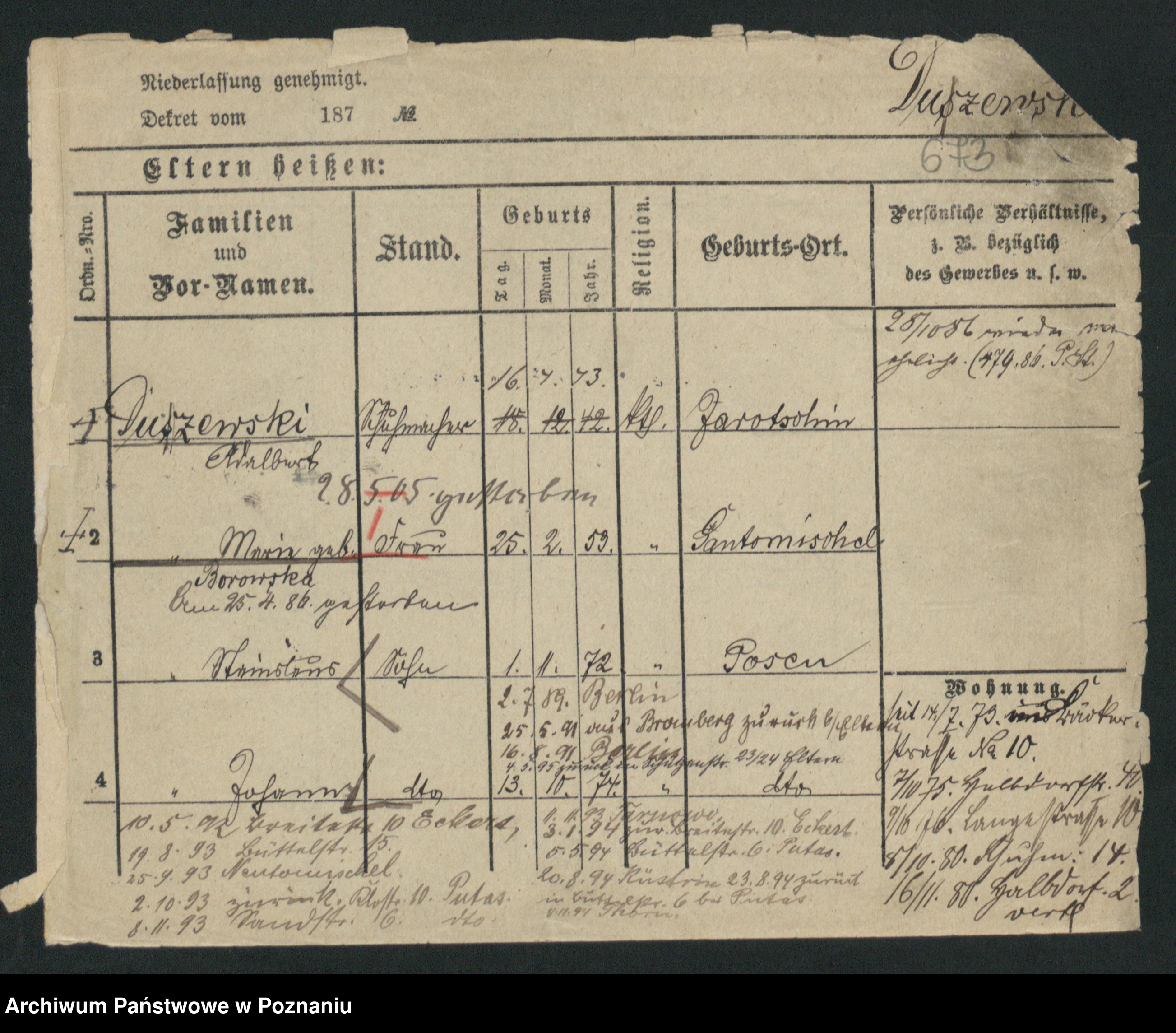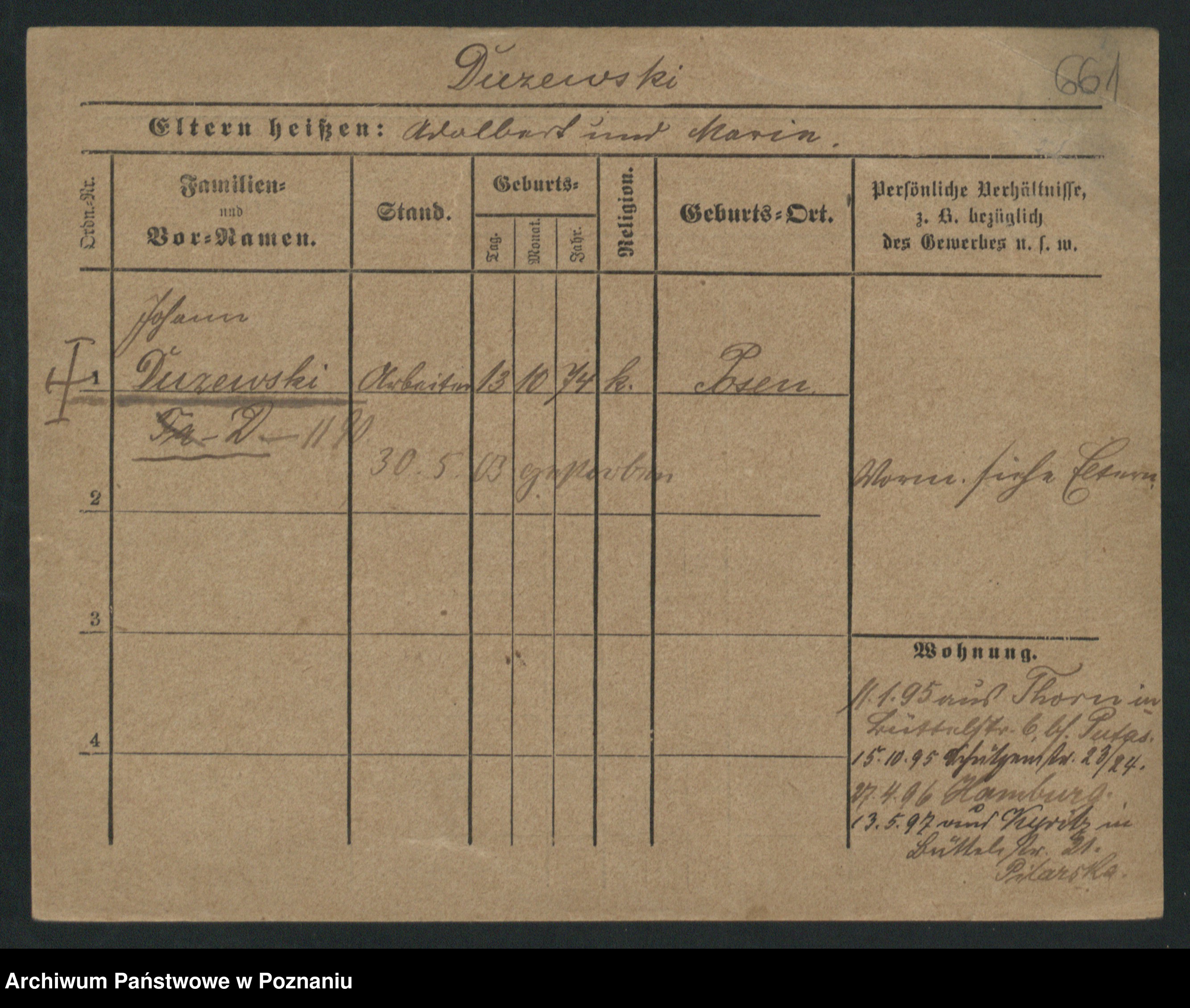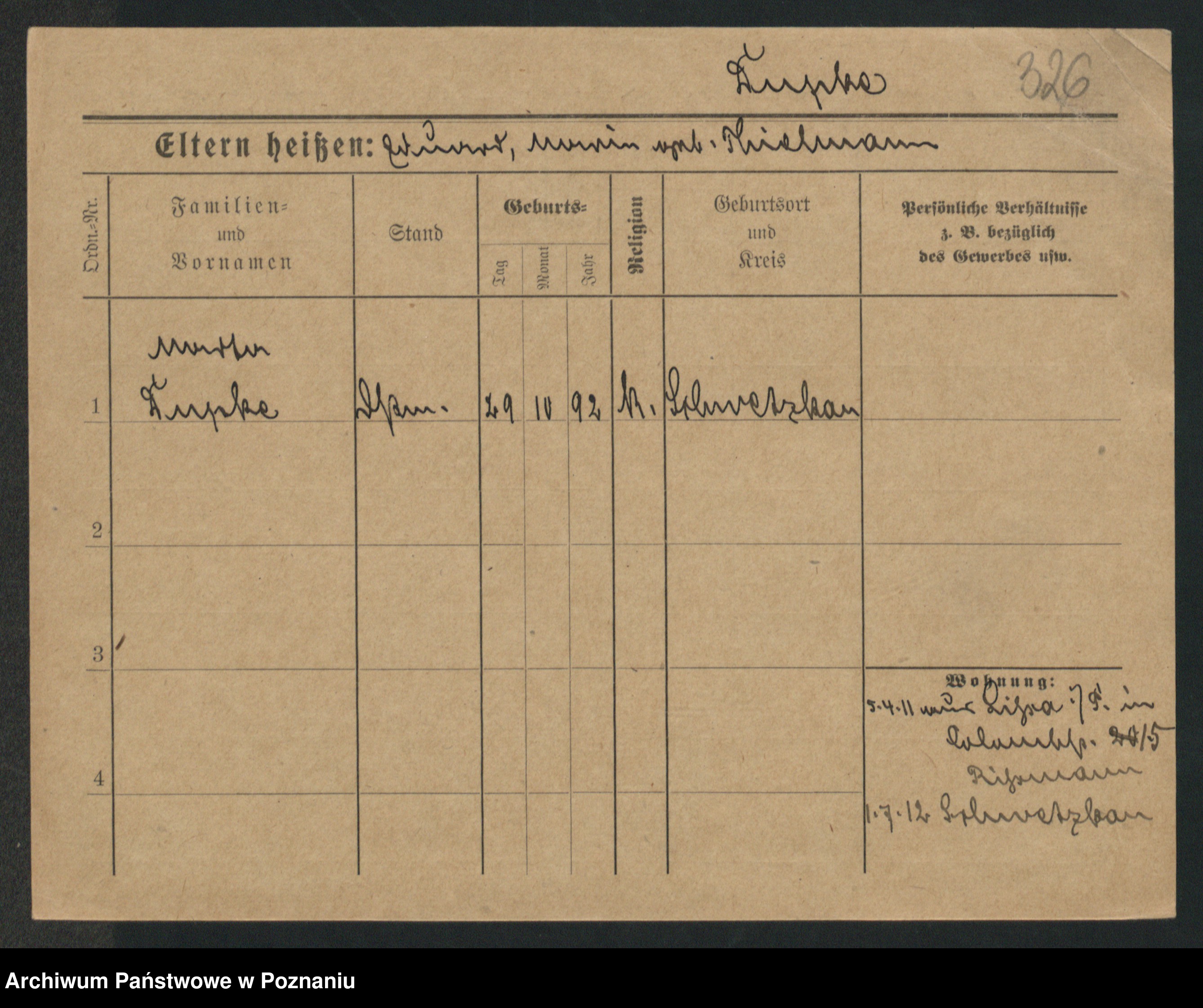 Podgląd karty osobowej dostępny jest po kliknięciu na nazwisko lub ikonkę karty. Można dokonywać powiększenia (ikony na górze) lub przechodzić między kolejnymi skanami (strzałki po bokach).