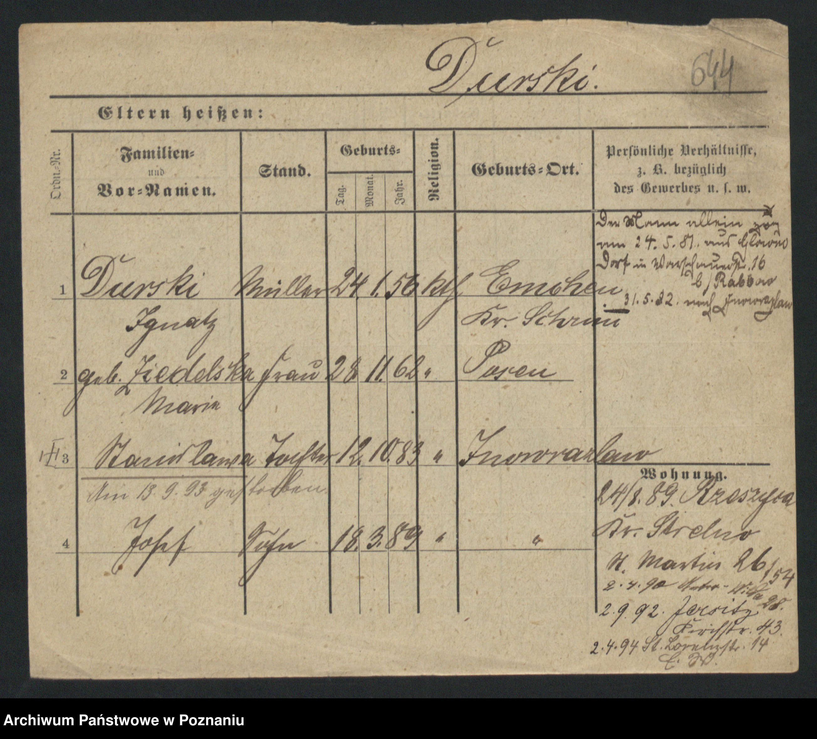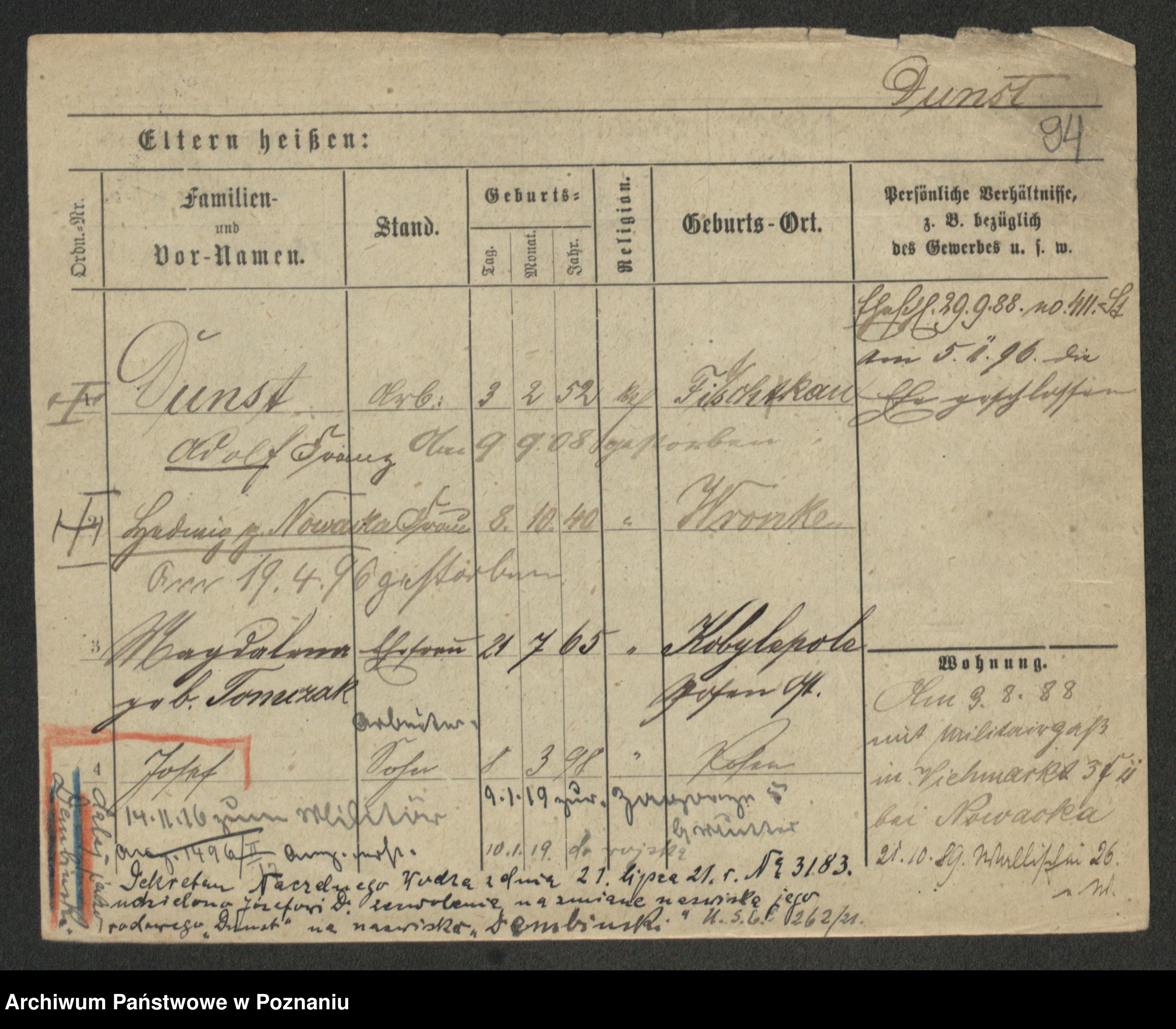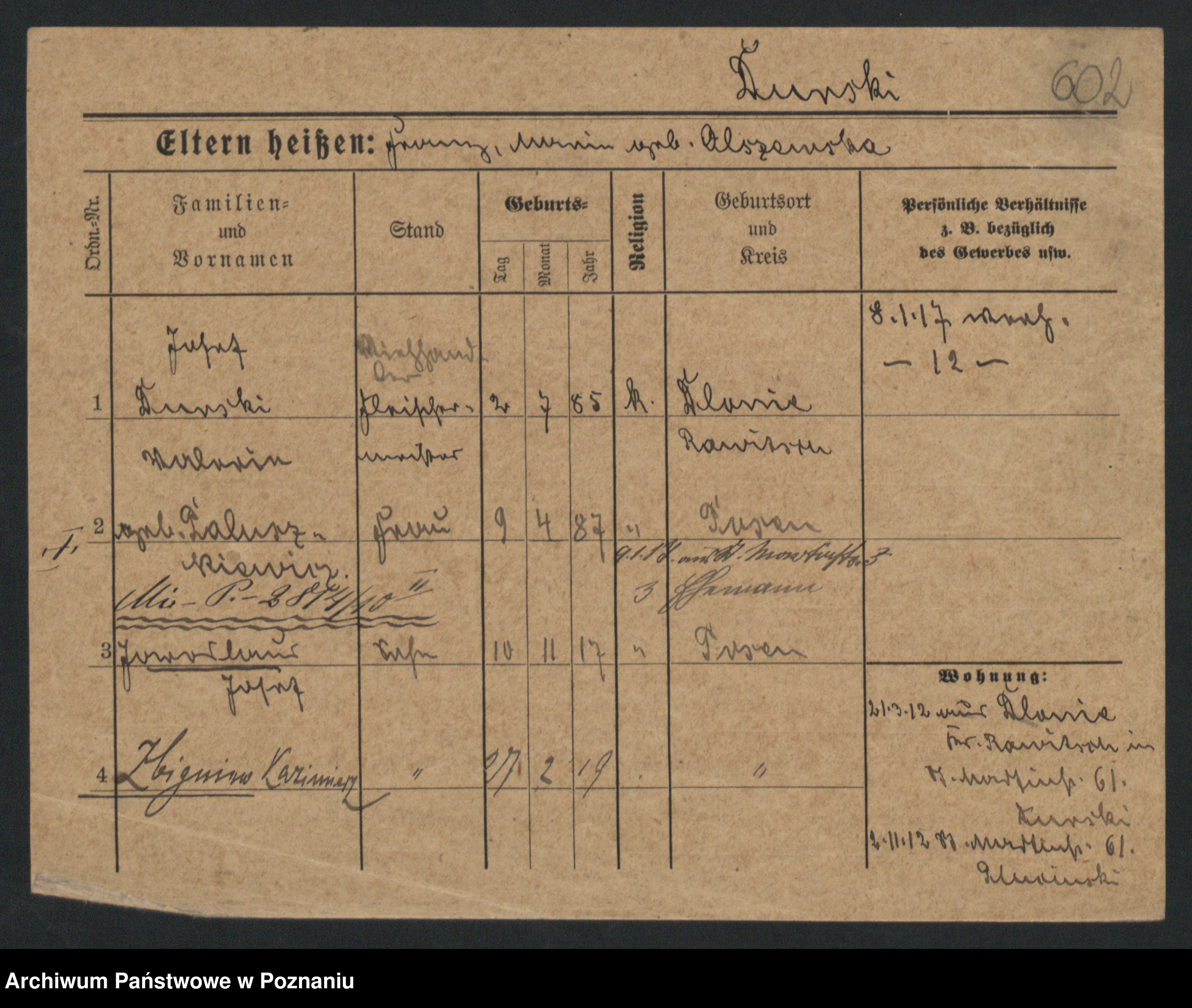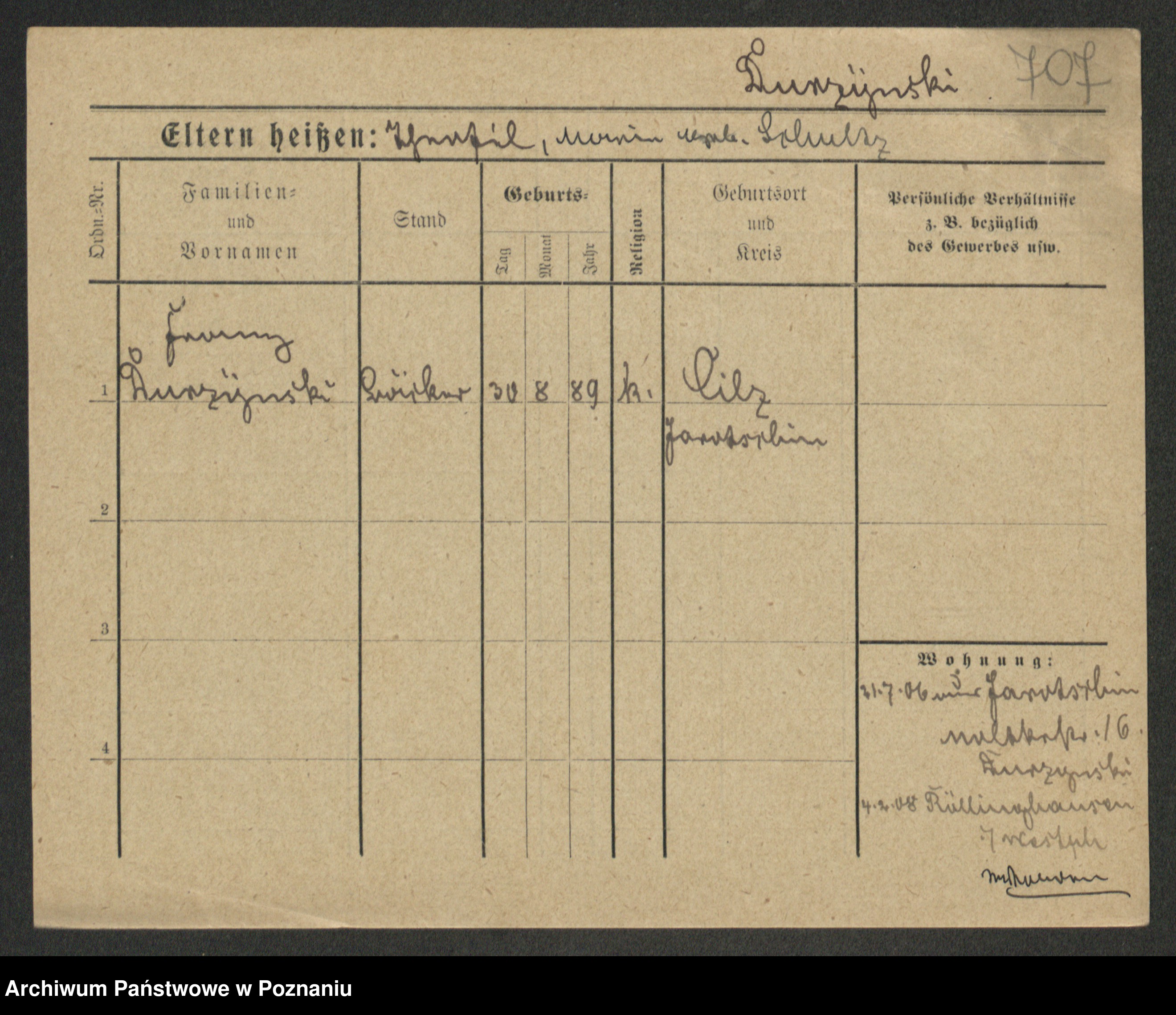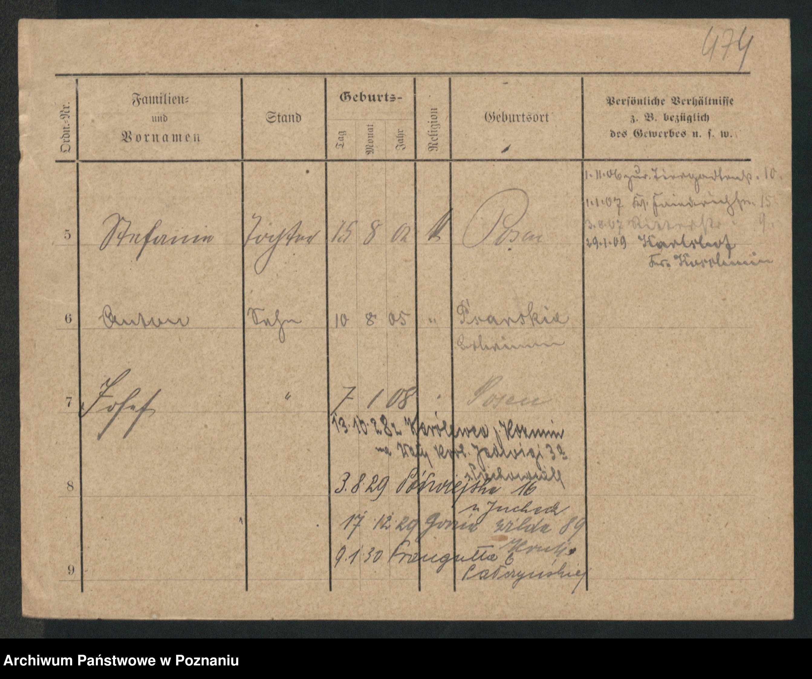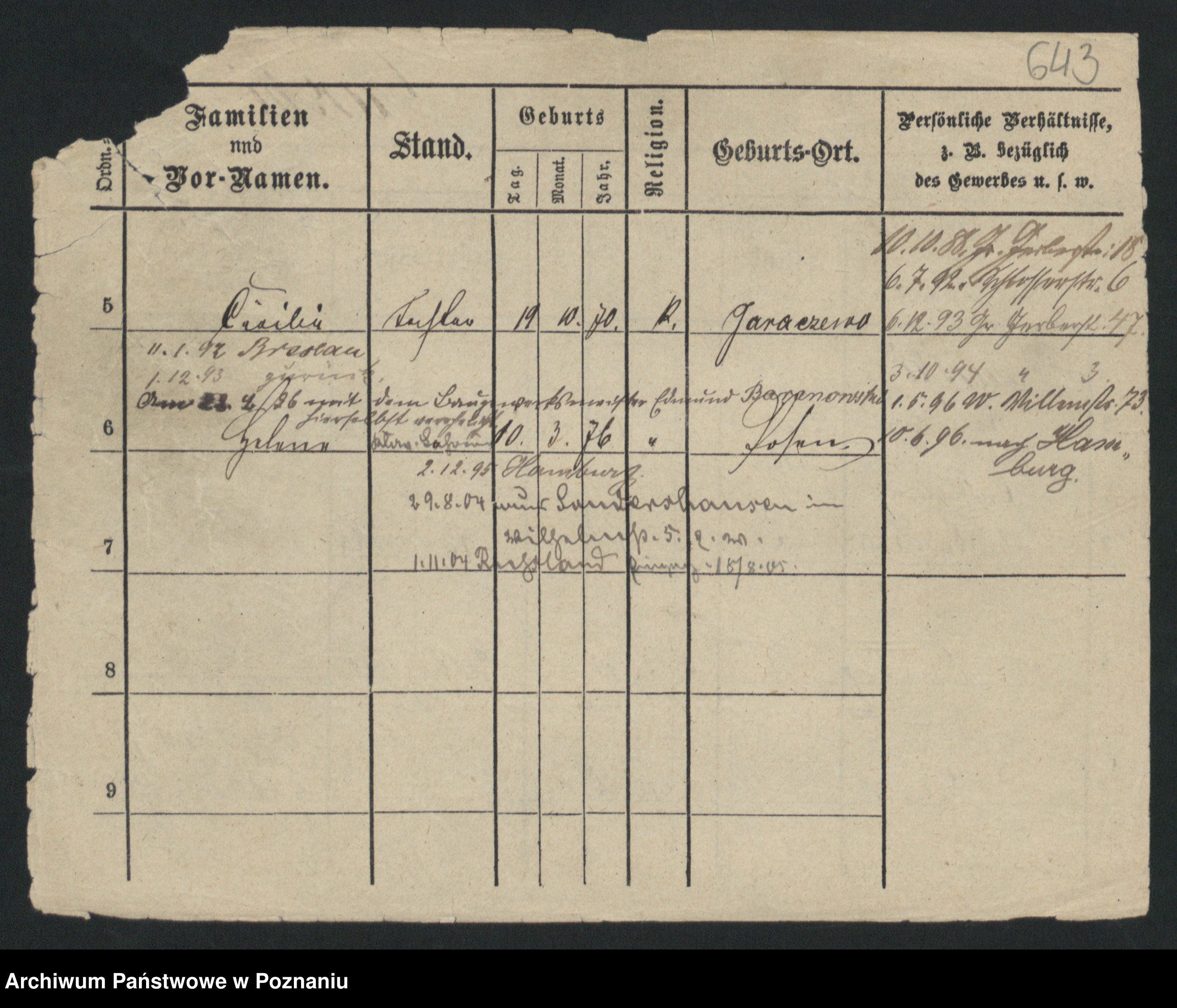 Podgląd karty osobowej dostępny jest po kliknięciu na nazwisko lub ikonkę karty. Można dokonywać powiększenia (ikony na górze) lub przechodzić między kolejnymi skanami (strzałki po bokach).