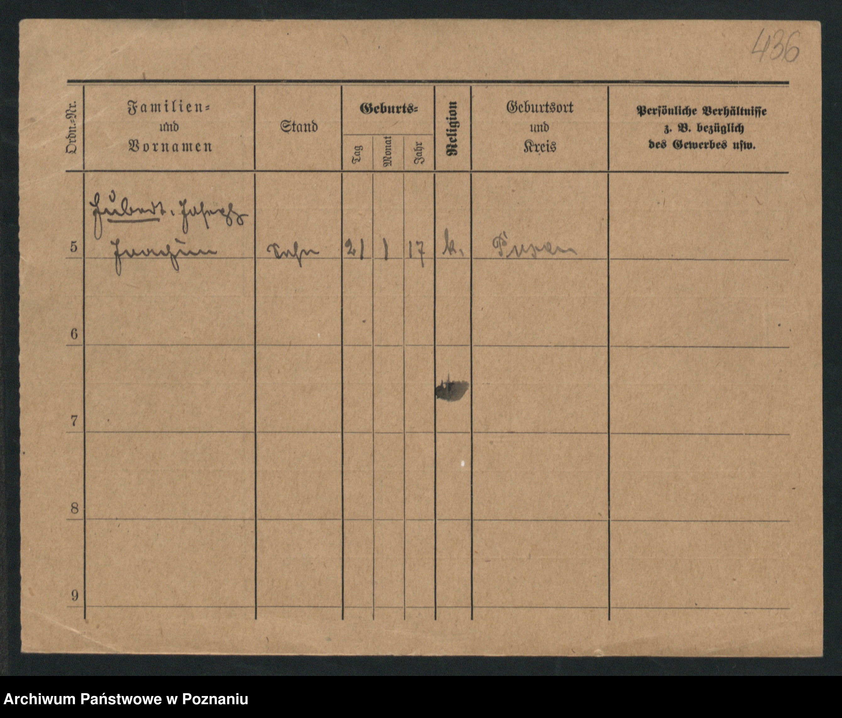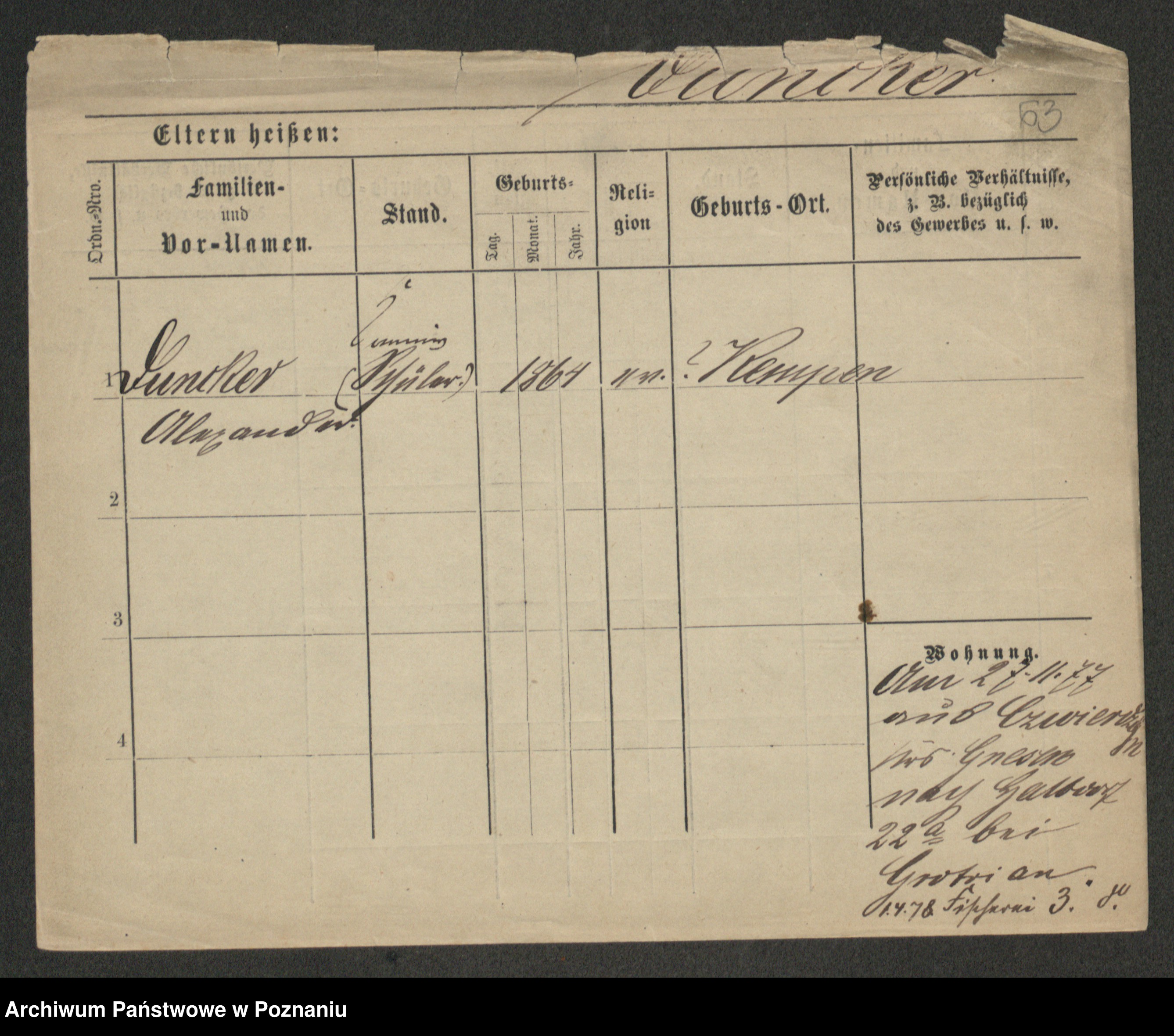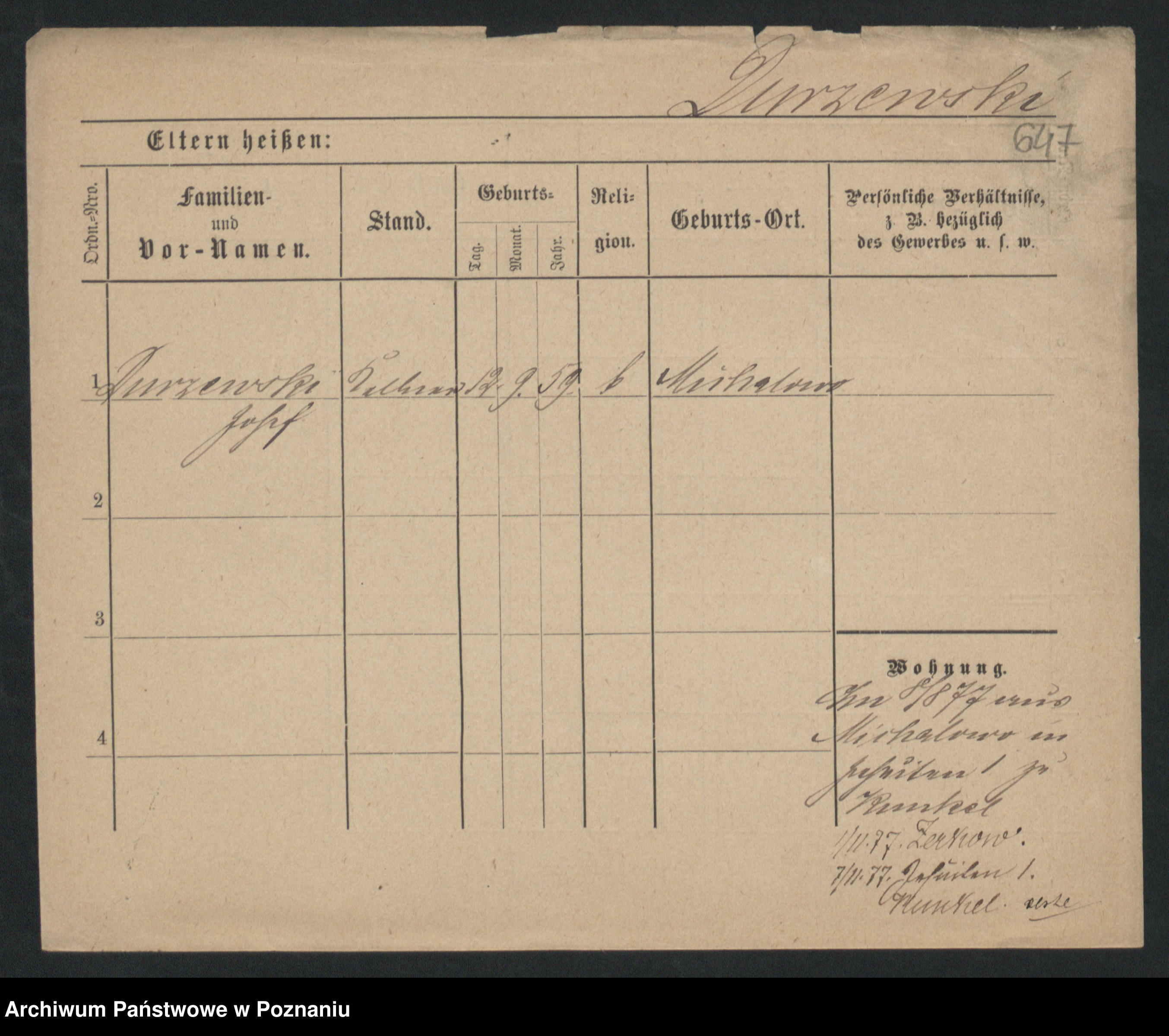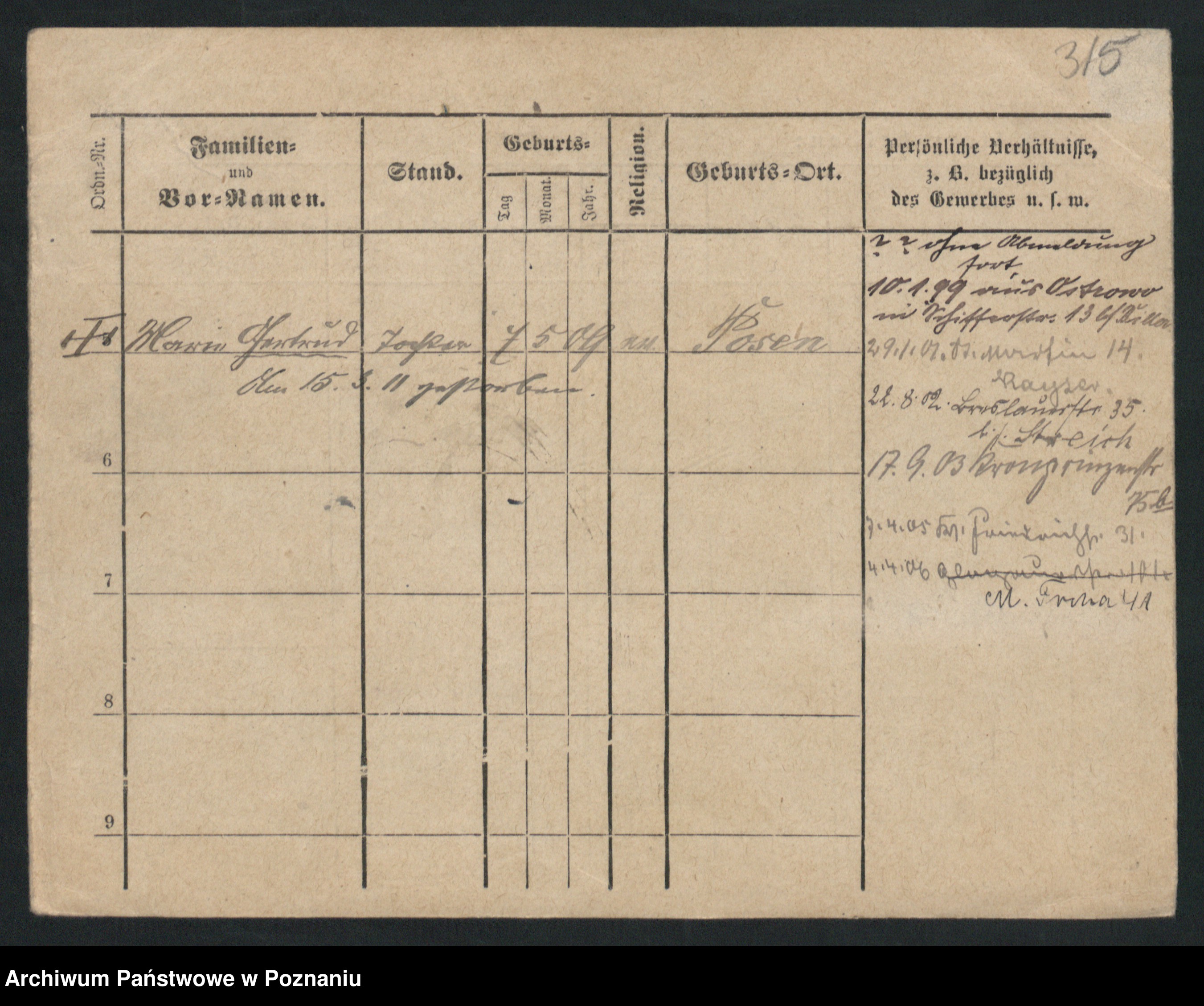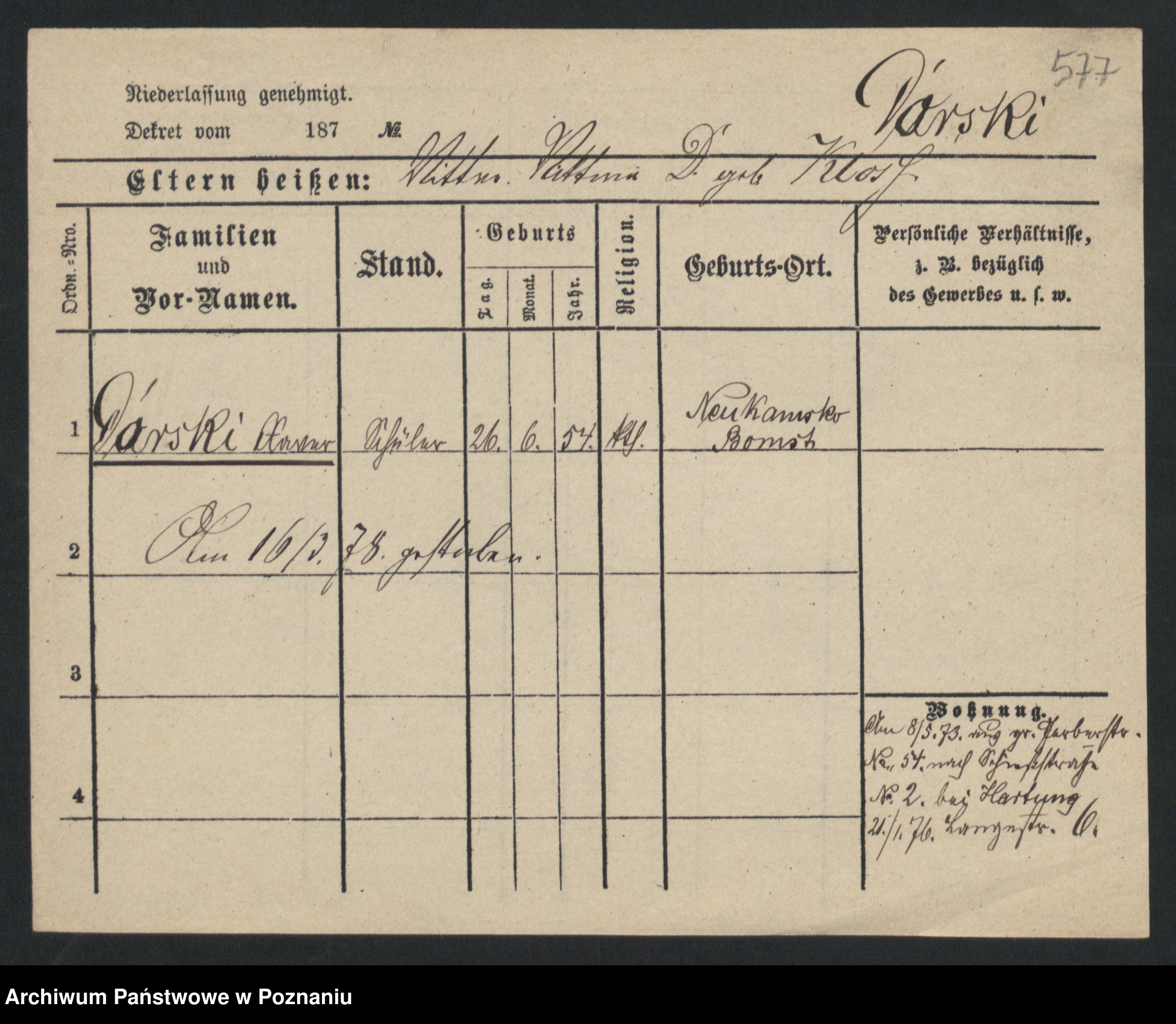 Podgląd karty osobowej dostępny jest po kliknięciu na nazwisko lub ikonkę karty. Można dokonywać powiększenia (ikony na górze) lub przechodzić między kolejnymi skanami (strzałki po bokach).