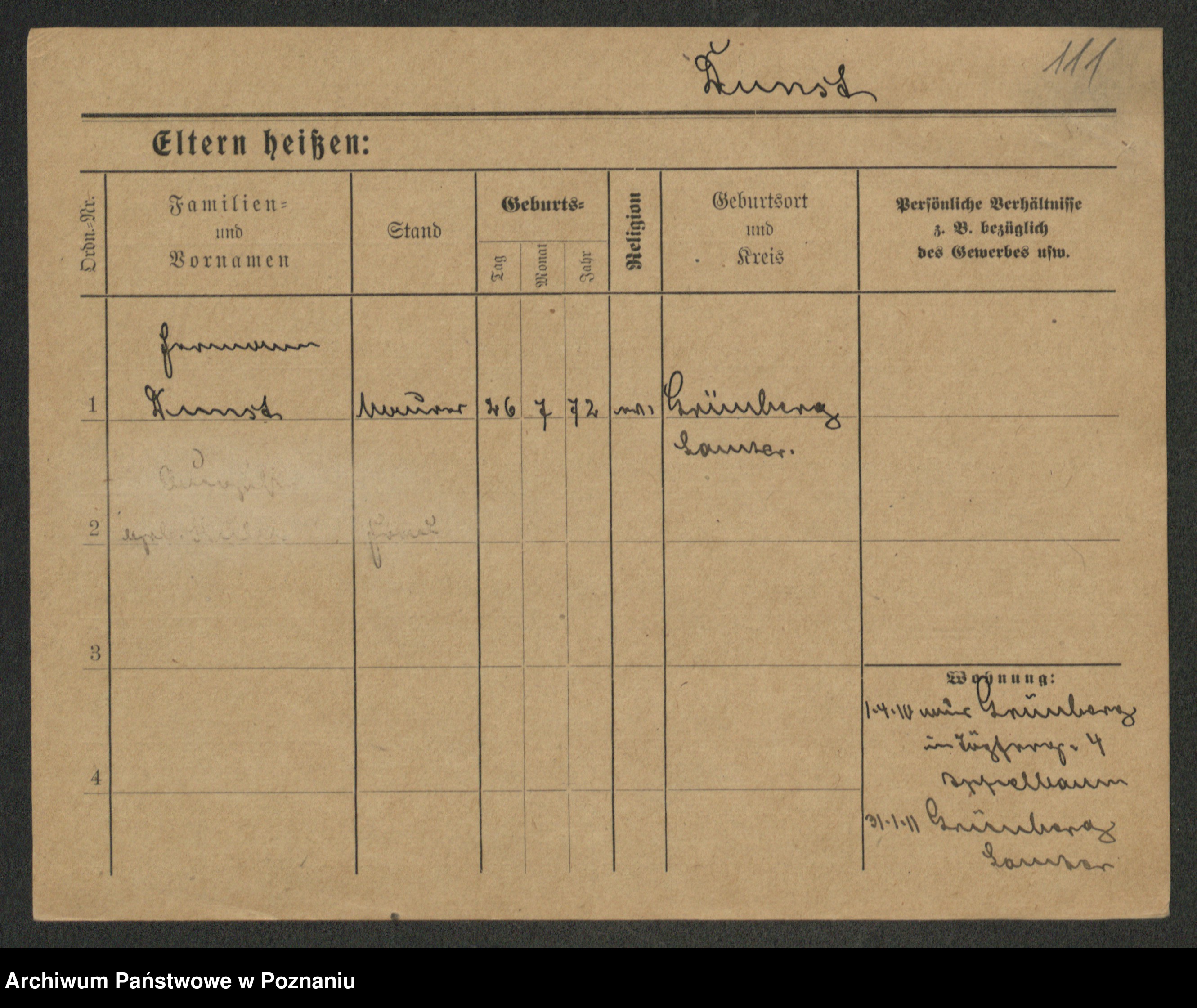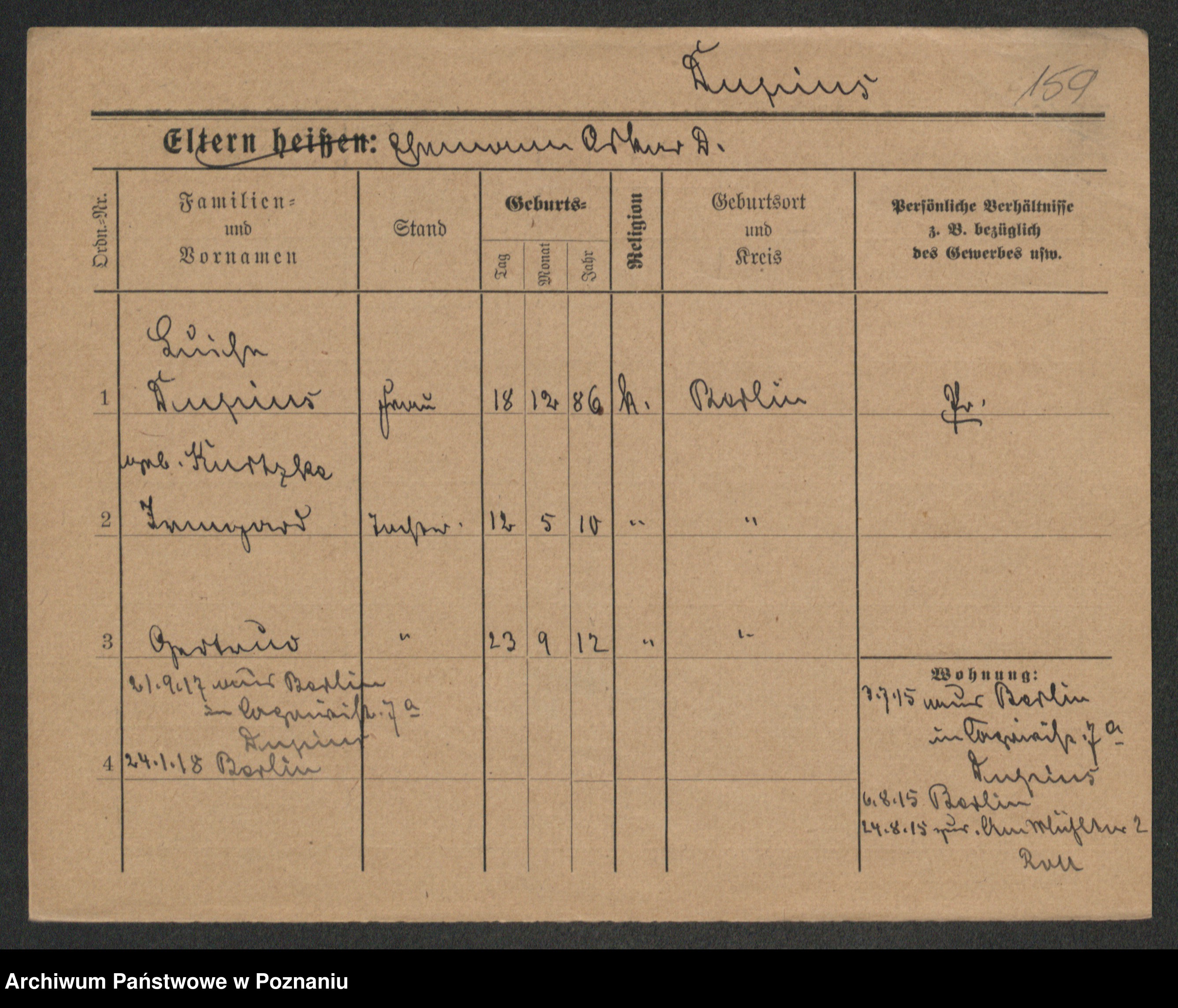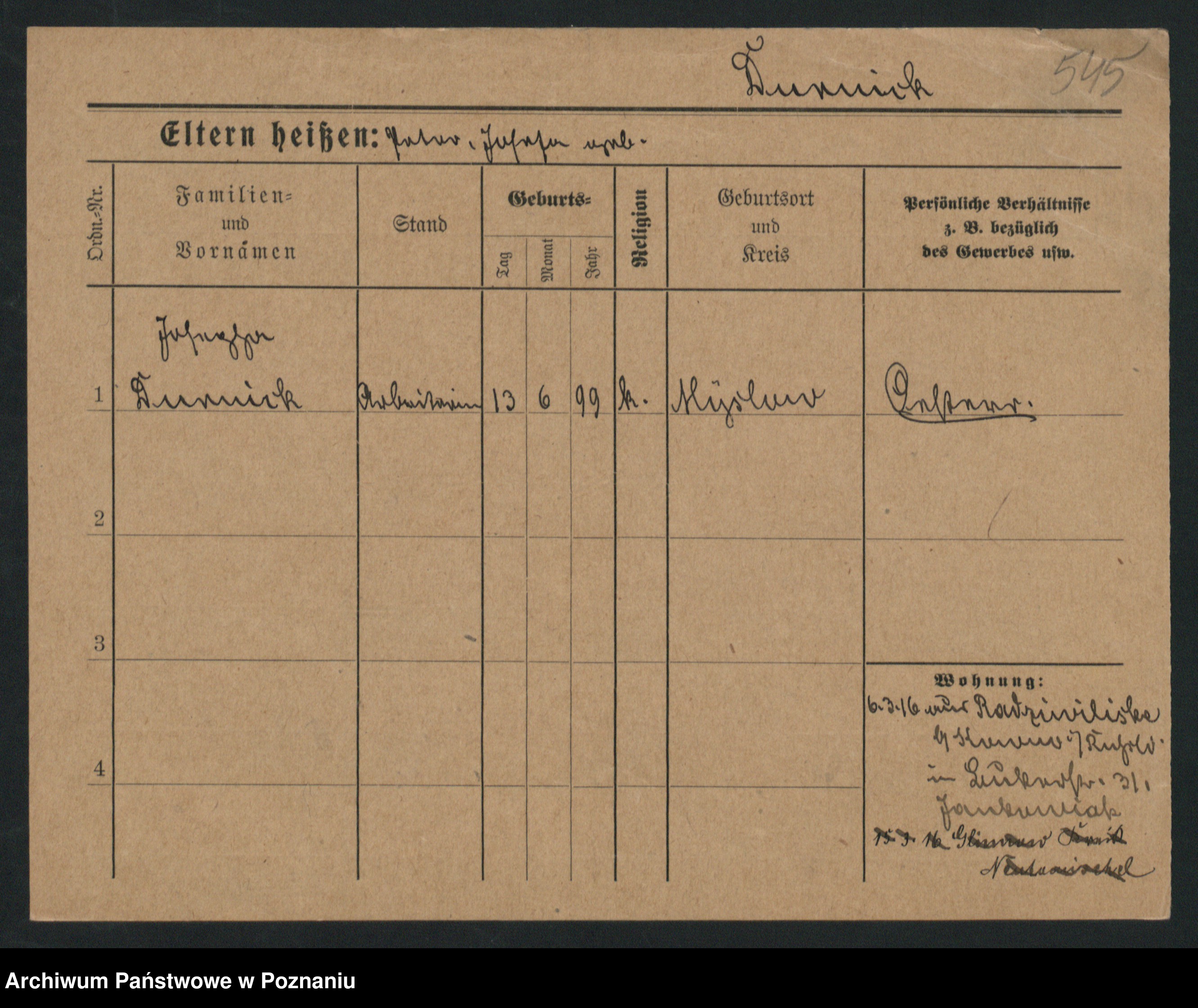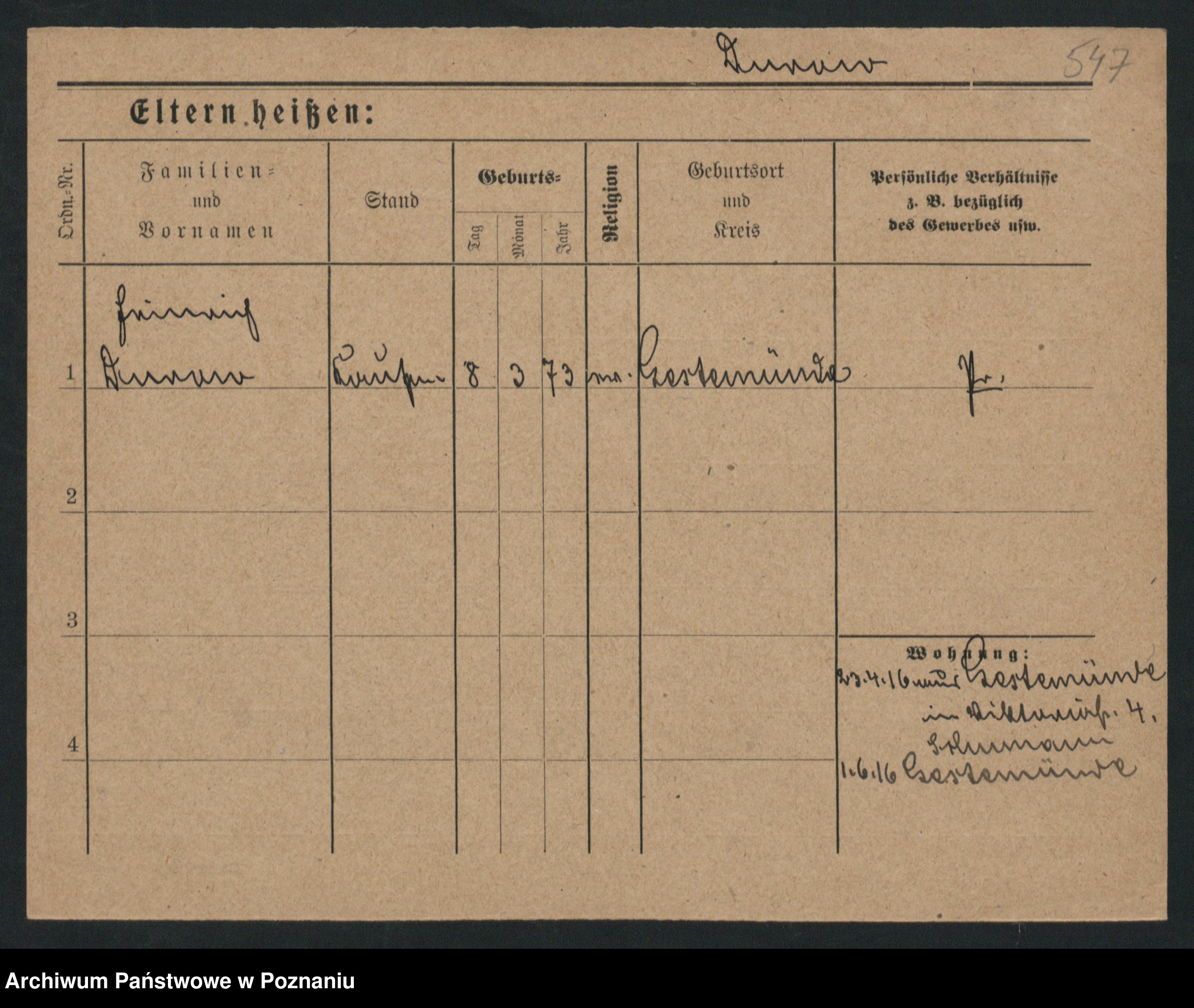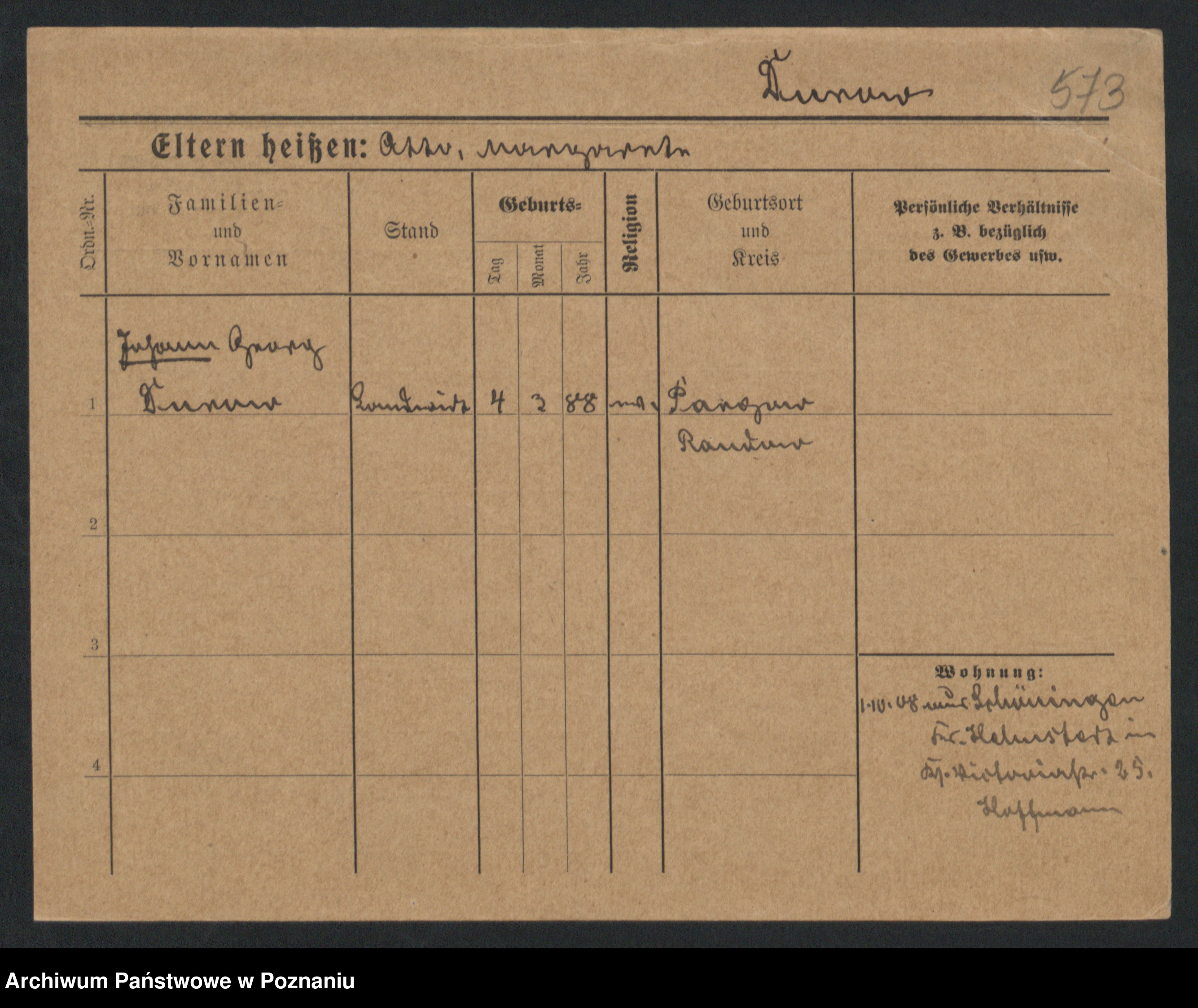 Podgląd karty osobowej dostępny jest po kliknięciu na nazwisko lub ikonkę karty. Można dokonywać powiększenia (ikony na górze) lub przechodzić między kolejnymi skanami (strzałki po bokach).
